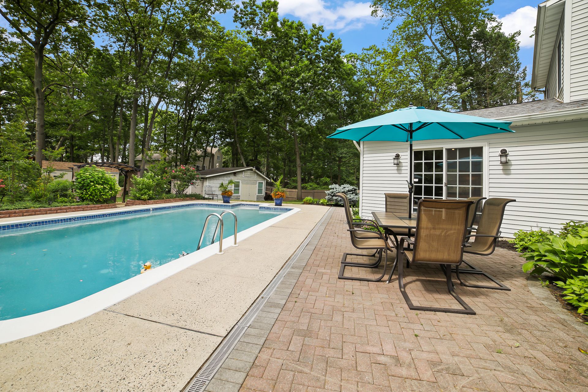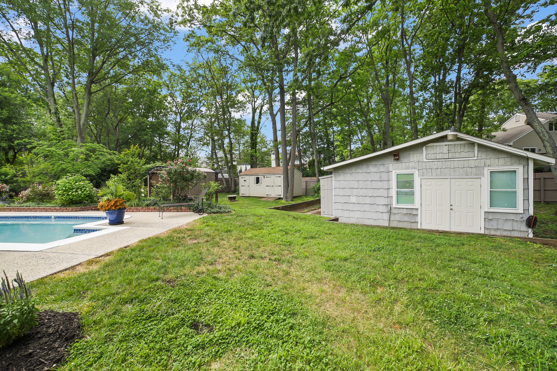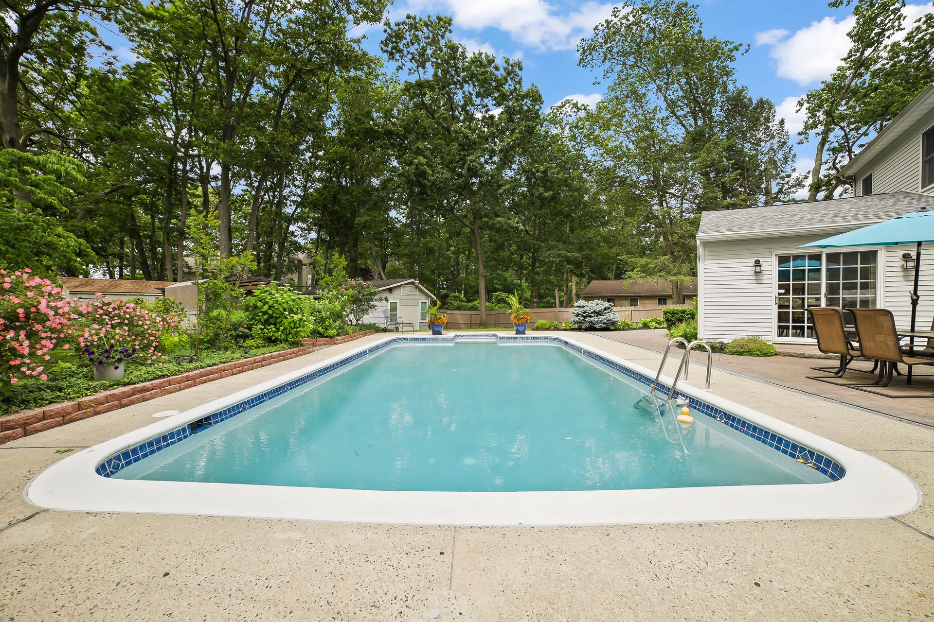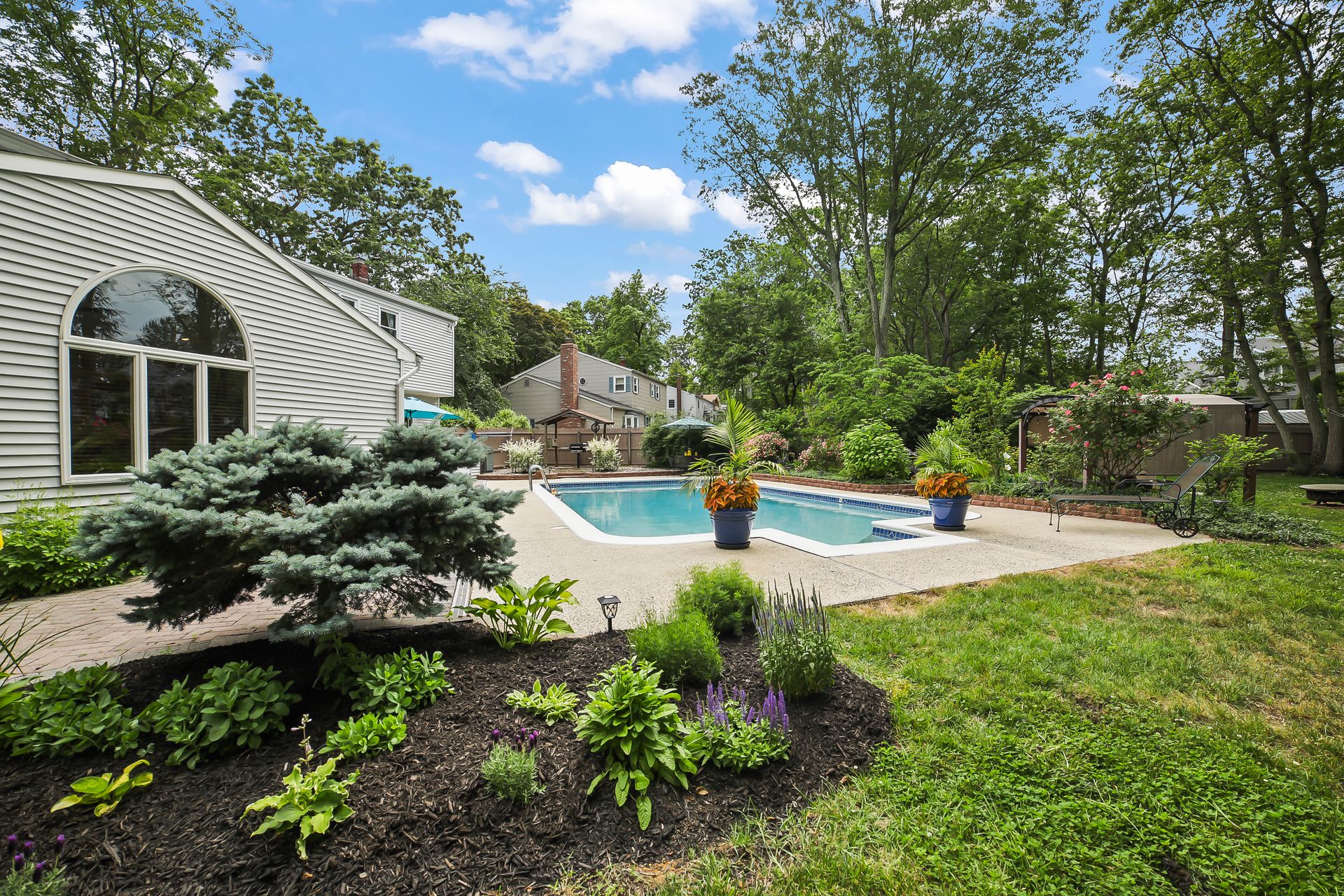 Located on a quiet tree-lined street and meticulously maintained and thoughtfully expanded, this 5 BR 3.5 bath home in the coveted Woodmere section has the space you need and the amenities you want. Vacation in your own back yard with lushly landscaped pool, patio, grilling area, firepit area, play area and more -- all fully fenced. Separate workshop building can be the Mancave or She-Shed you've always wanted! Expansive Great Room is perfect for entertaining with countertop bar to kitchen, Mexican tile floor, soaring ceiling and natural stone hearth fireplace with wood-burning stove inset. Andersen windows and sliders to patio. Spacious Master Bedroom with vaulted ceiling, 11' walk-in closet, attached bath with Jacuzzi whirlpool and shower with double showerheads. Princess Suite with its own full bath plus three more bedrooms-- all with double closets! Traditional living and dining rooms, foyer with french doors, hardwood floors and lots of extras -- Concrete RV pad on side of house, partially finished basement, oversized garden shed, natural gas grill -- too many to list! Call for your appointment -- but hurry! This Woodmere Wonder won't last!