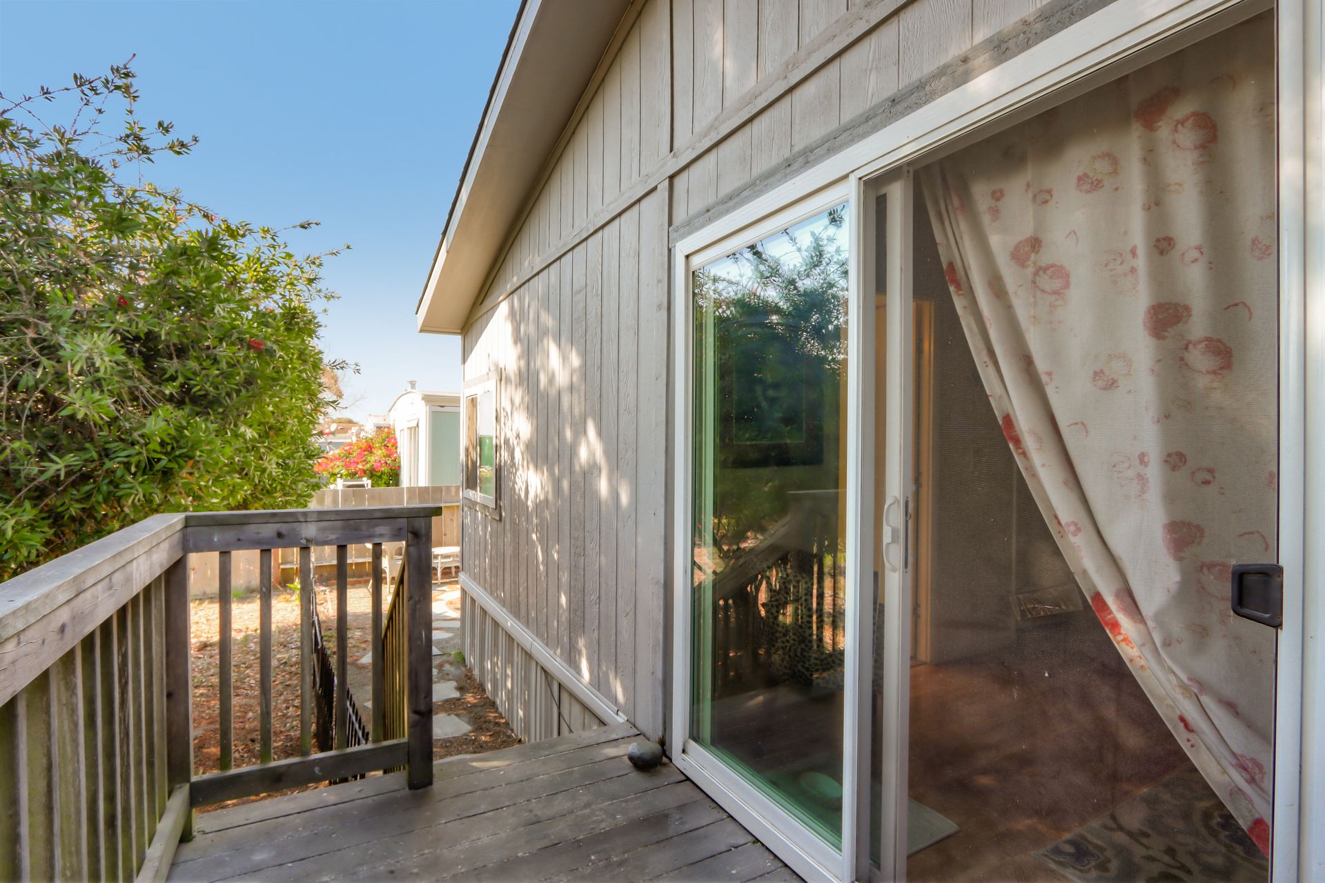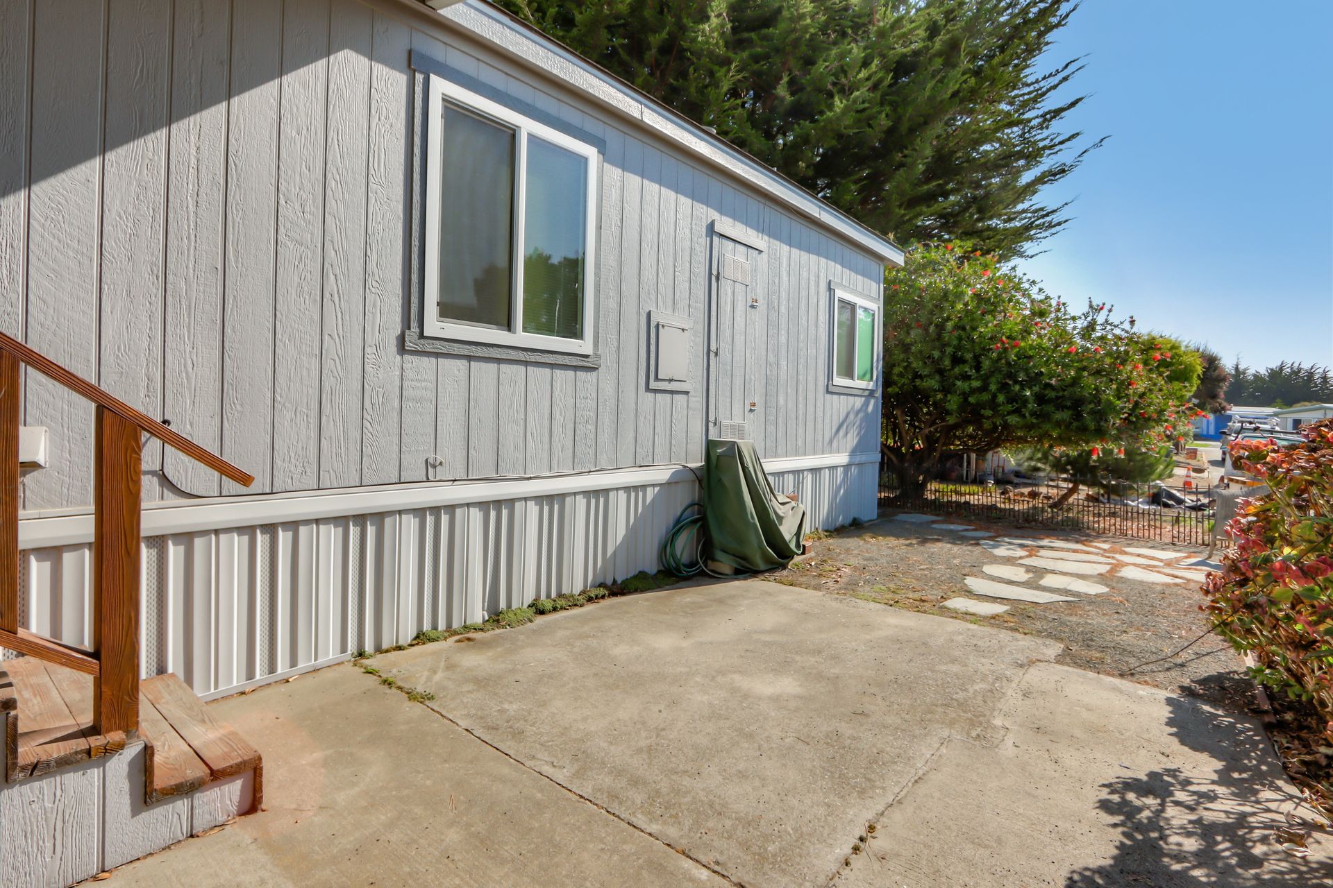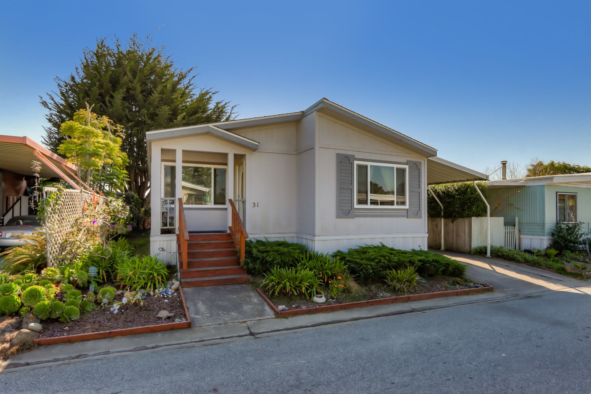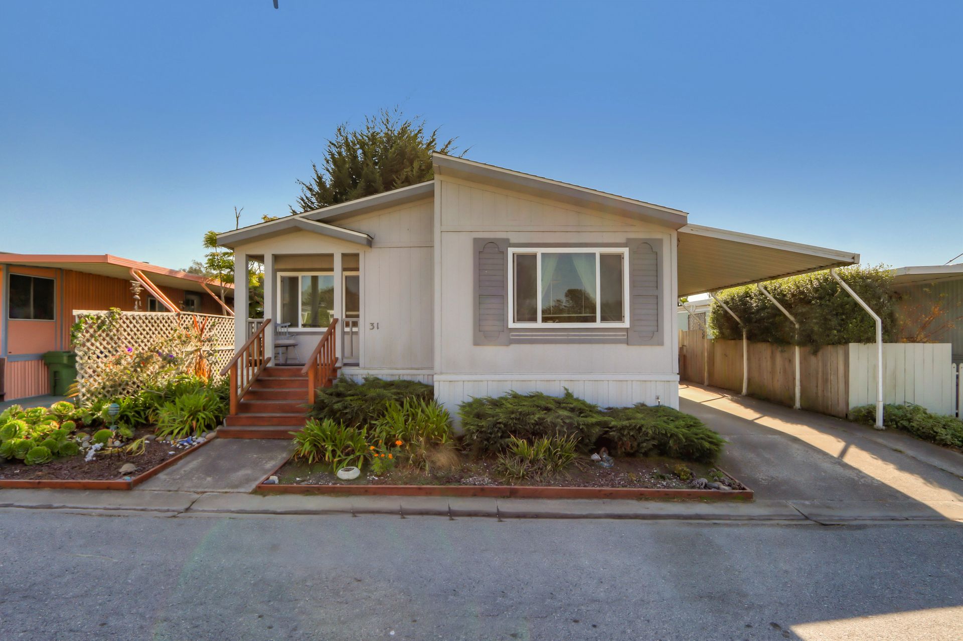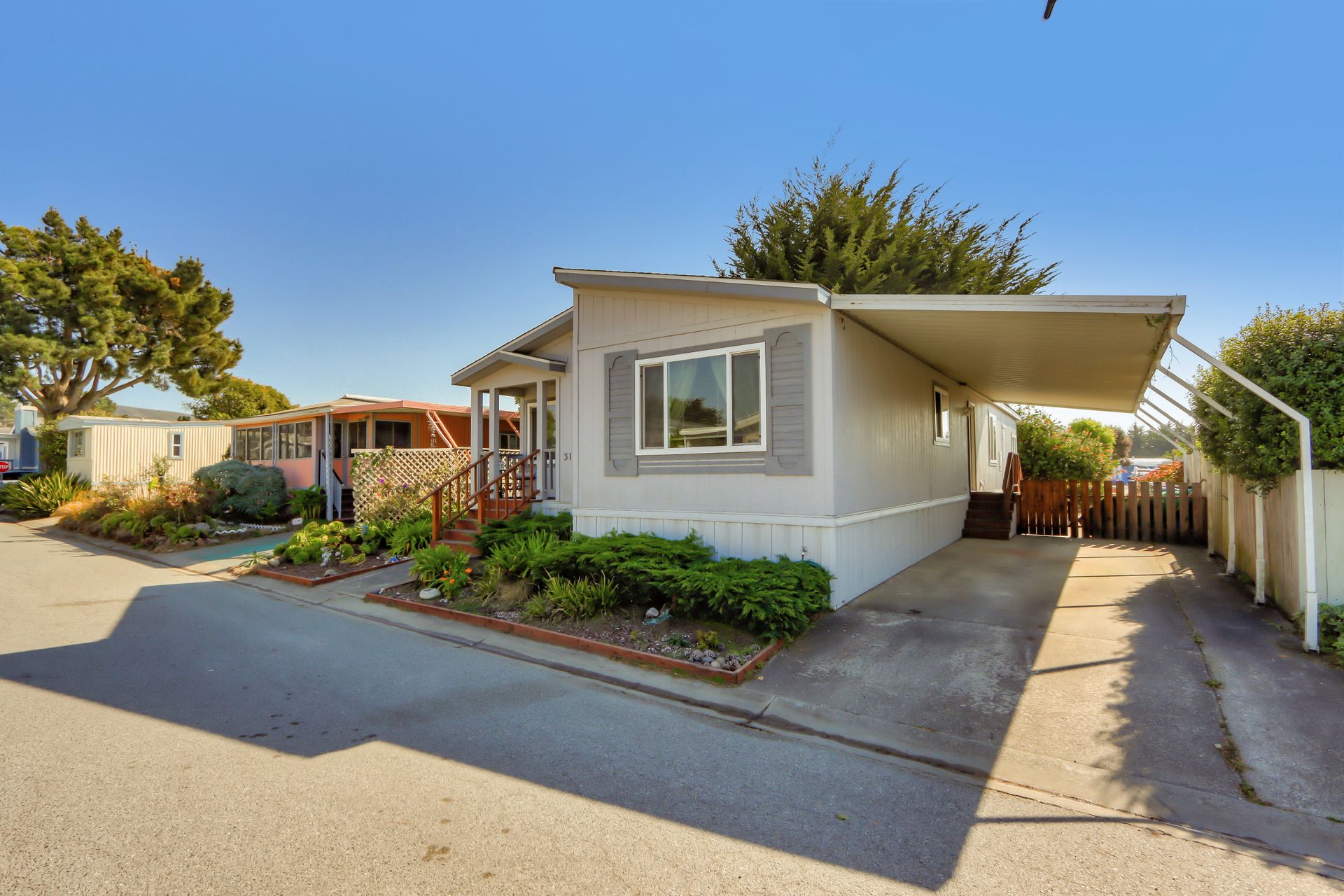 This spacious home with an approximately 28 foot width, has vaulted ceilings, offers finished walls, wood-like flooring and double-pane windows. Living and dining rooms are open, made for gathering. Kitchen has a breakfast bar and features a skylight. The laundry room is next to the kitchen with side entry door from the carport for ease in bringing in groceries. There are three bedrooms and two bathrooms. Hall bathroom has a tub with shower. The master suite has a large walk-in closet. The master bath has both a tub and stall shower, with linen closet. A sliding door from the master bedroom opens to a deck and private backyard with bushes, trees and stone culvert adding separation. Two-car covered carport provides tandem parking. Located in the much sought after 55+ Community of Canada Cove, near beaches, golf, trail, south downtown Half Moon Bay. Home is on leased land, Park approval required for purchase. Feel the sea breeze and enjoy living by the sea!!