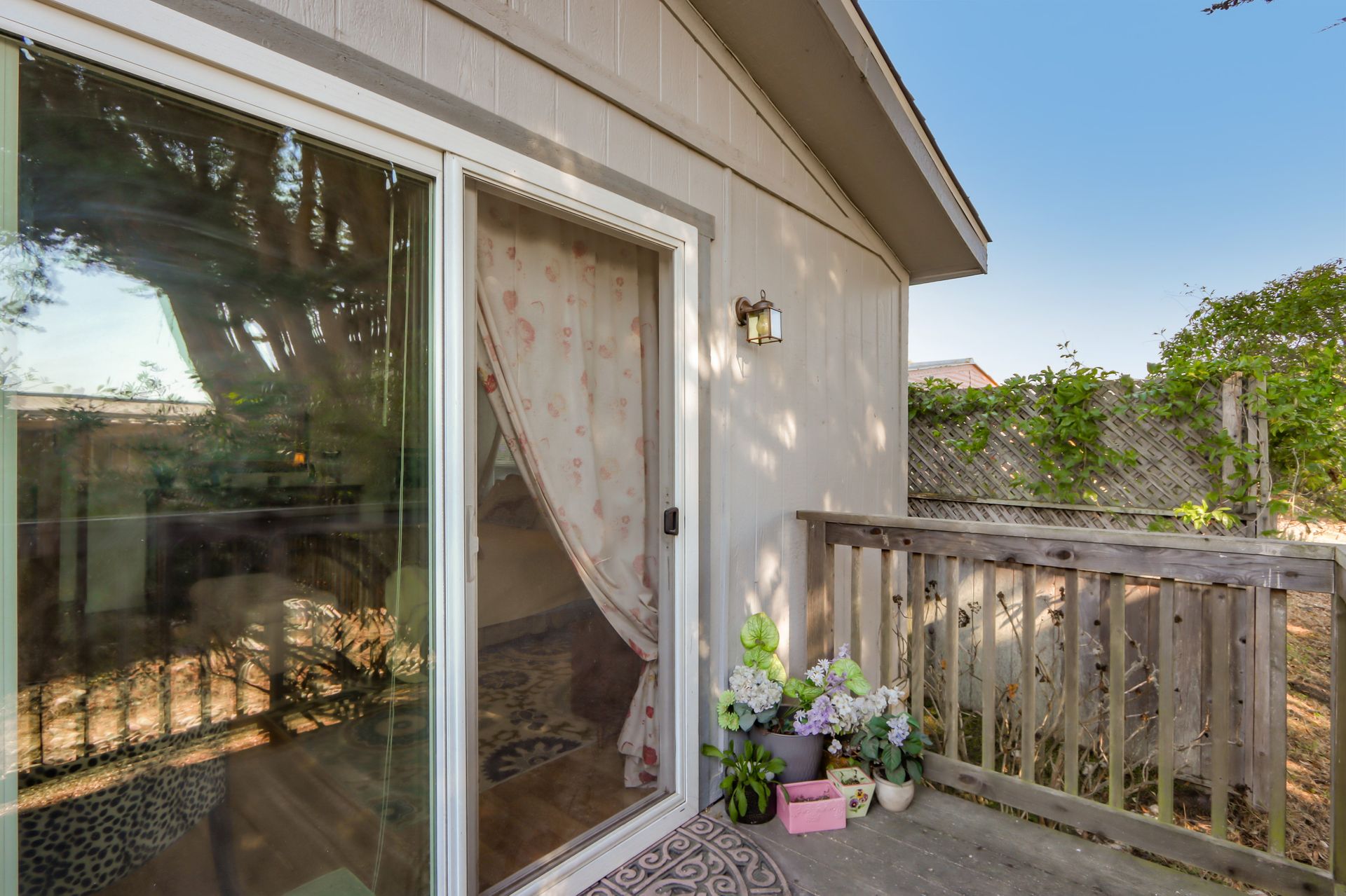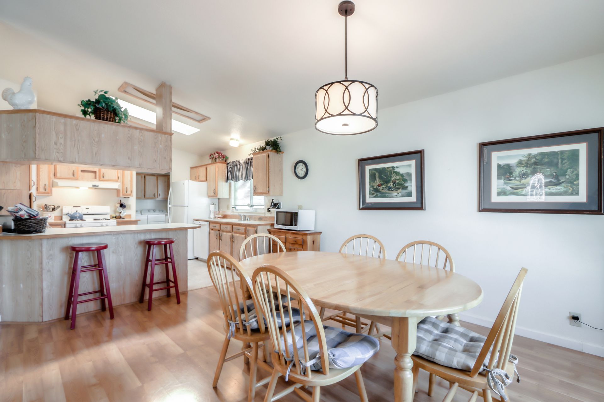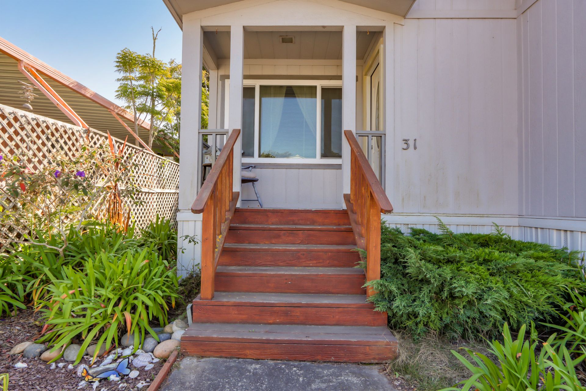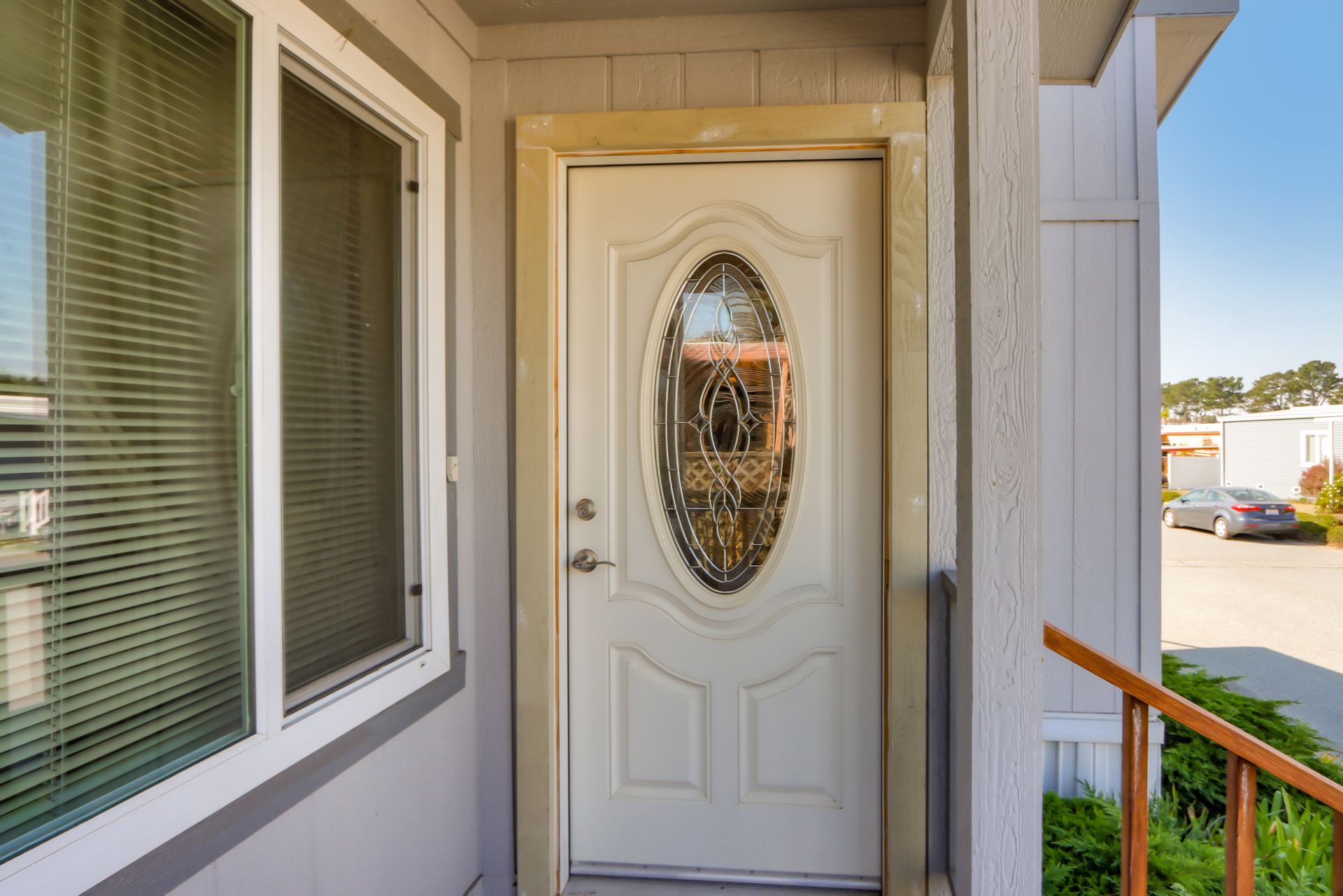 This spacious home with an approximately 28 foot width, has vaulted ceilings, offers finished walls, wood-like flooring and double-pane windows. Living and dining rooms are open, made for gathering. Kitchen has a breakfast bar and features a skylight. The laundry room is next to the kitchen with side entry door from the carport for ease in bringing in groceries. There are three bedrooms and two bathrooms. Hall bathroom has a tub with shower. The master suite has a large walk-in closet. The master bath has both a tub and stall shower, with linen closet. A sliding door from the master bedroom opens to a deck and private backyard with bushes, trees and stone culvert adding separation. Two-car covered carport provides tandem parking. Located in the much sought after 55+ Community of Canada Cove, near beaches, golf, trail, south downtown Half Moon Bay. Home is on leased land, Park approval required for purchase. Feel the sea breeze and enjoy living by the sea!!