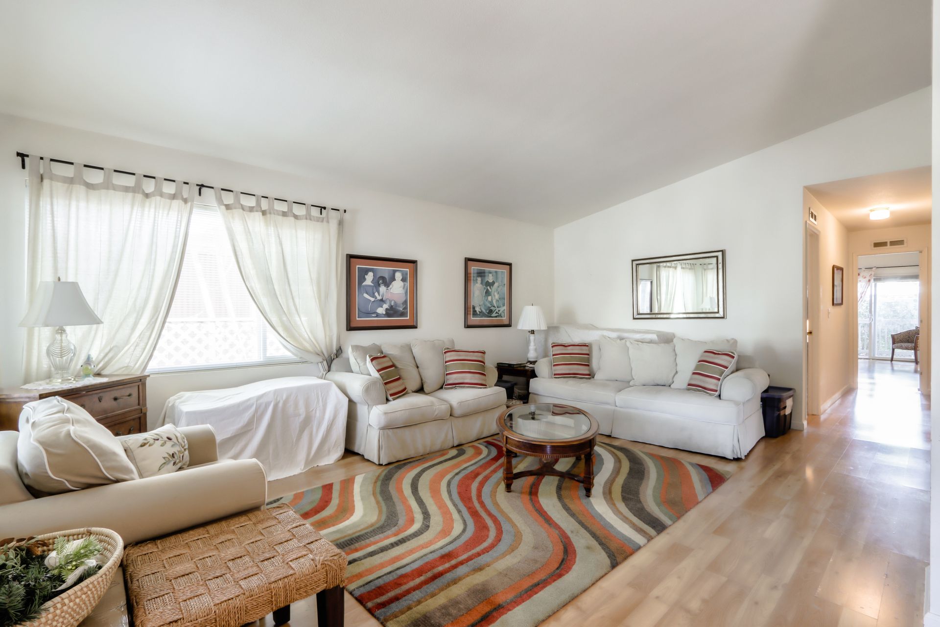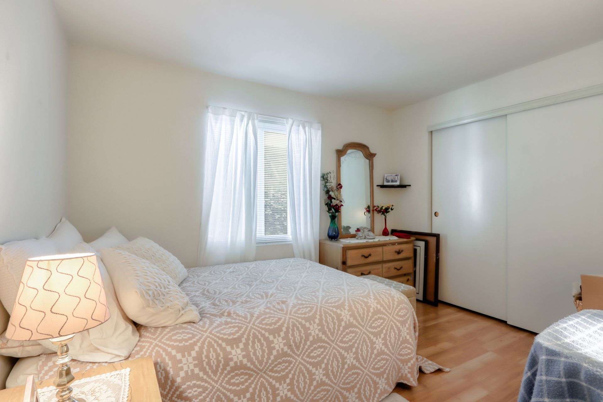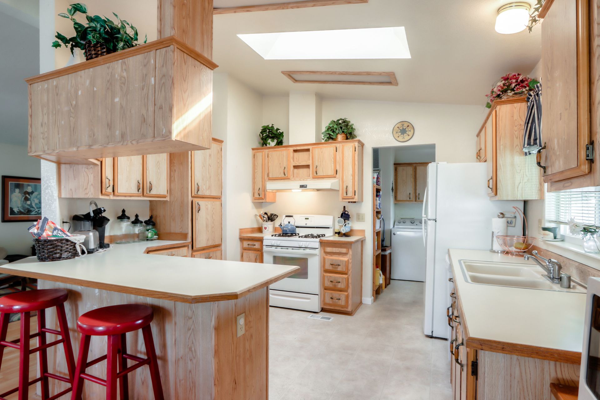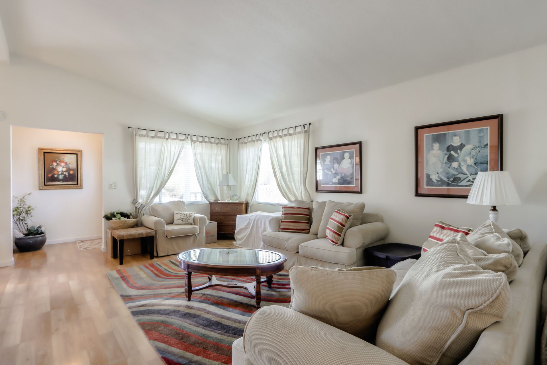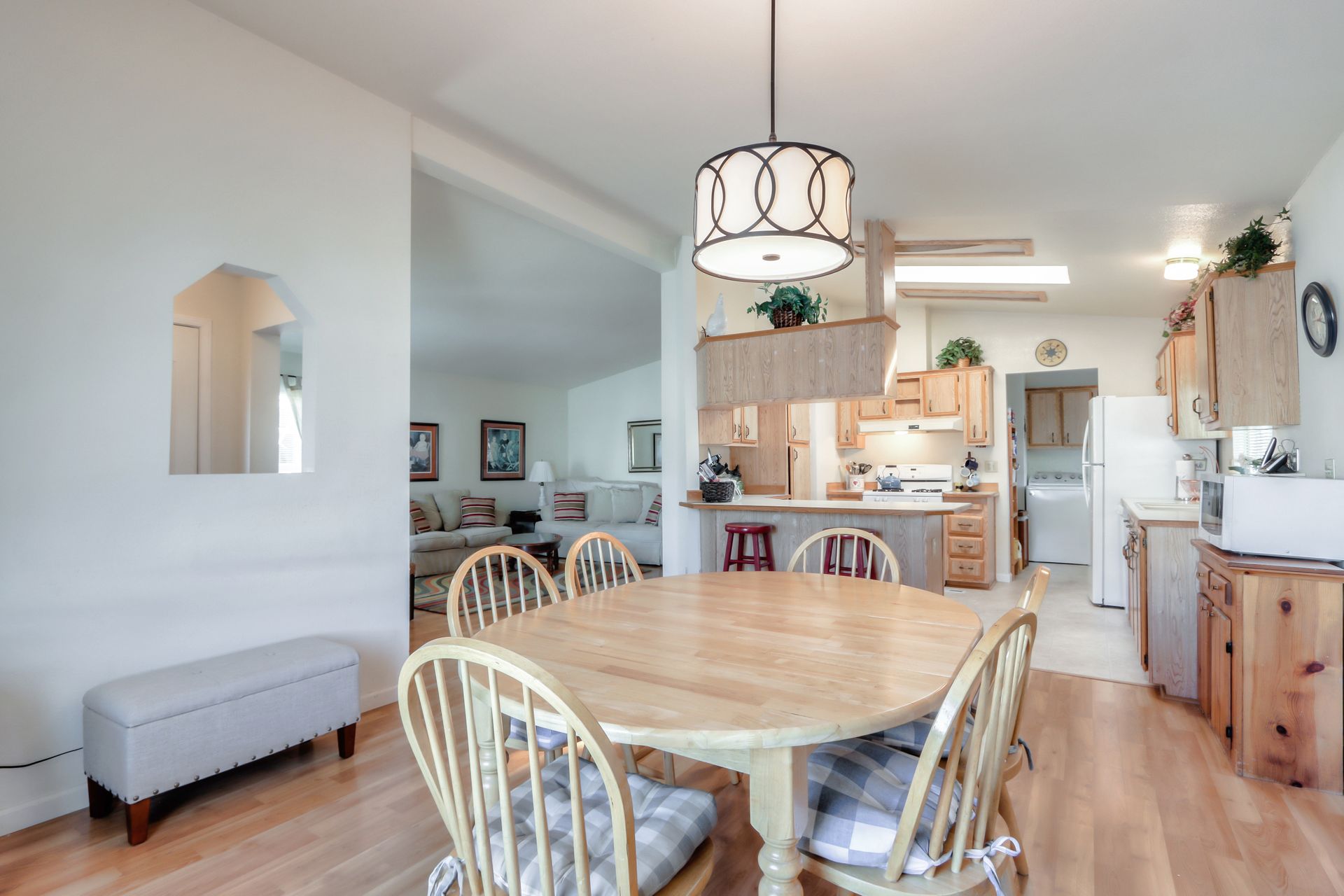 This spacious home with an approximately 28 foot width, has vaulted ceilings, offers finished walls, wood-like flooring and double-pane windows. Living and dining rooms are open, made for gathering. Kitchen has a breakfast bar and features a skylight. The laundry room is next to the kitchen with side entry door from the carport for ease in bringing in groceries. There are three bedrooms and two bathrooms. Hall bathroom has a tub with shower. The master suite has a large walk-in closet. The master bath has both a tub and stall shower, with linen closet. A sliding door from the master bedroom opens to a deck and private backyard with bushes, trees and stone culvert adding separation. Two-car covered carport provides tandem parking. Located in the much sought after 55+ Community of Canada Cove, near beaches, golf, trail, south downtown Half Moon Bay. Home is on leased land, Park approval required for purchase. Feel the sea breeze and enjoy living by the sea!!