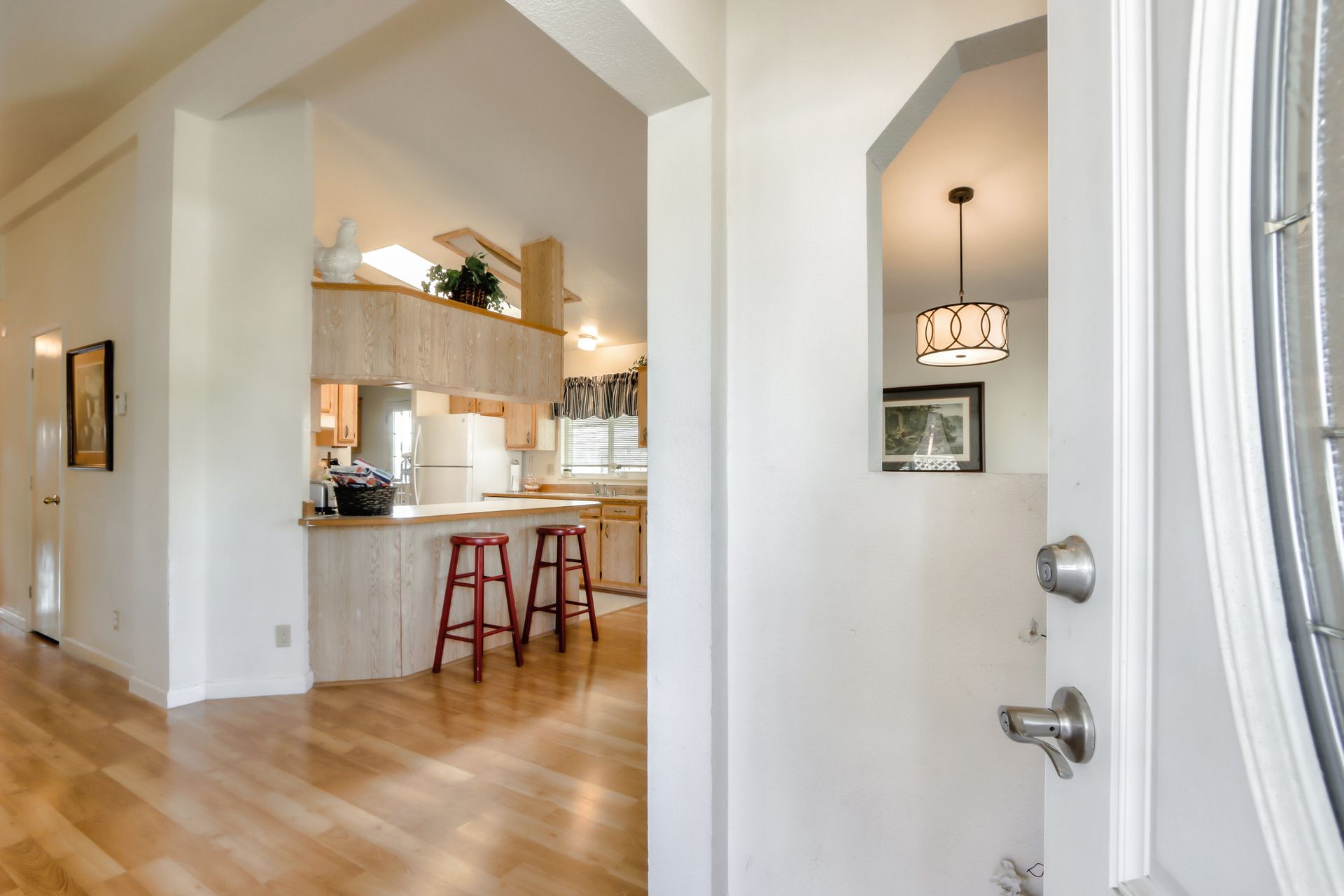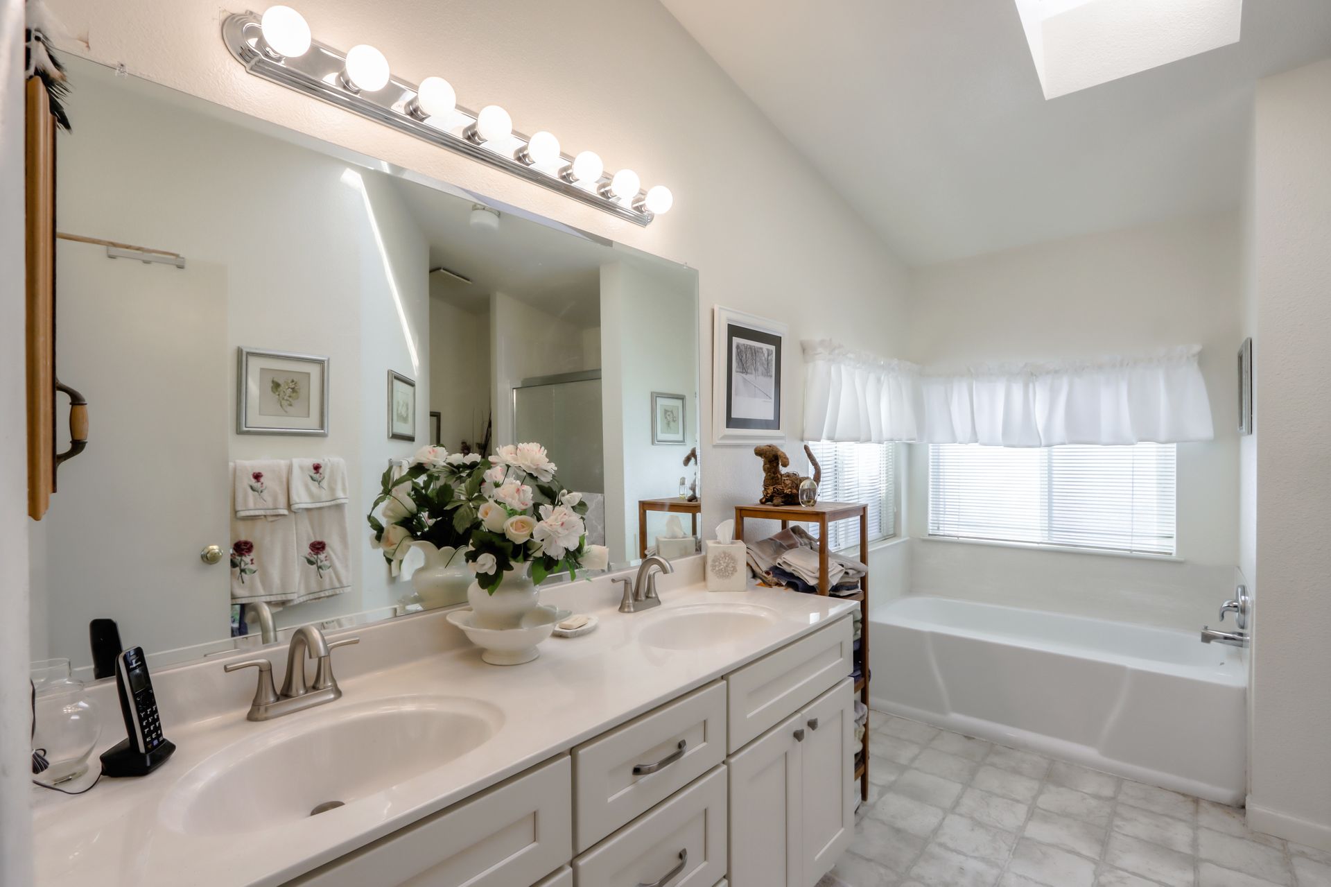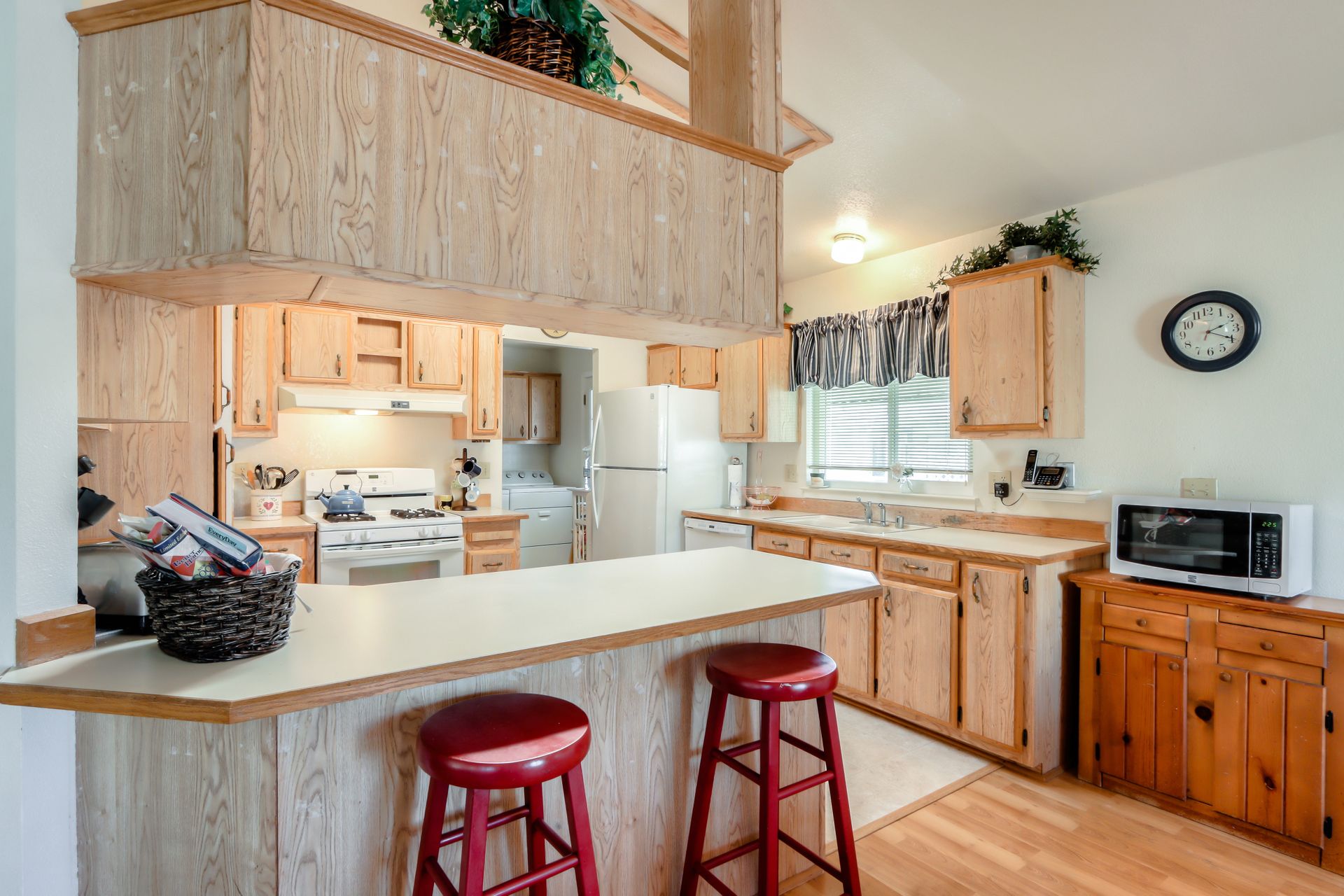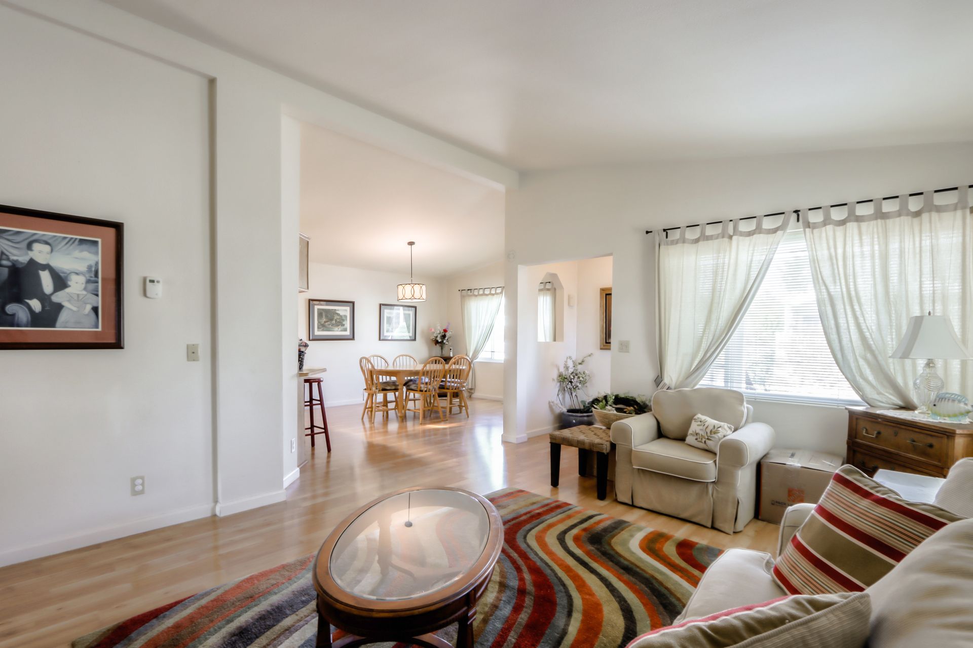 This spacious home with an approximately 28 foot width, has vaulted ceilings, offers finished walls, wood-like flooring and double-pane windows. Living and dining rooms are open, made for gathering. Kitchen has a breakfast bar and features a skylight. The laundry room is next to the kitchen with side entry door from the carport for ease in bringing in groceries. There are three bedrooms and two bathrooms. Hall bathroom has a tub with shower. The master suite has a large walk-in closet. The master bath has both a tub and stall shower, with linen closet. A sliding door from the master bedroom opens to a deck and private backyard with bushes, trees and stone culvert adding separation. Two-car covered carport provides tandem parking. Located in the much sought after 55+ Community of Canada Cove, near beaches, golf, trail, south downtown Half Moon Bay. Home is on leased land, Park approval required for purchase. Feel the sea breeze and enjoy living by the sea!!