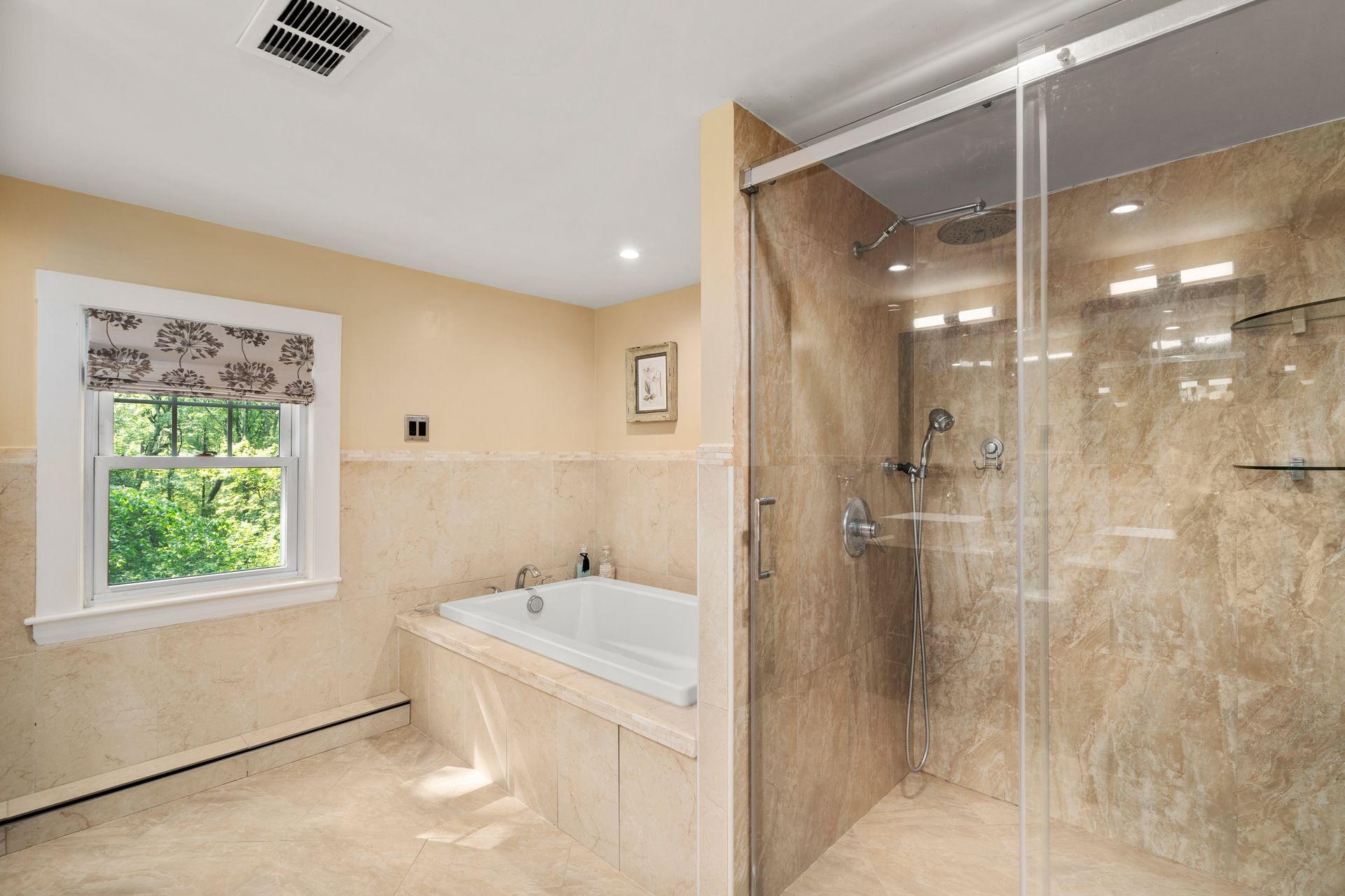 Stunning move-in ready home in a desirable neighborhood of Natick!! This well-thought home features 4 bedrooms, 2.5 bathrooms and 2843 sqft of living space. The first floor features a large eat-in kitchen with Italian marble tiles that opens on a formal dining room. Relax in the living room by the fireplace and enjoy the view from the bay window. The kitchen comes equipped with all appliances, generous cabinets, and an extra custom pantry. The first floor is complete with a cozy family room, a full bath with a vintage bathtub and one bedroom. The flow runs so naturally in this home that also boasts 3 generous bedrooms on the upper level and another full bathroom with a double vanity, a shower, and a jacuzzi! Entertain in style on the huge porch or on the paved patio around the custom firepit. When you're not having friends over, relax in privacy with a stunning view of the woods. This home also comes with a full finished basement, a laundry room, a half bath, a custom wine rack, and so much more. Located on a quiet street, yet minutes from the I-90 and I-95, this home is zoned for Ben-Hem elementary school, Wilson middle school, and Natick high-school. Playhouse and generator can stay. Inquire about it.