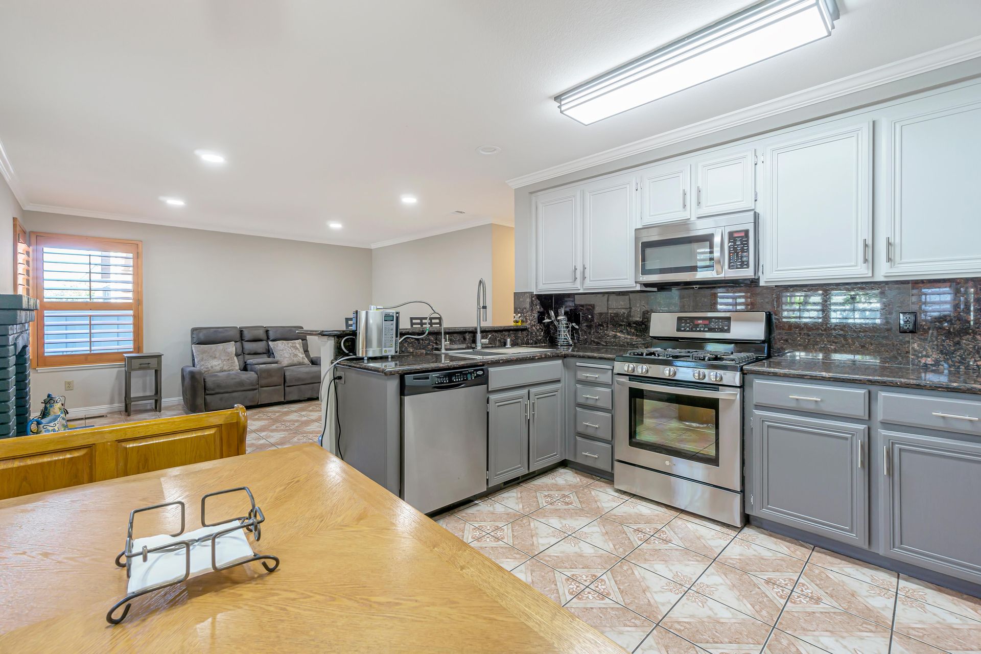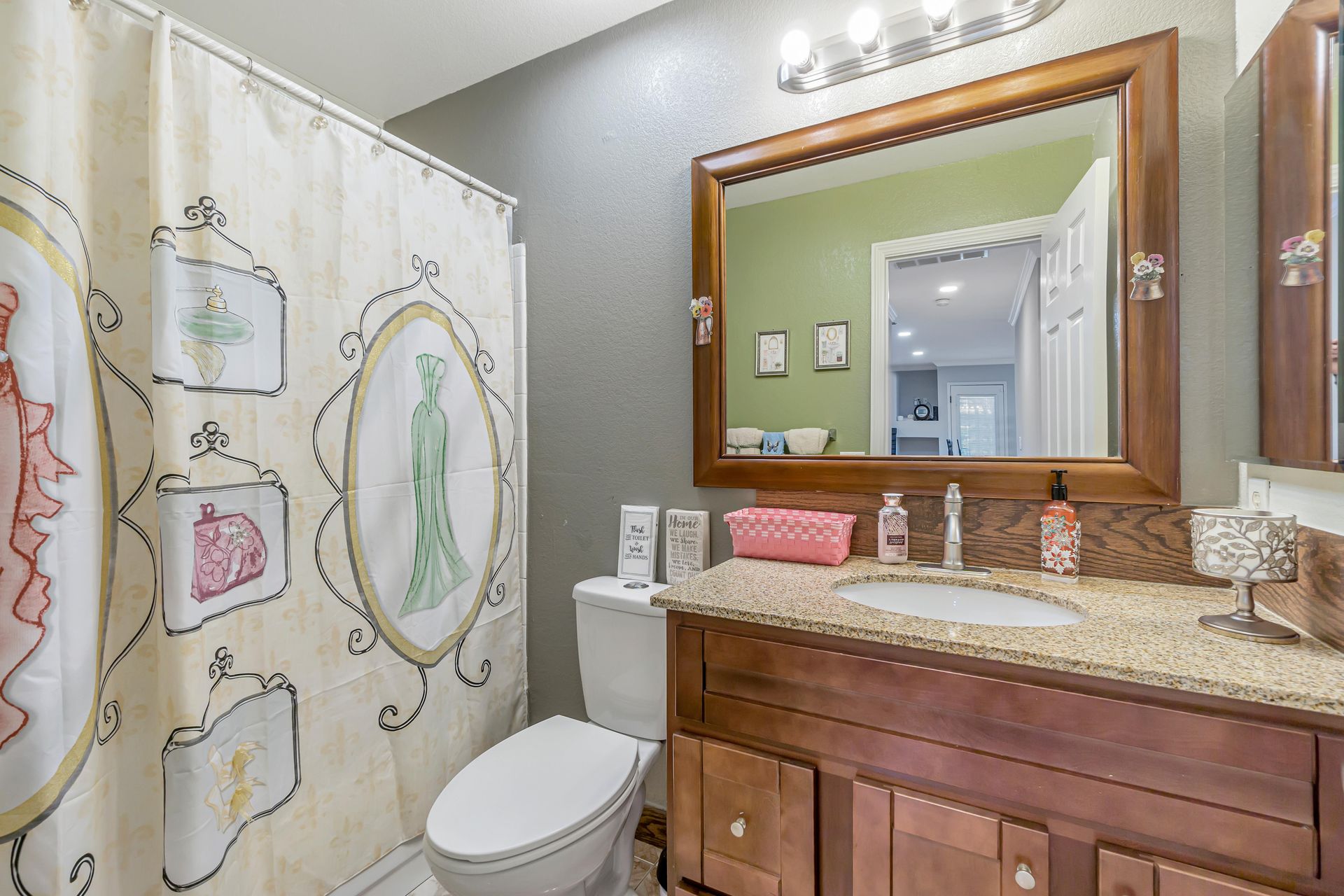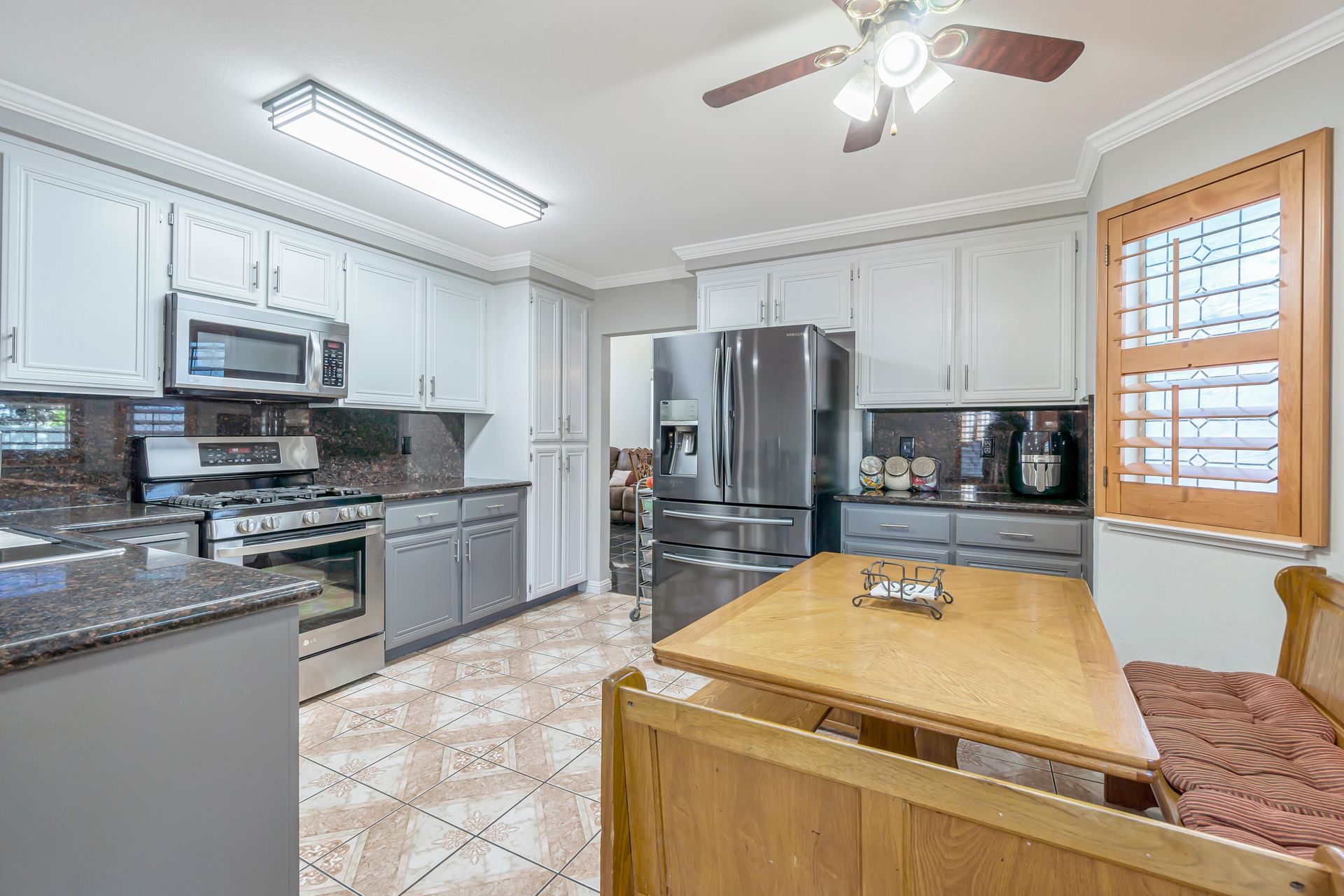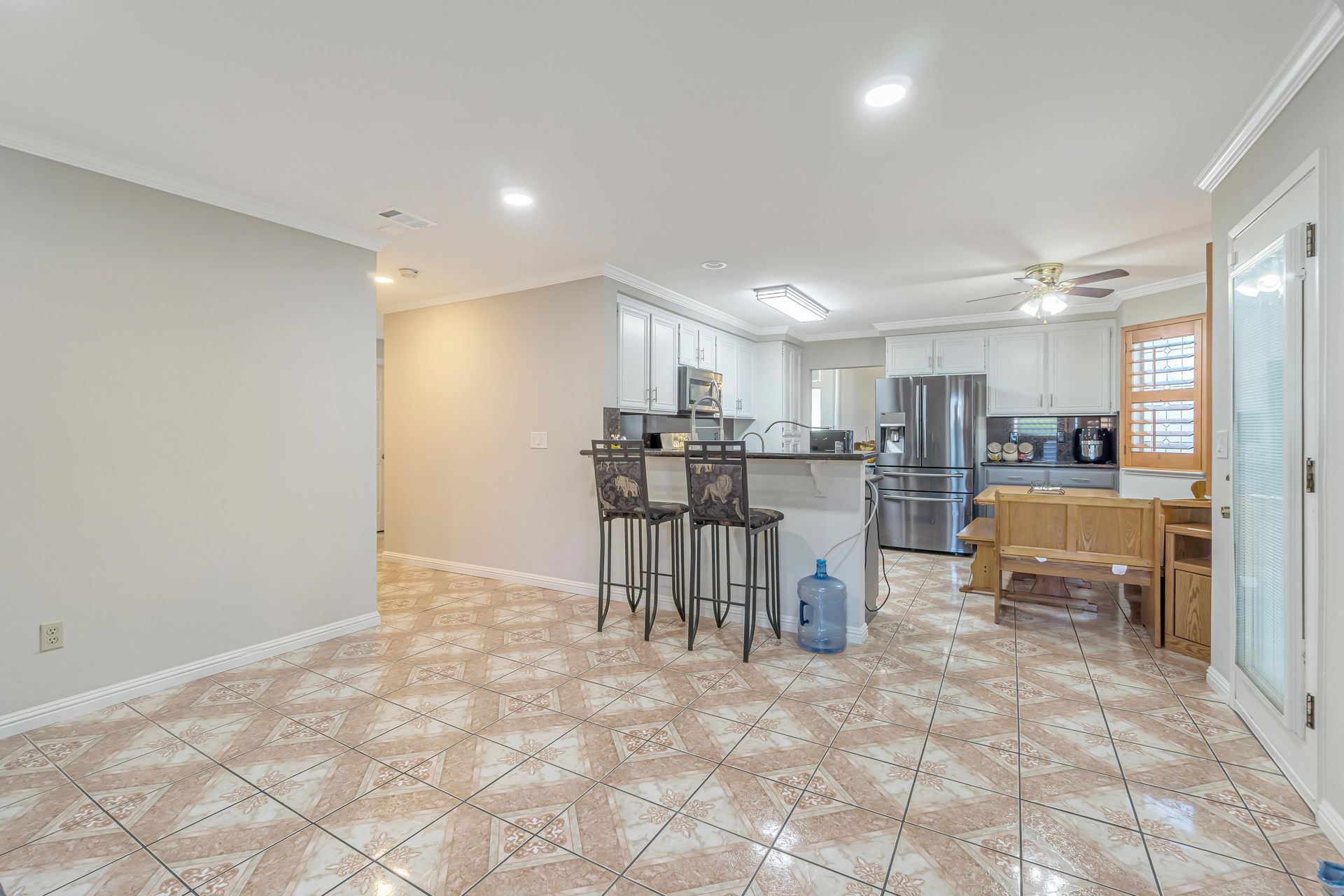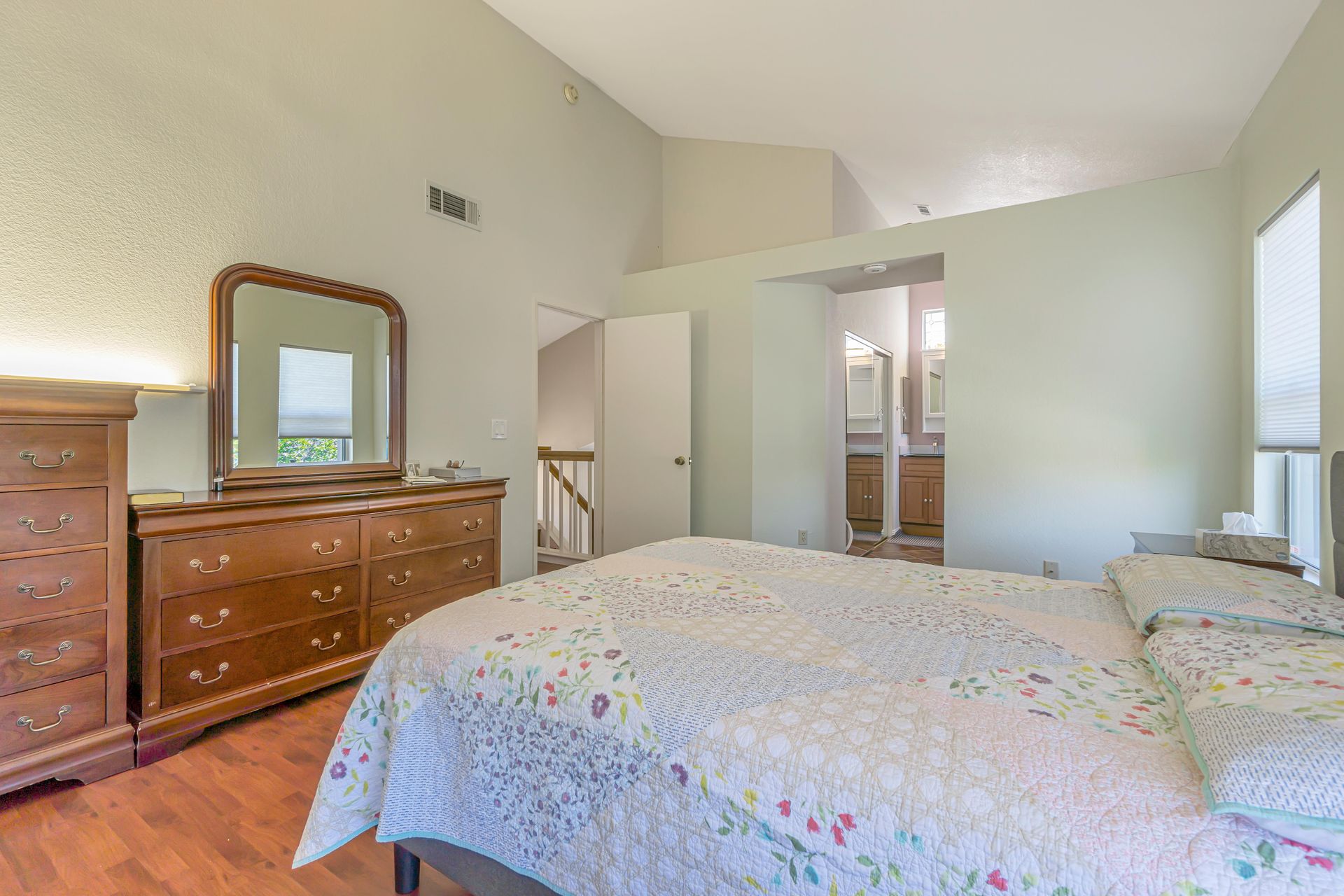 Remodeled, the kitchen features a breakfast bar and breakfast nook, because what party does not start in the kitchen. Additionally, the freshly painted cabinets make this kitchen shine! There is a downstairs bedroom and full bathroom and three bedrooms upstairs. Two bedrooms share a dual entrance bath and the primary bathroom includes a soaking tub, shower and walk-in closet. All closet doors throughout the home are upgraded to mirror doors, adding to the light in the home. Downstairs is a tiled in kitchen, family room and living room. The downstairs bedroom has engineered wood flooring while the stairs and upstairs bedrooms all have beautiful laminate floors. This home is move-in ready.