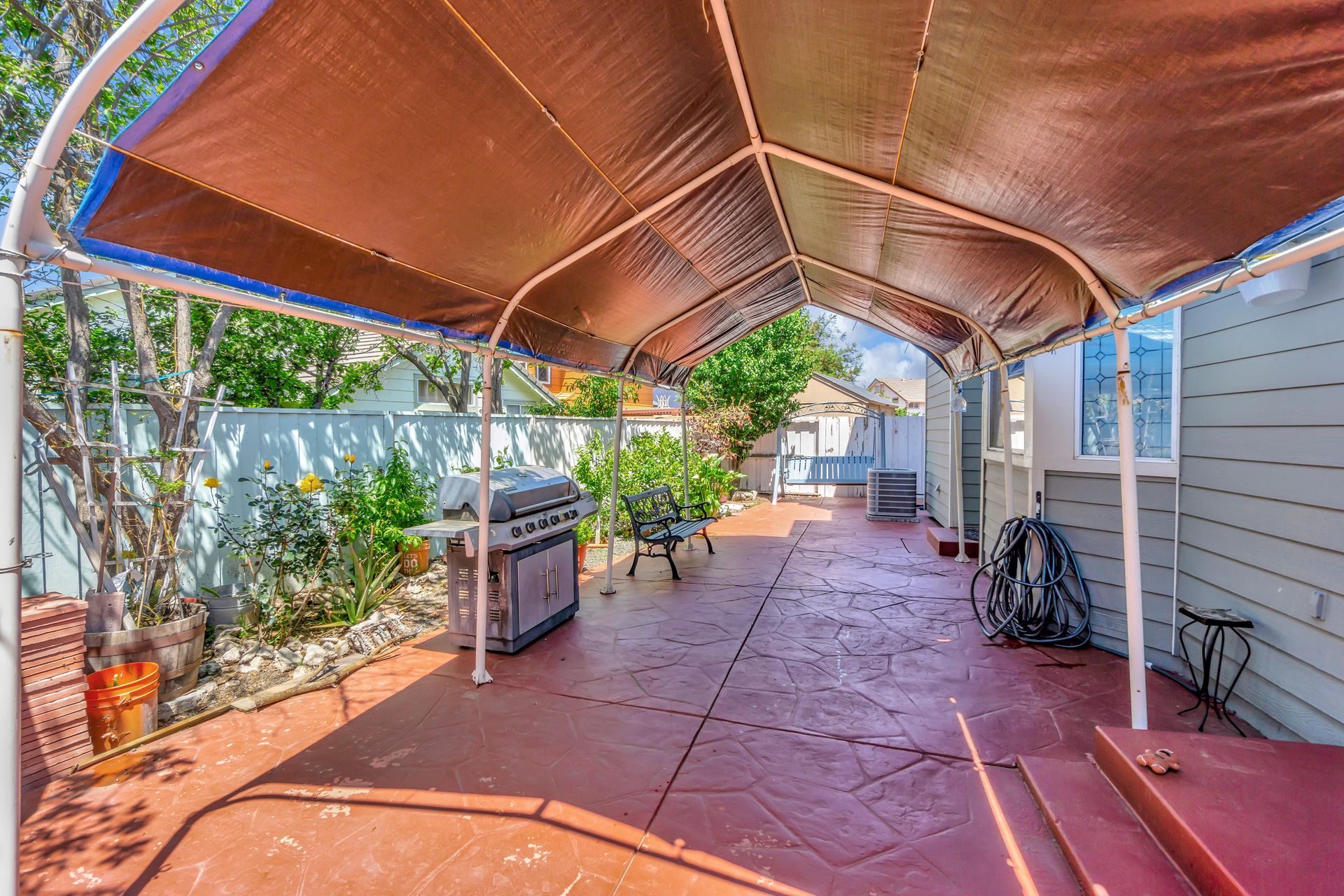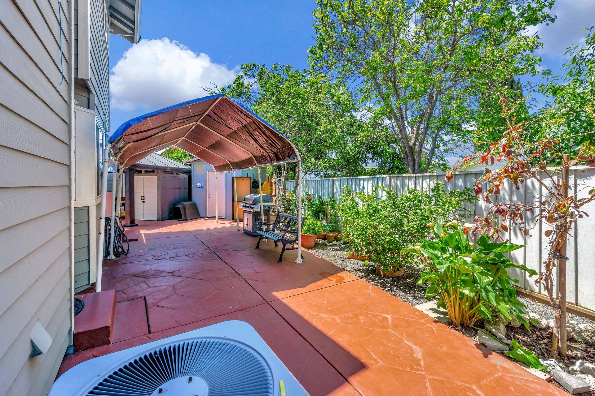 The approximately 6,200 square foot lot accommodates the two extra buildings and over 18 fruit trees and there is still room for your parties. The back yard will become your "Fun Center" and good food source. You will find lemon, plum, nectarine, guava, orange, persimmon, avocado, fig, loquat, pomegranate and peach trees as well as a passion fruit vine. The private back yard is designed for entertaining complete with a pavilion style patio cover giving you beautiful shade with an additional attached metal frame sunshade with a concrete patio/pathways for easy maintenance of your home.