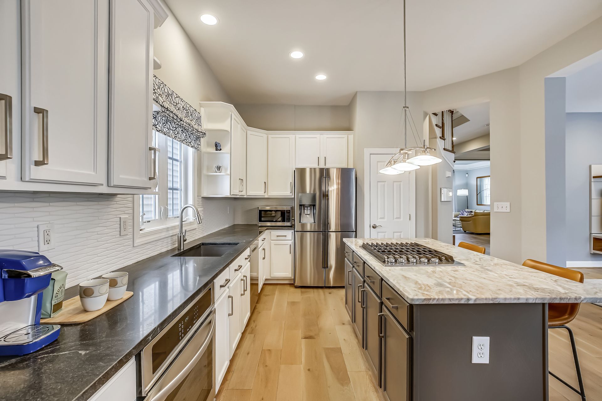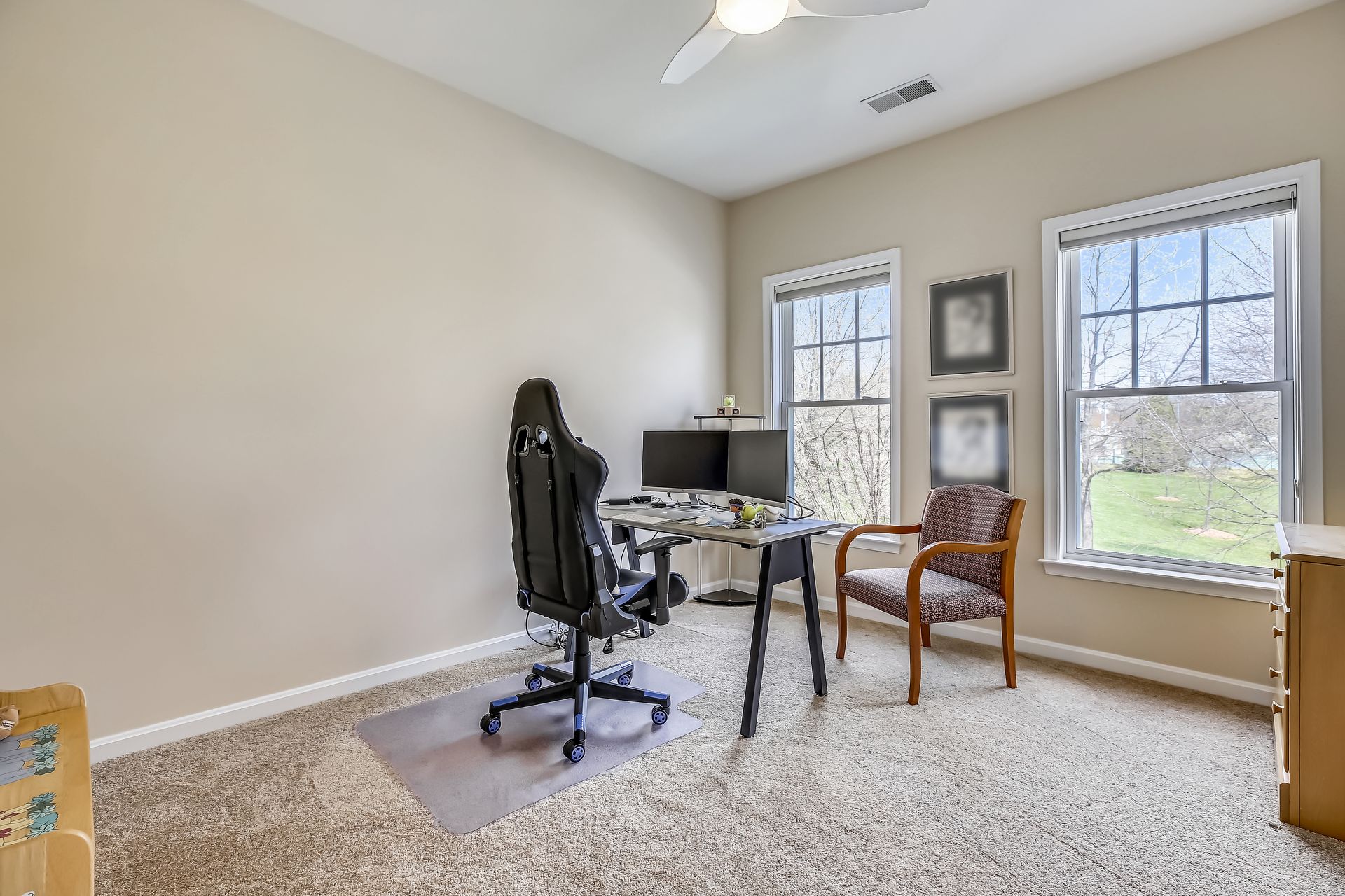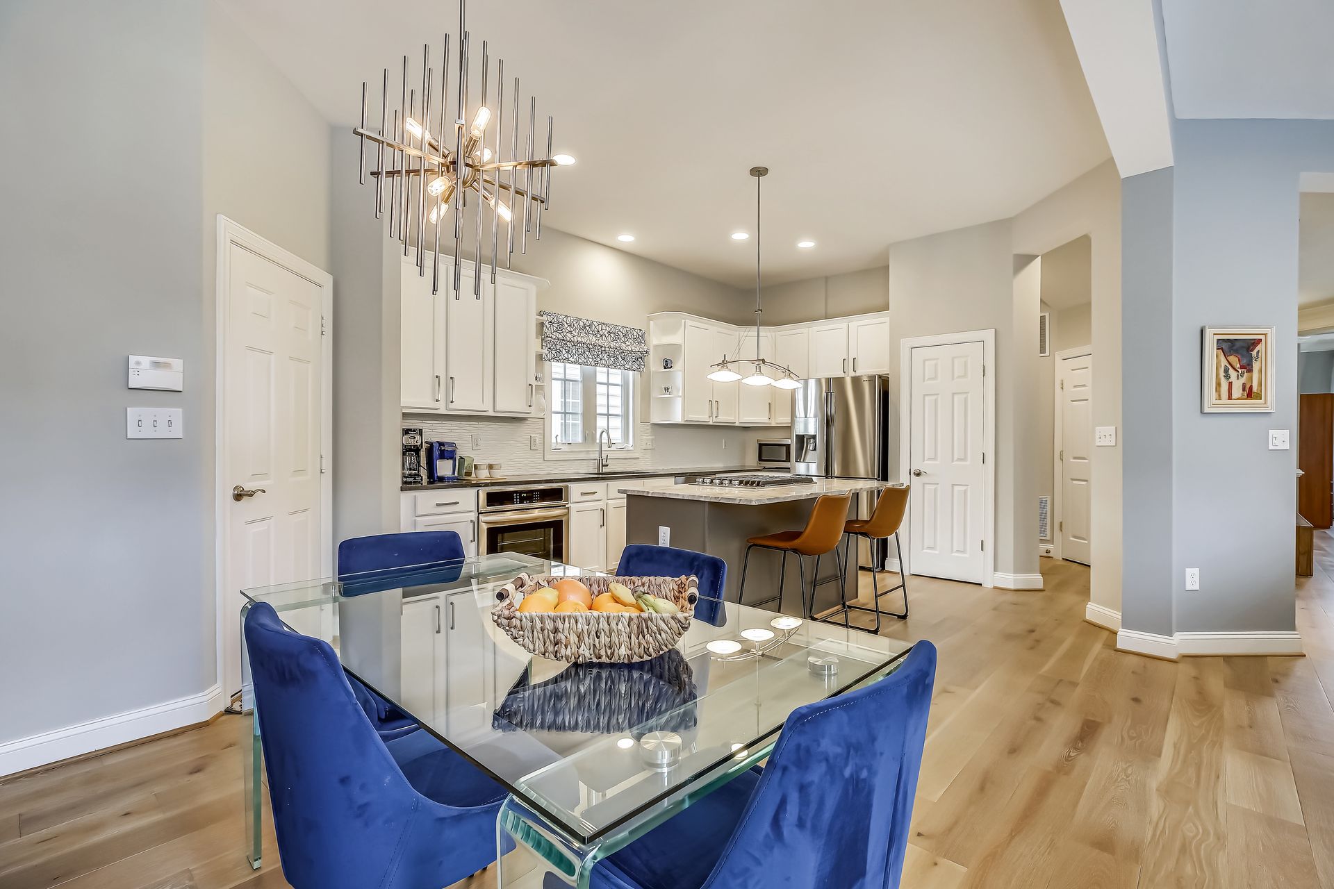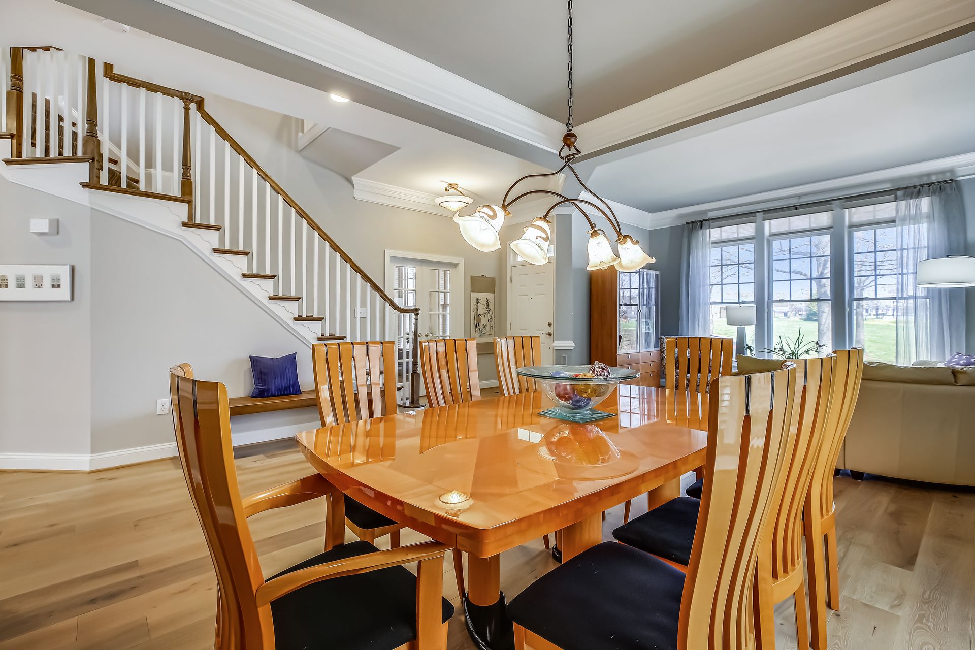 This gorgeous 4 bedroom, 3.5 bath home by Michael Harris is designed with a timeless style in the sought after King Farm neighborhood. This home offers everything you need for comfortable living and entertaining throughout the year. The charming front porch greets you and invites you to sit down and relax, with serene views of the park. The main level foyer entry features vaulted ceilings, crown molding and recessed lighting. The hardwood floors and abundance of natural light contribute to an open floor plan that effortlessly flows to the spacious family room, dining room, den and the living room with gas fireplace. You will also find an office on the main level with built-ins. The eat-in kitchen features spacious granite counters and center island with cook-top gas cooking, SS appliances, tile backsplash, plenty of cabinet space, along with a powder room on the main level. From the kitchen, step out onto your private, fully fenced in deck and yard. As you head upstairs you’ll find 4 spacious bedrooms with 2 bathrooms. The owner’s suite features a large sitting area, custom walk-in and reach-in closets, a large luxurious master bath with double vanity granite counters, soaking tub and separate shower. The additional 3 bedrooms upstairs are filled with natural lighting and plenty of custom closet space. The laundry area on the upper level makes everyday living a breeze. The finished basement features a large game room/entertaining space, recessed lighting, and a separate room ideal for guests, an office or a gym. The basement has a full bath and plenty of storage. Meticulously maintained by original owners. Recently updated with new roof, water heater, A/C, HVAC system, appliances, humidifier, hardwood floors, carpet, and window treatments.