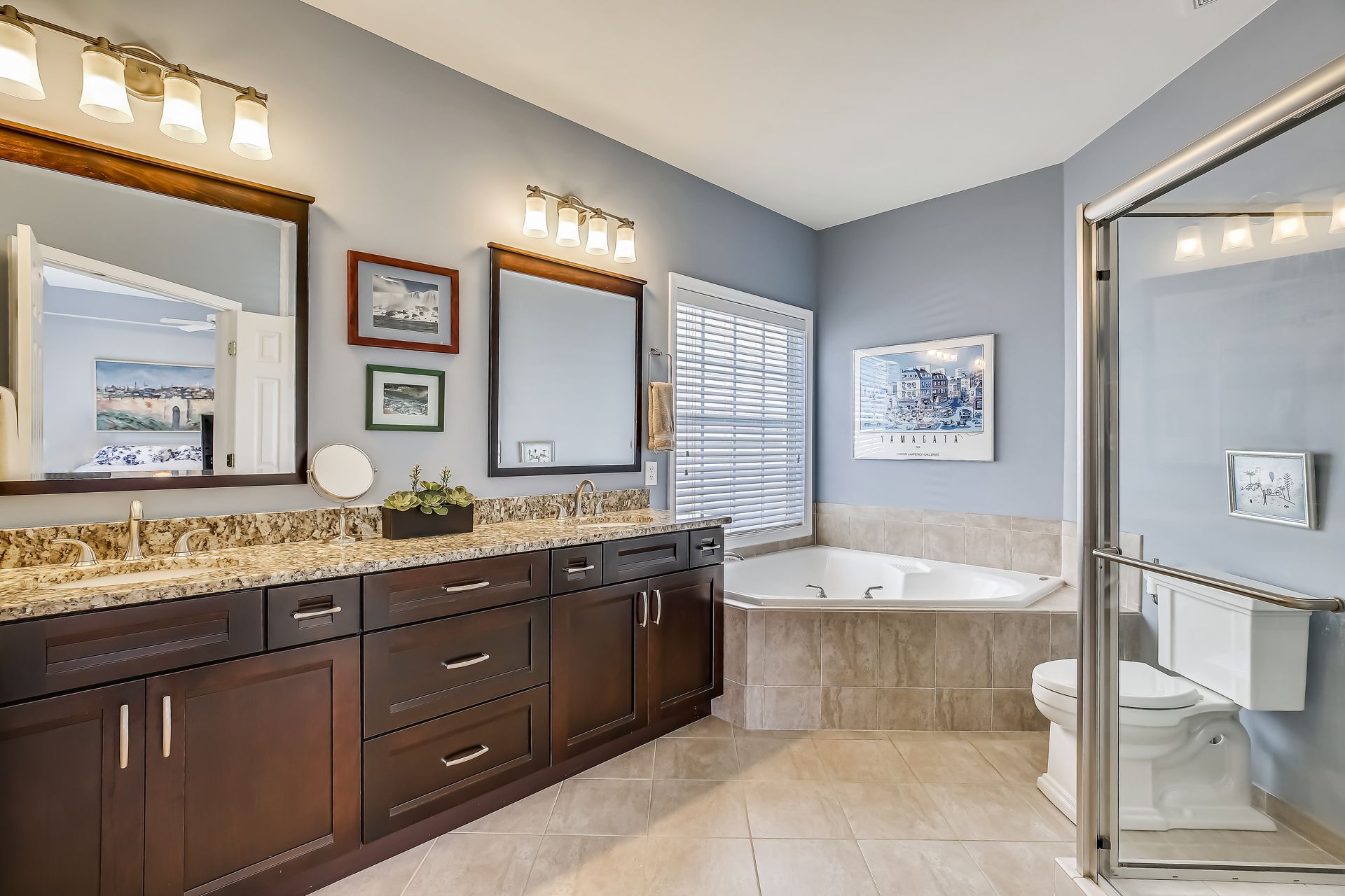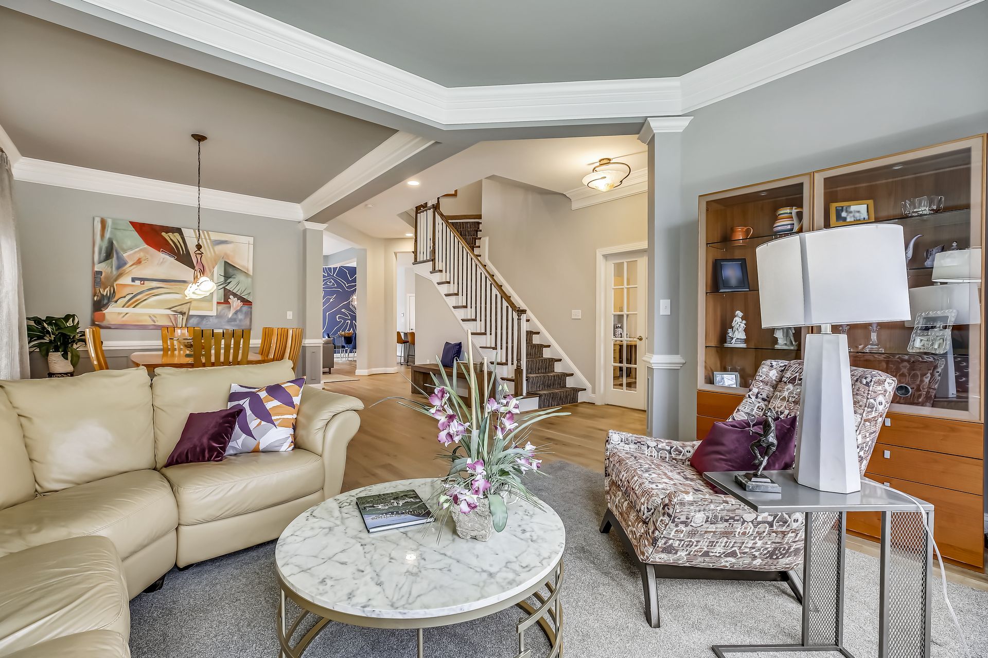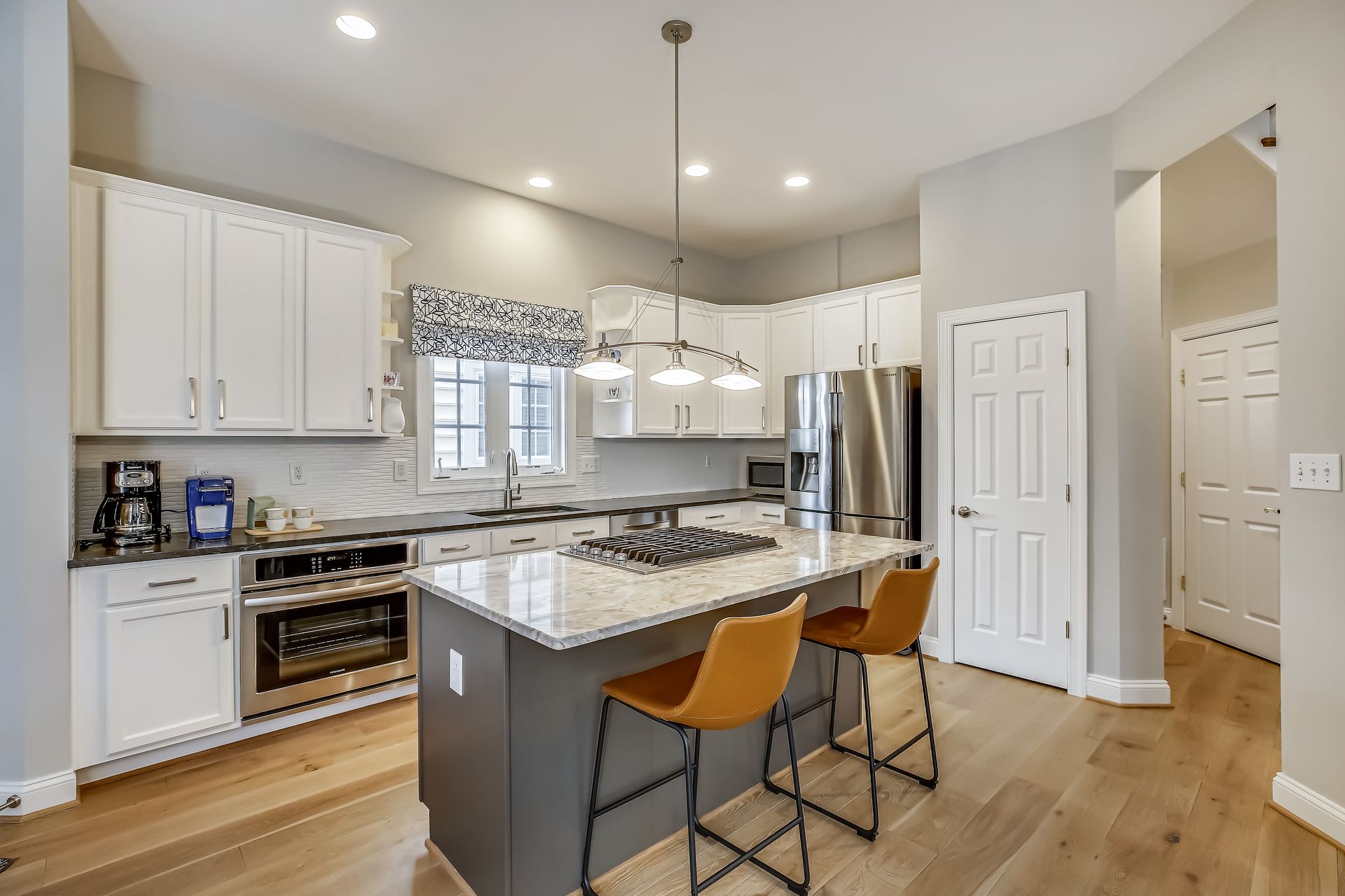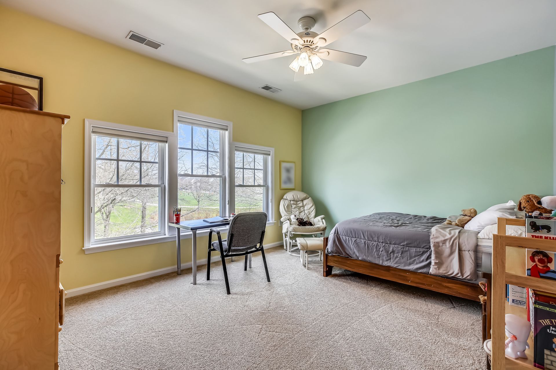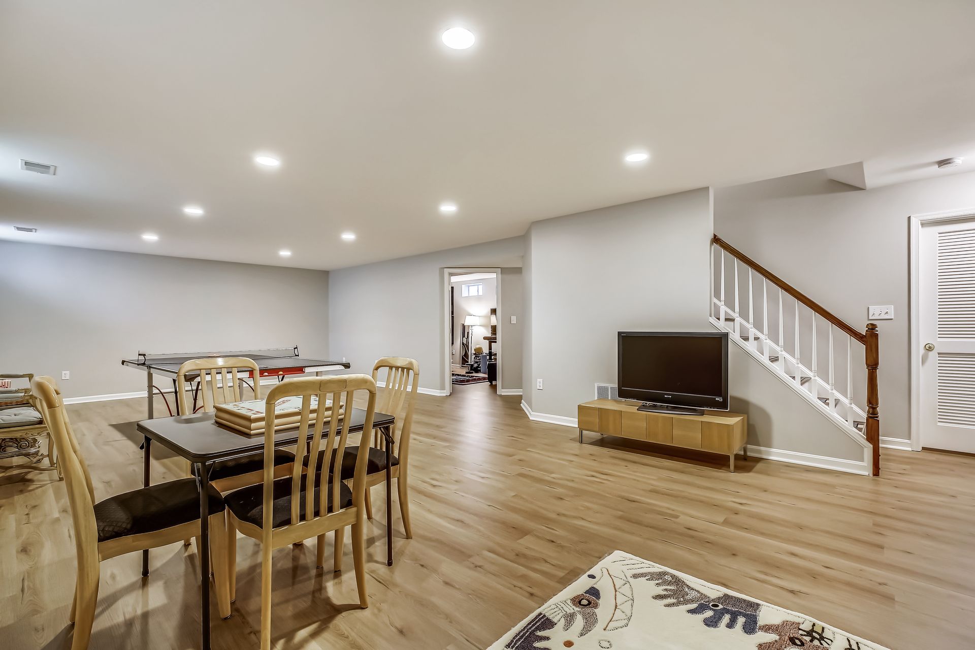 This gorgeous 4 bedroom, 3.5 bath home by Michael Harris is designed with a timeless style in the sought after King Farm neighborhood. This home offers everything you need for comfortable living and entertaining throughout the year. The charming front porch greets you and invites you to sit down and relax, with serene views of the park. The main level foyer entry features vaulted ceilings, crown molding and recessed lighting. The hardwood floors and abundance of natural light contribute to an open floor plan that effortlessly flows to the spacious family room, dining room, den and the living room with gas fireplace. You will also find an office on the main level with built-ins. The eat-in kitchen features spacious granite counters and center island with cook-top gas cooking, SS appliances, tile backsplash, plenty of cabinet space, along with a powder room on the main level. From the kitchen, step out onto your private, fully fenced in deck and yard. As you head upstairs you’ll find 4 spacious bedrooms with 2 bathrooms. The owner’s suite features a large sitting area, custom walk-in and reach-in closets, a large luxurious master bath with double vanity granite counters, soaking tub and separate shower. The additional 3 bedrooms upstairs are filled with natural lighting and plenty of custom closet space. The laundry area on the upper level makes everyday living a breeze. The finished basement features a large game room/entertaining space, recessed lighting, and a separate room ideal for guests, an office or a gym. The basement has a full bath and plenty of storage. Meticulously maintained by original owners. Recently updated with new roof, water heater, A/C, HVAC system, appliances, humidifier, hardwood floors, carpet, and window treatments.