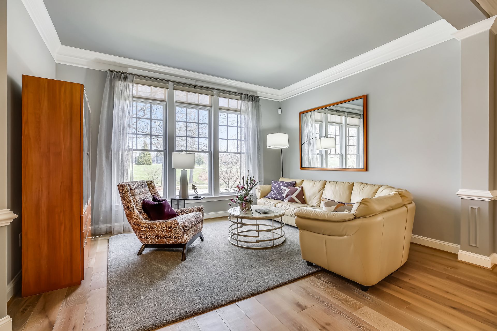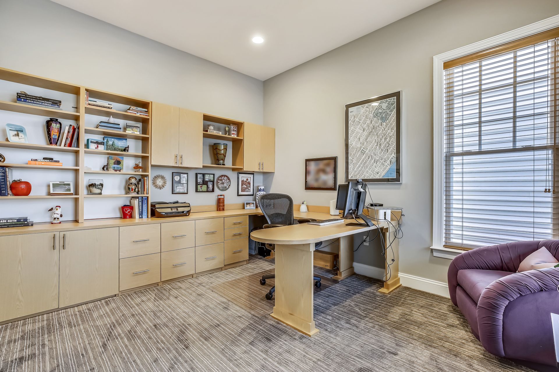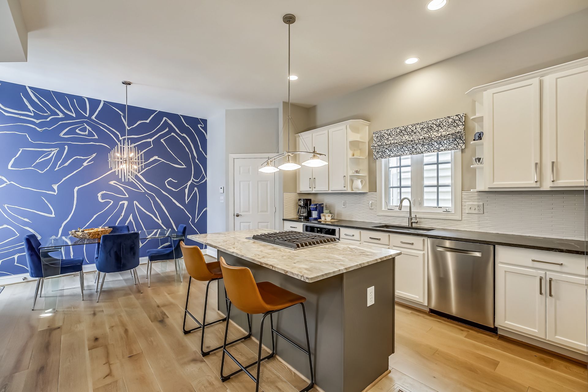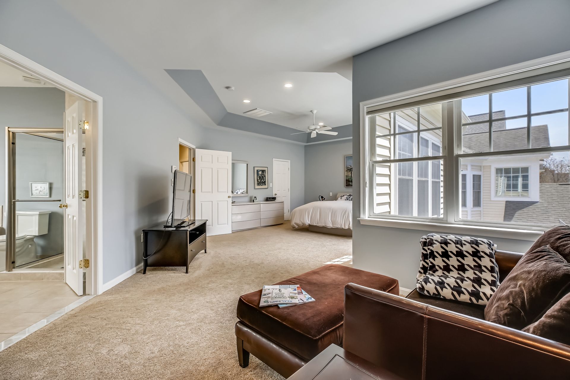 This gorgeous 4 bedroom, 3.5 bath home by Michael Harris is designed with a timeless style in the sought after King Farm neighborhood. This home offers everything you need for comfortable living and entertaining throughout the year. The charming front porch greets you and invites you to sit down and relax, with serene views of the park. The main level foyer entry features vaulted ceilings, crown molding and recessed lighting. The hardwood floors and abundance of natural light contribute to an open floor plan that effortlessly flows to the spacious family room, dining room, den and the living room with gas fireplace. You will also find an office on the main level with built-ins. The eat-in kitchen features spacious granite counters and center island with cook-top gas cooking, SS appliances, tile backsplash, plenty of cabinet space, along with a powder room on the main level. From the kitchen, step out onto your private, fully fenced in deck and yard. As you head upstairs you’ll find 4 spacious bedrooms with 2 bathrooms. The owner’s suite features a large sitting area, custom walk-in and reach-in closets, a large luxurious master bath with double vanity granite counters, soaking tub and separate shower. The additional 3 bedrooms upstairs are filled with natural lighting and plenty of custom closet space. The laundry area on the upper level makes everyday living a breeze. The finished basement features a large game room/entertaining space, recessed lighting, and a separate room ideal for guests, an office or a gym. The basement has a full bath and plenty of storage. Meticulously maintained by original owners. Recently updated with new roof, water heater, A/C, HVAC system, appliances, humidifier, hardwood floors, carpet, and window treatments.