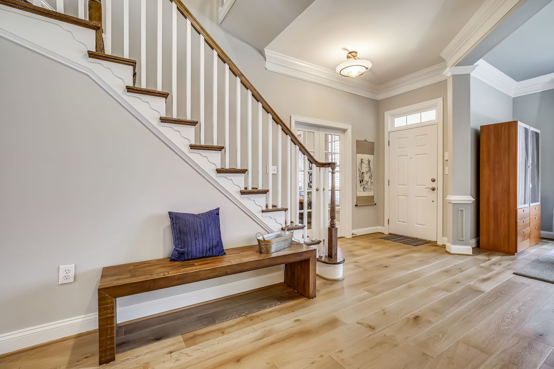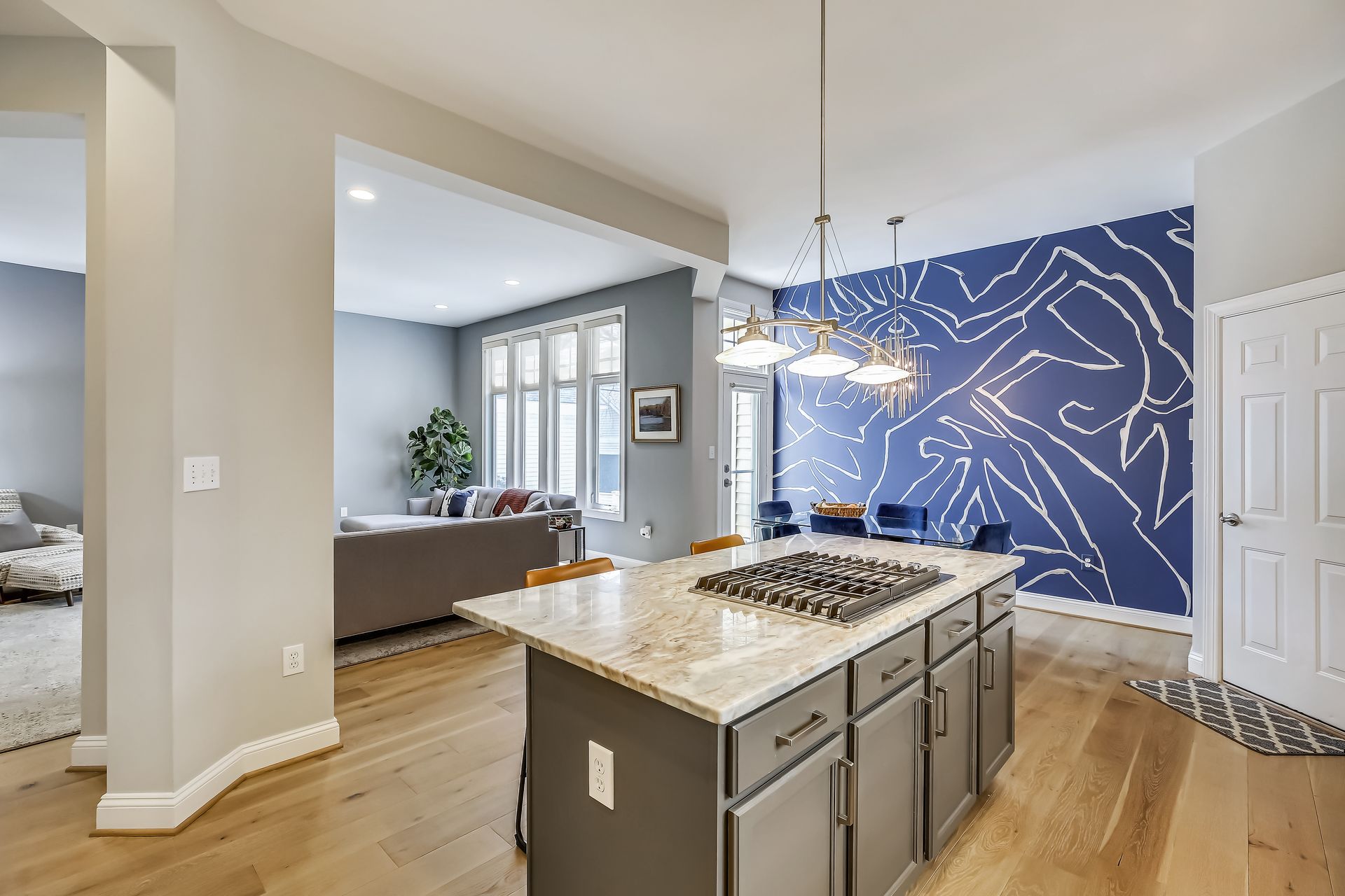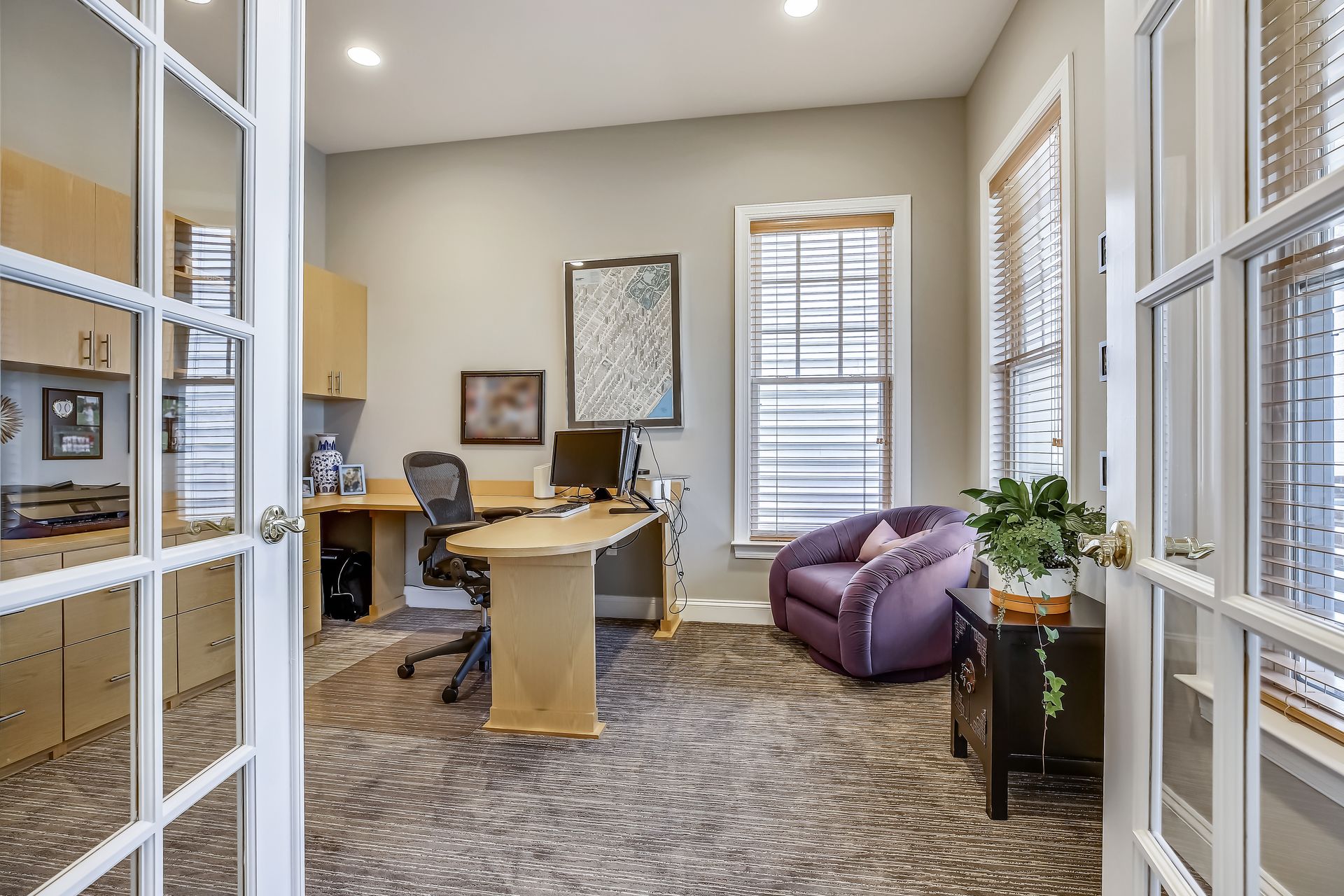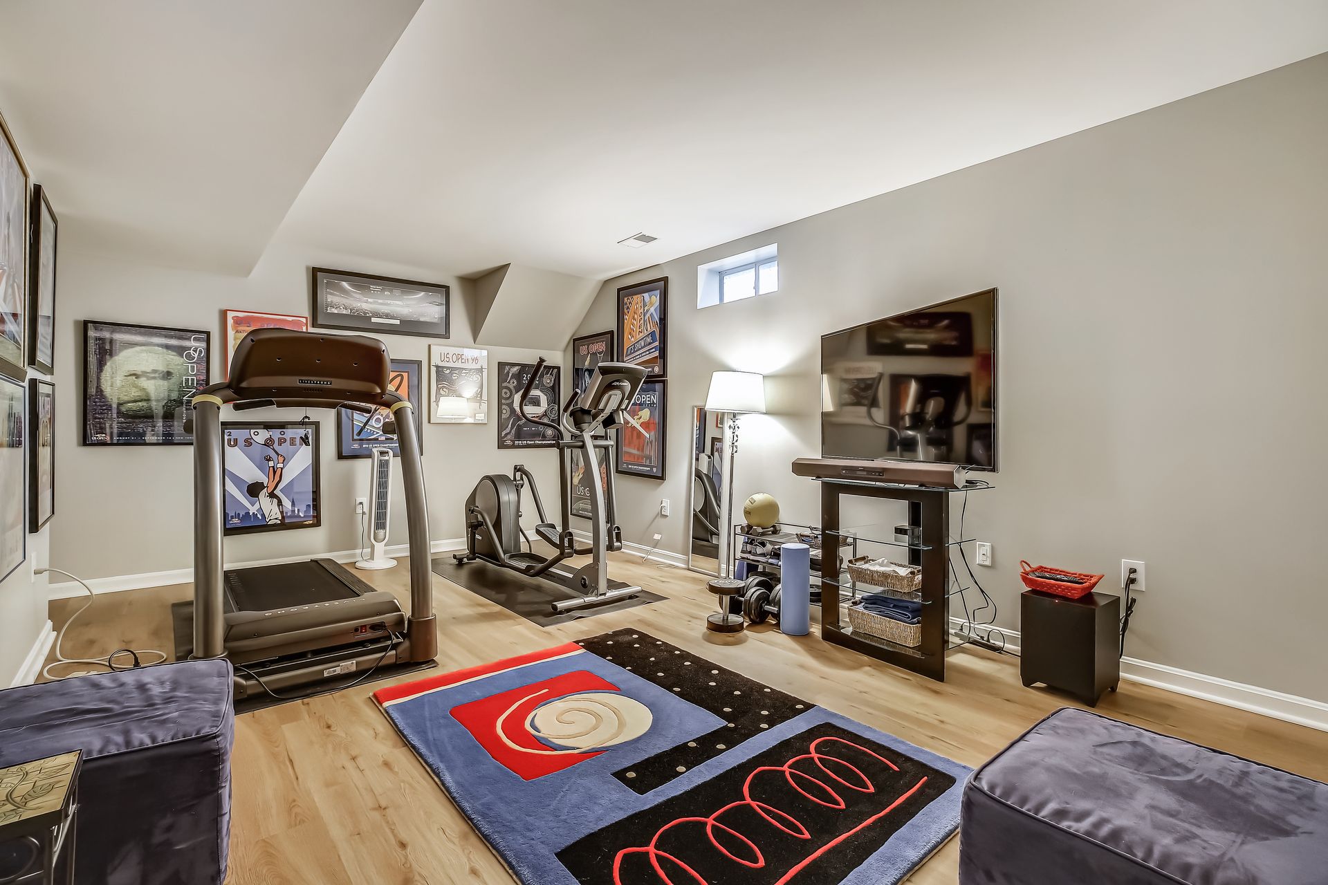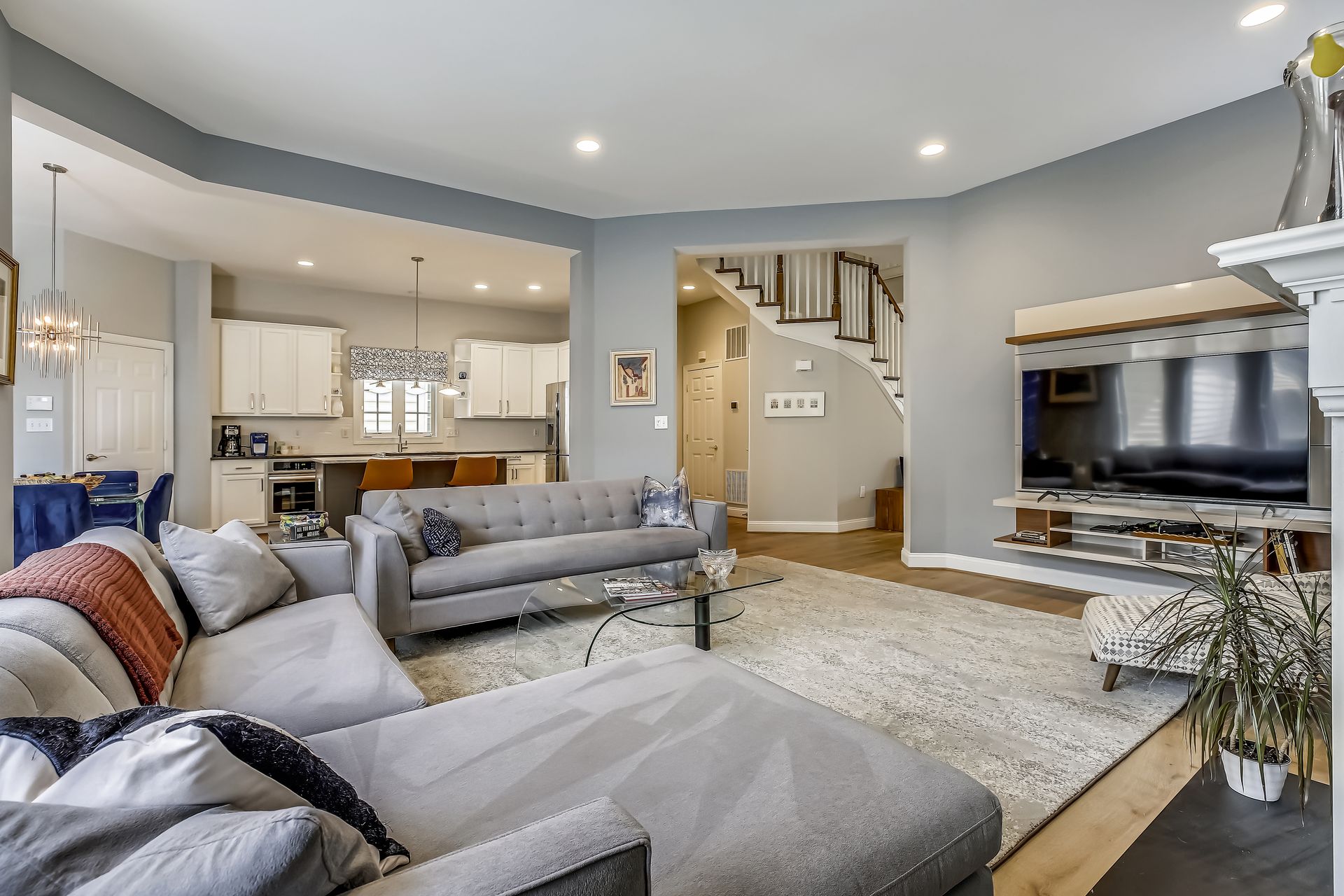This gorgeous 4 bedroom, 3.5 bath home by Michael Harris is designed with a timeless style in the sought after King Farm neighborhood. This home offers everything you need for comfortable living and entertaining throughout the year. The charming front porch greets you and invites you to sit down and relax, with serene views of the park. The main level foyer entry features vaulted ceilings, crown molding and recessed lighting. The hardwood floors and abundance of natural light contribute to an open floor plan that effortlessly flows to the spacious family room, dining room, den and the living room with gas fireplace. You will also find an office on the main level with built-ins. The eat-in kitchen features spacious granite counters and center island with cook-top gas cooking, SS appliances, tile backsplash, plenty of cabinet space, along with a powder room on the main level. From the kitchen, step out onto your private, fully fenced in deck and yard. As you head upstairs you’ll find 4 spacious bedrooms with 2 bathrooms. The owner’s suite features a large sitting area, custom walk-in and reach-in closets, a large luxurious master bath with double vanity granite counters, soaking tub and separate shower. The additional 3 bedrooms upstairs are filled with natural lighting and plenty of custom closet space. The laundry area on the upper level makes everyday living a breeze. The finished basement features a large game room/entertaining space, recessed lighting, and a separate room ideal for guests, an office or a gym. The basement has a full bath and plenty of storage. Meticulously maintained by original owners. Recently updated with new roof, water heater, A/C, HVAC system, appliances, humidifier, hardwood floors, carpet, and window treatments.