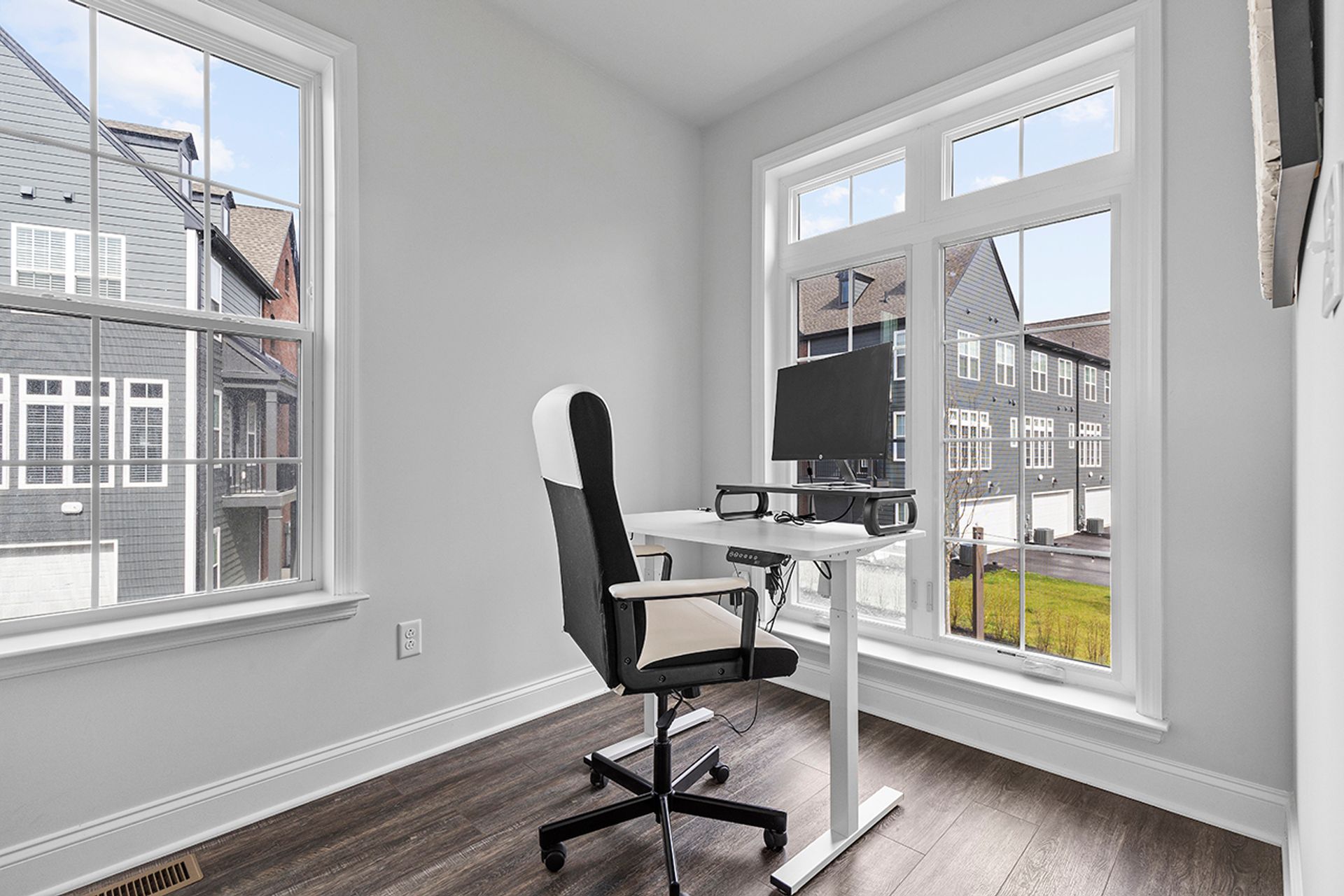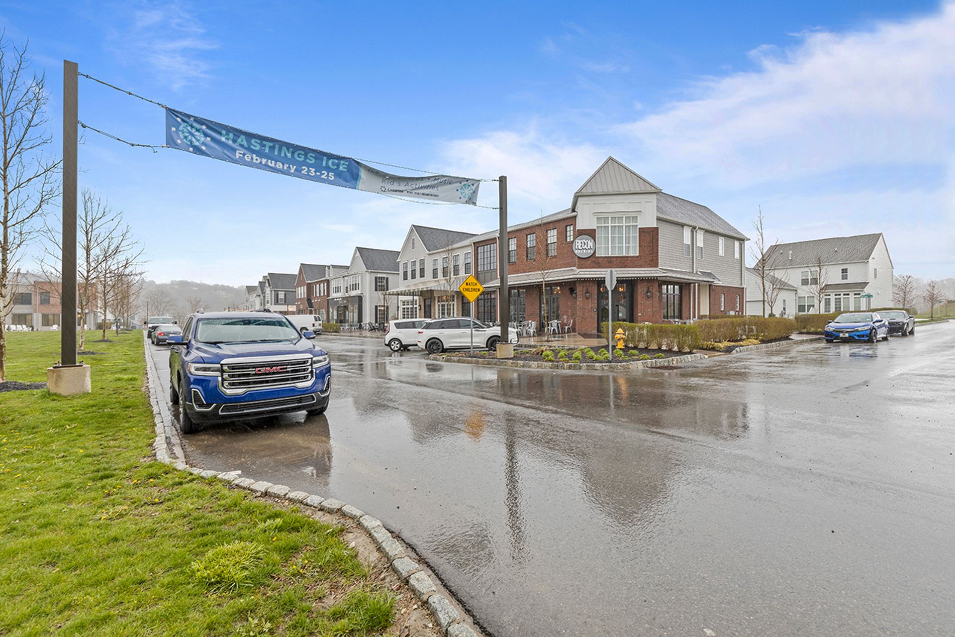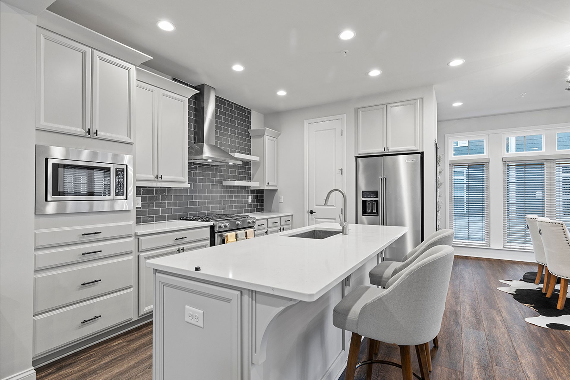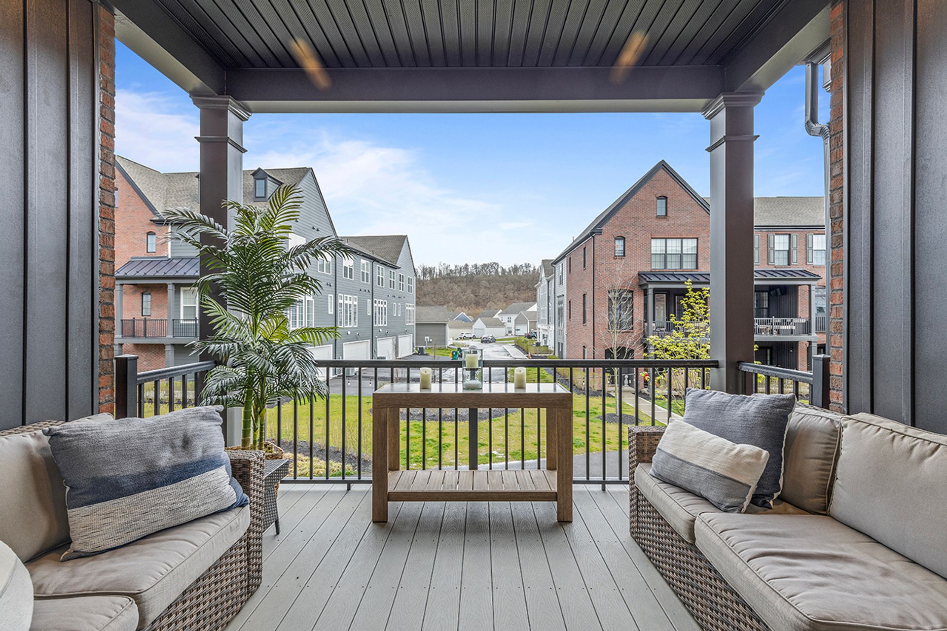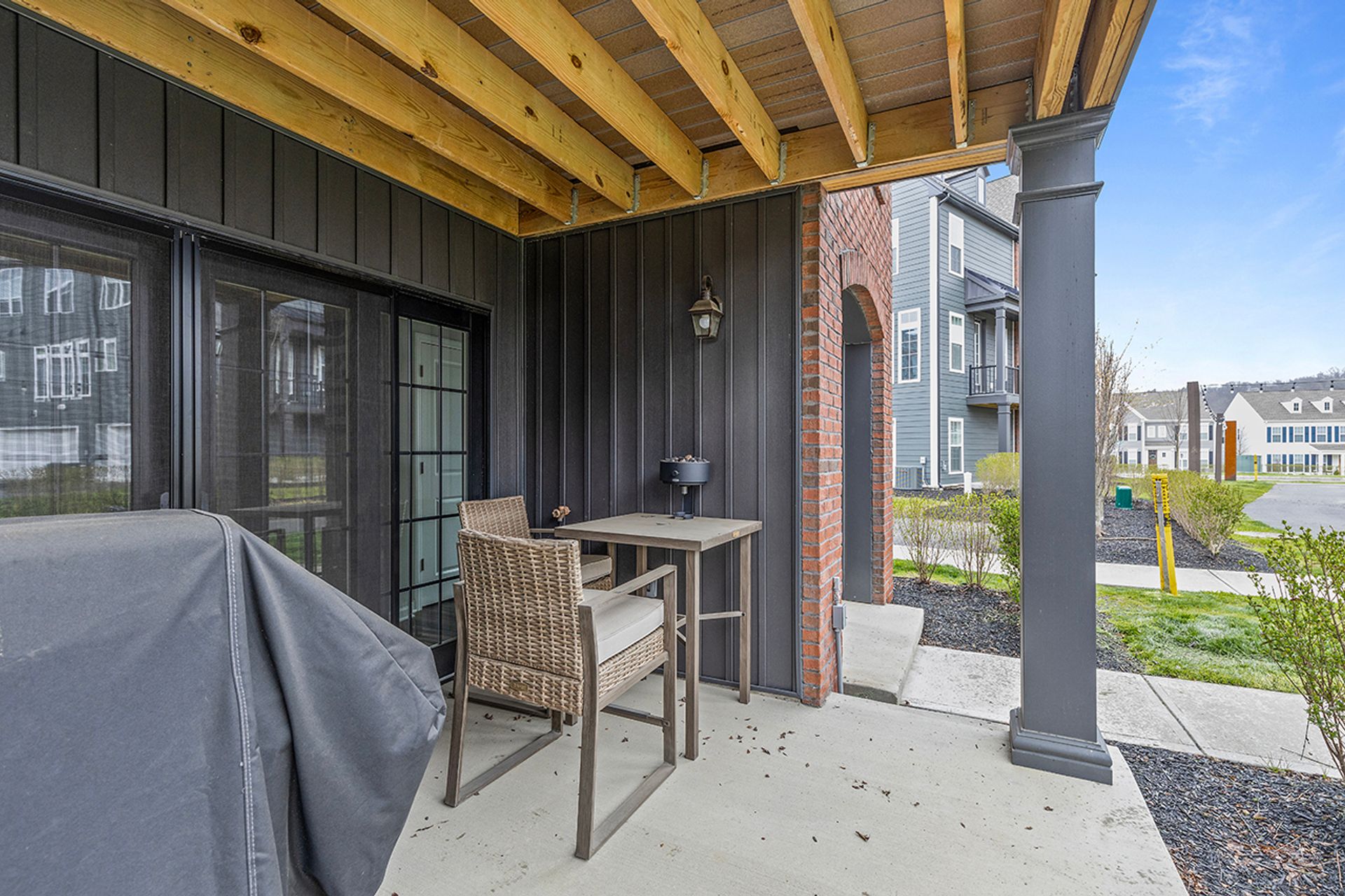 This END UNIT Brownstone offers tons of curb appeal, two covered outdoor spaces, a side yard and an immense amount of natural light. The home is located in the sought-after community of Hastings offering a brewery, restaurant, salon, coffee/juice shop, yoga studio, veterinary clinic, scenic trails, playgrounds and is 30 minutes to Downtown Pittsburgh! This end unit is loaded with upgrades and offers one of the more modern floor plans in the community. It boasts not only three bedrooms, but also a bright office with a glass door on the main floor, and the half bath is tucked down a separate hallway as opposed to other units where it is right in the living space. The first floor was upgraded with a finished bonus room option and a wet bar, quartz and beverage fridge. The kitchen boasts quartz counters, sleek appliances, a hood vent and spacious pantry. The dining room has two massive picture windows and plenty of room for a large table. Additional features include an inviting covered porch, eight-foot doors on the main floor, laundry on the bedroom level and a luxurious primary suite with a walk-in closet.
