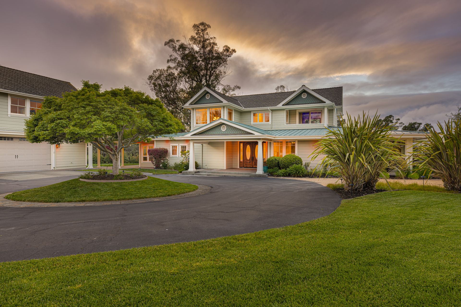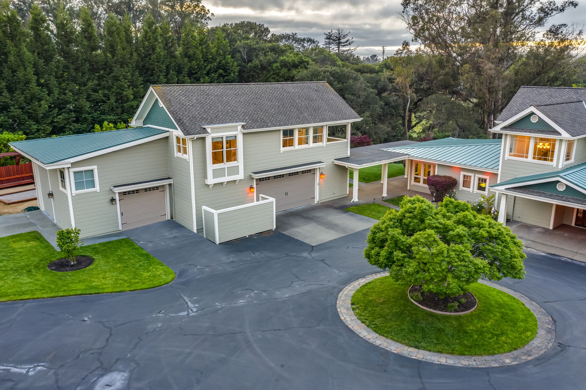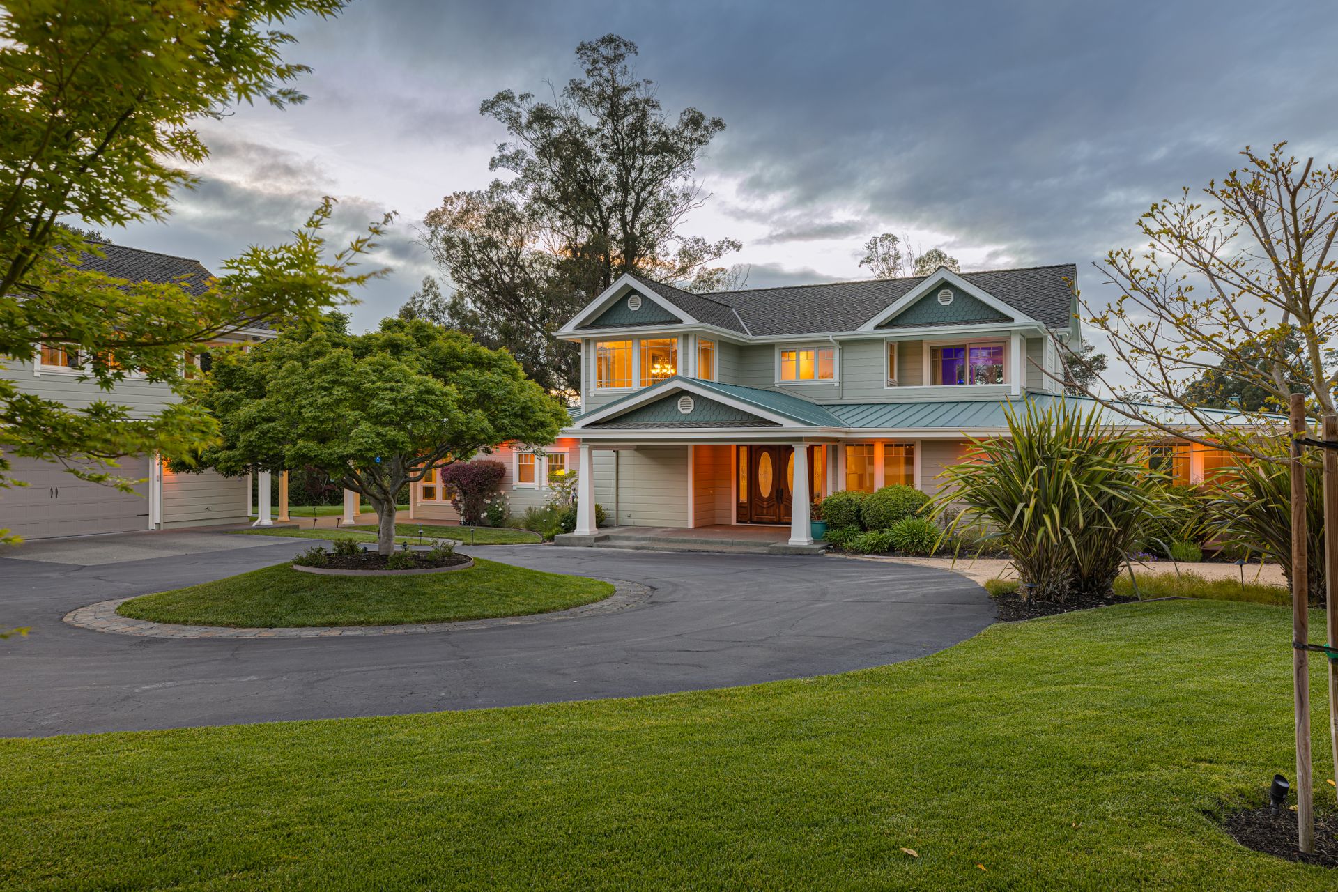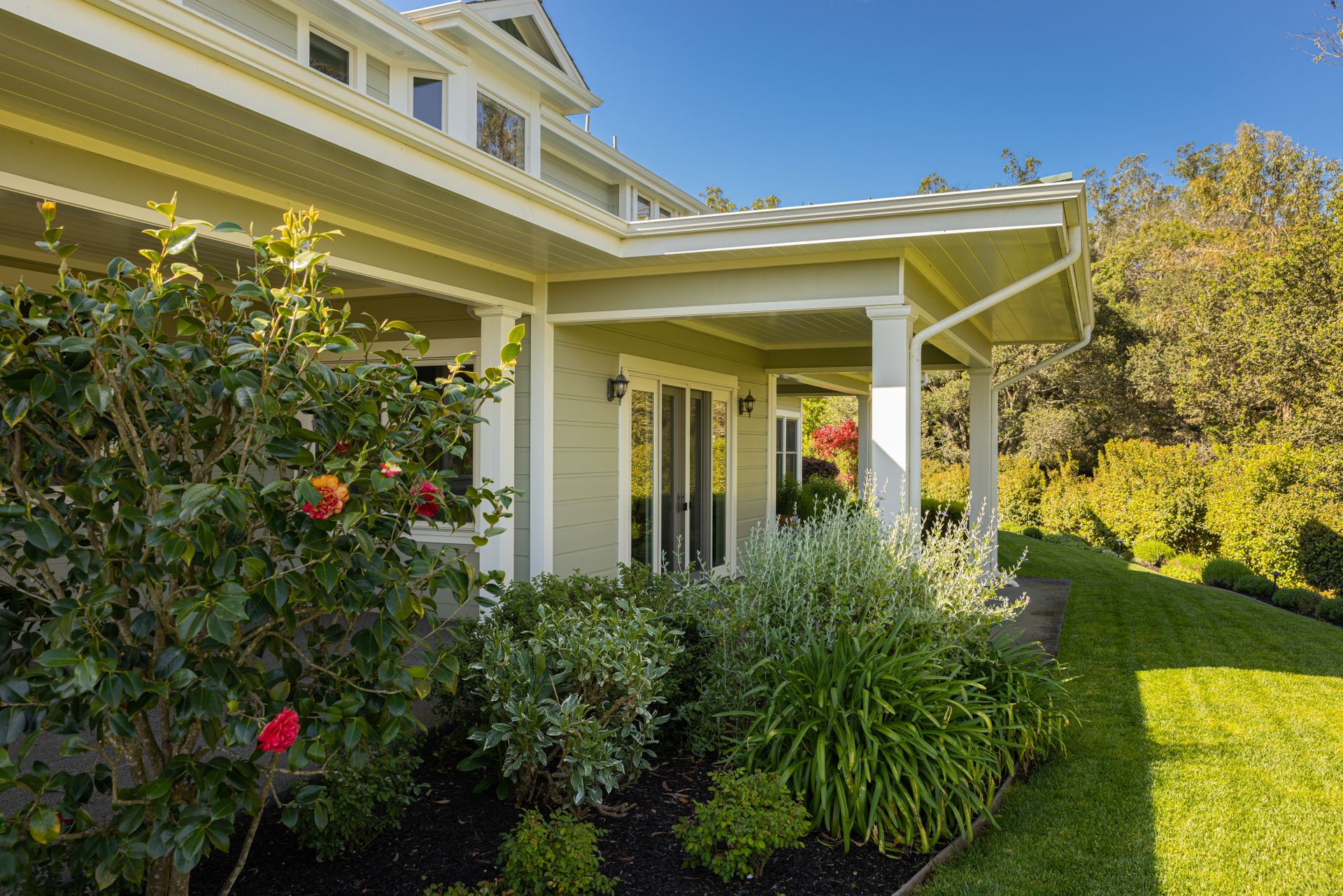 Welcome to this spectacular custom home! The home is situated on approximately 2.37 acres with a second unit (roughly 799 square feet). Enjoy a bocce court and stunning landscaping, views and privacy. As you enter the formal entry you will fall in love with the details found in all the finishes. There are three bedrooms plus a den and three full bathrooms. The formal living room offers a gas-burning fireplace and opens to a separate patio. Don’t miss the large formal dining room that opens onto its own covered patio too. Cook in the gourmet kitchen featuring cherry wood cabinets, granite countertops, top-of-the-line appliances, island dining plus a separate butler’s pantry with more than generous cherry wood cabinets and granite countertops. The large sunken family room has a gas fireplace and is adjacent to the kitchen and formal dining rooms. Every home needs a game room with a fireplace and built-in cabinets with a wet bar, refrigerator and beer tap. The game room opens onto a separate covered patio featuring a large, heated spa and mountain views. The den has sliding glass doors for privacy and overlooks the tranquil landscape setting. There is a spacious bedroom, a full bath with large stall shower and a laundry room and hydronic floor heating on the main level. An elegant cherry wood staircase leads upstairs to the primary suite with another fireplace and a sitting area private deck with amazing views. The luxurious bath offers a jetted tub, enclosed stall shower, heated tile floor and dual vanities. Don’t miss the large walk-in closet with cherrywood cabinets nor the second private bedroom with its own bathroom. The beautifully designed, roughly 799 square foot second unit offers a private bedroom while the detached approximately 1,900 square foot, three-car garage has interior RV storage and hookups for up to a 40 feet coach plus an above ground swim spa. There is a Tesla charger and Generac Generator. The garage offers plenty of room ideal for a spacious workshop. Enjoy the fenced in, large vegetable garden and newer chicken house. Plenty of room for a secluded inground pool that could be adjacent to the living room and game room. Privacy and attention to details says it ALL!
