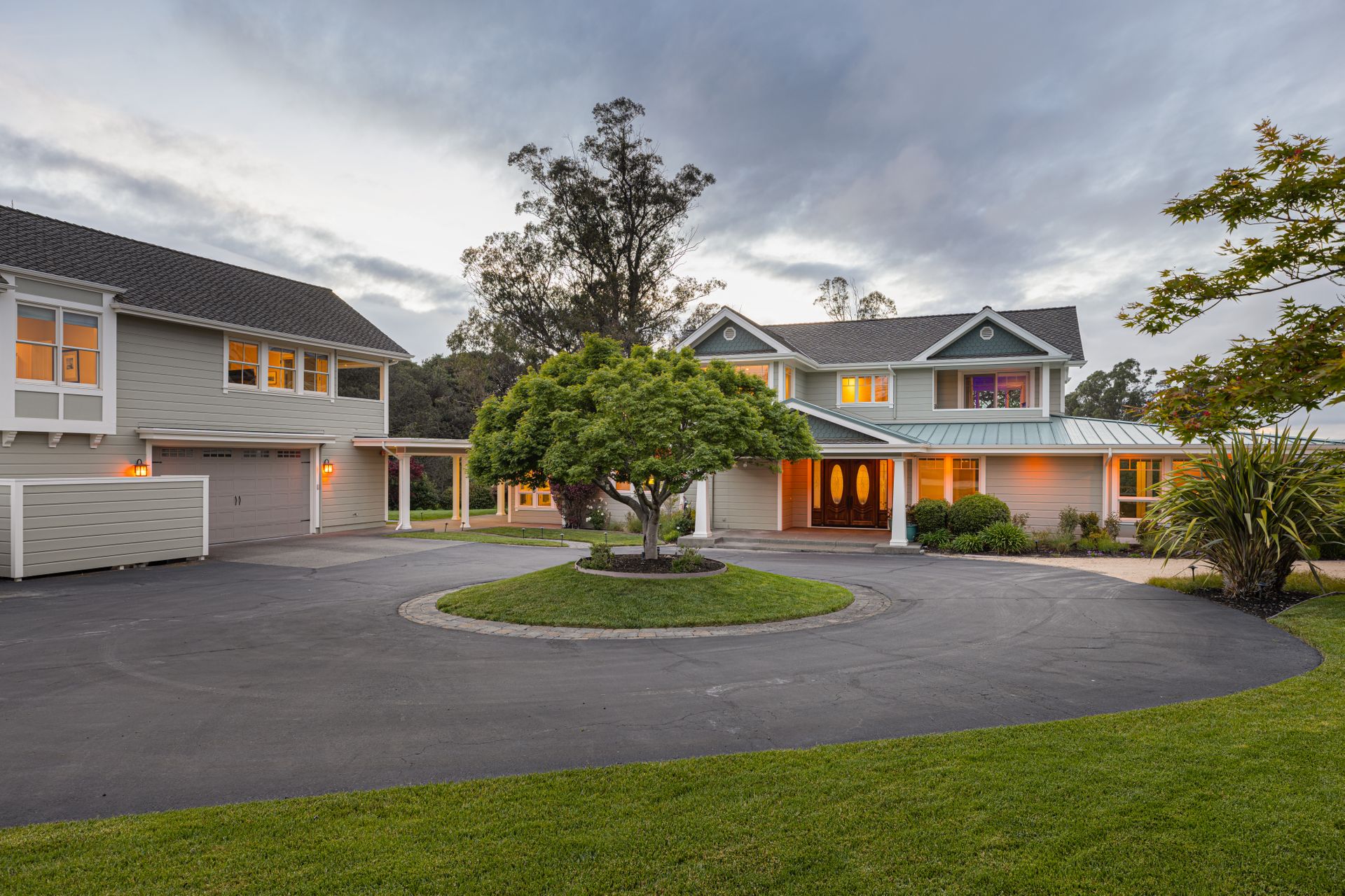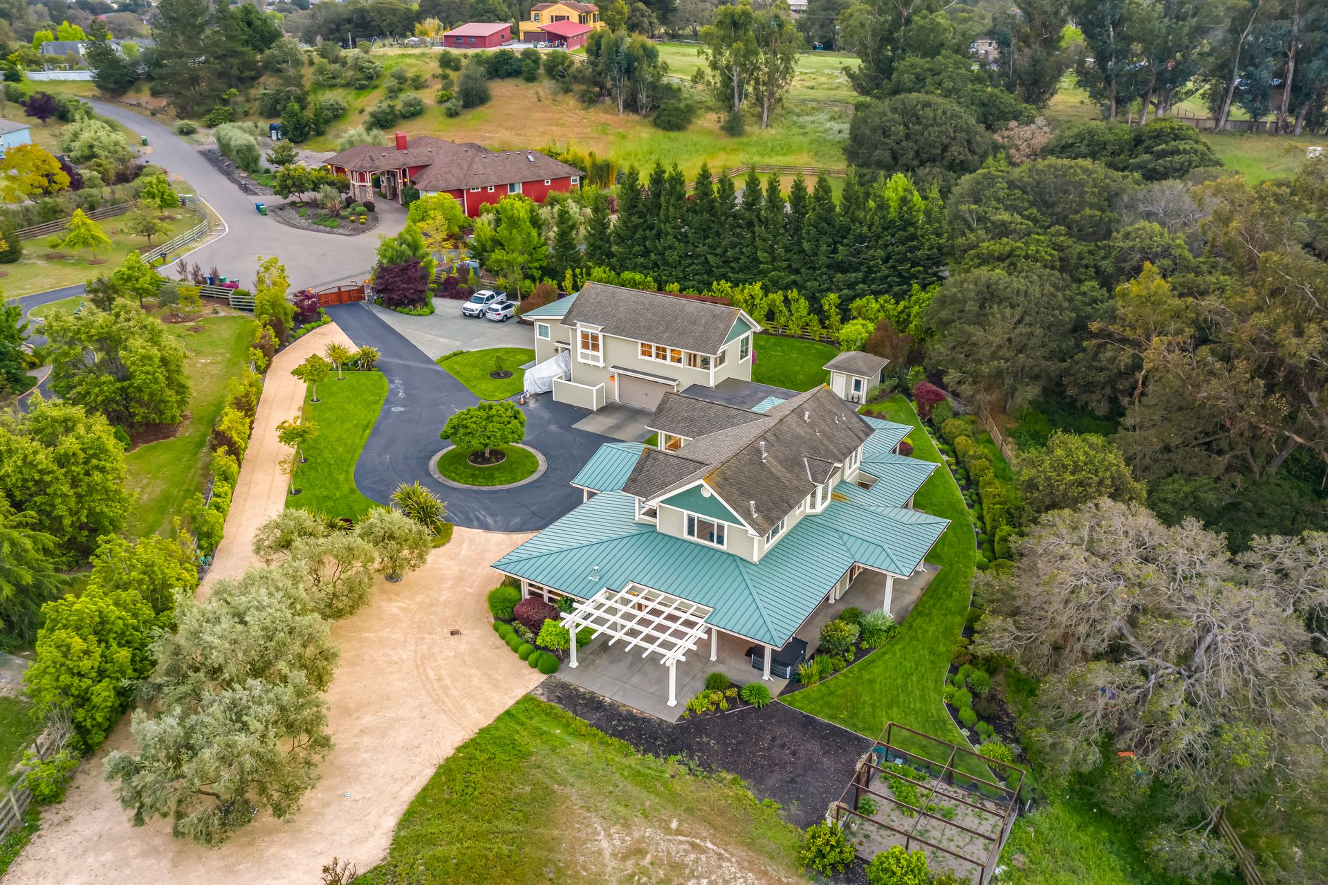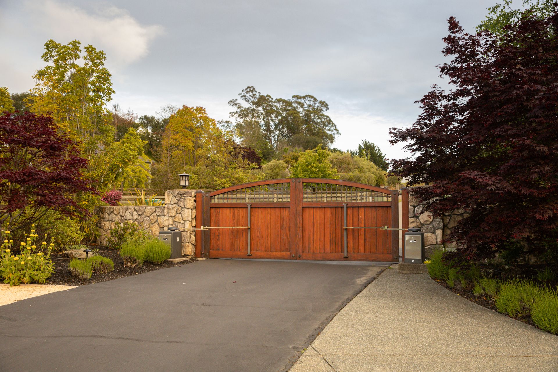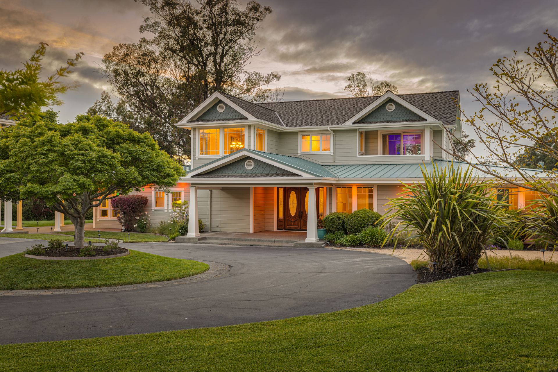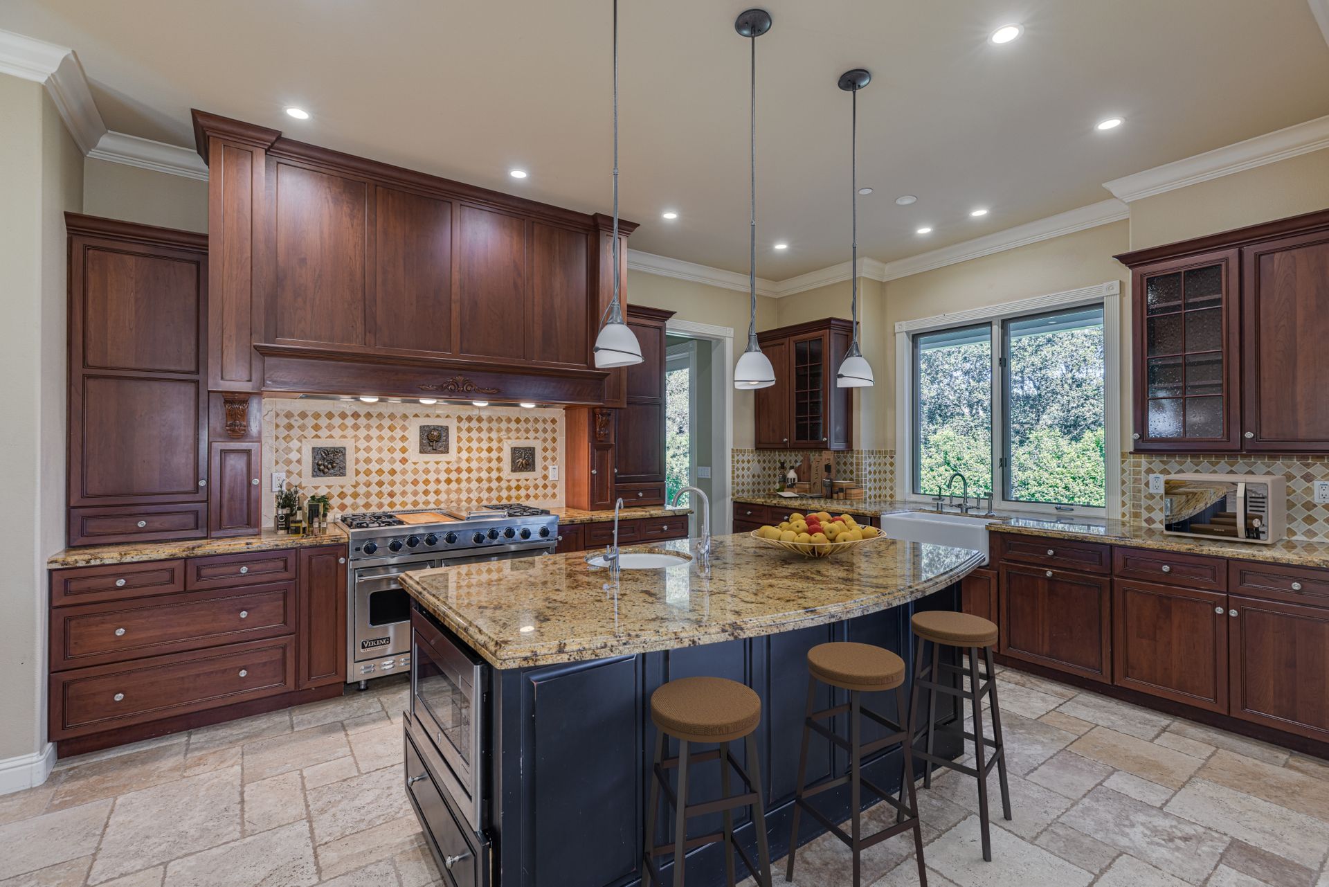 Welcome to this spectacular custom home! The home is situated on approximately 2.37 acres with a second unit (roughly 799 square feet). Enjoy a bocce court and stunning landscaping, views and privacy. As you enter the formal entry you will fall in love with the details found in all the finishes. There are three bedrooms plus a den and three full bathrooms. The formal living room offers a gas-burning fireplace and opens to a separate patio. Don’t miss the large formal dining room that opens onto its own covered patio too. Cook in the gourmet kitchen featuring cherry wood cabinets, granite countertops, top-of-the-line appliances, island dining plus a separate butler’s pantry with more than generous cherry wood cabinets and granite countertops. The large sunken family room has a gas fireplace and is adjacent to the kitchen and formal dining rooms. Every home needs a game room with a fireplace and built-in cabinets with a wet bar, refrigerator and beer tap. The game room opens onto a separate covered patio featuring a large, heated spa and mountain views. The den has sliding glass doors for privacy and overlooks the tranquil landscape setting. There is a spacious bedroom, a full bath with large stall shower and a laundry room and hydronic floor heating on the main level. An elegant cherry wood staircase leads upstairs to the primary suite with another fireplace and a sitting area private deck with amazing views. The luxurious bath offers a jetted tub, enclosed stall shower, heated tile floor and dual vanities. Don’t miss the large walk-in closet with cherrywood cabinets nor the second private bedroom with its own bathroom. The beautifully designed, roughly 799 square foot second unit offers a private bedroom while the detached approximately 1,900 square foot, three-car garage has interior RV storage and hookups for up to a 40 feet coach plus an above ground swim spa. There is a Tesla charger and Generac Generator. The garage offers plenty of room ideal for a spacious workshop. Enjoy the fenced in, large vegetable garden and newer chicken house. Plenty of room for a secluded inground pool that could be adjacent to the living room and game room. Privacy and attention to details says it ALL!