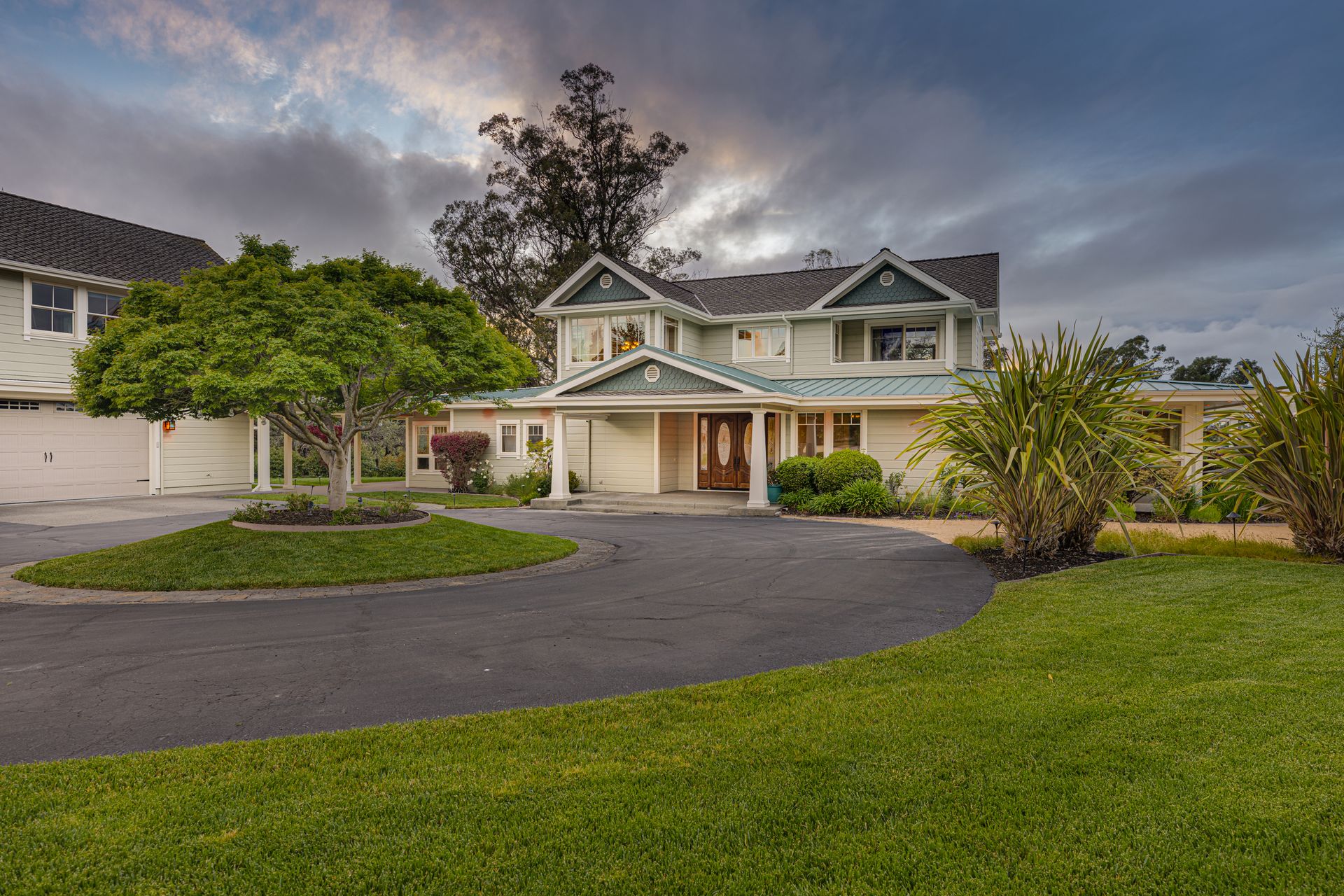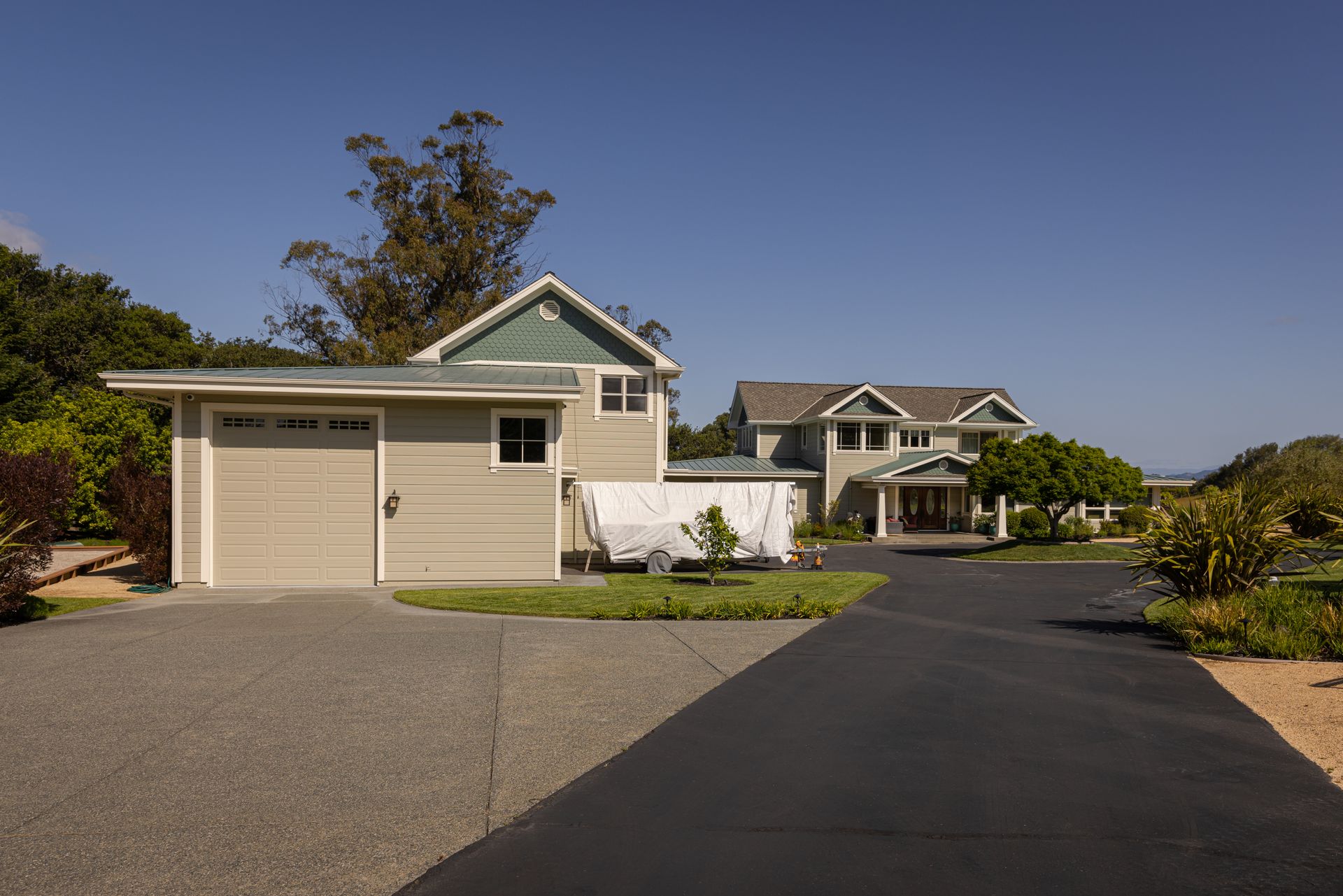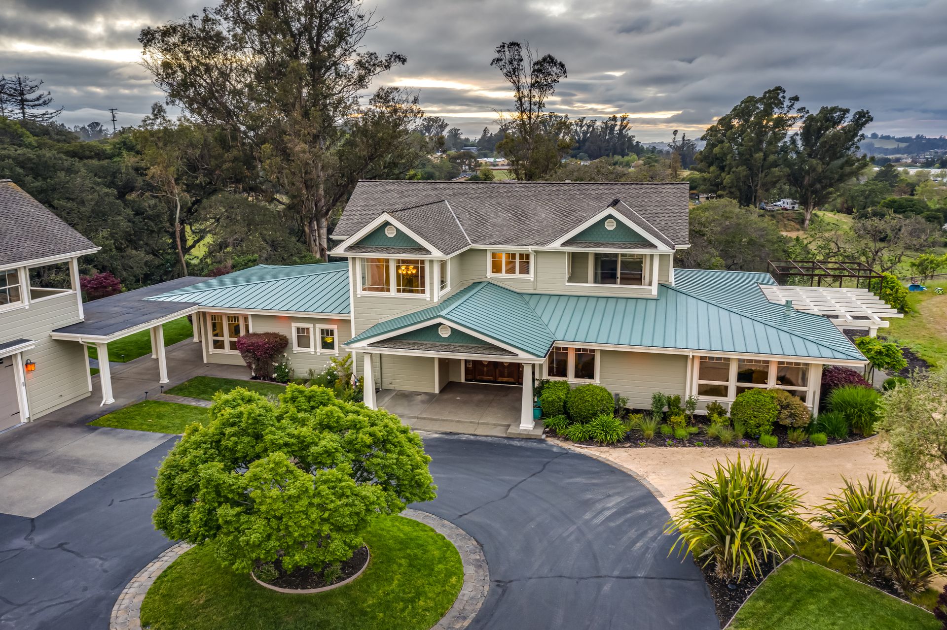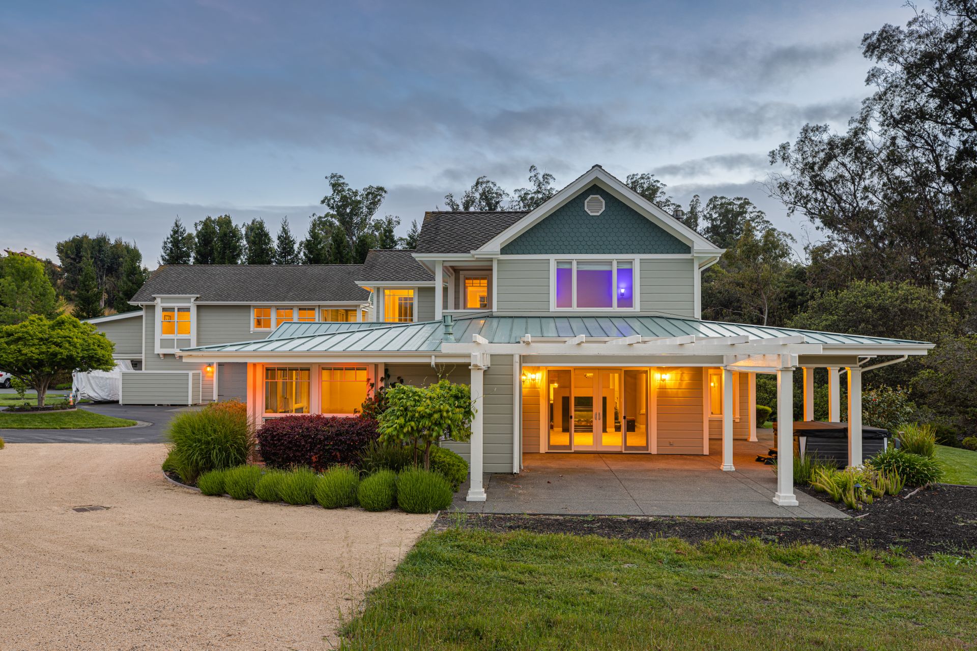 Welcome to this spectacular custom home! The home is situated on approximately 2.37 acres with a second unit (roughly 799 square feet). Enjoy a bocce court and stunning landscaping, views and privacy. As you enter the formal entry you will fall in love with the details found in all the finishes. There are three bedrooms plus a den and three full bathrooms. The formal living room offers a gas-burning fireplace and opens to a separate patio. Don’t miss the large formal dining room that opens onto its own covered patio too. Cook in the gourmet kitchen featuring cherry wood cabinets, granite countertops, top-of-the-line appliances, island dining plus a separate butler’s pantry with more than generous cherry wood cabinets and granite countertops. The large sunken family room has a gas fireplace and is adjacent to the kitchen and formal dining rooms. Every home needs a game room with a fireplace and built-in cabinets with a wet bar, refrigerator and beer tap. The game room opens onto a separate covered patio featuring a large, heated spa and mountain views. The den has sliding glass doors for privacy and overlooks the tranquil landscape setting. There is a spacious bedroom, a full bath with large stall shower and a laundry room and hydronic floor heating on the main level. An elegant cherry wood staircase leads upstairs to the primary suite with another fireplace and a sitting area private deck with amazing views. The luxurious bath offers a jetted tub, enclosed stall shower, heated tile floor and dual vanities. Don’t miss the large walk-in closet with cherrywood cabinets nor the second private bedroom with its own bathroom. The beautifully designed, roughly 799 square foot second unit offers a private bedroom while the detached approximately 1,900 square foot, three-car garage has interior RV storage and hookups for up to a 40 feet coach plus an above ground swim spa. There is a Tesla charger and Generac Generator. The garage offers plenty of room ideal for a spacious workshop. Enjoy the fenced in, large vegetable garden and newer chicken house. Plenty of room for a secluded inground pool that could be adjacent to the living room and game room. Privacy and attention to details says it ALL!