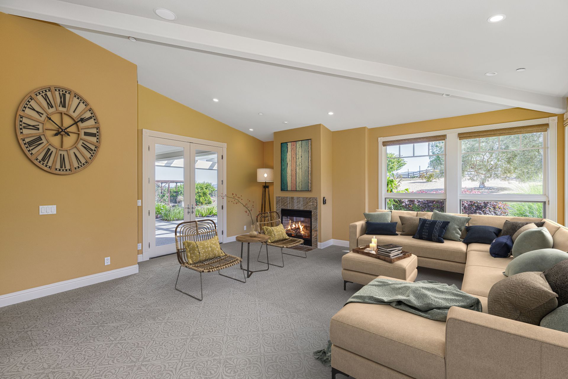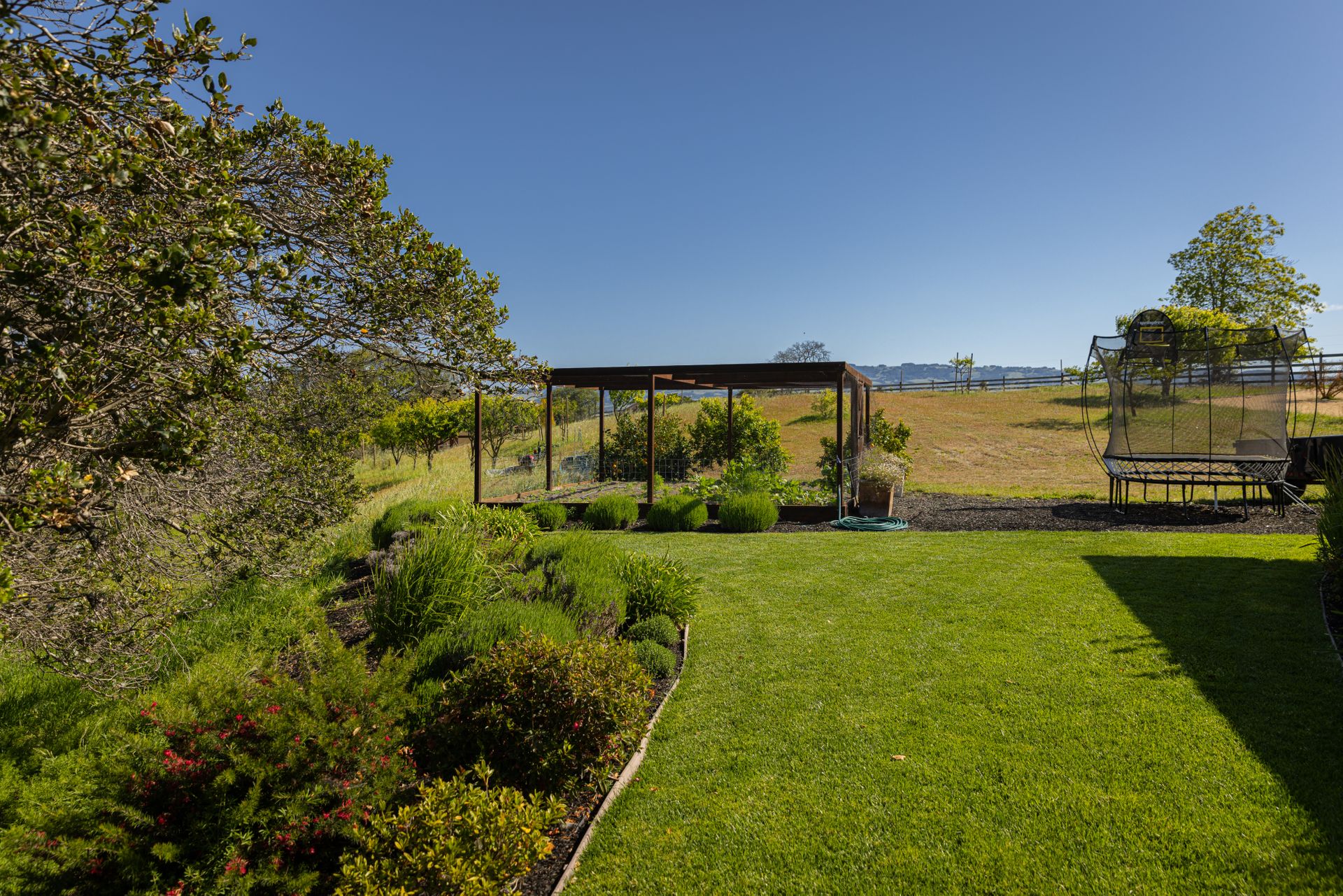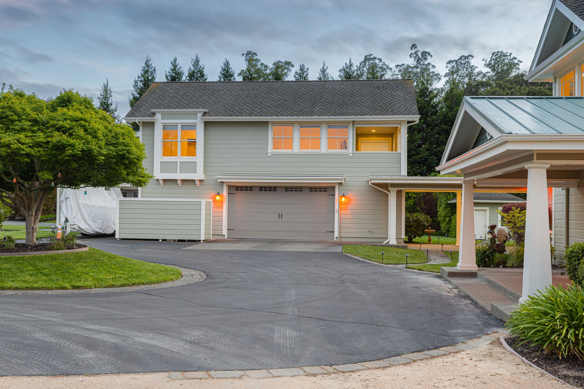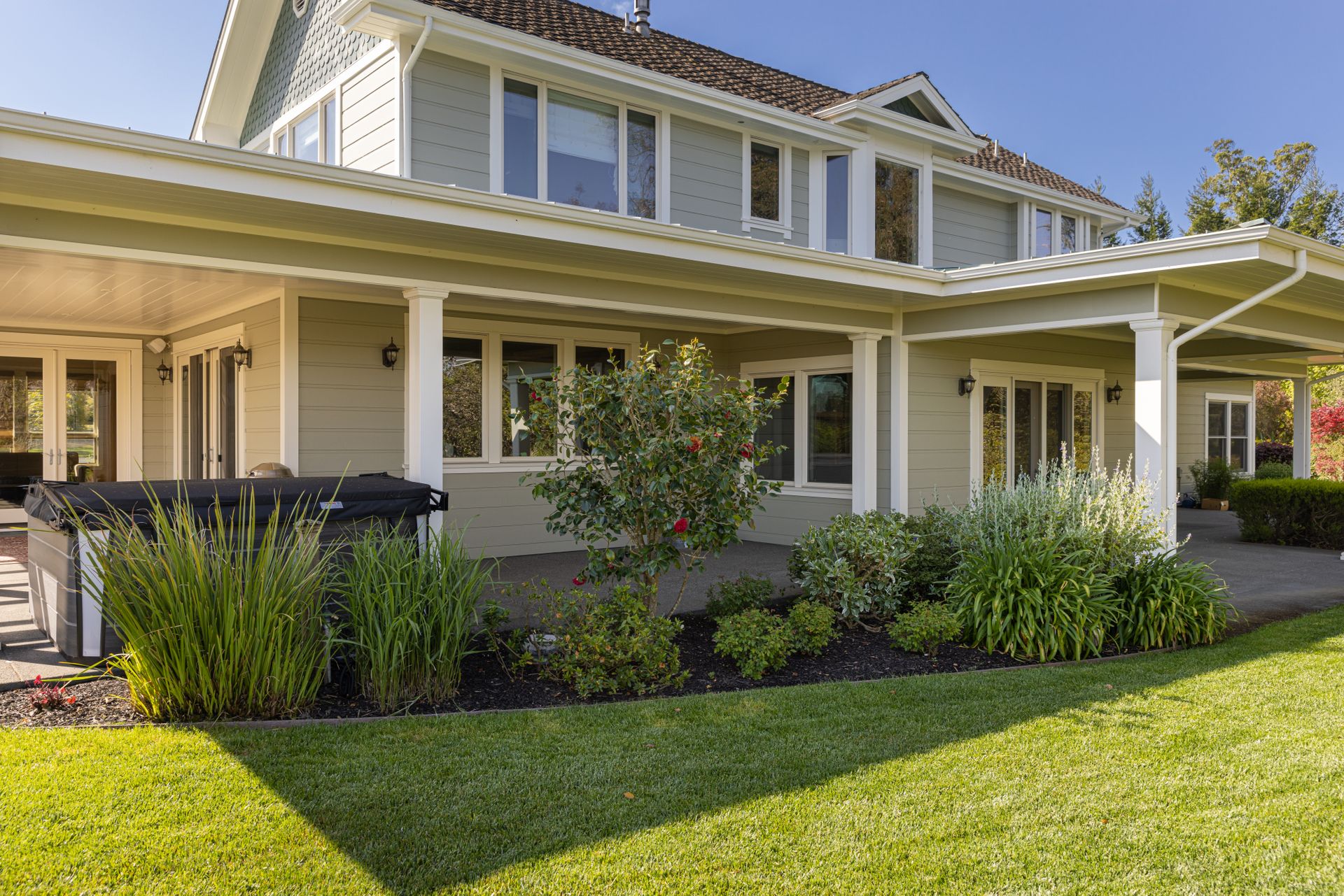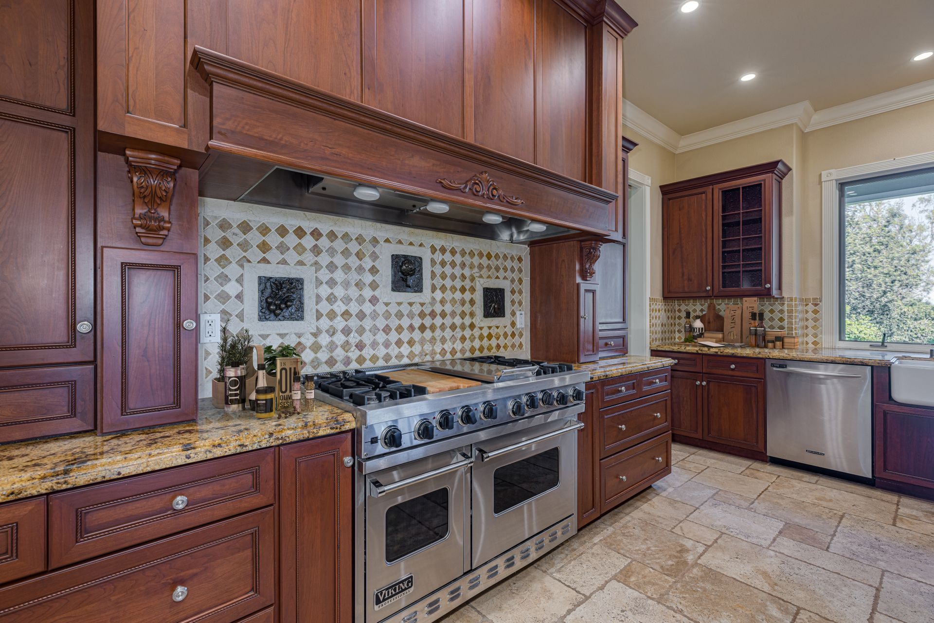 Welcome to this spectacular custom home! The home is situated on approximately 2.37 acres with a second unit (roughly 799 square feet). Enjoy a bocce court and stunning landscaping, views and privacy. As you enter the formal entry you will fall in love with the details found in all the finishes. There are three bedrooms plus a den and three full bathrooms. The formal living room offers a gas-burning fireplace and opens to a separate patio. Don’t miss the large formal dining room that opens onto its own covered patio too. Cook in the gourmet kitchen featuring cherry wood cabinets, granite countertops, top-of-the-line appliances, island dining plus a separate butler’s pantry with more than generous cherry wood cabinets and granite countertops. The large sunken family room has a gas fireplace and is adjacent to the kitchen and formal dining rooms. Every home needs a game room with a fireplace and built-in cabinets with a wet bar, refrigerator and beer tap. The game room opens onto a separate covered patio featuring a large, heated spa and mountain views. The den has sliding glass doors for privacy and overlooks the tranquil landscape setting. There is a spacious bedroom, a full bath with large stall shower and a laundry room and hydronic floor heating on the main level. An elegant cherry wood staircase leads upstairs to the primary suite with another fireplace and a sitting area private deck with amazing views. The luxurious bath offers a jetted tub, enclosed stall shower, heated tile floor and dual vanities. Don’t miss the large walk-in closet with cherrywood cabinets nor the second private bedroom with its own bathroom. The beautifully designed, roughly 799 square foot second unit offers a private bedroom while the detached approximately 1,900 square foot, three-car garage has interior RV storage and hookups for up to a 40 feet coach plus an above ground swim spa. There is a Tesla charger and Generac Generator. The garage offers plenty of room ideal for a spacious workshop. Enjoy the fenced in, large vegetable garden and newer chicken house. Plenty of room for a secluded inground pool that could be adjacent to the living room and game room. Privacy and attention to details says it ALL!