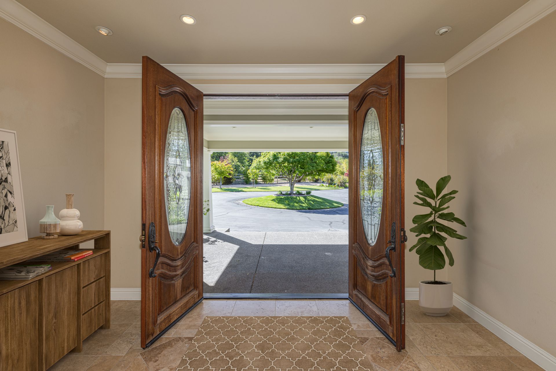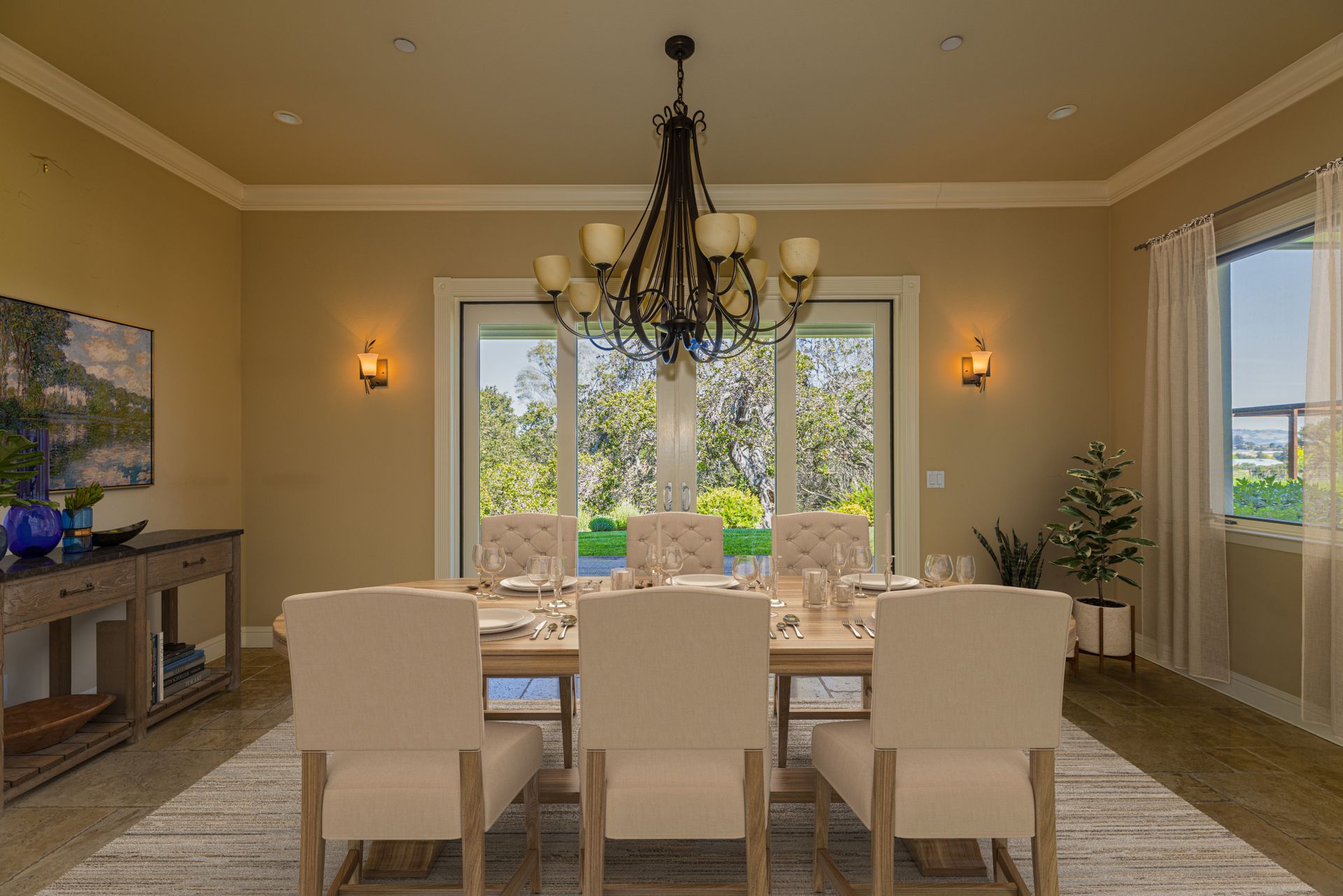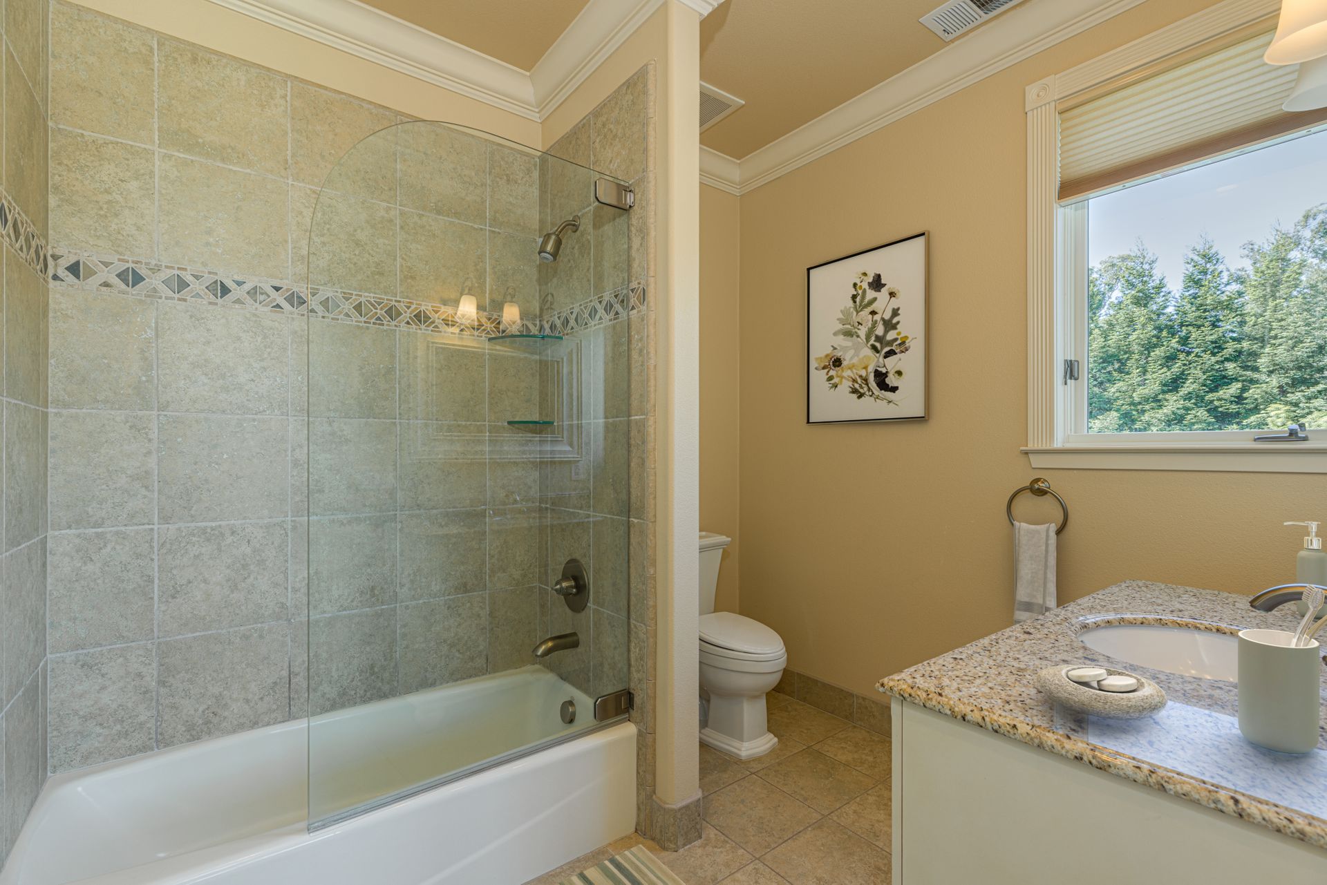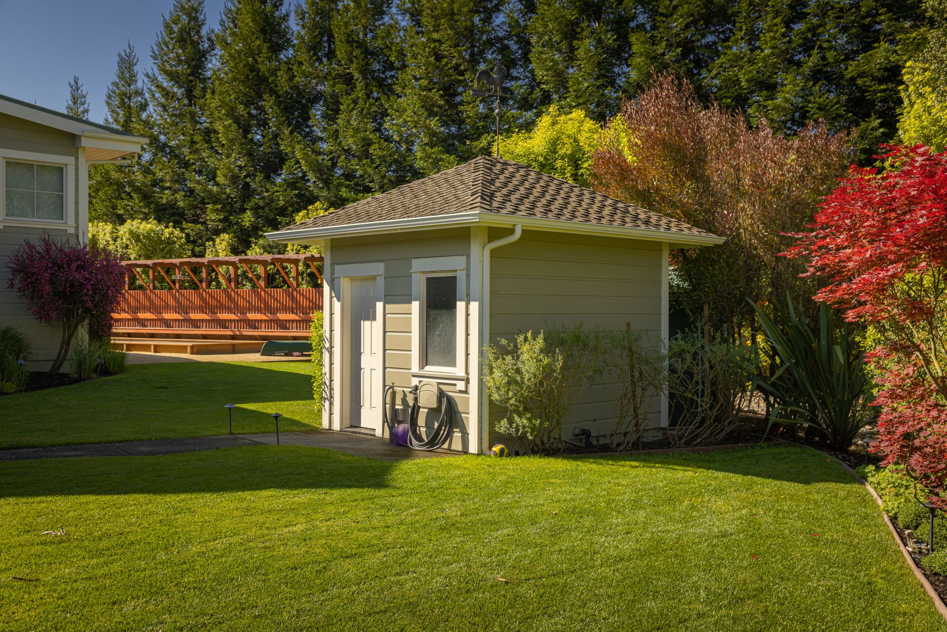 Welcome to this spectacular custom home! The home is situated on approximately 2.37 acres with a second unit (roughly 799 square feet). Enjoy a bocce court and stunning landscaping, views and privacy. As you enter the formal entry you will fall in love with the details found in all the finishes. There are three bedrooms plus a den and three full bathrooms. The formal living room offers a gas-burning fireplace and opens to a separate patio. Don’t miss the large formal dining room that opens onto its own covered patio too. Cook in the gourmet kitchen featuring cherry wood cabinets, granite countertops, top-of-the-line appliances, island dining plus a separate butler’s pantry with more than generous cherry wood cabinets and granite countertops. The large sunken family room has a gas fireplace and is adjacent to the kitchen and formal dining rooms. Every home needs a game room with a fireplace and built-in cabinets with a wet bar, refrigerator and beer tap. The game room opens onto a separate covered patio featuring a large, heated spa and mountain views. The den has sliding glass doors for privacy and overlooks the tranquil landscape setting. There is a spacious bedroom, a full bath with large stall shower and a laundry room and hydronic floor heating on the main level. An elegant cherry wood staircase leads upstairs to the primary suite with another fireplace and a sitting area private deck with amazing views. The luxurious bath offers a jetted tub, enclosed stall shower, heated tile floor and dual vanities. Don’t miss the large walk-in closet with cherrywood cabinets nor the second private bedroom with its own bathroom. The beautifully designed, roughly 799 square foot second unit offers a private bedroom while the detached approximately 1,900 square foot, three-car garage has interior RV storage and hookups for up to a 40 feet coach plus an above ground swim spa. There is a Tesla charger and Generac Generator. The garage offers plenty of room ideal for a spacious workshop. Enjoy the fenced in, large vegetable garden and newer chicken house. Plenty of room for a secluded inground pool that could be adjacent to the living room and game room. Privacy and attention to details says it ALL!