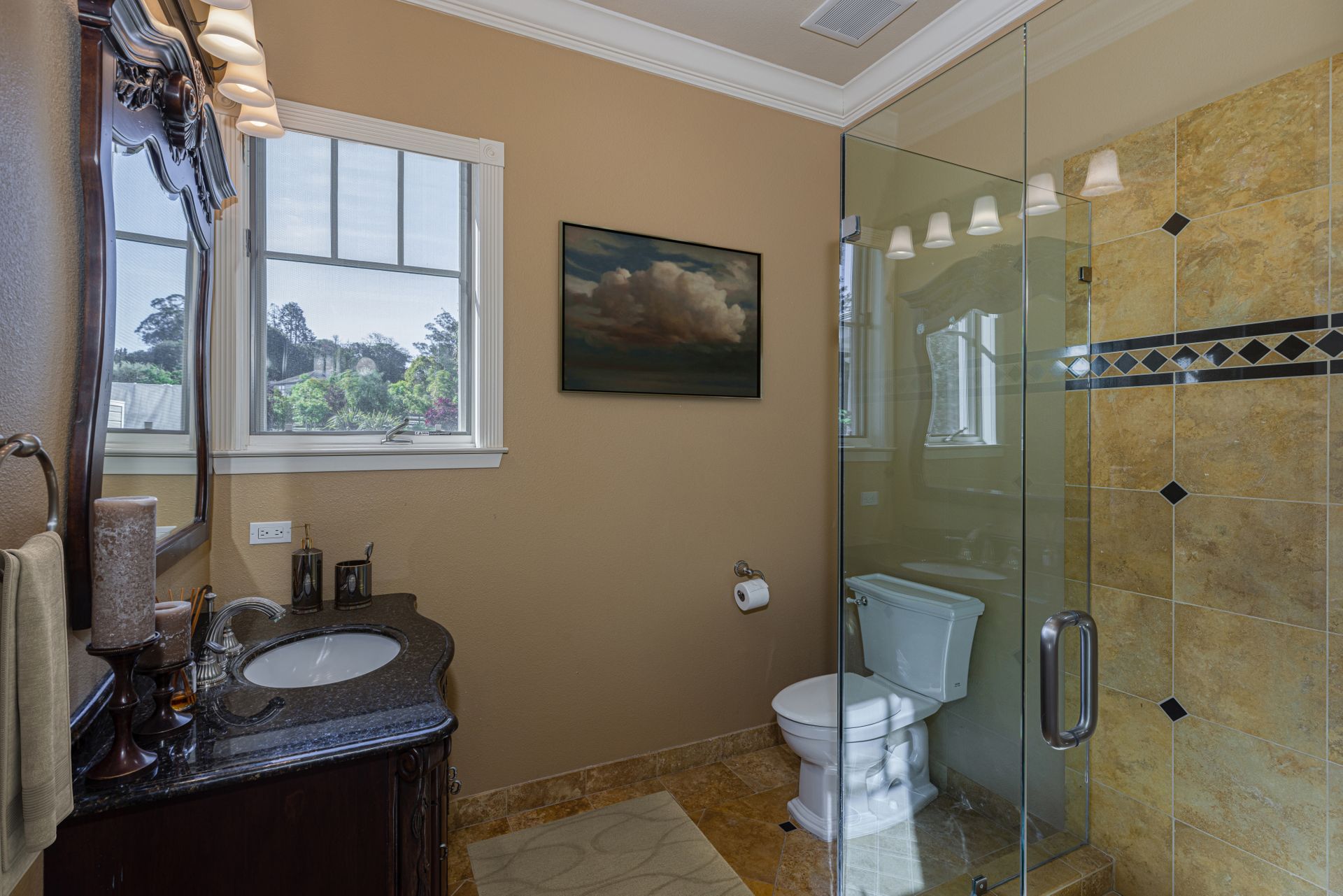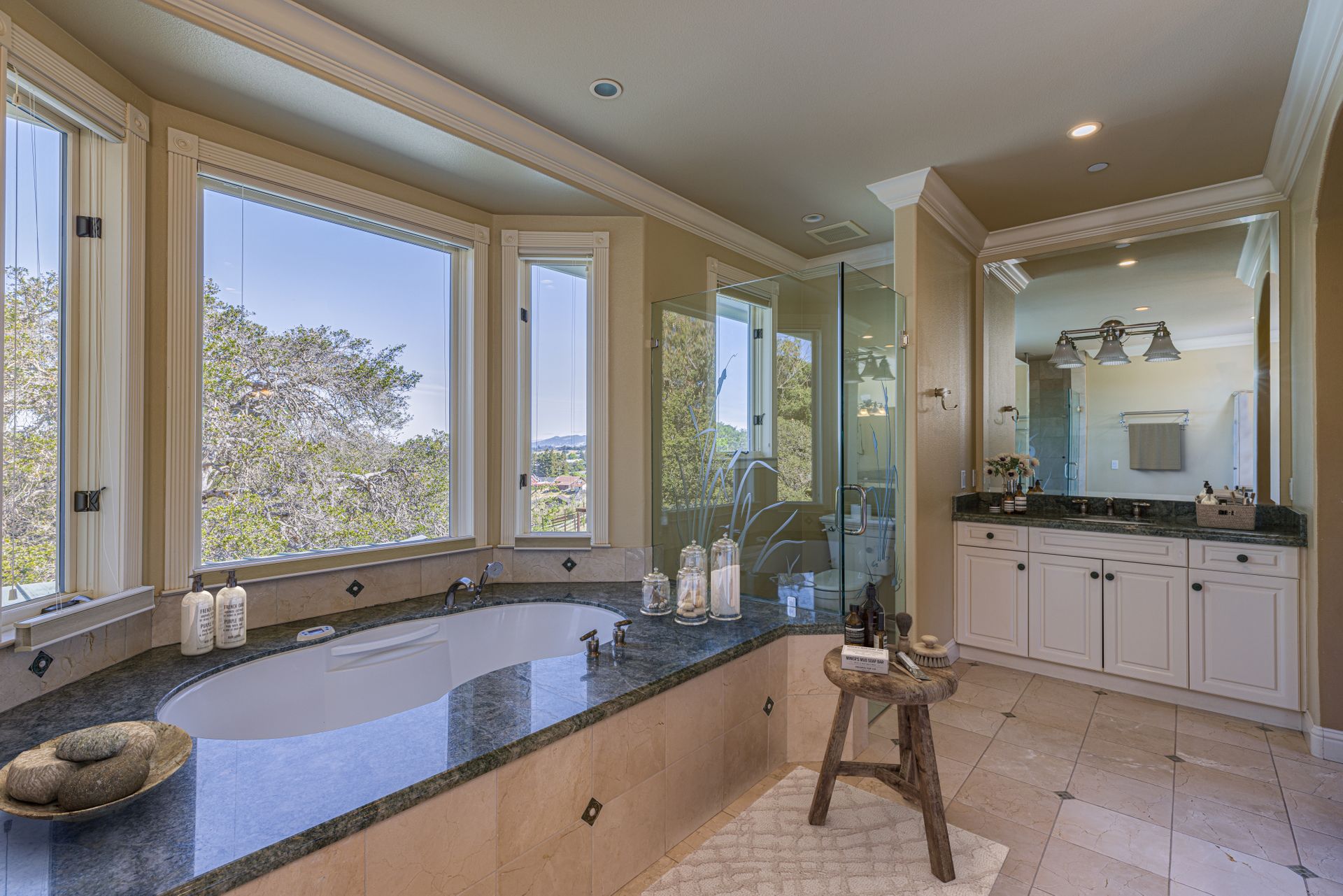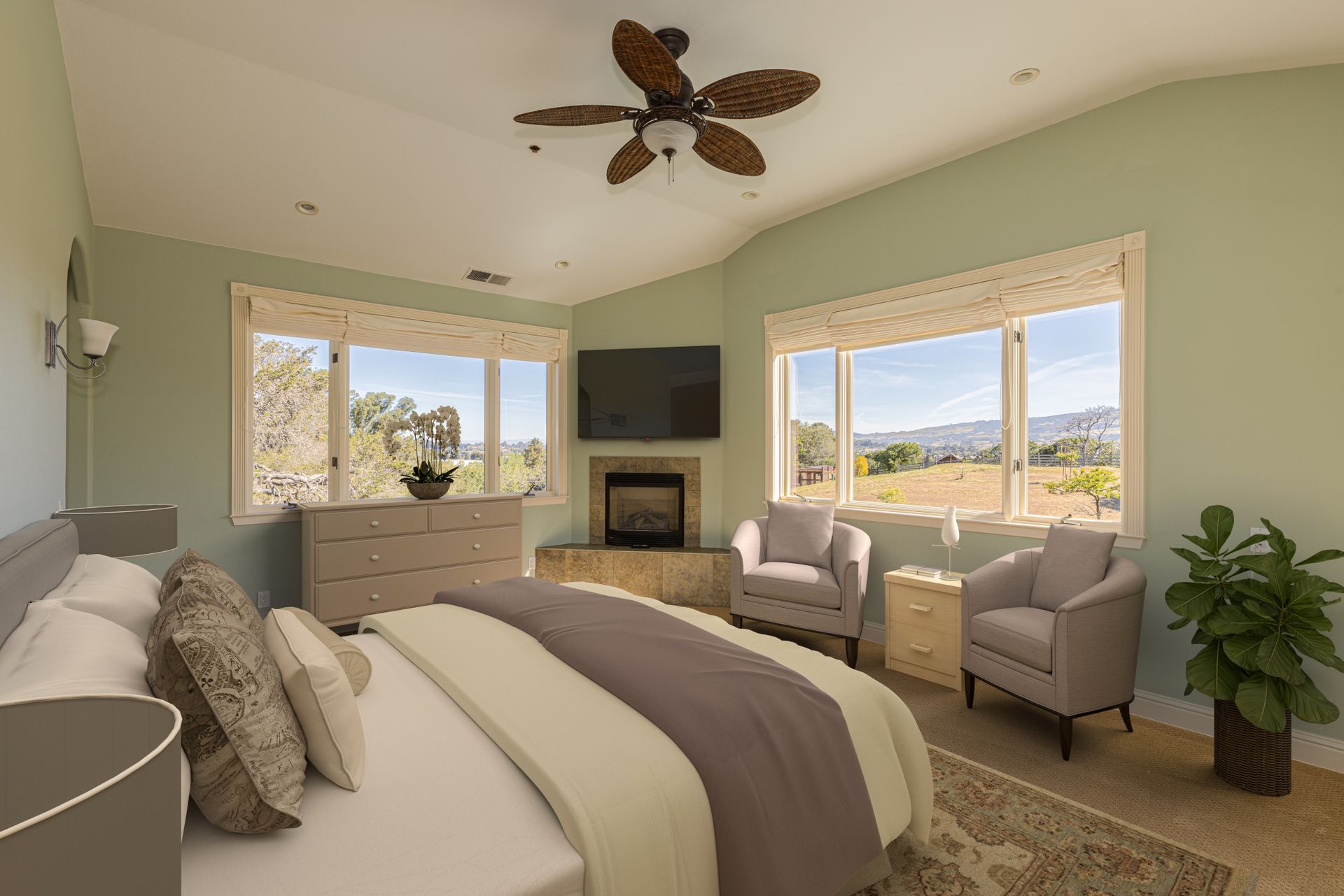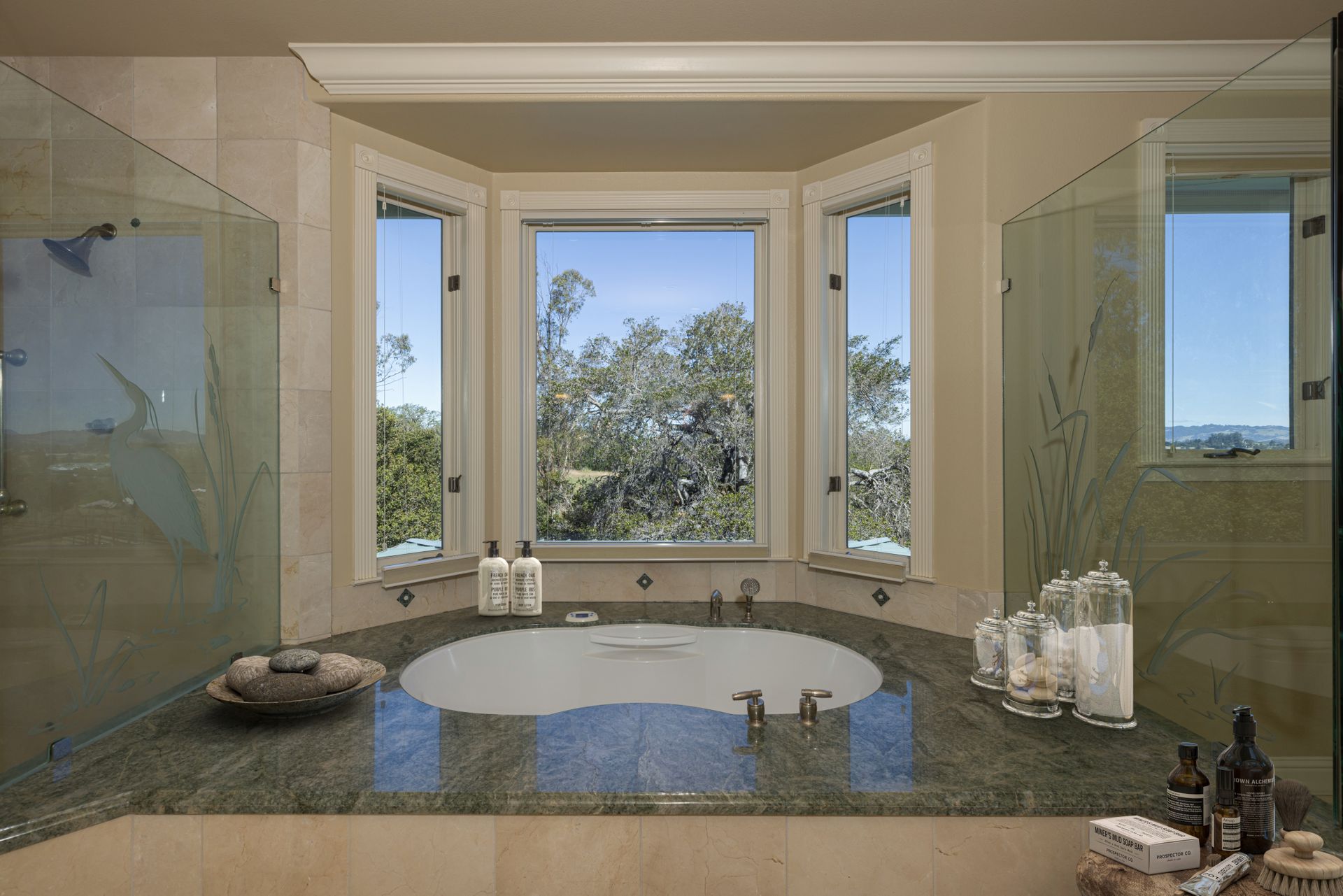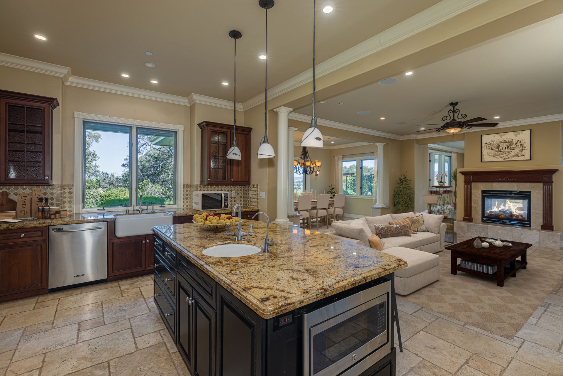 Welcome to this spectacular custom home! The home is situated on approximately 2.37 acres with a second unit (roughly 799 square feet). Enjoy a bocce court and stunning landscaping, views and privacy. As you enter the formal entry you will fall in love with the details found in all the finishes. There are three bedrooms plus a den and three full bathrooms. The formal living room offers a gas-burning fireplace and opens to a separate patio. Don’t miss the large formal dining room that opens onto its own covered patio too. Cook in the gourmet kitchen featuring cherry wood cabinets, granite countertops, top-of-the-line appliances, island dining plus a separate butler’s pantry with more than generous cherry wood cabinets and granite countertops. The large sunken family room has a gas fireplace and is adjacent to the kitchen and formal dining rooms. Every home needs a game room with a fireplace and built-in cabinets with a wet bar, refrigerator and beer tap. The game room opens onto a separate covered patio featuring a large, heated spa and mountain views. The den has sliding glass doors for privacy and overlooks the tranquil landscape setting. There is a spacious bedroom, a full bath with large stall shower and a laundry room and hydronic floor heating on the main level. An elegant cherry wood staircase leads upstairs to the primary suite with another fireplace and a sitting area private deck with amazing views. The luxurious bath offers a jetted tub, enclosed stall shower, heated tile floor and dual vanities. Don’t miss the large walk-in closet with cherrywood cabinets nor the second private bedroom with its own bathroom. The beautifully designed, roughly 799 square foot second unit offers a private bedroom while the detached approximately 1,900 square foot, three-car garage has interior RV storage and hookups for up to a 40 feet coach plus an above ground swim spa. There is a Tesla charger and Generac Generator. The garage offers plenty of room ideal for a spacious workshop. Enjoy the fenced in, large vegetable garden and newer chicken house. Plenty of room for a secluded inground pool that could be adjacent to the living room and game room. Privacy and attention to details says it ALL!