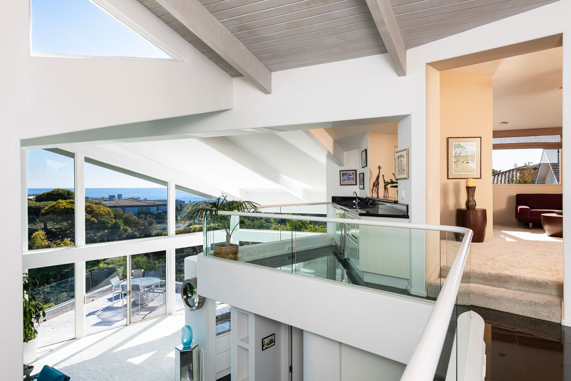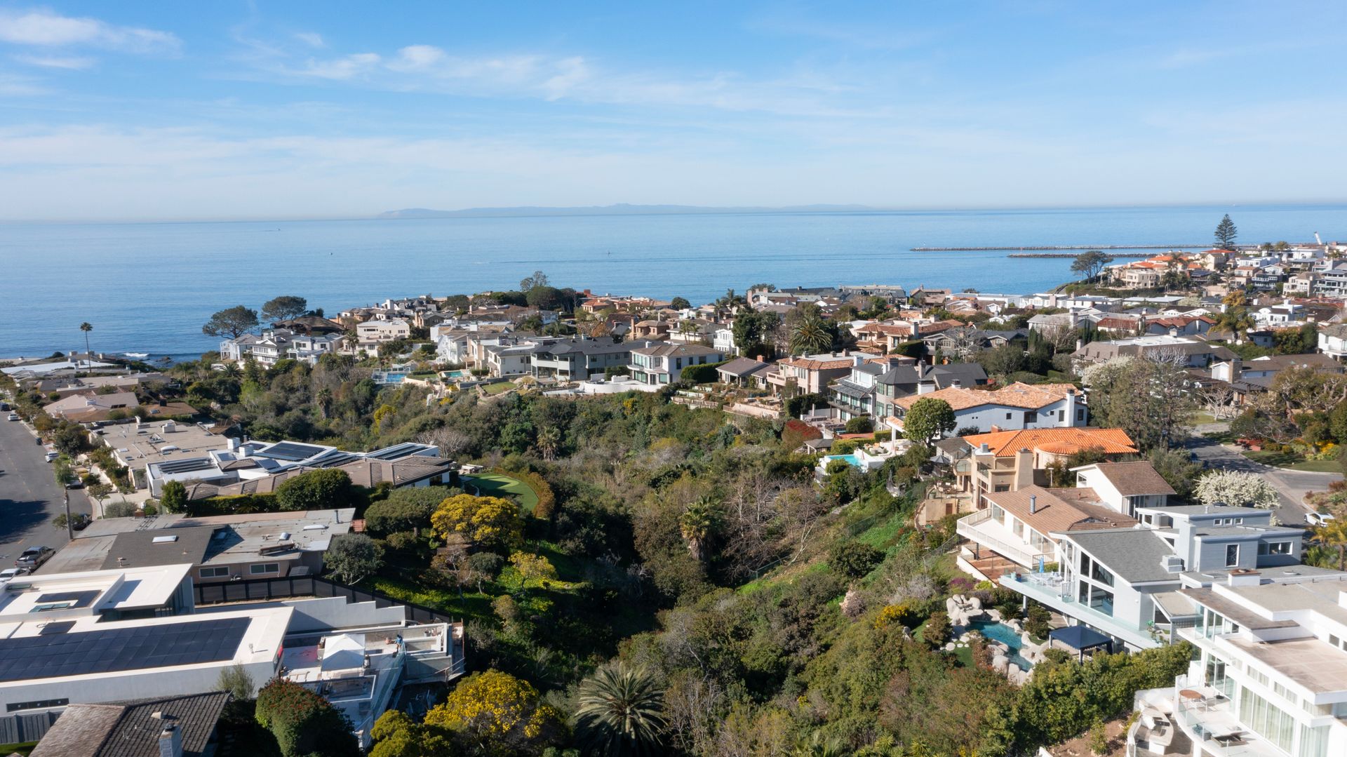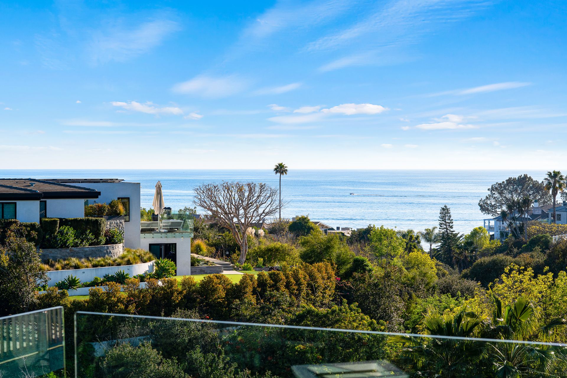 Sited in a paramount location, overlooking the Pacific Ocean, this symbolic residence offers 3 bedrooms plus bonus room and 3.5 baths. Designed by the locally noted architect, Jeffrey A Dahl, the home exhibits intricate pitches, 3 tier mono pitch roof, clever angles, geometric shapes, and walls of glass cascading to lush and ocean views. The generous lot affords expansive grounds with majestic outdoor living areas to include an entertaining veranda; a pool terrace with waterfall features; captivating views; and expansive lawns. Greeted by a grand, two-story, glass enclosed formal entry, the main living quarters are highlighted by encompassed ocean views, vaulted ceilings, organic lighting, open floorplan, and elegant design details. The top floor supplies a viewing terrace with mini kitchen and huge bonus room that can easily be converted to a 4th bedroom or guest quarters. The primary wing is replete with plentiful storage, private bath, separate retreat with fireplace, integral shelving and direct backyard access. Live the Shorecliffs lifestyle with access to exclusive beaches, and proximity to exquisite dining & world-class shopping.