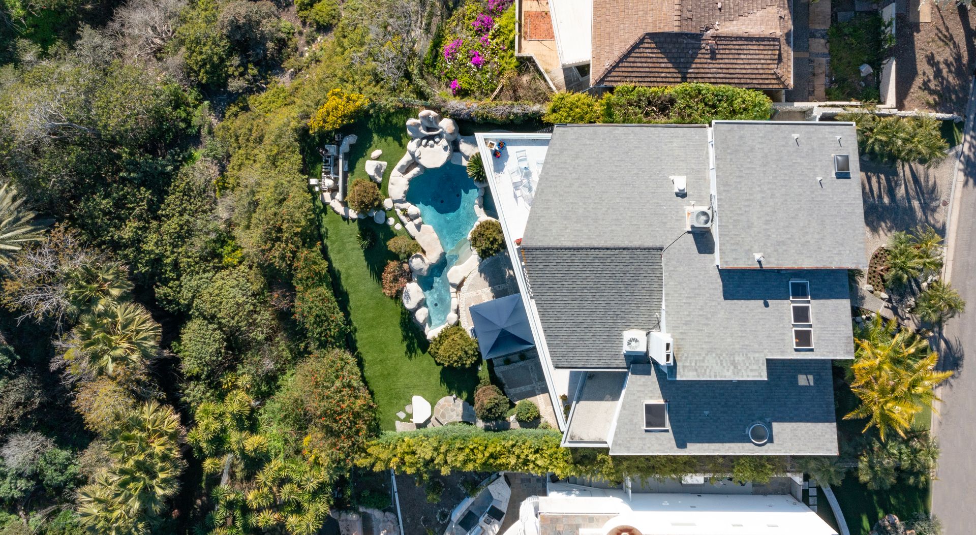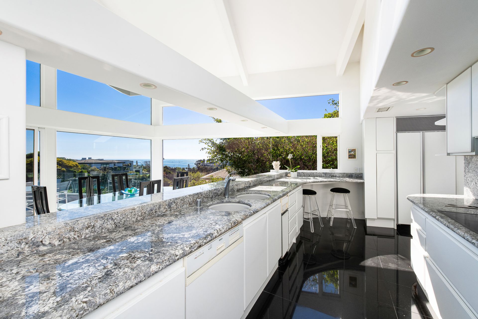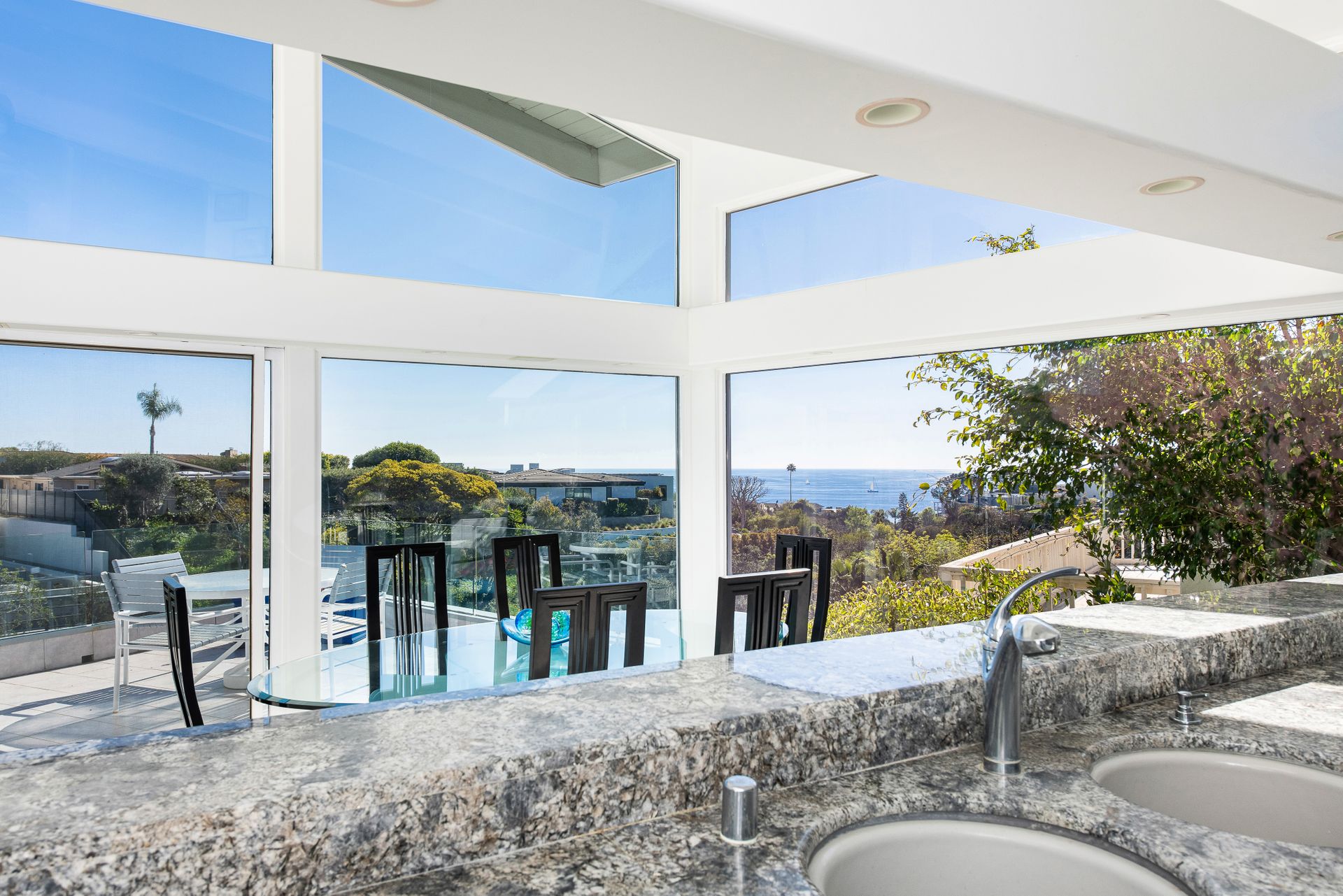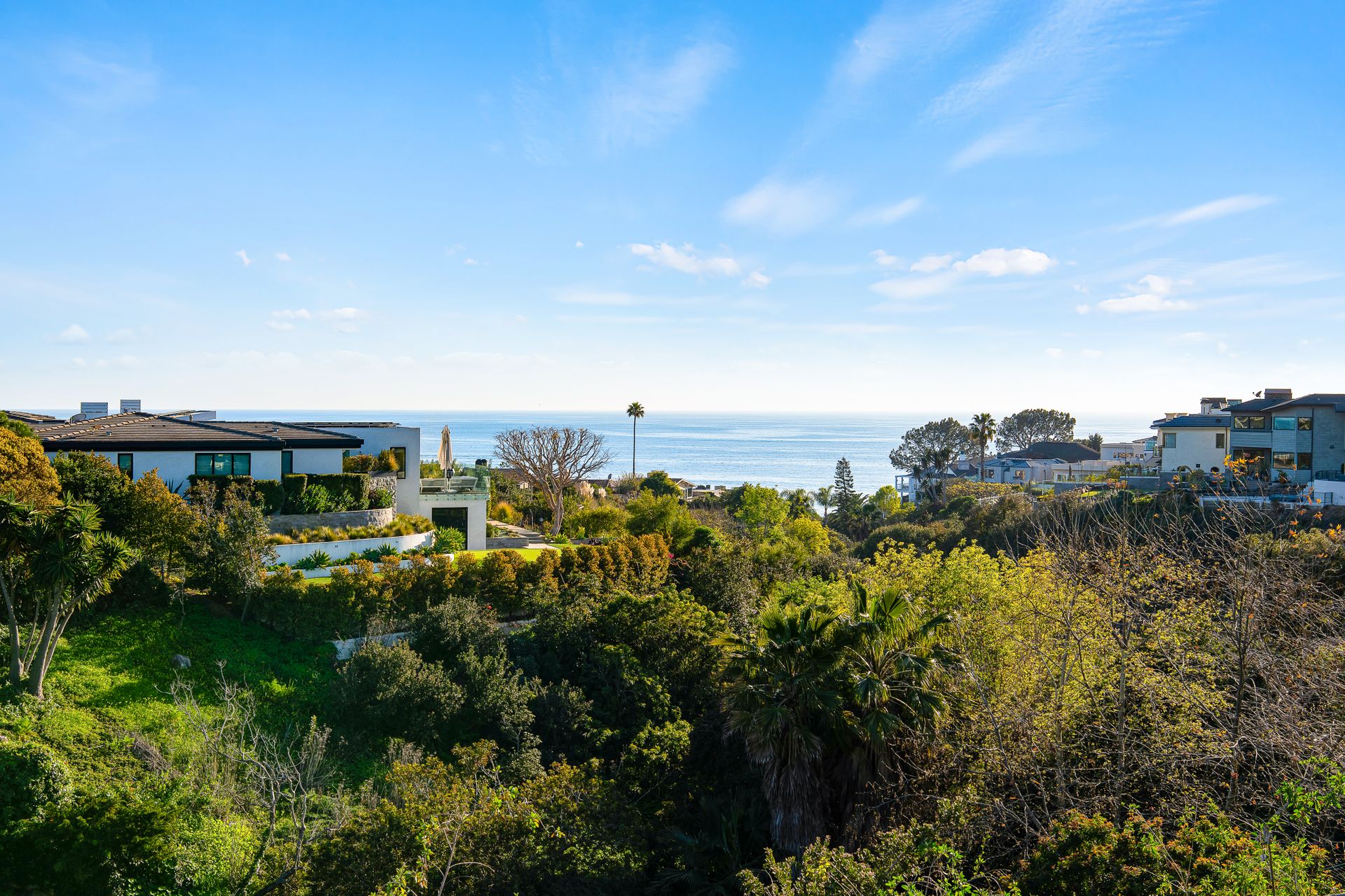 Sited in a paramount location, overlooking the Pacific Ocean, this symbolic residence offers 3 bedrooms plus bonus room and 3.5 baths. Designed by the locally noted architect, Jeffrey A Dahl, the home exhibits intricate pitches, 3 tier mono pitch roof, clever angles, geometric shapes, and walls of glass cascading to lush and ocean views. The generous lot affords expansive grounds with majestic outdoor living areas to include an entertaining veranda; a pool terrace with waterfall features; captivating views; and expansive lawns. Greeted by a grand, two-story, glass enclosed formal entry, the main living quarters are highlighted by encompassed ocean views, vaulted ceilings, organic lighting, open floorplan, and elegant design details. The top floor supplies a viewing terrace with mini kitchen and huge bonus room that can easily be converted to a 4th bedroom or guest quarters. The primary wing is replete with plentiful storage, private bath, separate retreat with fireplace, integral shelving and direct backyard access. Live the Shorecliffs lifestyle with access to exclusive beaches, and proximity to exquisite dining & world-class shopping.