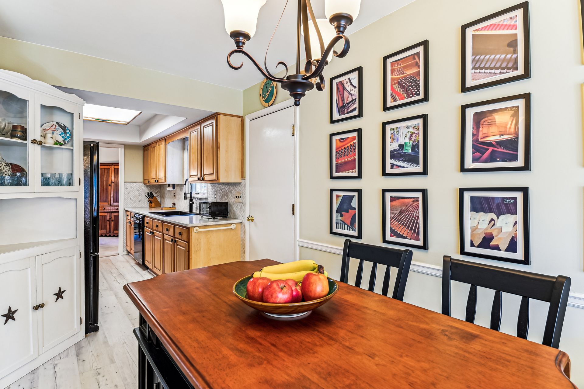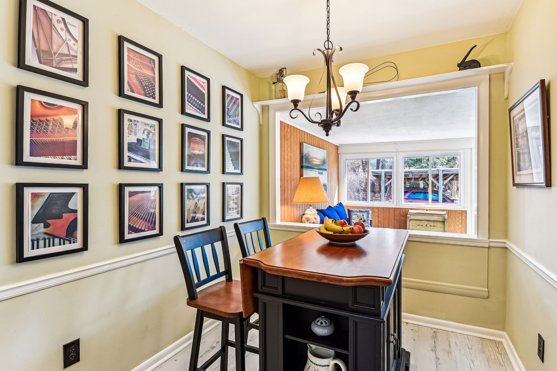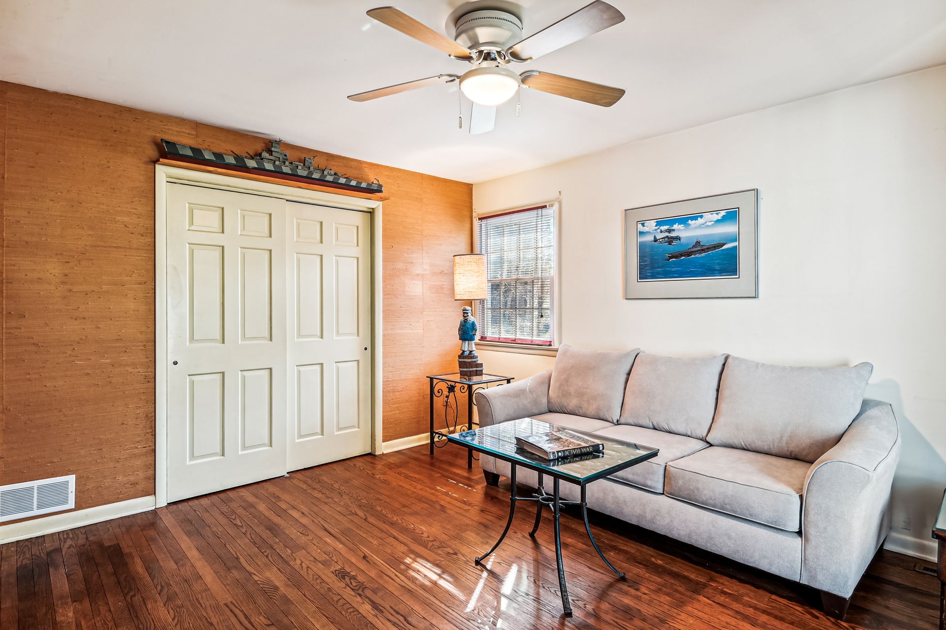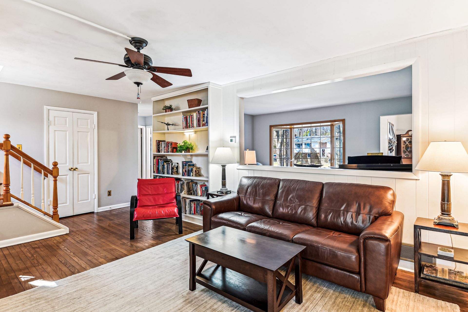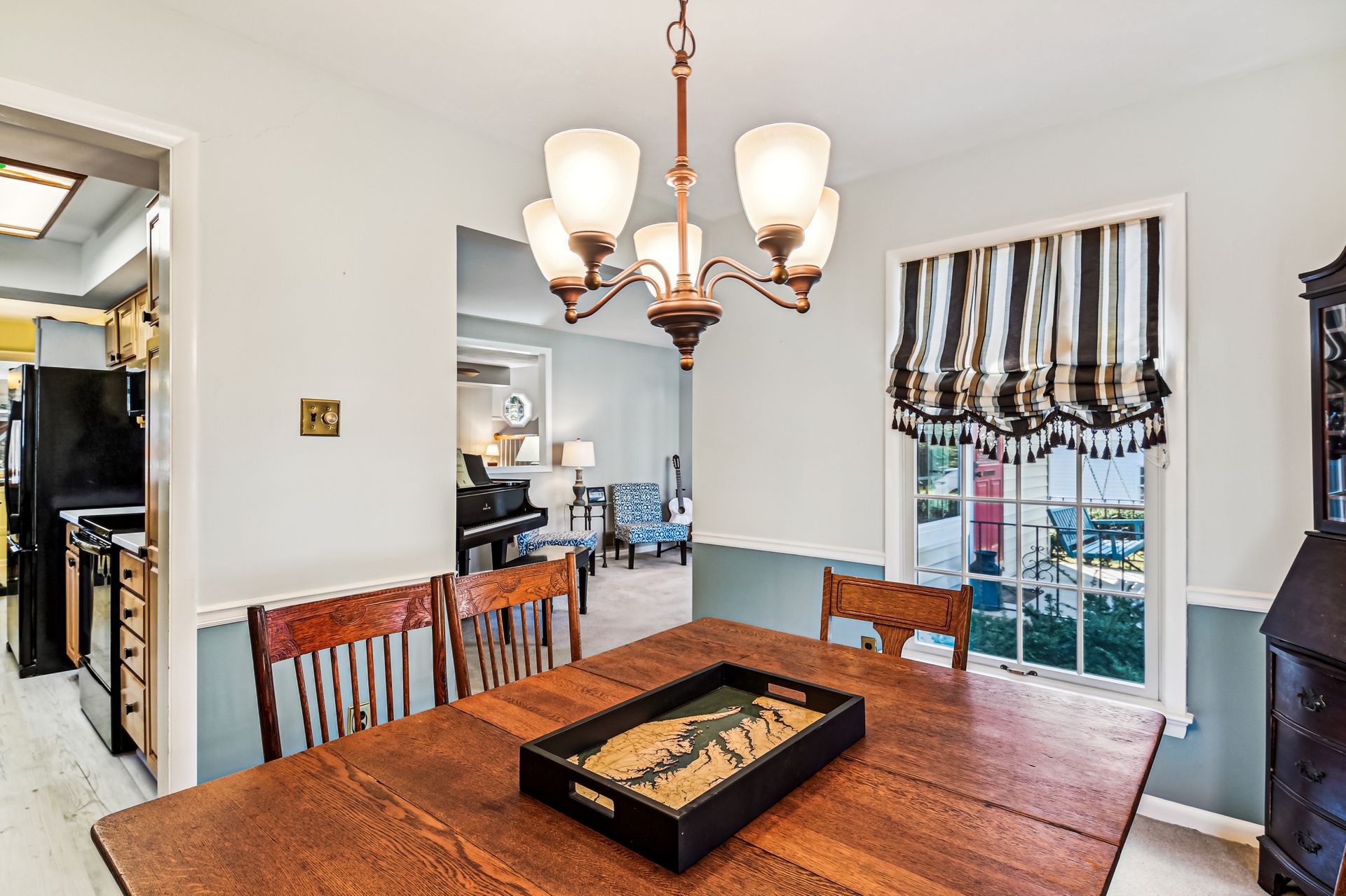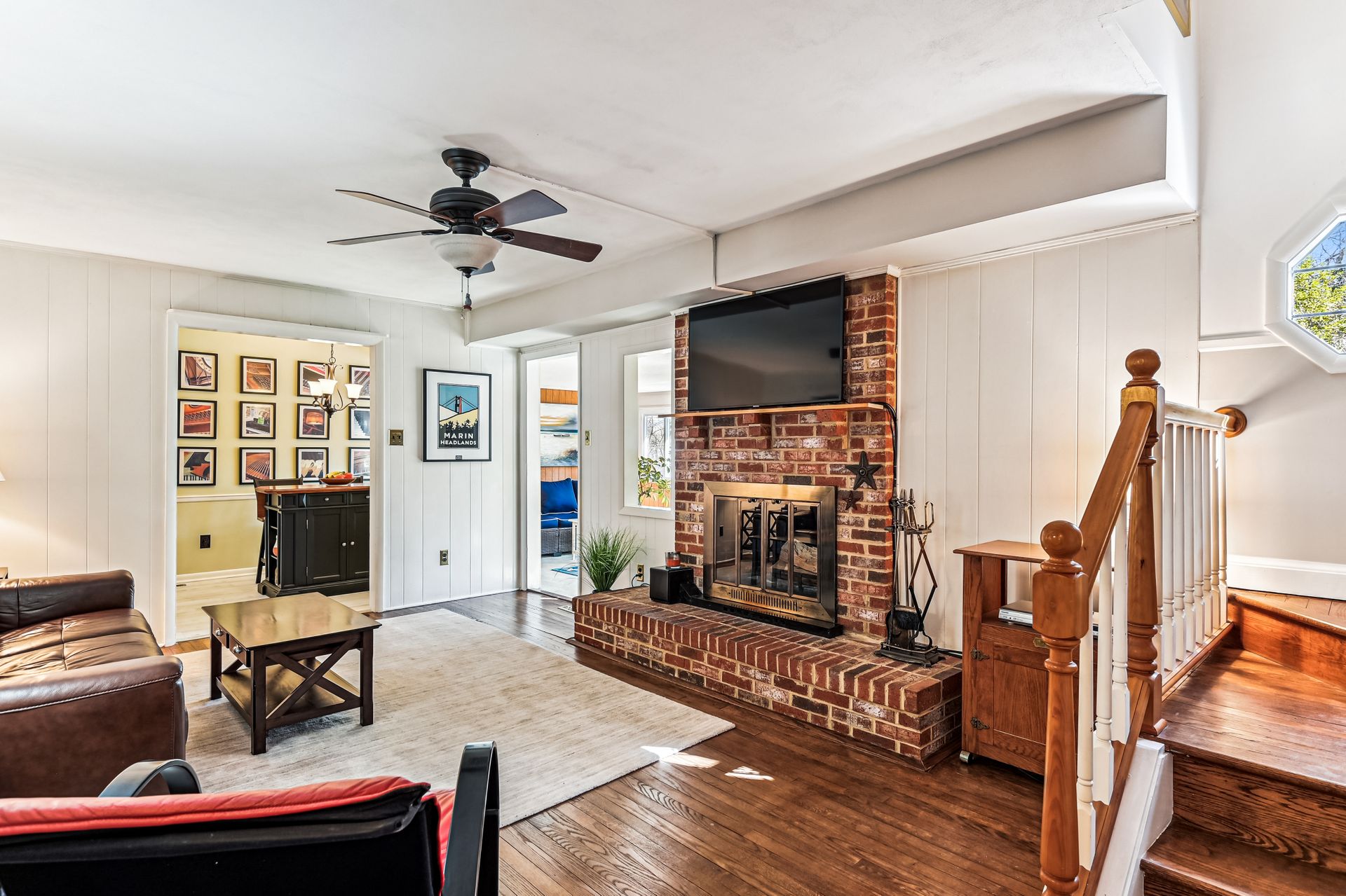 Inside you'll find a well-designed floor plan that seamlessly blends functionality with comfort. A main level bedroom or office, two full bathrooms, a formal dining room, a living room, family room with a brick woodburning fireplace, a three-season porch overlooking an adjoining outside deck, a galley kitchen and adjoining breakfast area. Throughout the home, you'll find original hardwood floors and charming details that add warmth and character to the interior. Additional bedrooms upstairs. The club basement includes a working model train layout, a work or hobby room, and a bar. There's a one-car rear entrance garage and a two-car carport out back connected to a large, paved driveway.