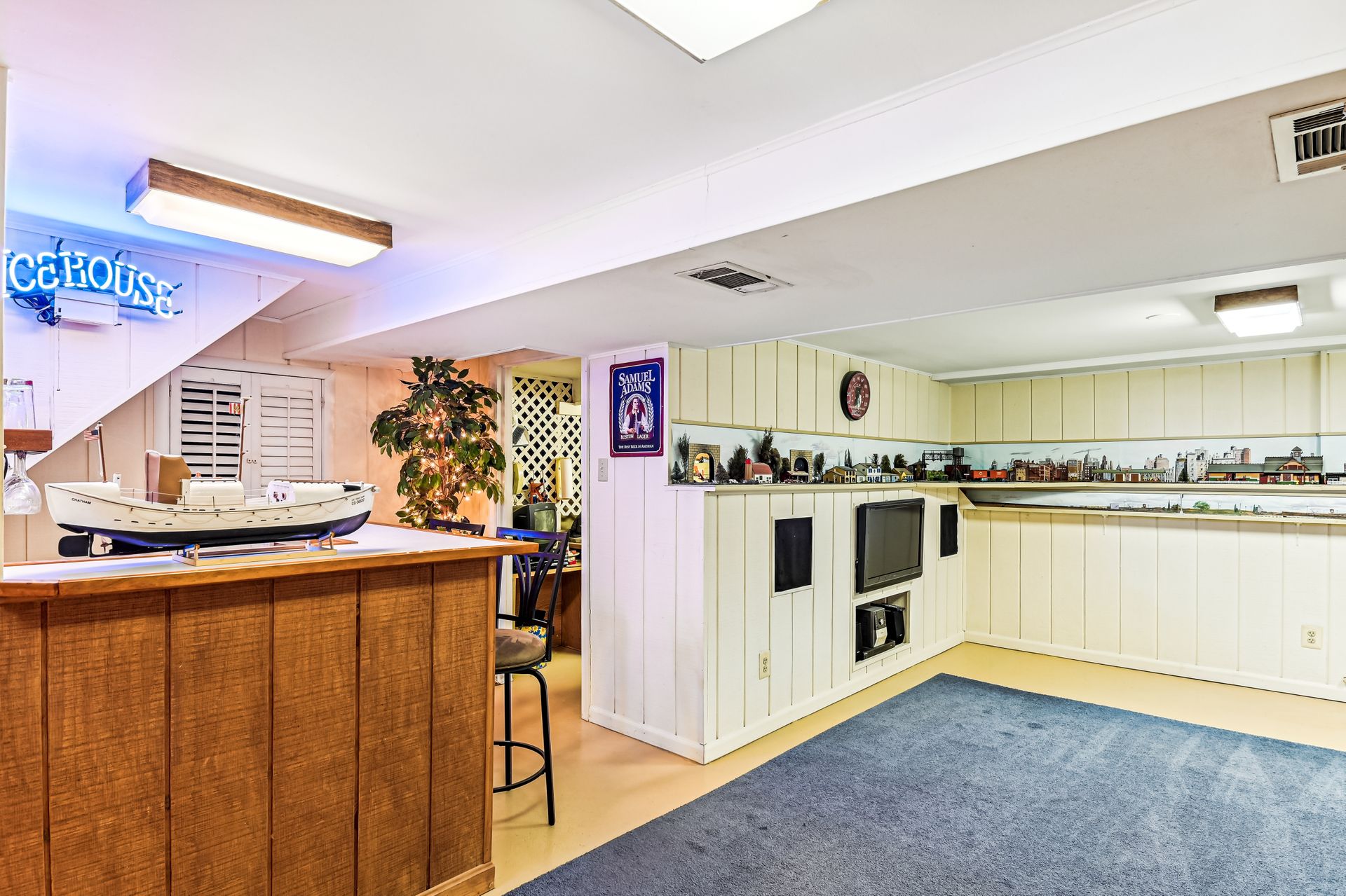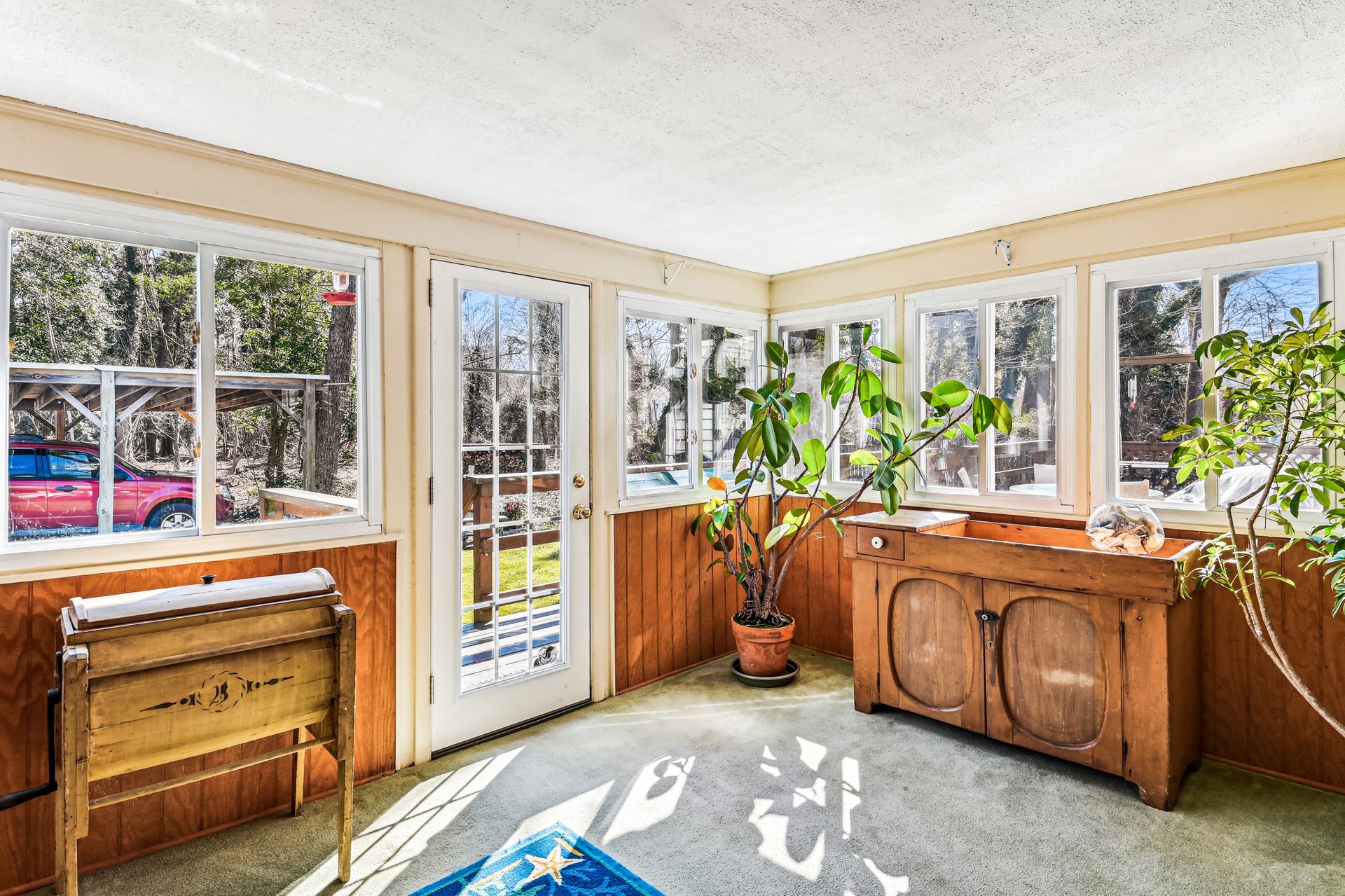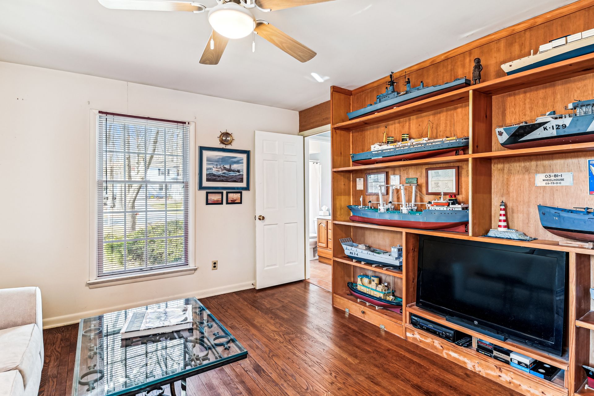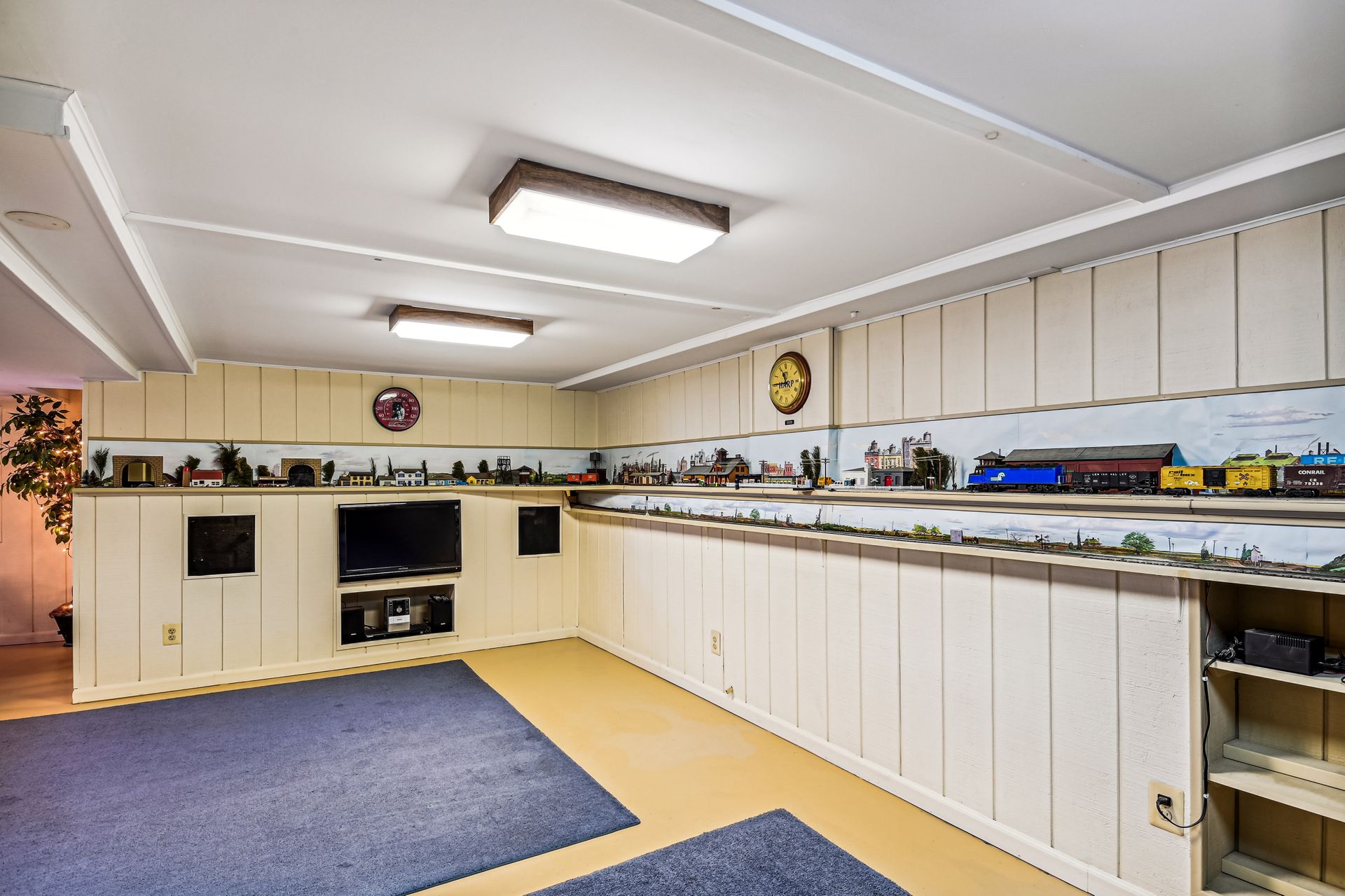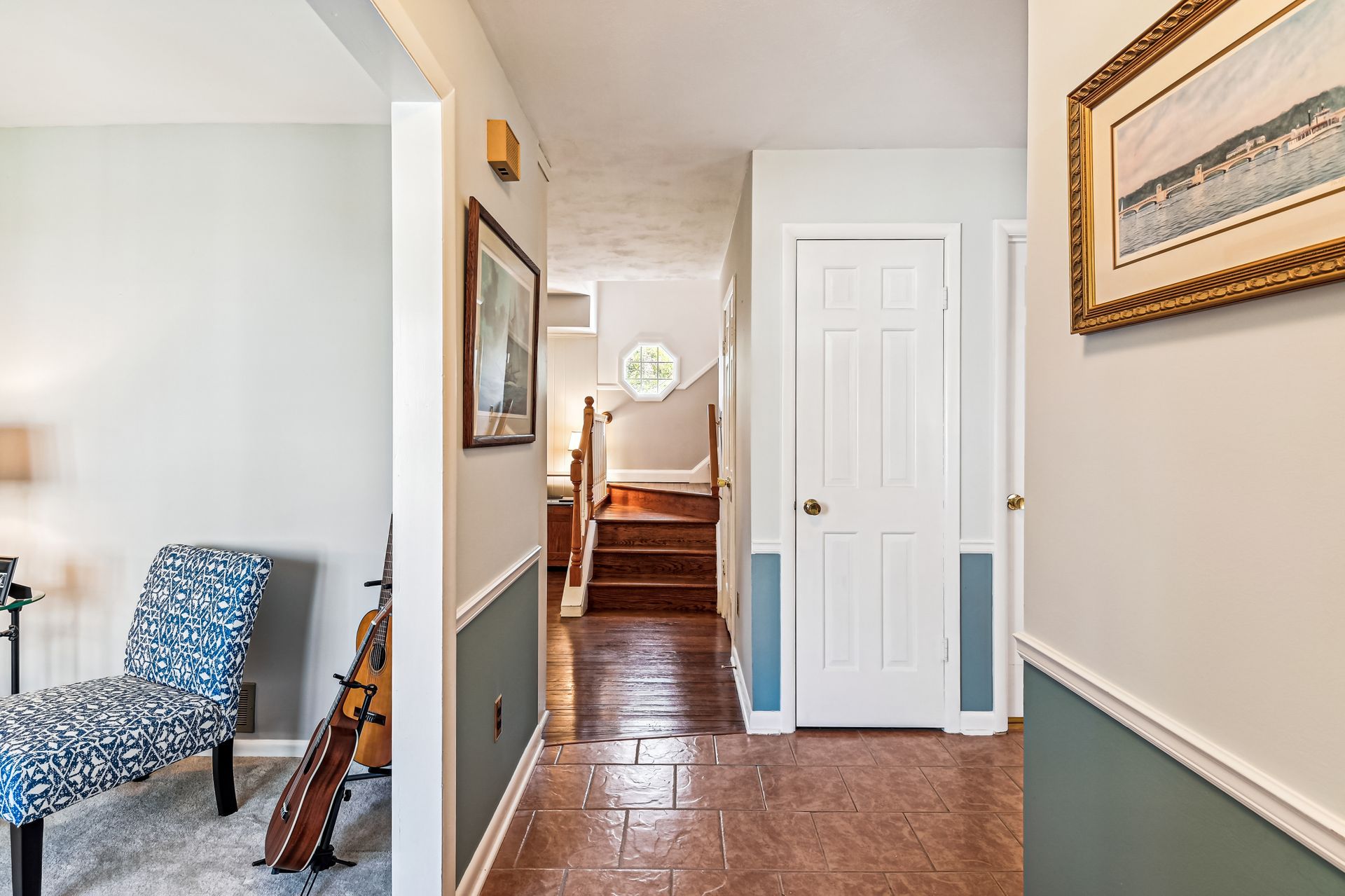 Inside you'll find a well-designed floor plan that seamlessly blends functionality with comfort. A main level bedroom or office, two full bathrooms, a formal dining room, a living room, family room with a brick woodburning fireplace, a three-season porch overlooking an adjoining outside deck, a galley kitchen and adjoining breakfast area. Throughout the home, you'll find original hardwood floors and charming details that add warmth and character to the interior. Additional bedrooms upstairs. The club basement includes a working model train layout, a work or hobby room, and a bar. There's a one-car rear entrance garage and a two-car carport out back connected to a large, paved driveway.