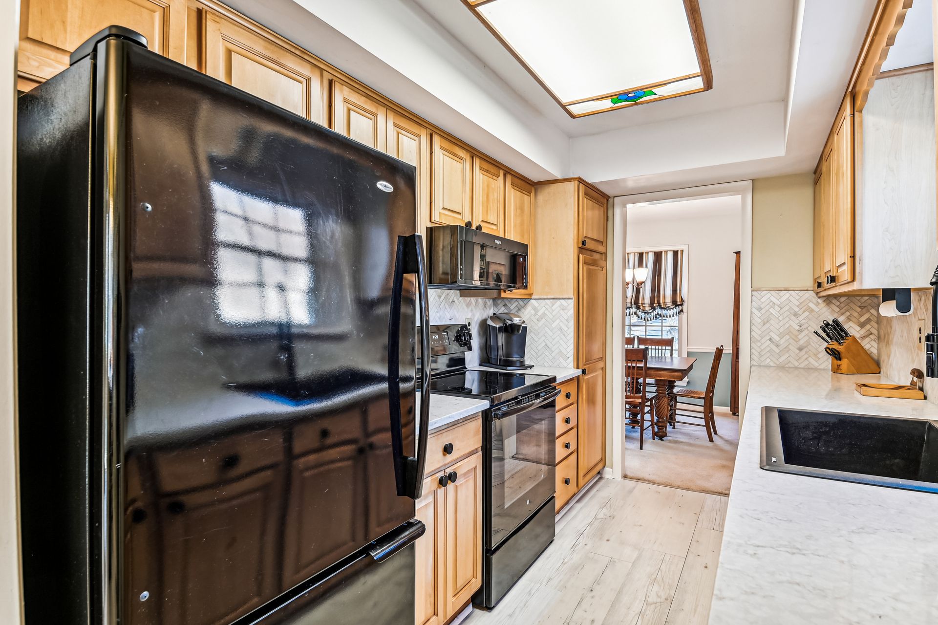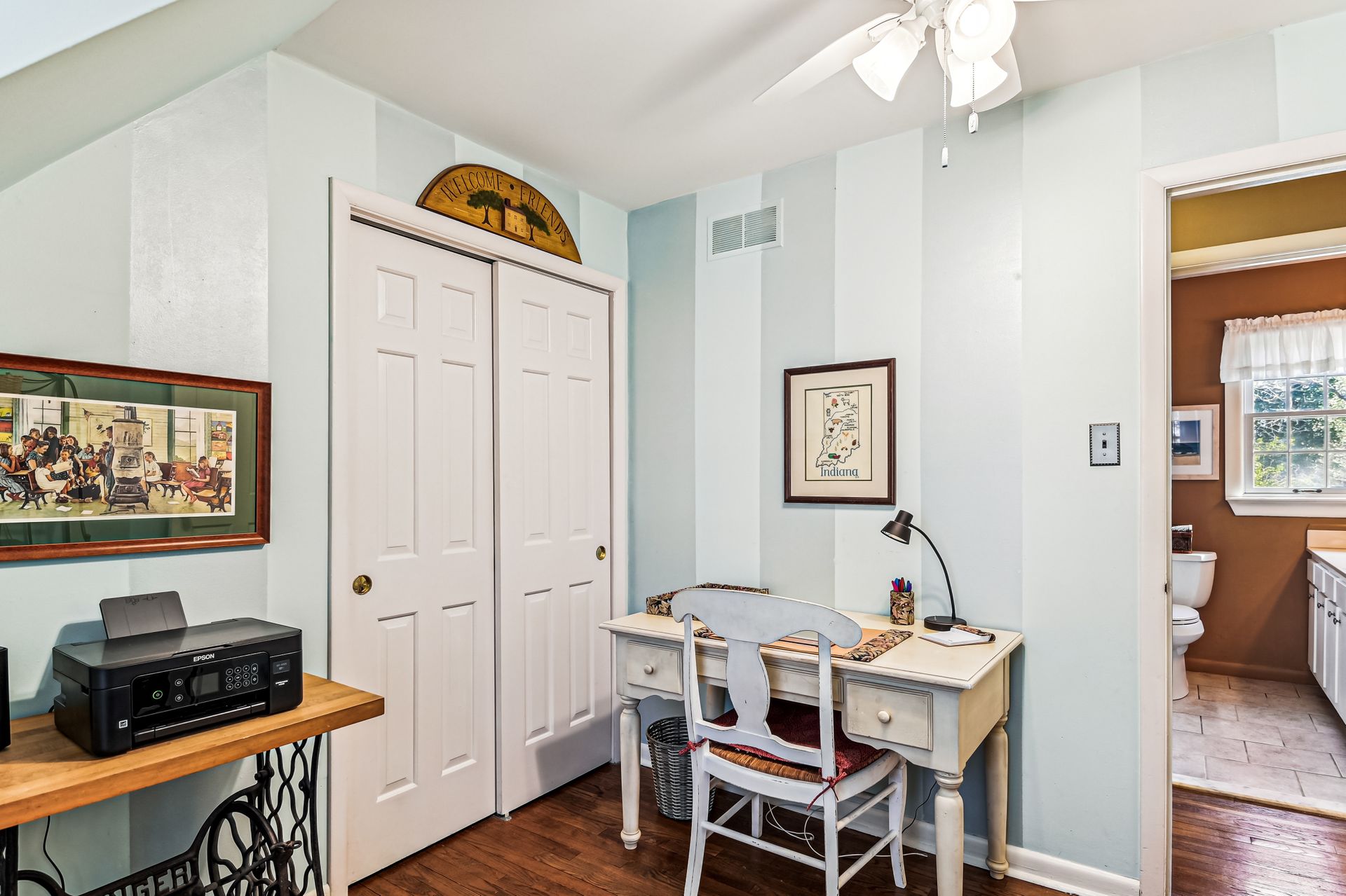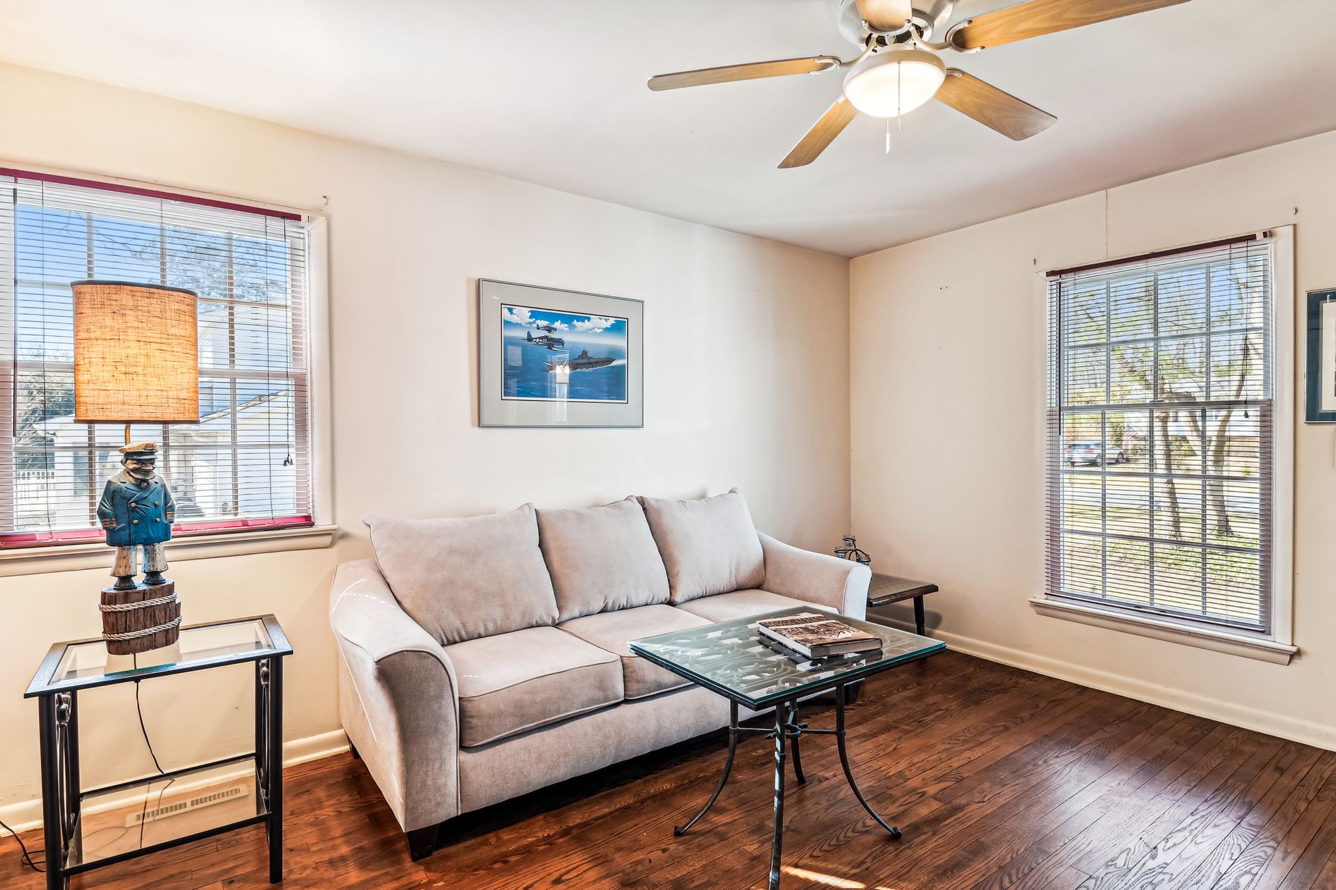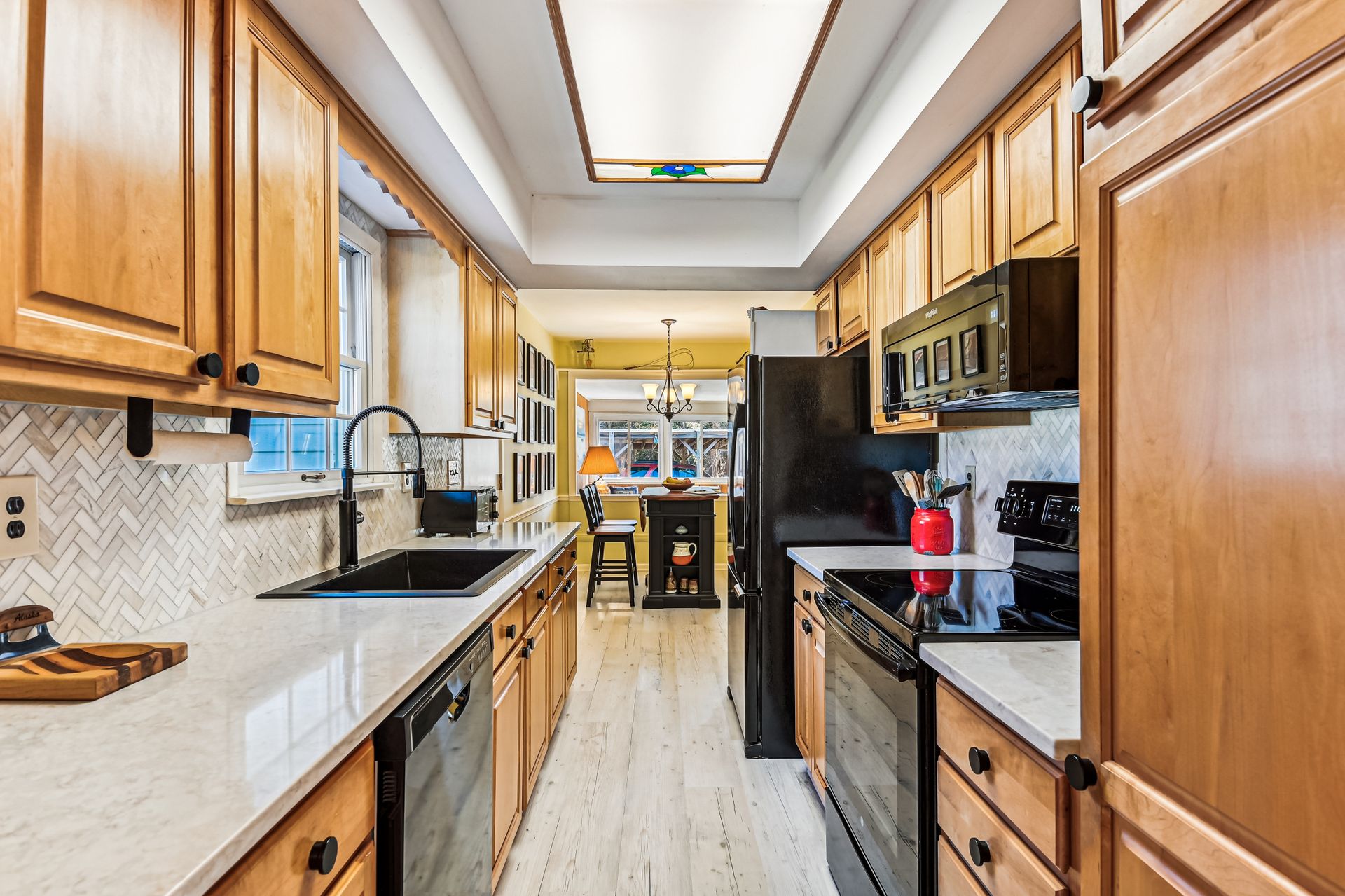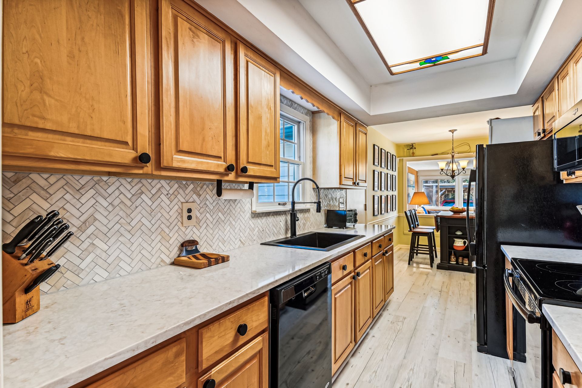 Inside you'll find a well-designed floor plan that seamlessly blends functionality with comfort. A main level bedroom or office, two full bathrooms, a formal dining room, a living room, family room with a brick woodburning fireplace, a three-season porch overlooking an adjoining outside deck, a galley kitchen and adjoining breakfast area. Throughout the home, you'll find original hardwood floors and charming details that add warmth and character to the interior. Additional bedrooms upstairs. The club basement includes a working model train layout, a work or hobby room, and a bar. There's a one-car rear entrance garage and a two-car carport out back connected to a large, paved driveway.
