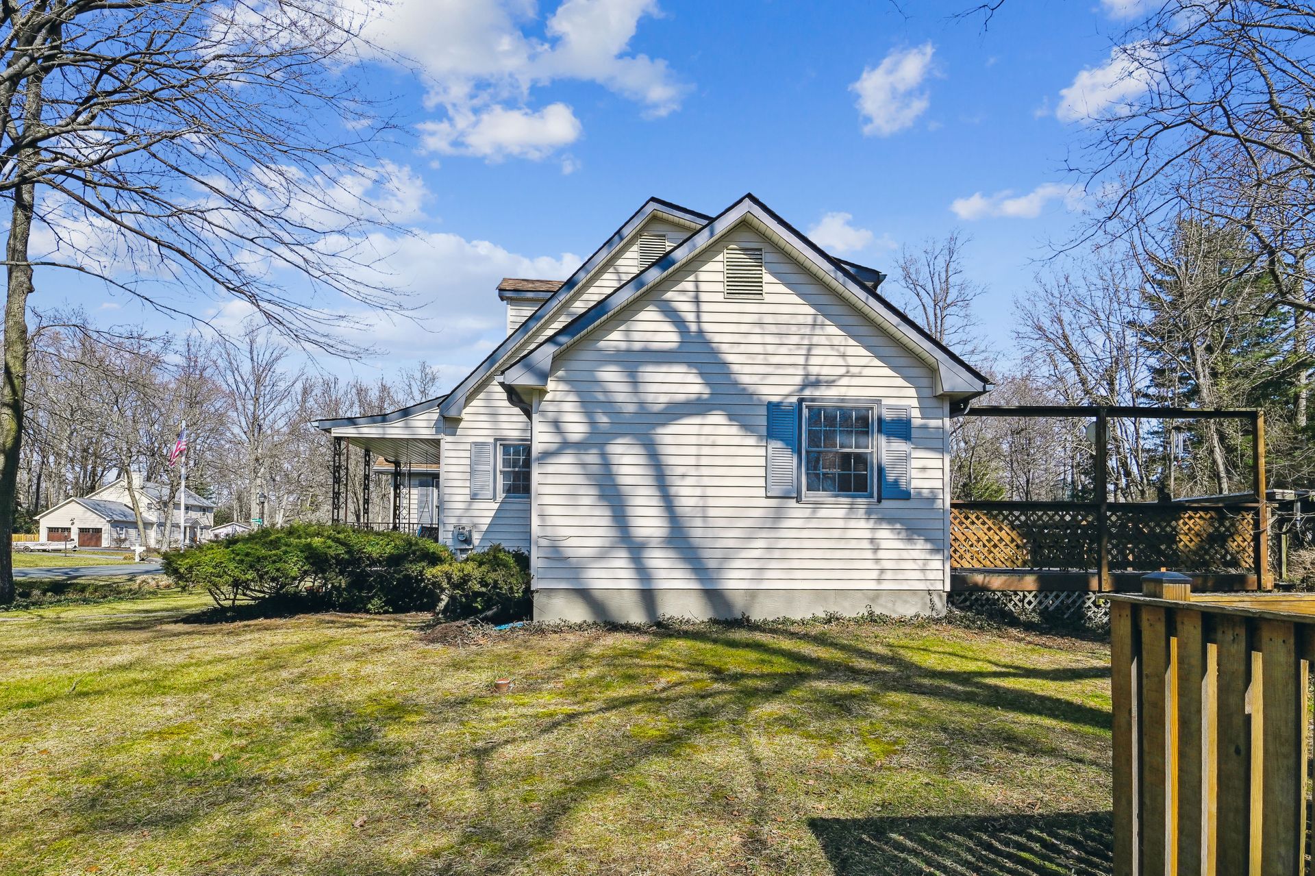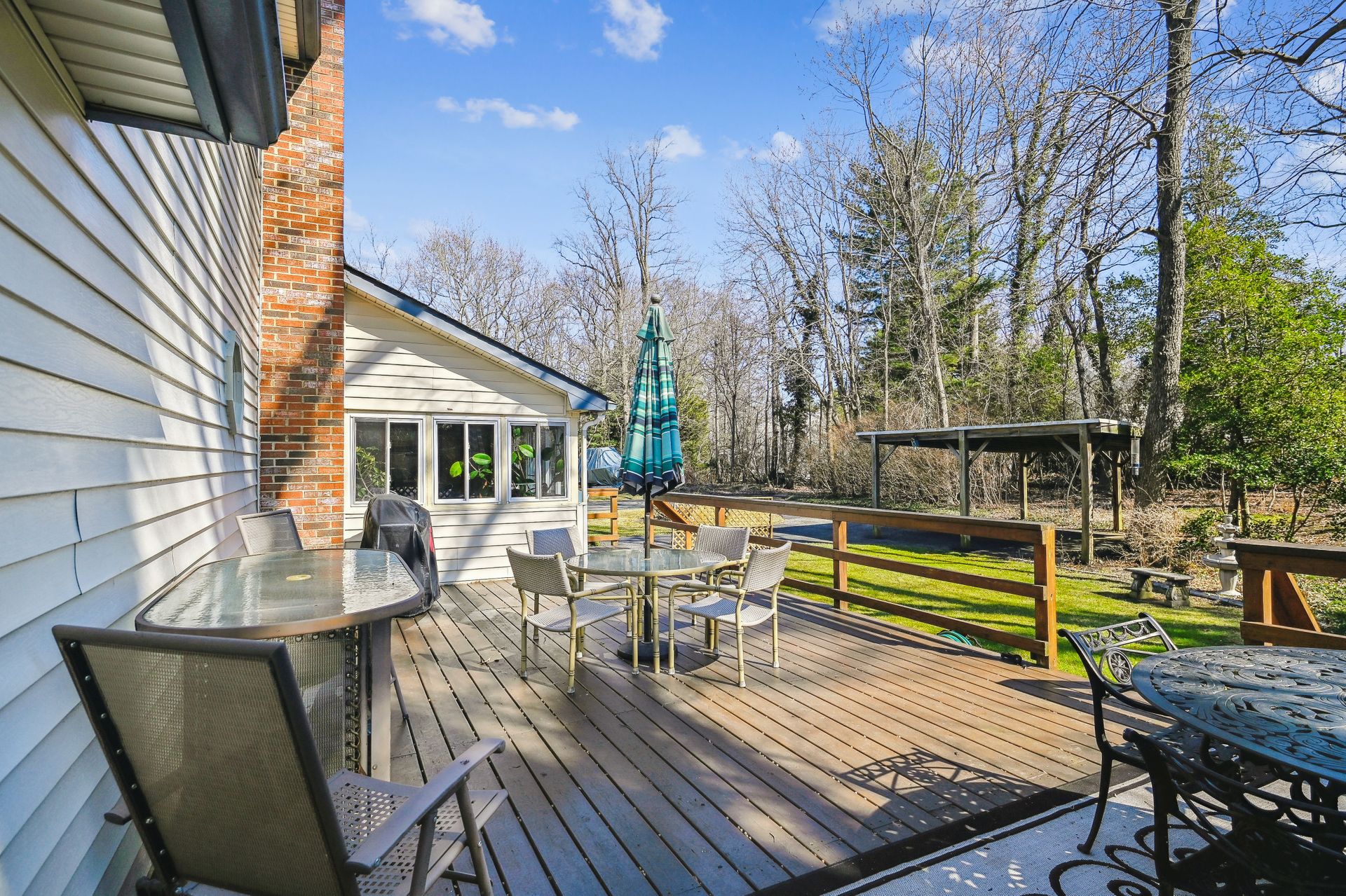 This Cape Cod Style home embodies the quintessential charm of traditional American architecture, characterized by its symmetrical facade, steep roofline and inviting front porch. The classic design elements evoke a sense of nostalgia and enduring appeal offering a warm welcome to all who enter with interiors suffused with natural light and an intelligently designed floor plan that exudes warmth and charm. Step outside onto a sprawling deck and backyard with landscaping that provides an enchanting retreat for relaxation and entertainment.