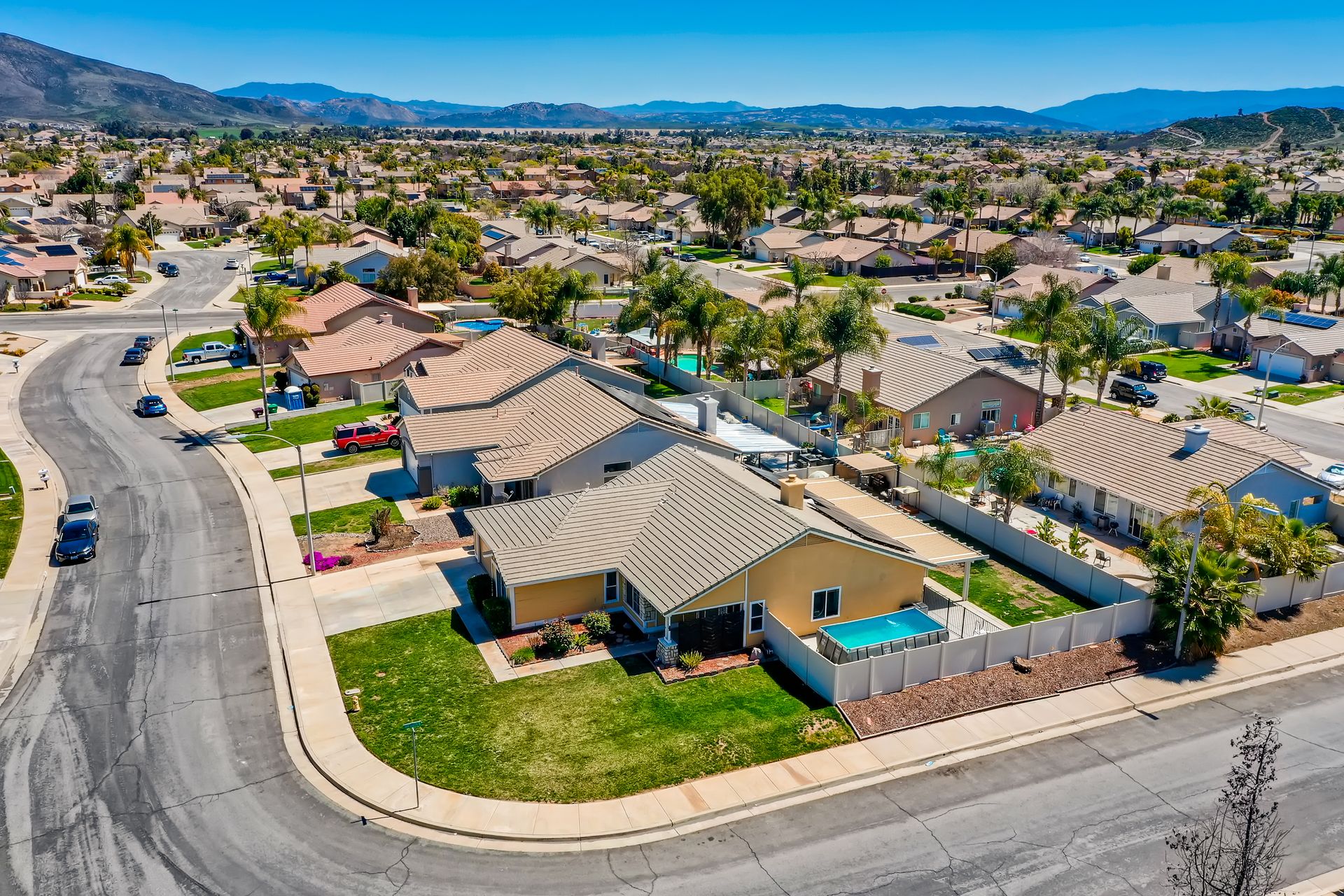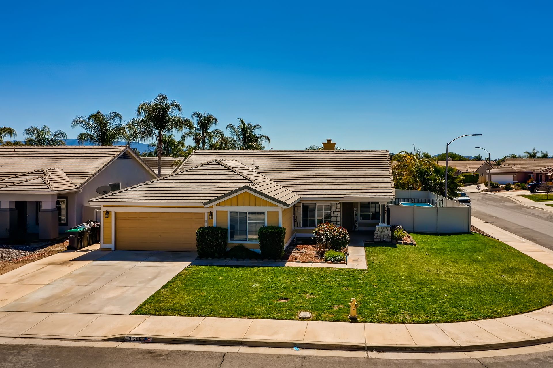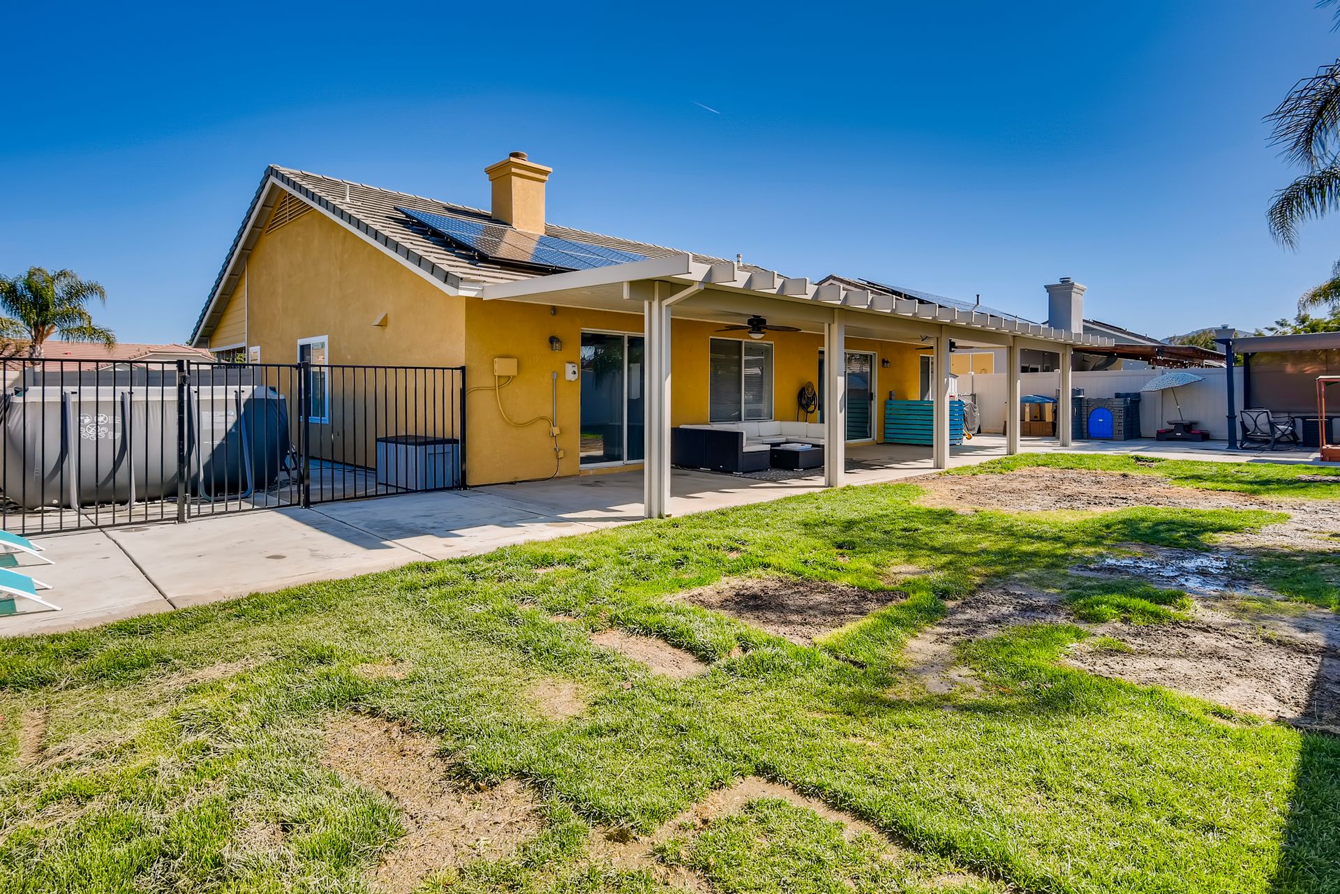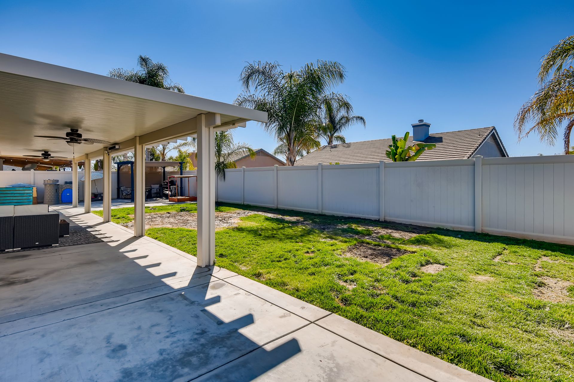 This turnkey, CORNER LOT home offers five bedrooms, two bathrooms, and a large private backyard with room for RV PARKING. Upon entering, you'll immediately be welcomed by the NEWLY installed modern gray luxury vinyl plank flooring, updated lighting, and modern designer paint throughout. The kitchen is nicely appointed with updated white galaxy granite countertops and recently installed white subway tile backsplash, upgraded, high-end stainless-steel appliances, and freshly painted white cabinetry. The open floor plan with vaulted ceilings and the dual-sided fireplace makes this home one to remember. Additional home updates include updated plumbing throughout, recently replaced AC/Furnace with SMART HOME Nest thermostat, newer ducting, a remodeled hallway bathroom vanity and toilet, and recently replaced windows in the dining room. The backyard is sure to impress with NEWER extensive hardscaping, vinyl fencing and an oversized Alumawood patio cover which features lighting, ceiling fans, and a sound bar. If that wasn't enough, the open grassy area could be the ideal spot for a play structure or just the right spot for your fur babies to bask in the sun. The 18W X 28L concrete pad is sure to satisfy all your recreational needs with room for RV parking, boat storage or maybe even an above ground pool? 22 Solar Panels, Temecula School district, LOW Taxes & LOW HOA make this a tremendous value! Hurry, this property won't last long!