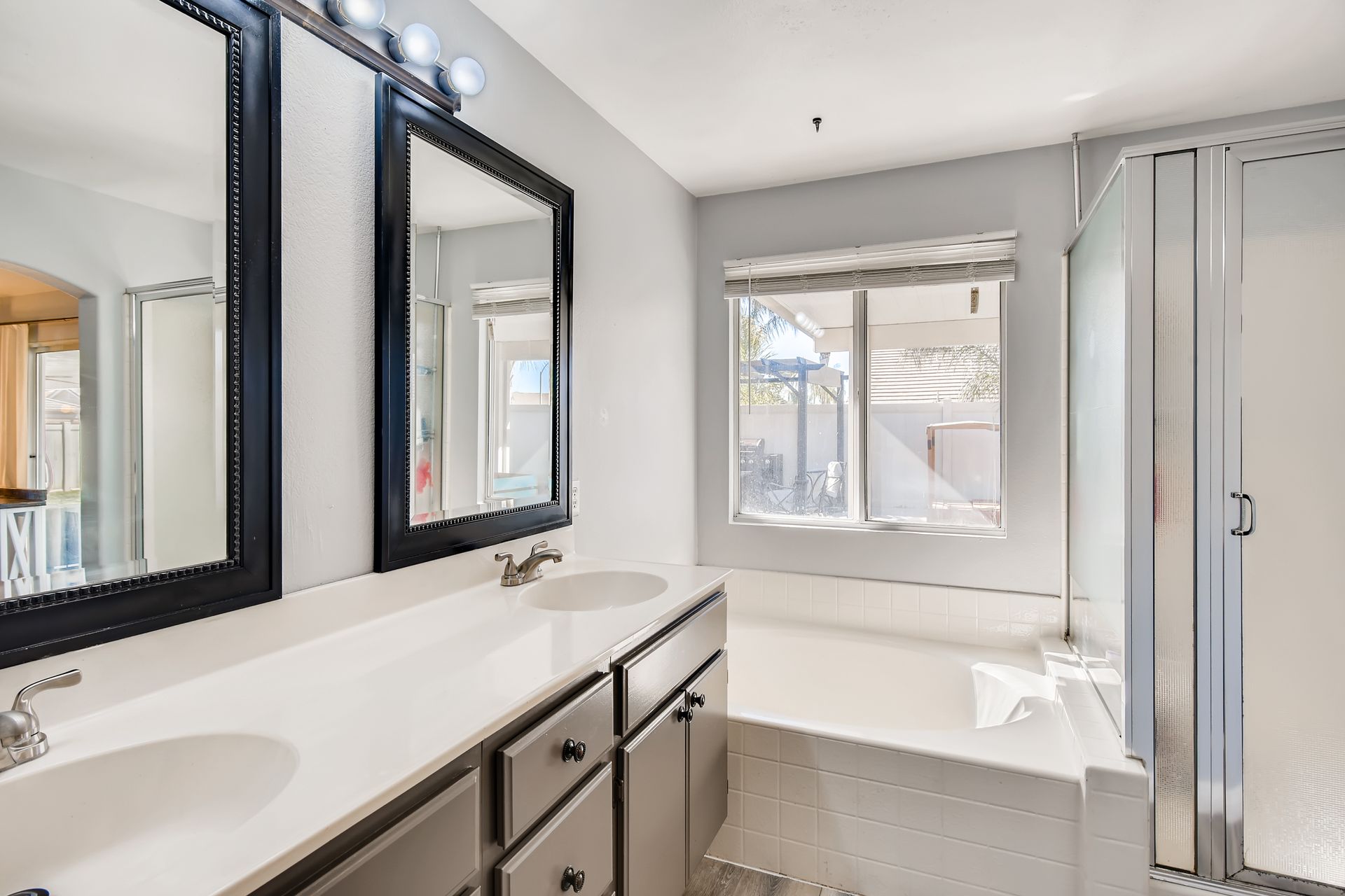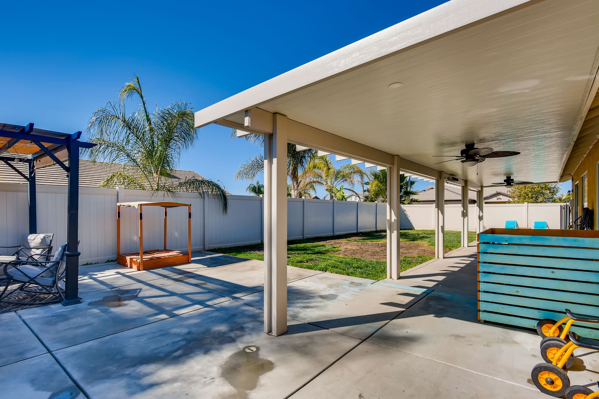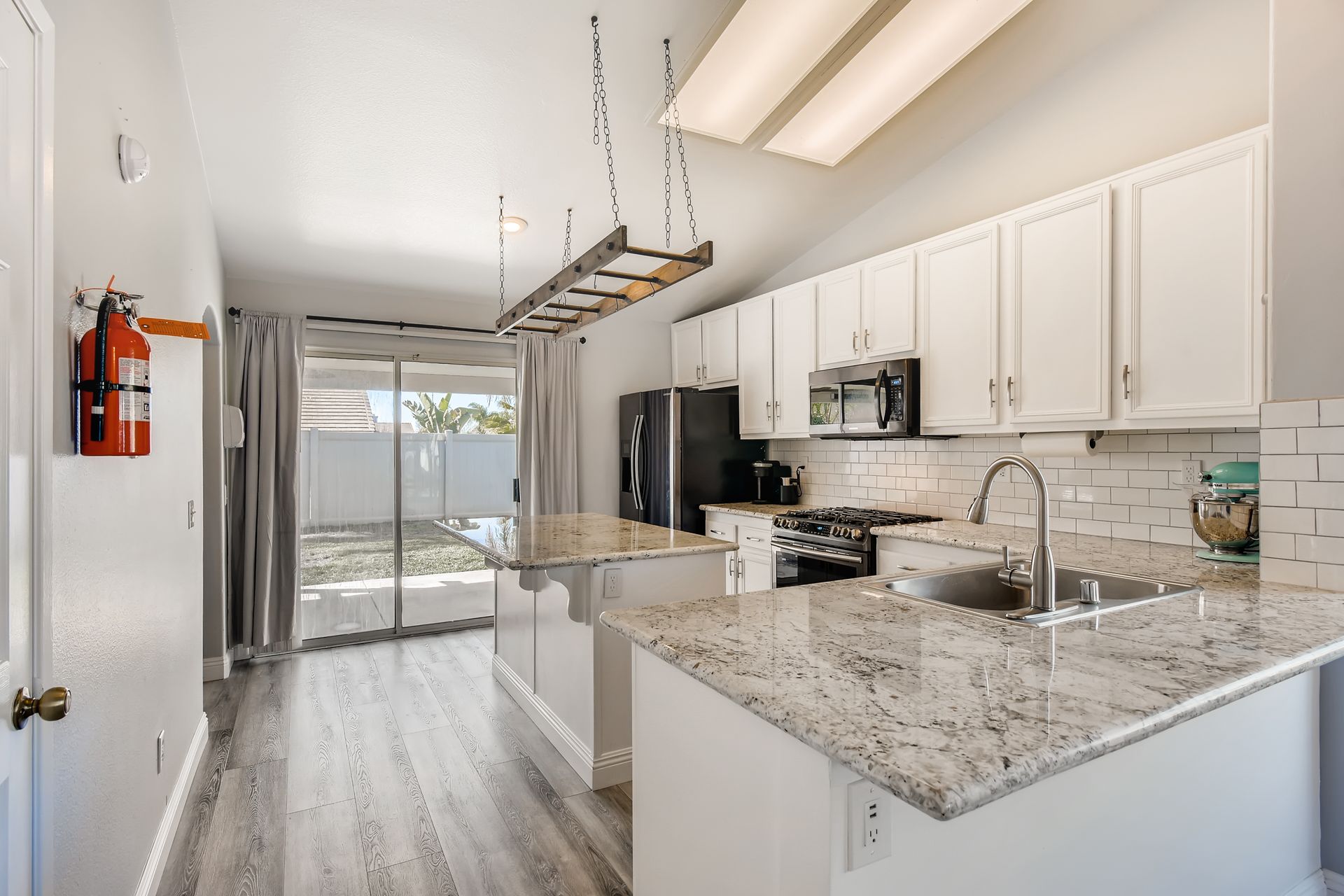 This turnkey, CORNER LOT home offers five bedrooms, two bathrooms, and a large private backyard with room for RV PARKING. Upon entering, you'll immediately be welcomed by the NEWLY installed modern gray luxury vinyl plank flooring, updated lighting, and modern designer paint throughout. The kitchen is nicely appointed with updated white galaxy granite countertops and recently installed white subway tile backsplash, upgraded, high-end stainless-steel appliances, and freshly painted white cabinetry. The open floor plan with vaulted ceilings and the dual-sided fireplace makes this home one to remember. Additional home updates include updated plumbing throughout, recently replaced AC/Furnace with SMART HOME Nest thermostat, newer ducting, a remodeled hallway bathroom vanity and toilet, and recently replaced windows in the dining room. The backyard is sure to impress with NEWER extensive hardscaping, vinyl fencing and an oversized Alumawood patio cover which features lighting, ceiling fans, and a sound bar. If that wasn't enough, the open grassy area could be the ideal spot for a play structure or just the right spot for your fur babies to bask in the sun. The 18W X 28L concrete pad is sure to satisfy all your recreational needs with room for RV parking, boat storage or maybe even an above ground pool? 22 Solar Panels, Temecula School district, LOW Taxes & LOW HOA make this a tremendous value! Hurry, this property won't last long!