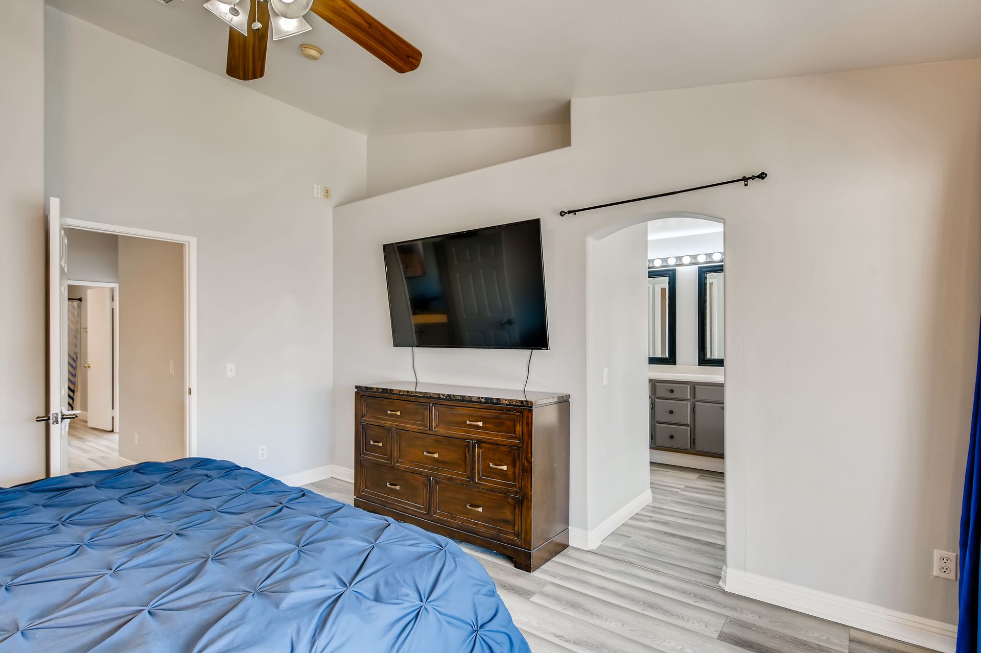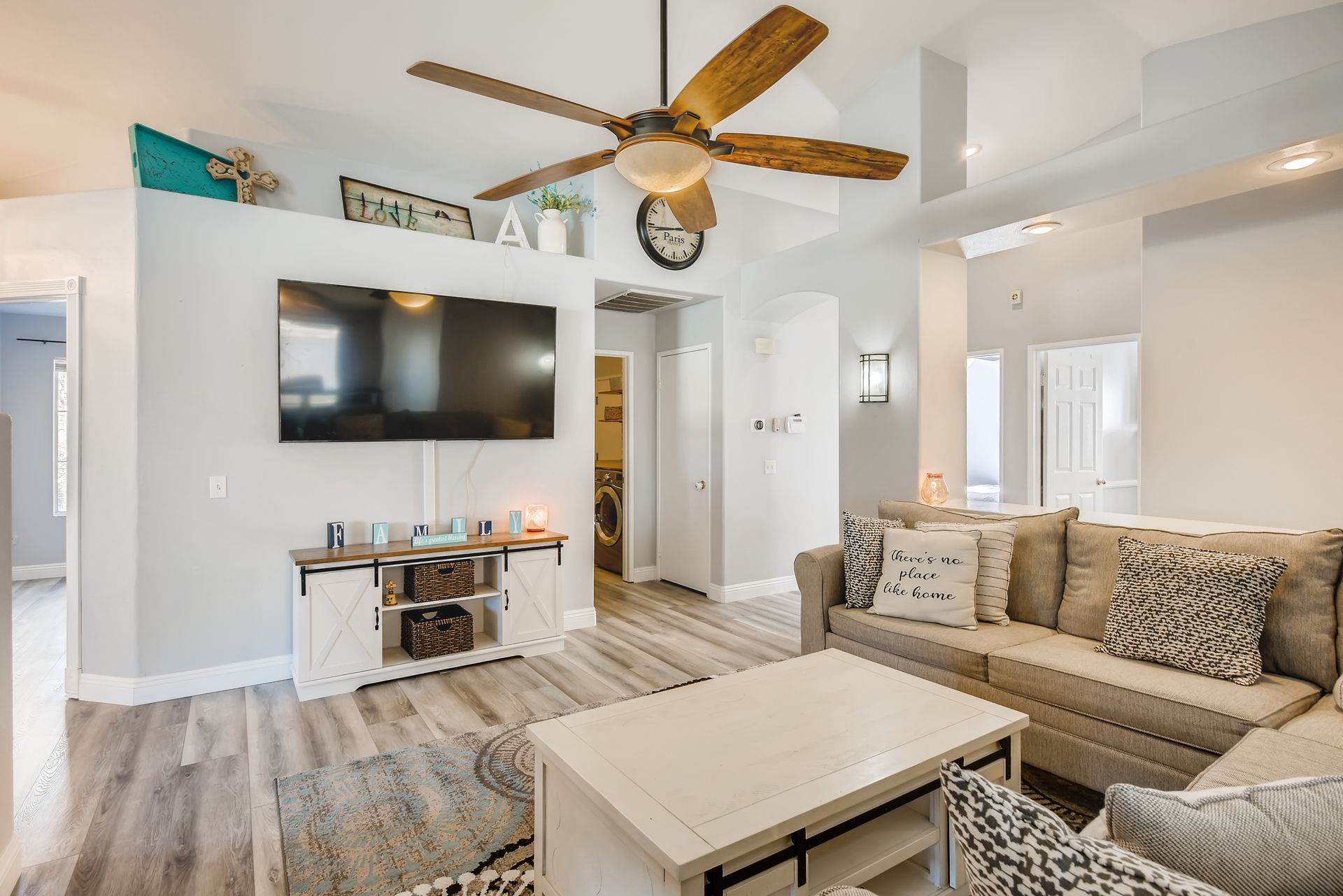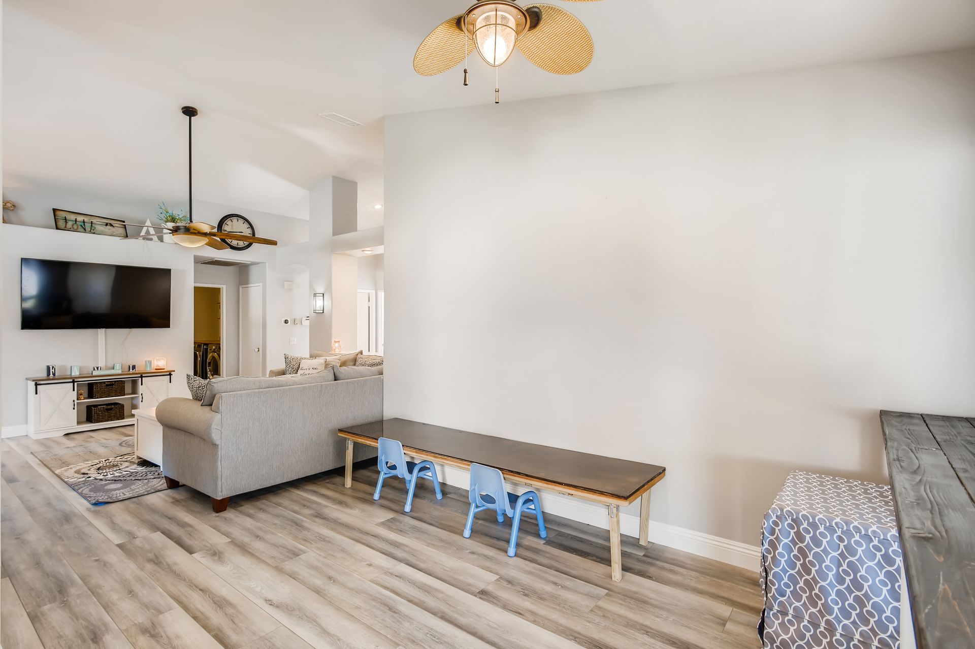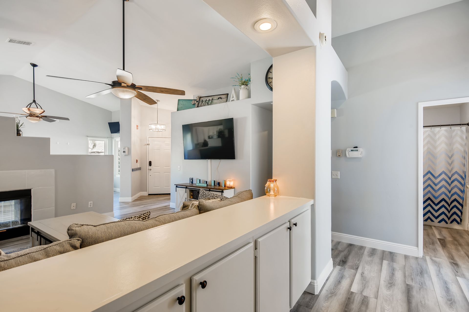 This turnkey, CORNER LOT home offers five bedrooms, two bathrooms, and a large private backyard with room for RV PARKING. Upon entering, you'll immediately be welcomed by the NEWLY installed modern gray luxury vinyl plank flooring, updated lighting, and modern designer paint throughout. The kitchen is nicely appointed with updated white galaxy granite countertops and recently installed white subway tile backsplash, upgraded, high-end stainless-steel appliances, and freshly painted white cabinetry. The open floor plan with vaulted ceilings and the dual-sided fireplace makes this home one to remember. Additional home updates include updated plumbing throughout, recently replaced AC/Furnace with SMART HOME Nest thermostat, newer ducting, a remodeled hallway bathroom vanity and toilet, and recently replaced windows in the dining room. The backyard is sure to impress with NEWER extensive hardscaping, vinyl fencing and an oversized Alumawood patio cover which features lighting, ceiling fans, and a sound bar. If that wasn't enough, the open grassy area could be the ideal spot for a play structure or just the right spot for your fur babies to bask in the sun. The 18W X 28L concrete pad is sure to satisfy all your recreational needs with room for RV parking, boat storage or maybe even an above ground pool? 22 Solar Panels, Temecula School district, LOW Taxes & LOW HOA make this a tremendous value! Hurry, this property won't last long!