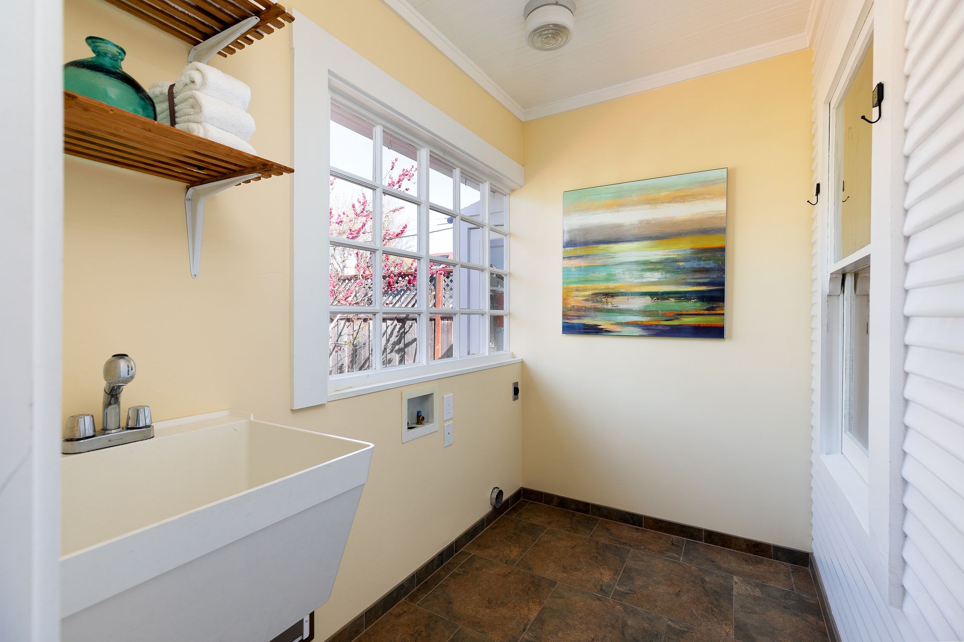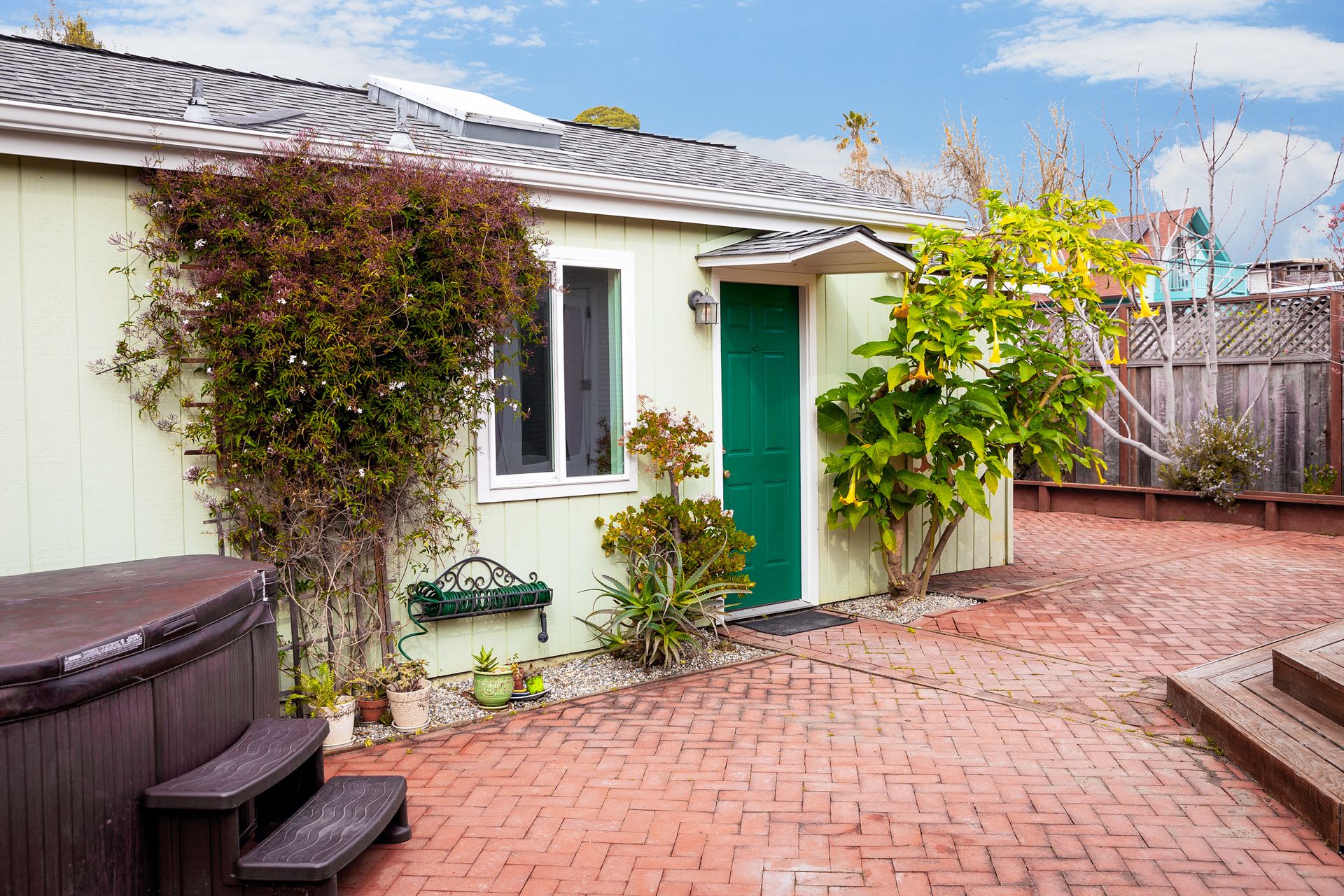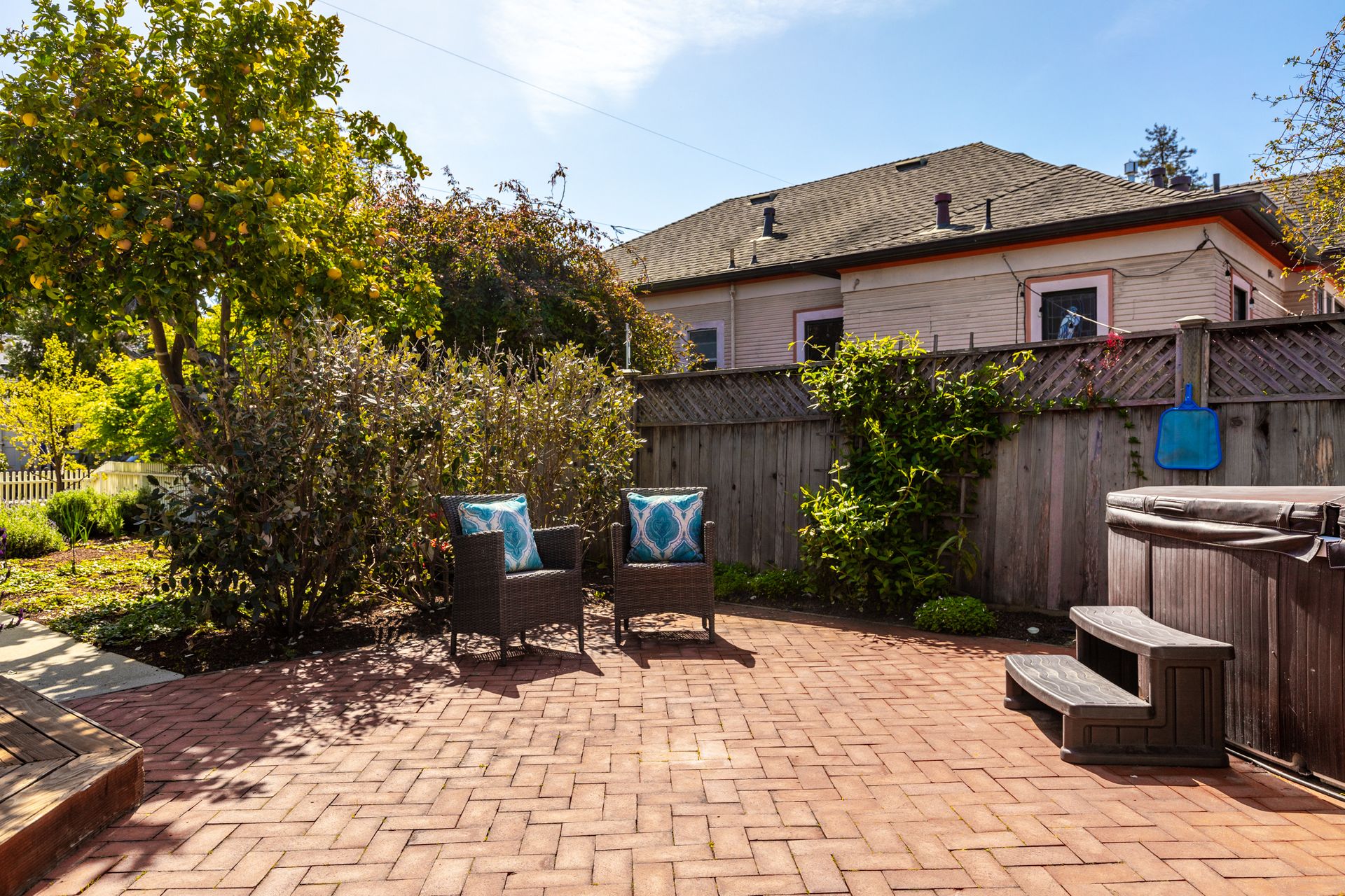 Two bedrooms in the main house, one with a gas log in a "wood stove", the other with a walk-in closet share a classic Jack and Jill bathroom. The bonus out-building permitted as a "photography studio" has alley access and a view of the garden which boasts several fruit trees. Entertain on your private back deck, and enjoy a brick patio with a hot tub as well as one parking space accessed off the alley. Linda's Seabreeze Café, La Posta and other great Seabright restaurants are nearby as well as Shoppers Corner and the Buttery Bakery. This sweet home will delight.