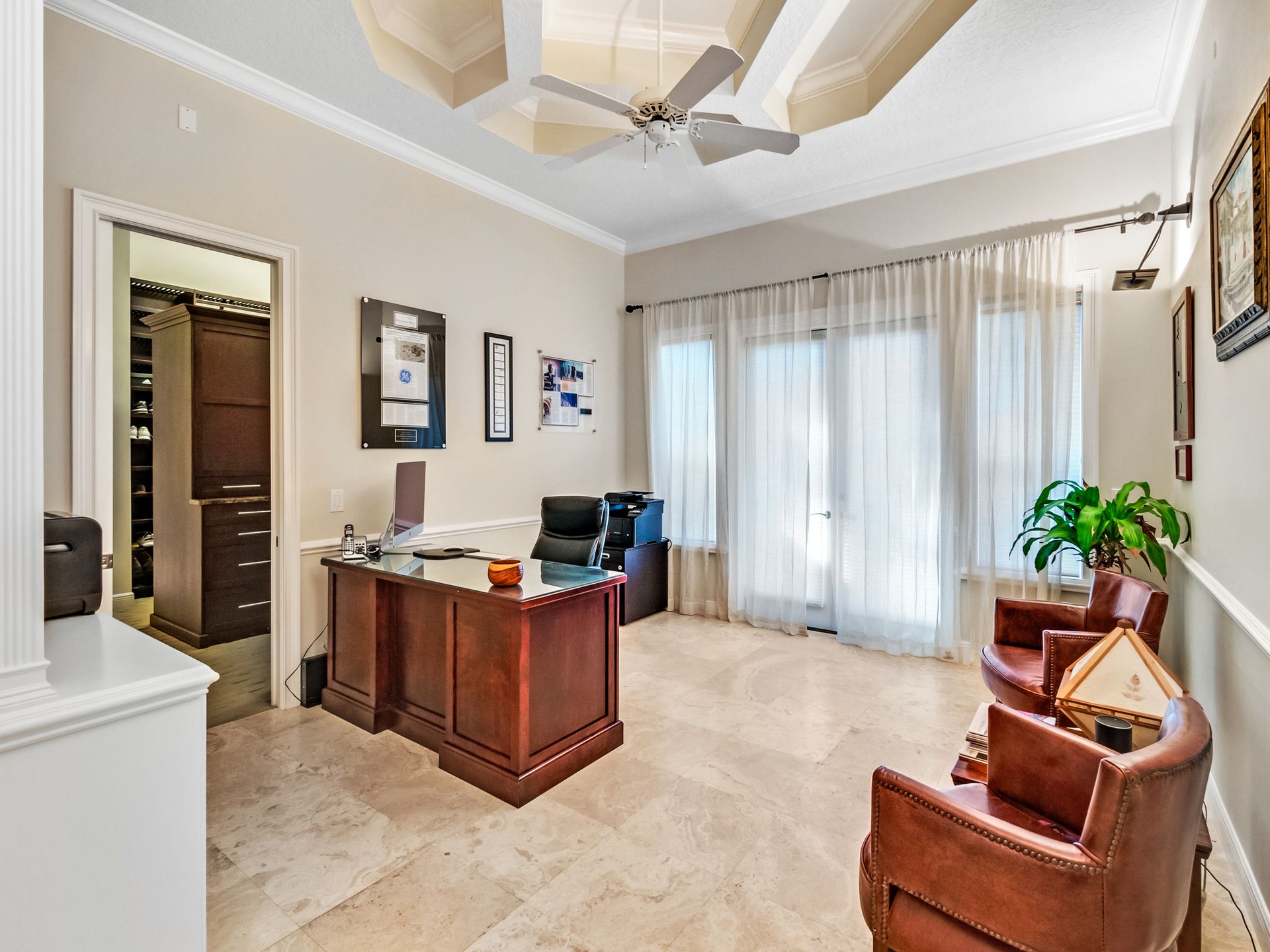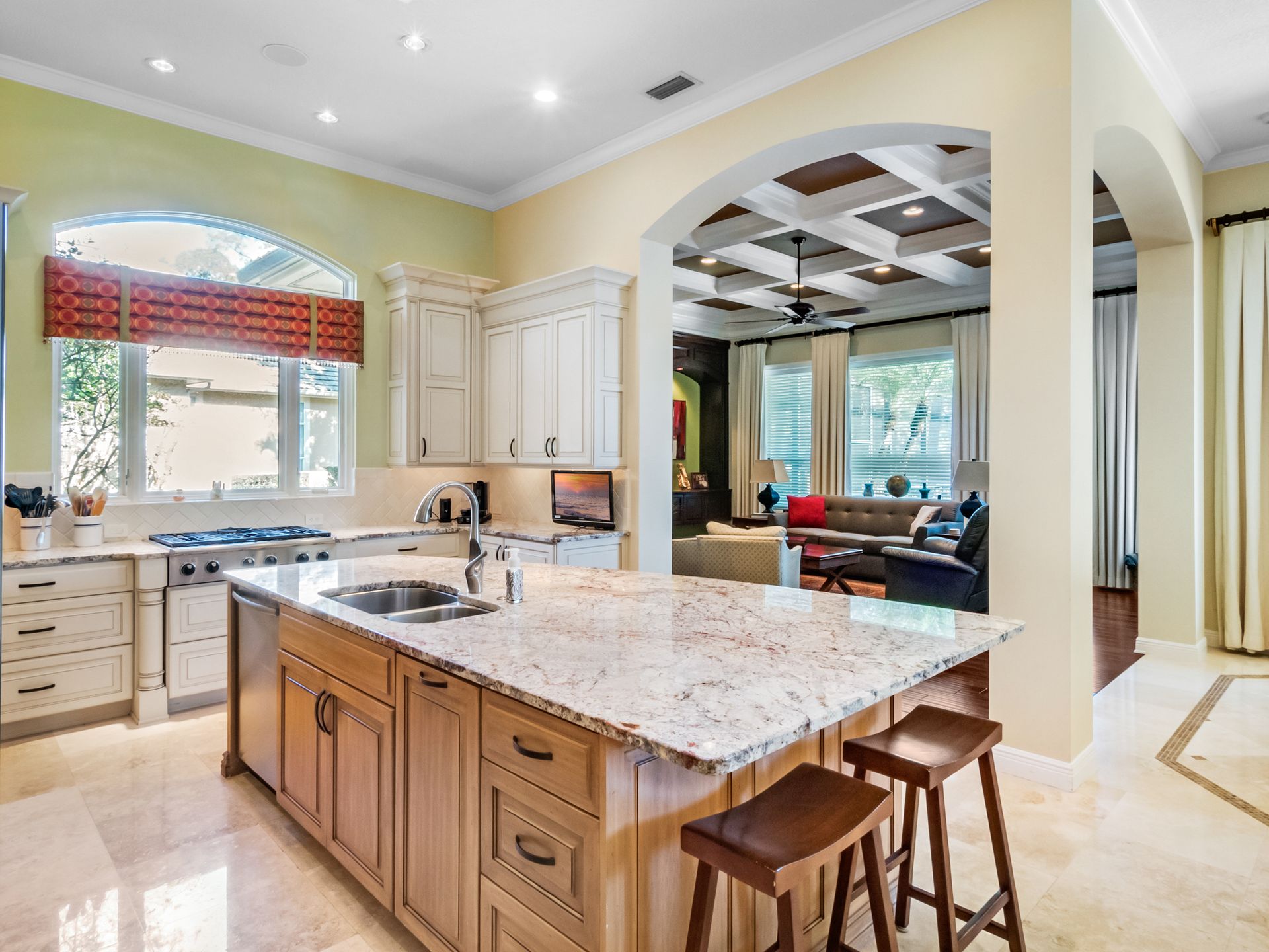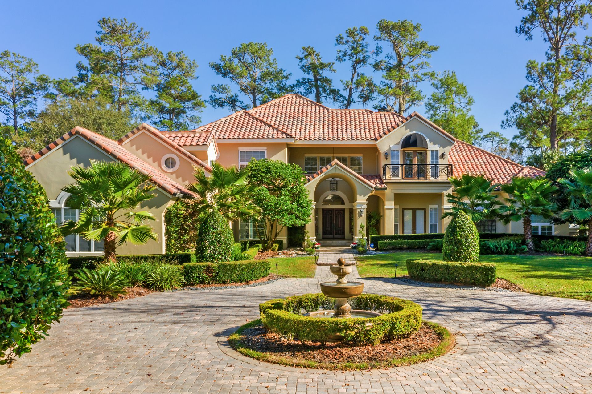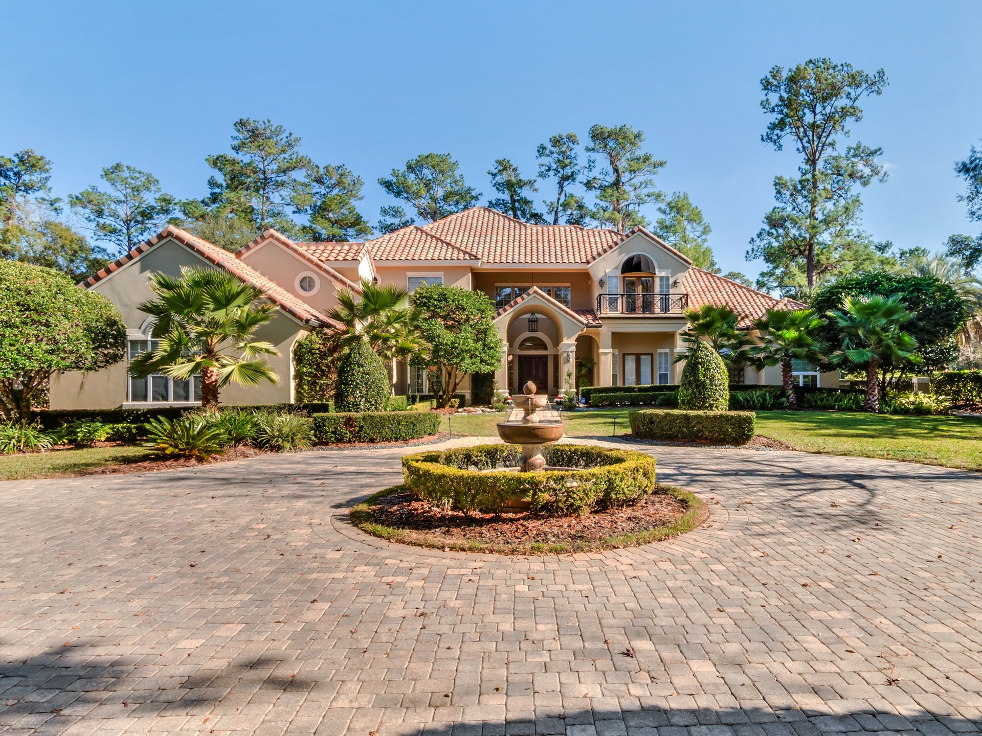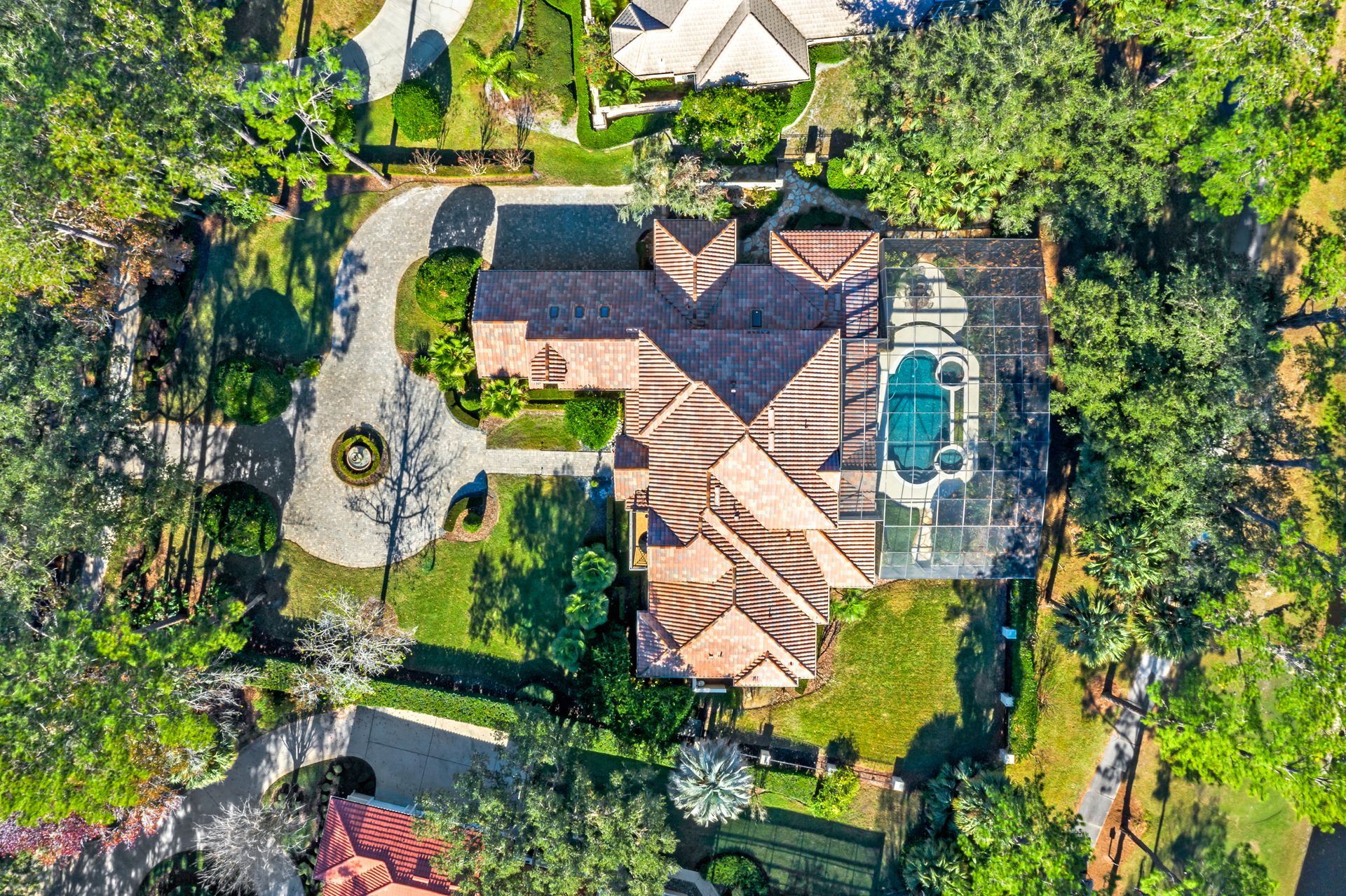 Impeccable golf course estate in Alaqua. This fine home has received loving and meticulous care and is ready for you to settle right in. The custom designed floor plan caters to the entertainer with soaring coffered ceilings, open spaces, formal dining room, wet bar and expansive pool and spa nestled on the 16th fairway. The first floor owners retreat offers luxurious privacy, expansive double closets with tremendous cabinetry and wardrobe organization. The additional bedroom on the first floor has a private entry from the exterior, creating the opportunity for very comfortable guests. The home office also enjoys its own private entrance to the right of the front door, perfect for at-home business meetings. The gourmet kitchen is outfitted with luxury appliances and gas cooking, antique white cabinets in pristine condition that surround the beautiful and dramatic granite island. Upstairs, you'll find two generous bedrooms, each with private bath. Media room provides space for casual entertainment and relaxation as well as a loft area opening to a balcony with pool and golf views. Alaqua owners enjoy the luxurious amenities of this prestigious community including a 24 hour manned entry gate, tennis, community park and the opportunity to join Alaqua Country Club. Wekiwa Springs State Park, tremendous shopping and dining, the highways and major employers are all within easy access. Alaqua is situated a short drive from Orlando area theme parks as well as New Smyrna and Daytona beaches.