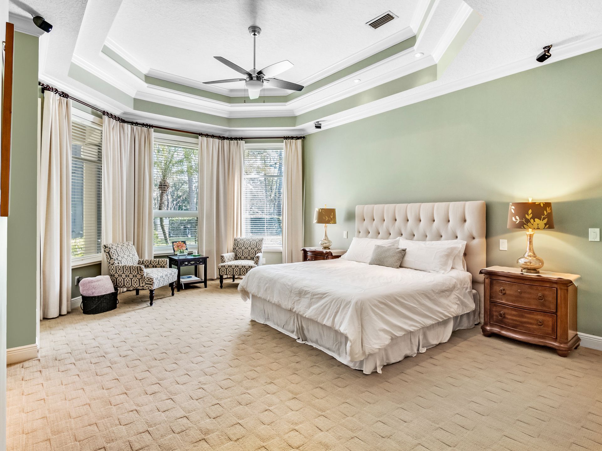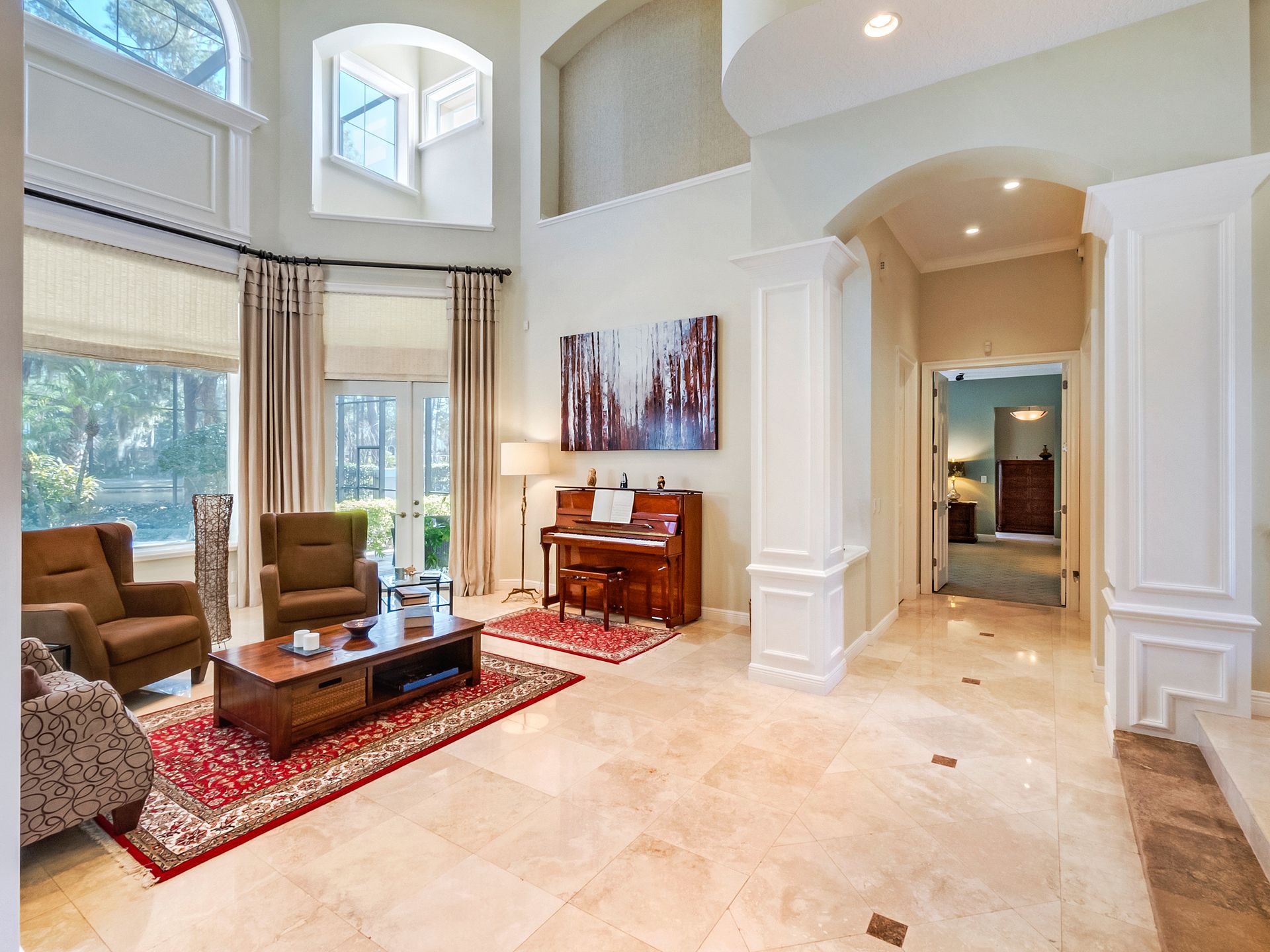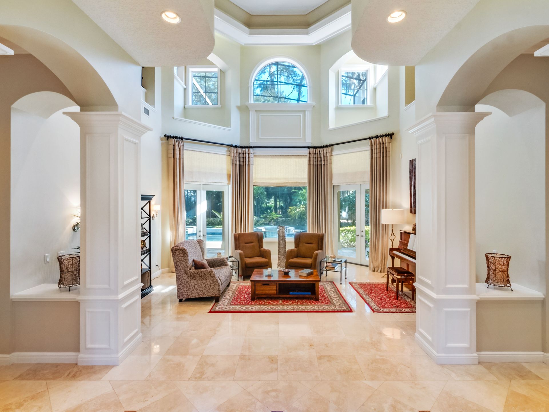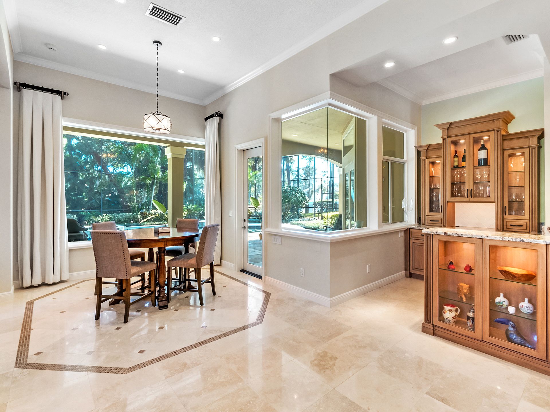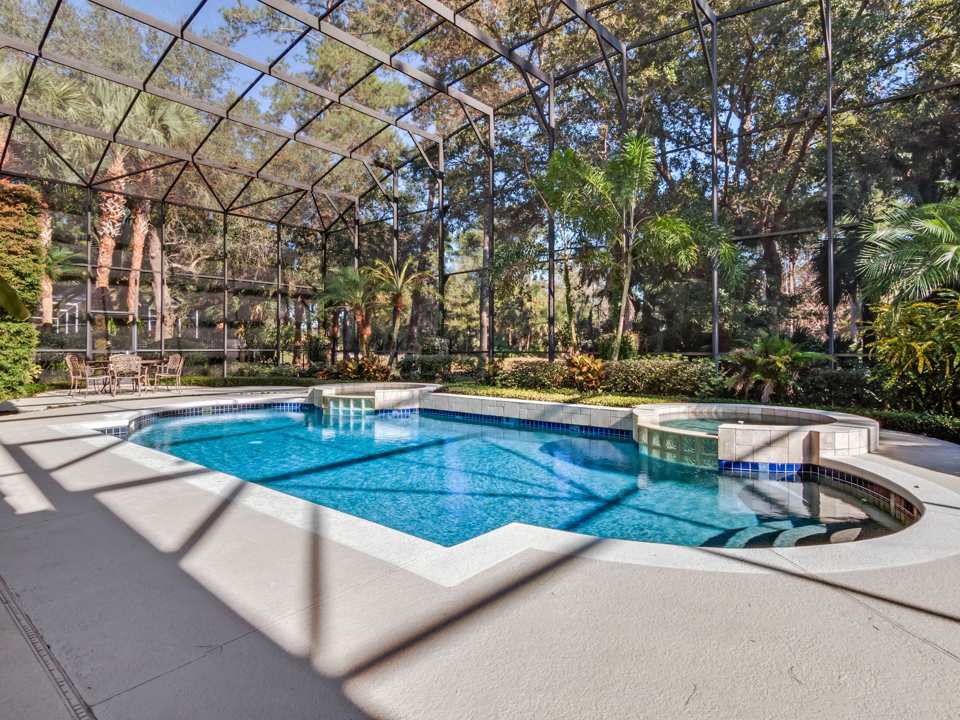 Impeccable golf course estate in Alaqua. This fine home has received loving and meticulous care and is ready for you to settle right in. The custom designed floor plan caters to the entertainer with soaring coffered ceilings, open spaces, formal dining room, wet bar and expansive pool and spa nestled on the 16th fairway. The first floor owners retreat offers luxurious privacy, expansive double closets with tremendous cabinetry and wardrobe organization. The additional bedroom on the first floor has a private entry from the exterior, creating the opportunity for very comfortable guests. The home office also enjoys its own private entrance to the right of the front door, perfect for at-home business meetings. The gourmet kitchen is outfitted with luxury appliances and gas cooking, antique white cabinets in pristine condition that surround the beautiful and dramatic granite island. Upstairs, you'll find two generous bedrooms, each with private bath. Media room provides space for casual entertainment and relaxation as well as a loft area opening to a balcony with pool and golf views. Alaqua owners enjoy the luxurious amenities of this prestigious community including a 24 hour manned entry gate, tennis, community park and the opportunity to join Alaqua Country Club. Wekiwa Springs State Park, tremendous shopping and dining, the highways and major employers are all within easy access. Alaqua is situated a short drive from Orlando area theme parks as well as New Smyrna and Daytona beaches.
