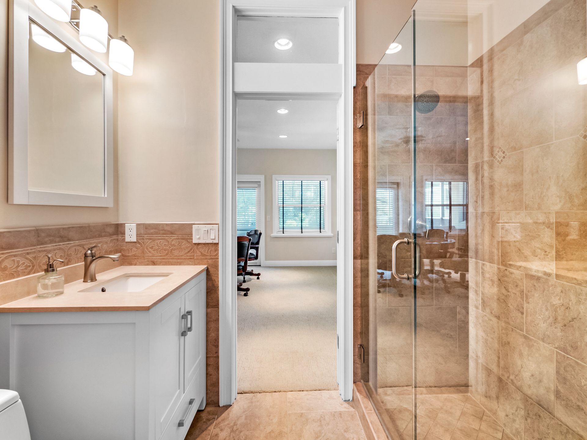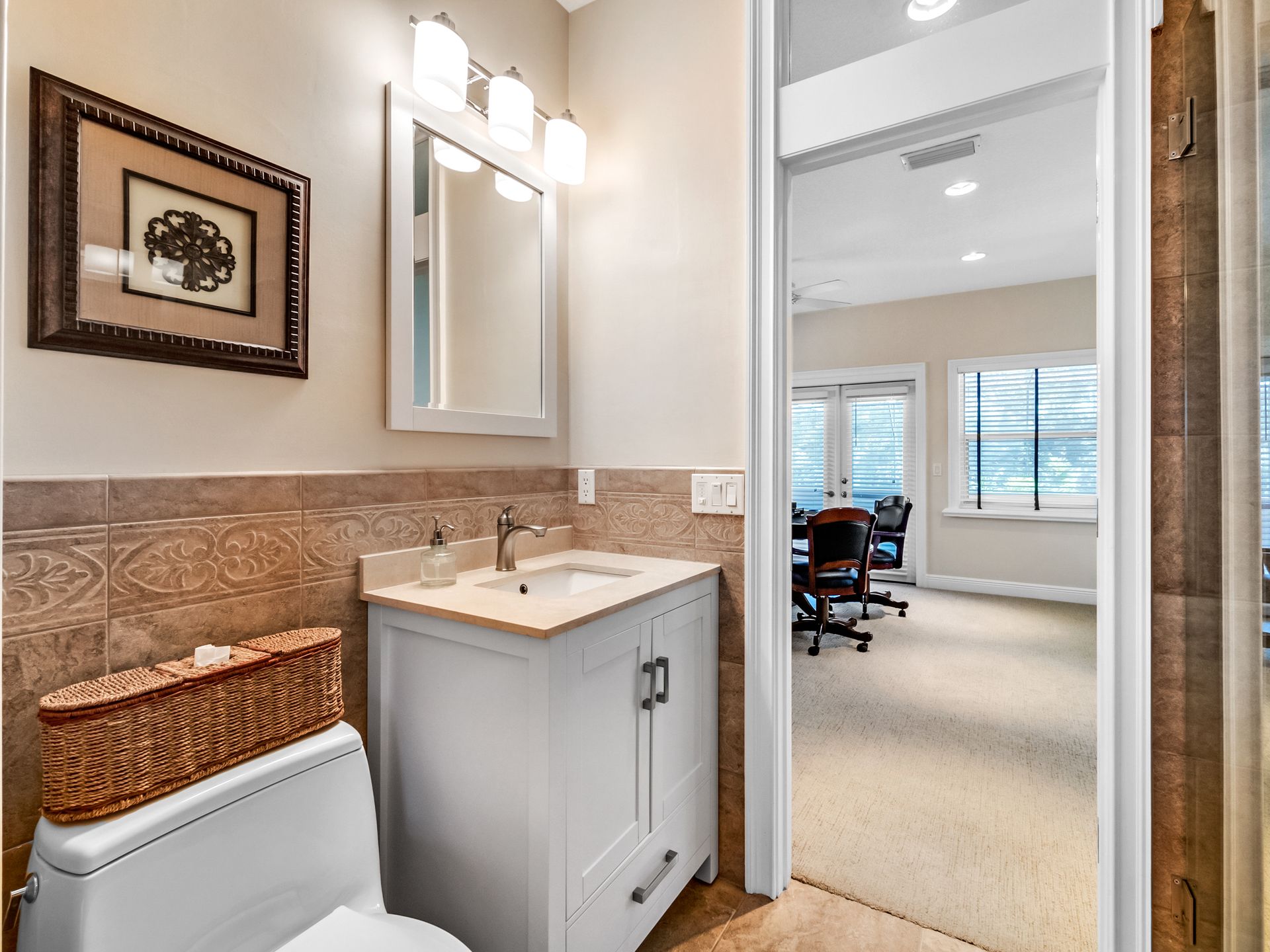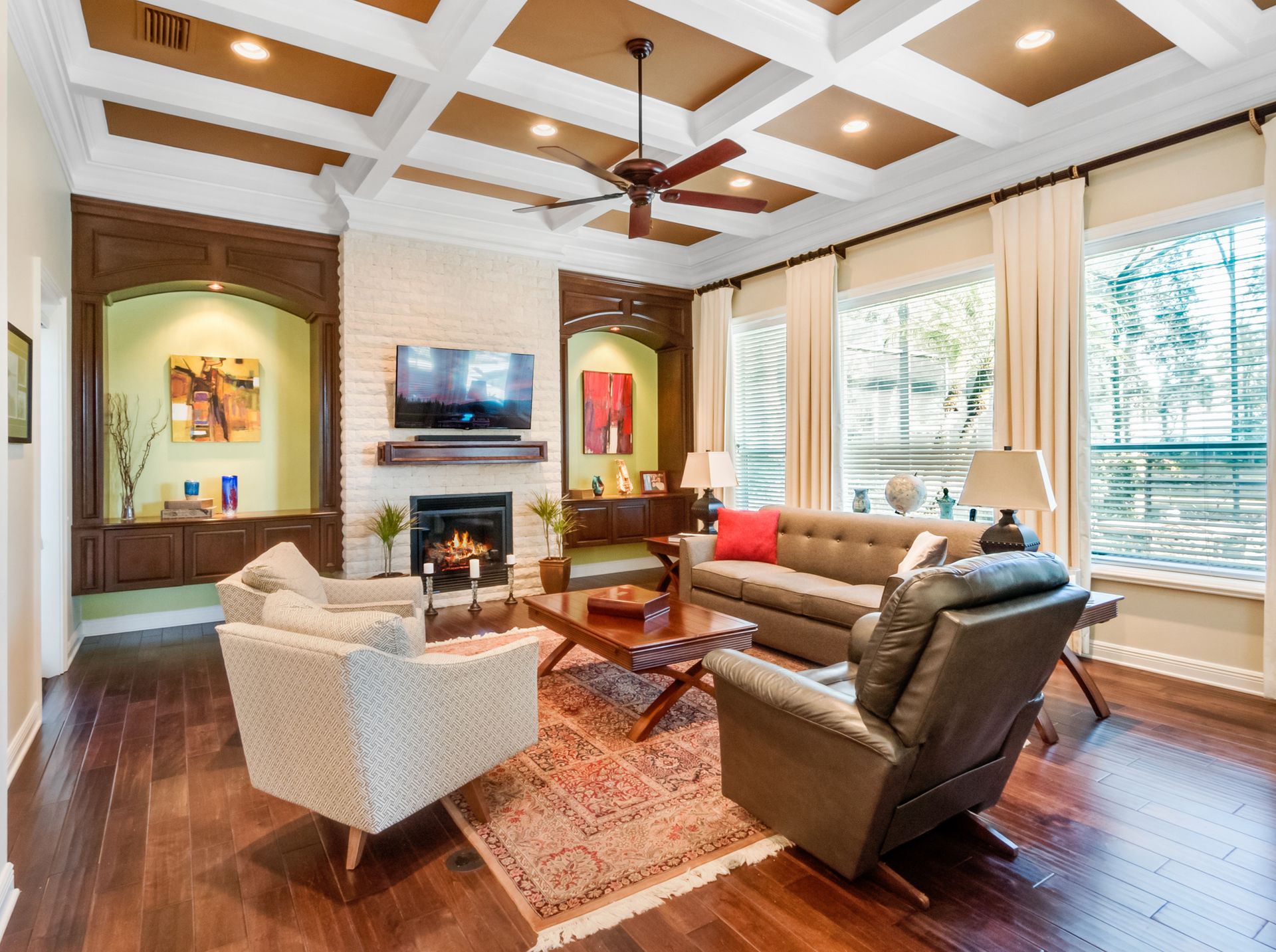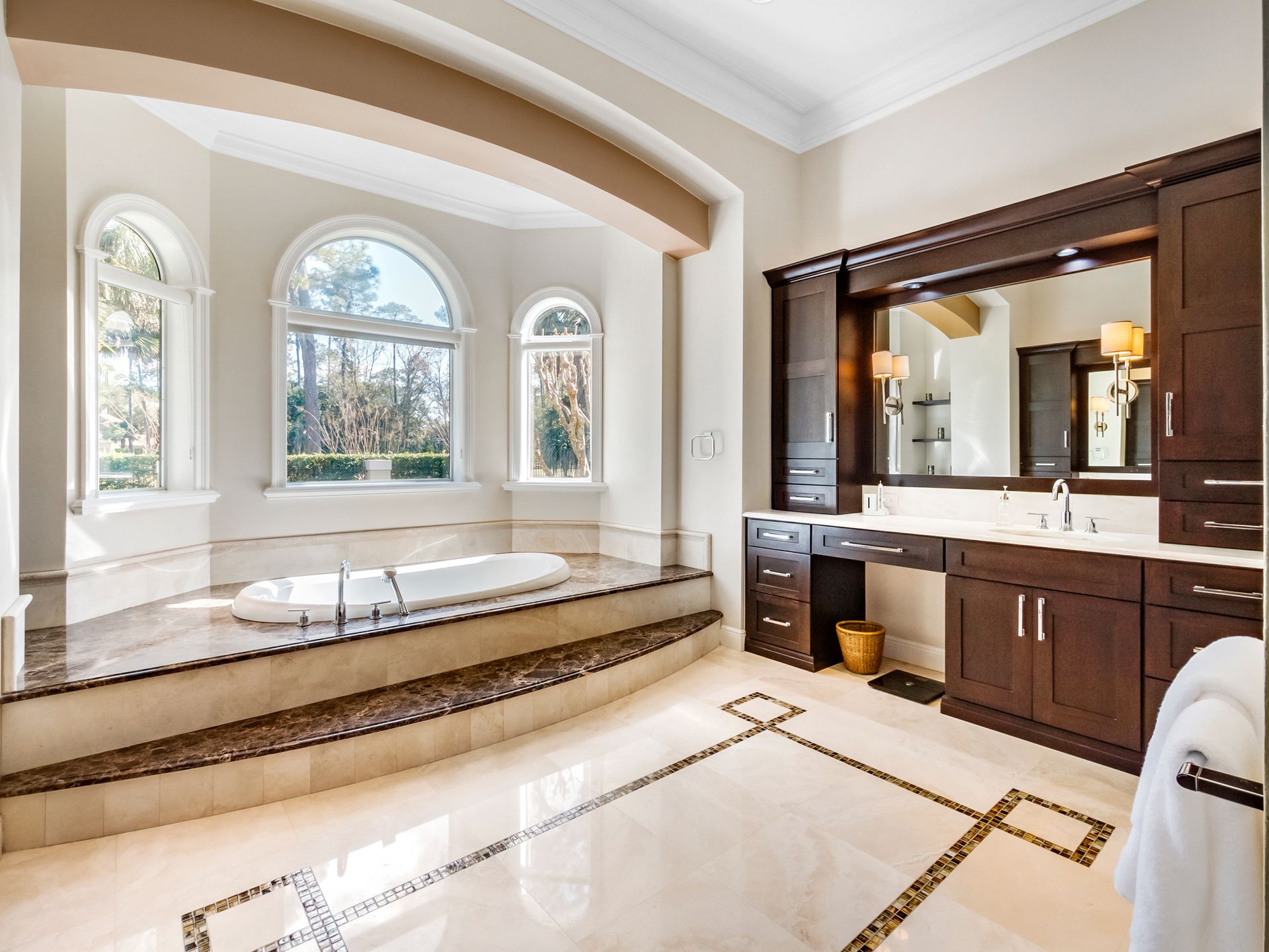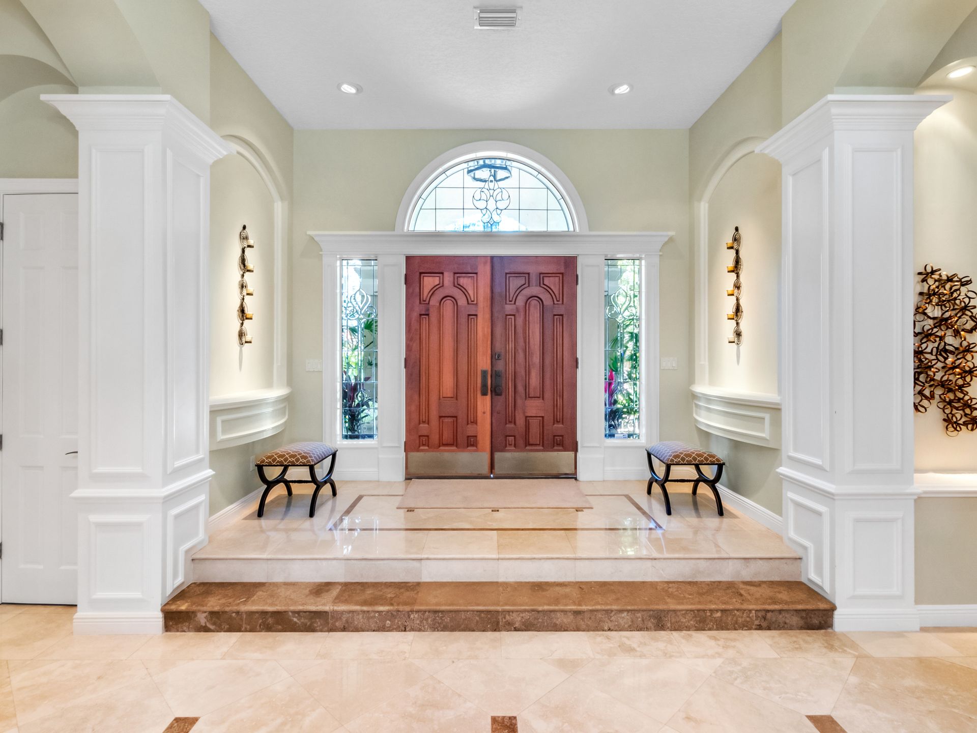 Impeccable golf course estate in Alaqua. This fine home has received loving and meticulous care and is ready for you to settle right in. The custom designed floor plan caters to the entertainer with soaring coffered ceilings, open spaces, formal dining room, wet bar and expansive pool and spa nestled on the 16th fairway. The first floor owners retreat offers luxurious privacy, expansive double closets with tremendous cabinetry and wardrobe organization. The additional bedroom on the first floor has a private entry from the exterior, creating the opportunity for very comfortable guests. The home office also enjoys its own private entrance to the right of the front door, perfect for at-home business meetings. The gourmet kitchen is outfitted with luxury appliances and gas cooking, antique white cabinets in pristine condition that surround the beautiful and dramatic granite island. Upstairs, you'll find two generous bedrooms, each with private bath. Media room provides space for casual entertainment and relaxation as well as a loft area opening to a balcony with pool and golf views. Alaqua owners enjoy the luxurious amenities of this prestigious community including a 24 hour manned entry gate, tennis, community park and the opportunity to join Alaqua Country Club. Wekiwa Springs State Park, tremendous shopping and dining, the highways and major employers are all within easy access. Alaqua is situated a short drive from Orlando area theme parks as well as New Smyrna and Daytona beaches.