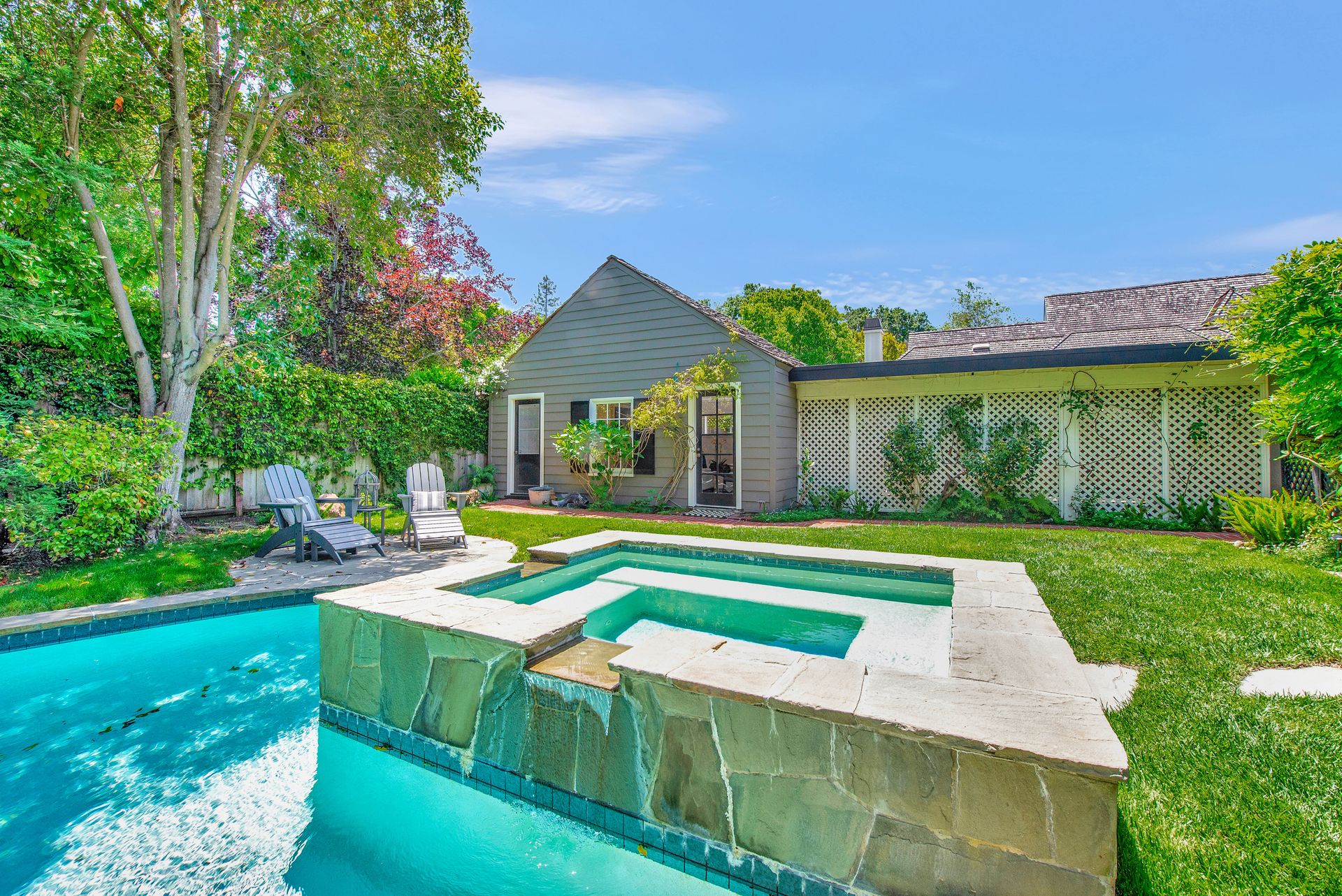 Welcome to this quintessential Felton Gables charmer. Adorable, inviting & centrally located within the neighborhood. This home has been loved by one family for over 35 years. Remodeled kitchen featuring stainless steel appliances. Ease of living with Primary Bed and Bath on main level with access to the inviting backyard with glistening pool and spa. Work from home. Enjoy the lush gardens. The extra BONUS room off the detached garage offers additional living, working, studio space and could possibly be a true ADU (Buyer to verify). The Upstairs of main home features 2 additional bedrooms with stylishly gabled roof lines, laundry, and 3rd full bath~all accented by great light from central skylight. Come enjoy all that Felton Gables has to offer. Experience the rhythm of the neighborhood with easy access to downtown Menlo Park with its vibrant restaurants, weekly Farmer's Market and so much more. Easy access to commute routes. Walk to Cal Train. Walk to local elementary school. There is a reason Felton Gables is a coveted spot in Menlo Park! Buyer to verify: Encinal (K-5), Hillview Middle (6-8), Menlo Atherton High (9-12). This is a 10!
