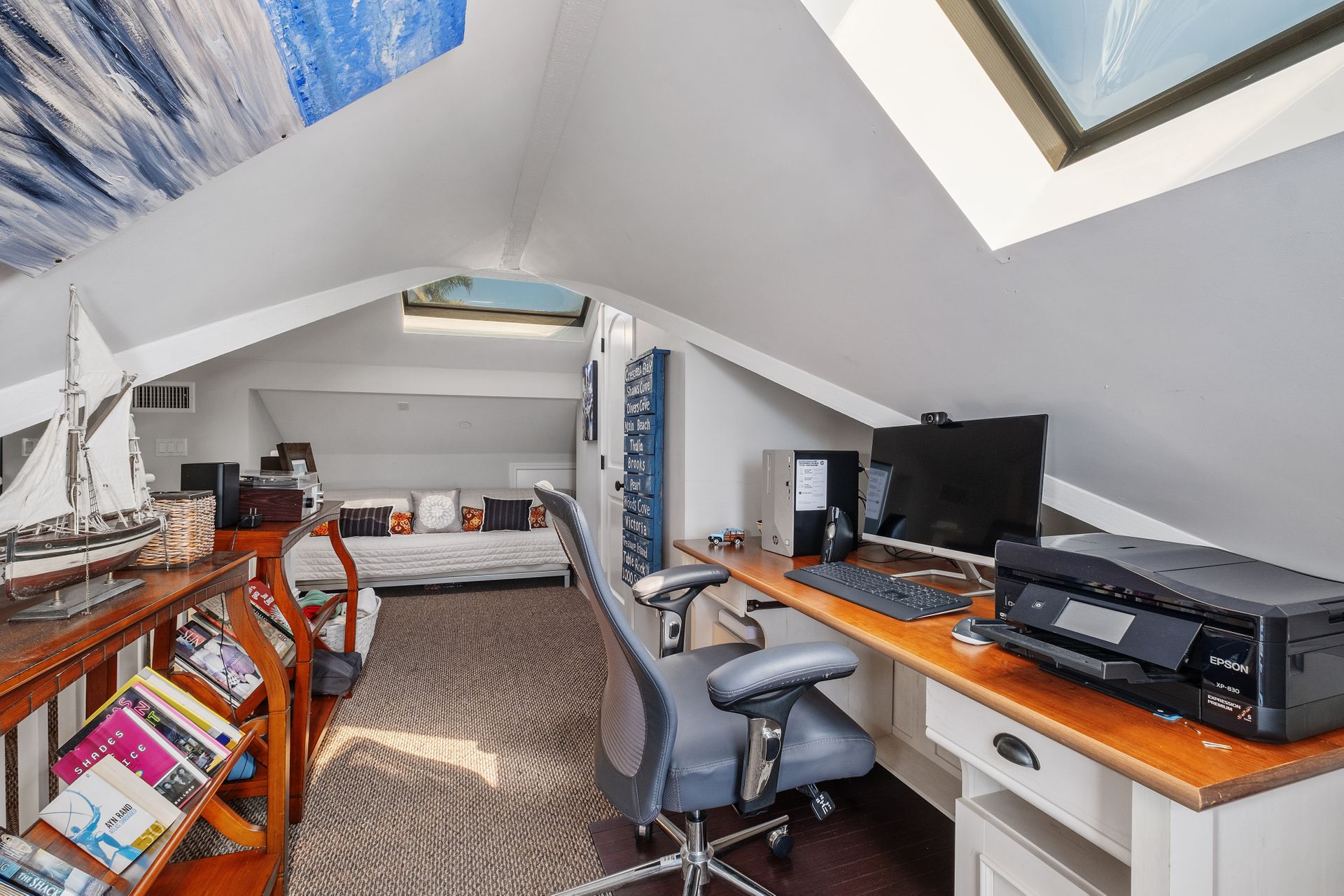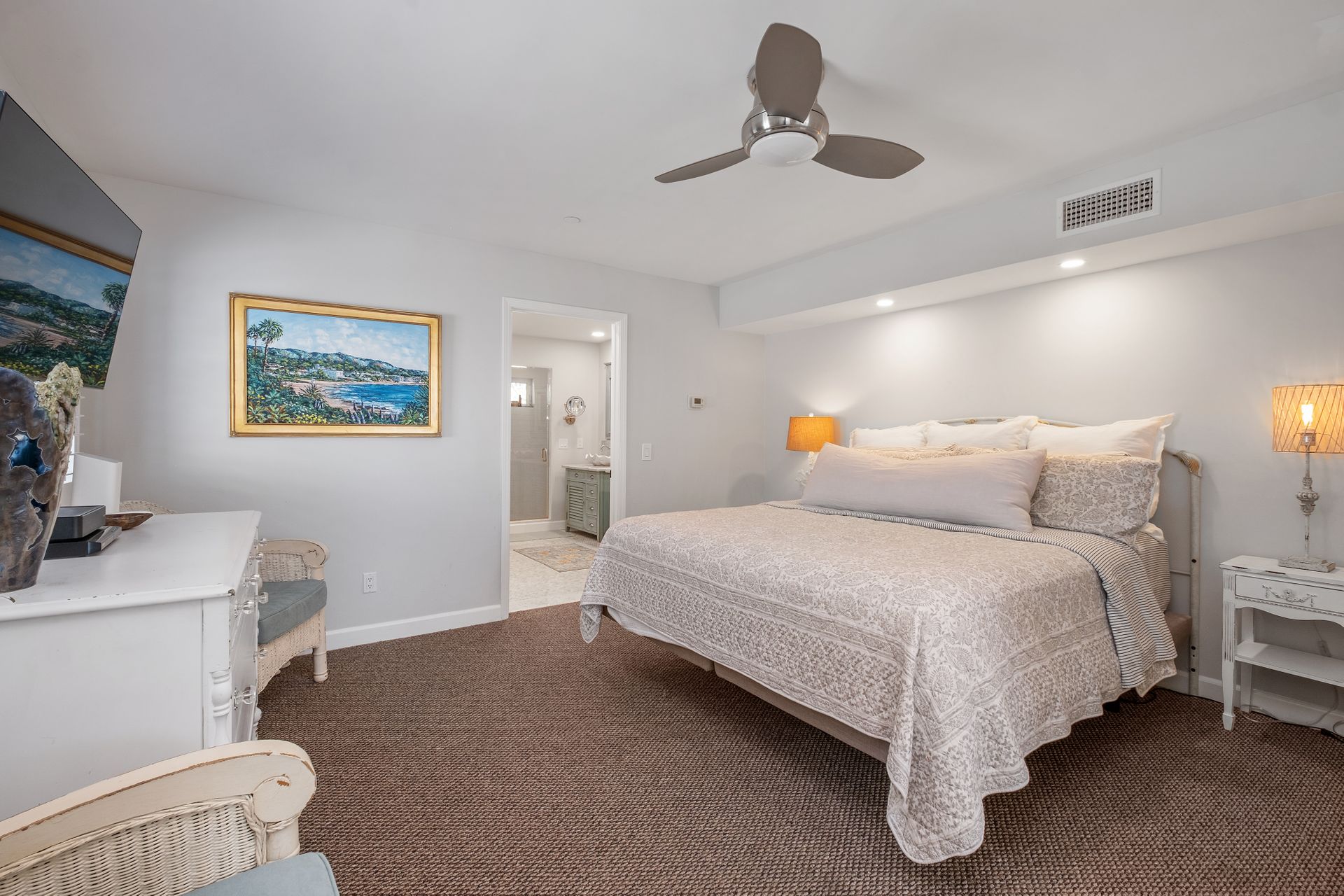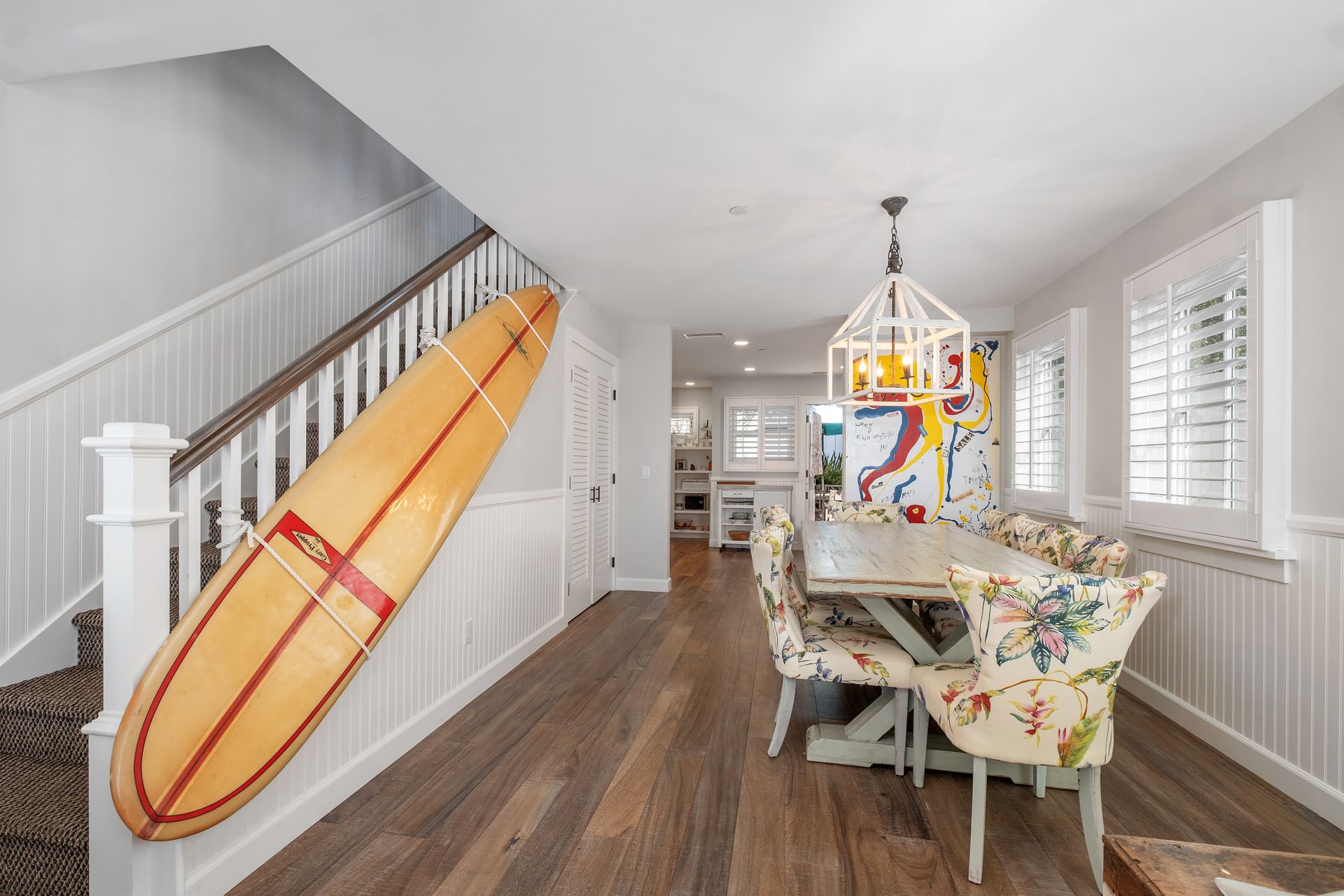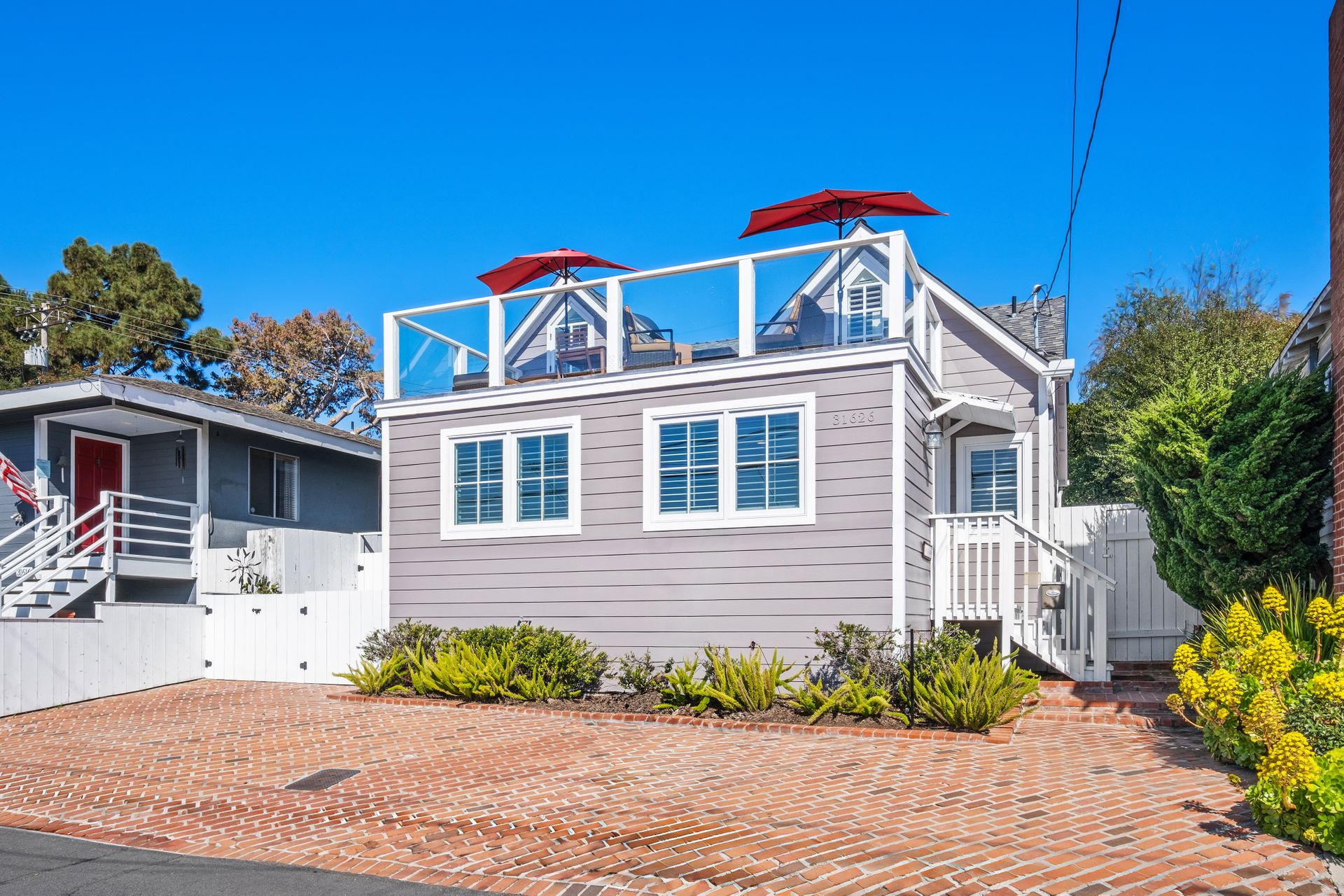 Welcome to 31626 Virginia Way, a beautifully remodeled historic ocean-view cottage in Laguna Beach that seamlessly blends timeless charm with modern luxury. Completely reimagined by renowned designer and contractor Julie Laughton in 2018, this nearly 1,660-square-foot home features two bedrooms, two bathrooms and a dedicated office space. The extensive remodel expanded the primary suite, including a custom bathroom and walk-in closet, while the chef’s kitchen was redesigned with GE Café appliances, solid wood cabinetry, natural stone countertops and a walk-in pantry. The guest bathroom showcases vintage subway tile with tasteful Carrara marble accents. Additional upgrades include hardwood flooring and all-new wainscoting, updated windows and doors and central heating and air conditioning. Freshly painted in 2024, the home is move-in ready with a crisp, modern feel that can include all furnishings. Perched just moments from Table Rock beach, this charming cottage offers stunning views of the ocean and the lush community garden from the first floor, while the second-floor bedroom and office open onto a full west-facing deck, showcasing views extending all the way to Catalina Island. The outdoor space is ideal for enjoying the coastal breeze, spectacular sunsets and the relaxed Laguna Beach lifestyle. Unlike many homes in the area, this property offers rare parking for four cars on the original brick driveway. With its ideal location near Table Rock Beach and Village Green Park, this home offers a serene escape while remaining close to the shops, dining and cultural experiences of Laguna Beach. 31626 Virginia Way is a true coastal gem—the quintessential Laguna Beach cottage.