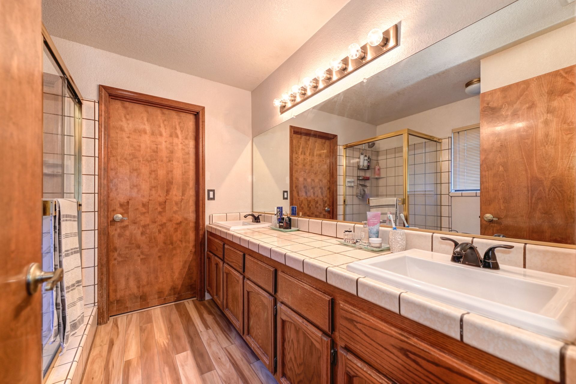 We love the family room's grand brick fireplace, beautiful vaulted wood ceiling, and views of the pool. A spacious living room is off the front foyer and has great natural light. Most of the bedrooms are on the East side of the home to avoid evening sun exposure. The home also includes a whole house fan, a nice-sized indoor laundry room with a utility sink, a spa pad, and so much more! The kitchen and baths feature updated flooring and the breakfast nook overlooks the pool and backyard. The Primary bedroom has a patio slider access, a vaulted ceiling, and a primary bath which includes a walk-in closet.