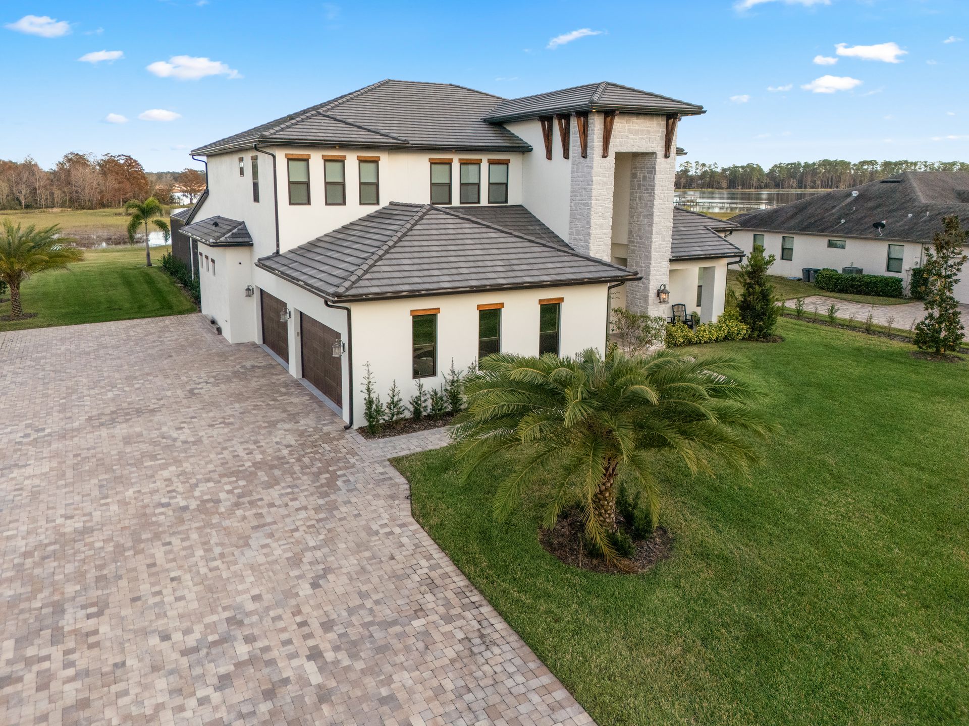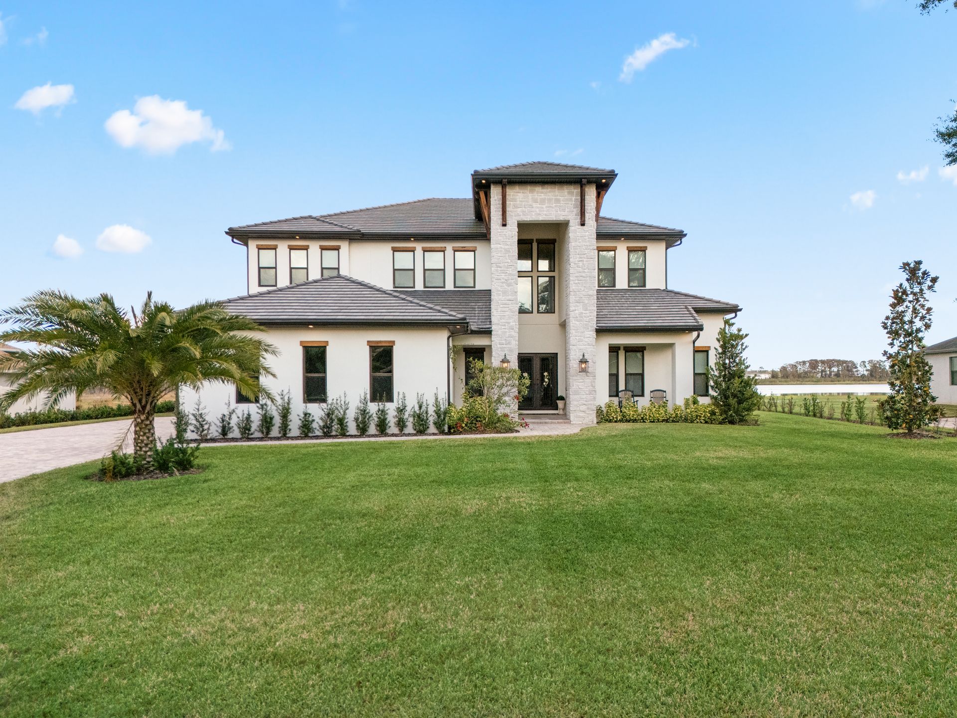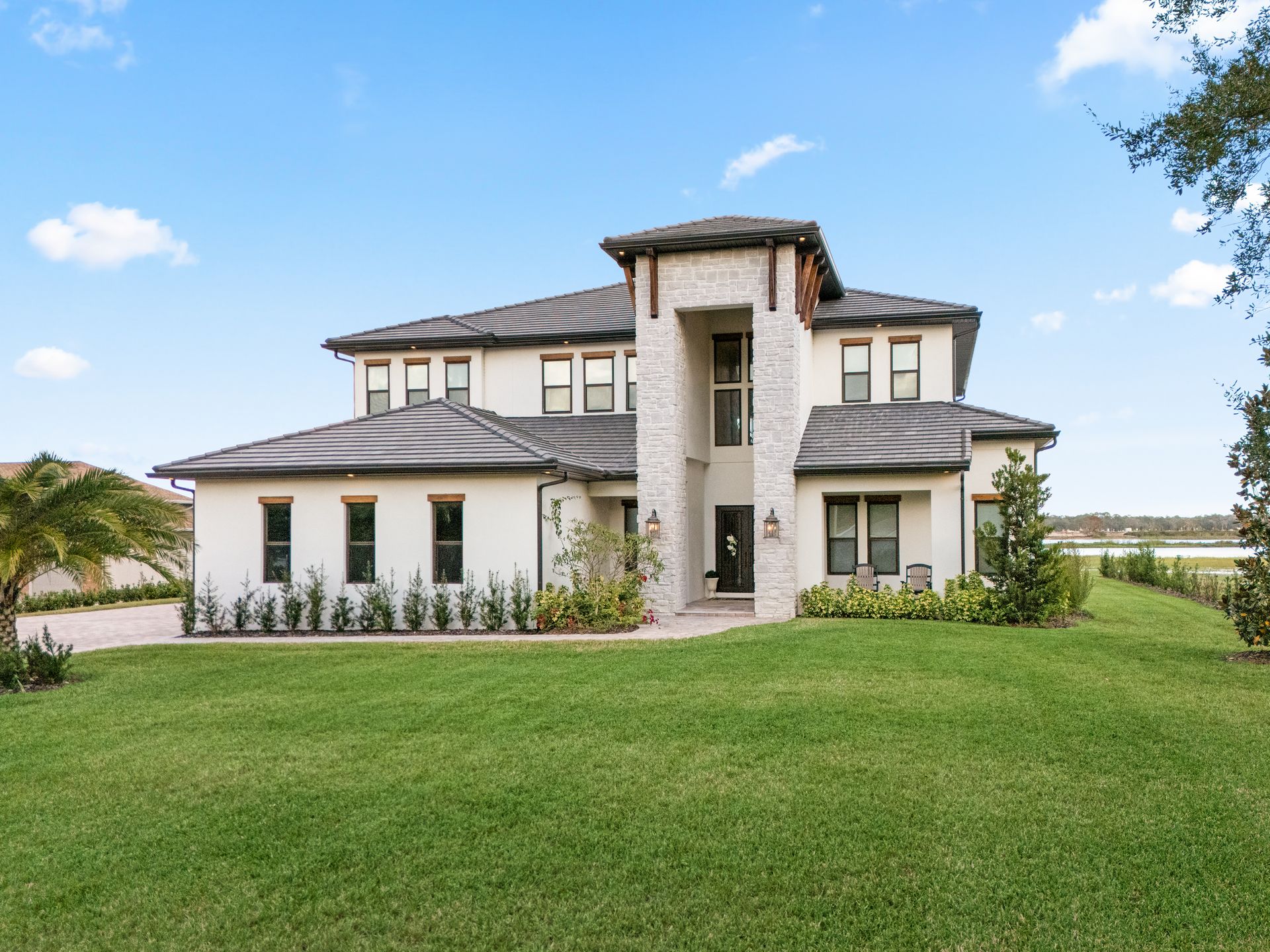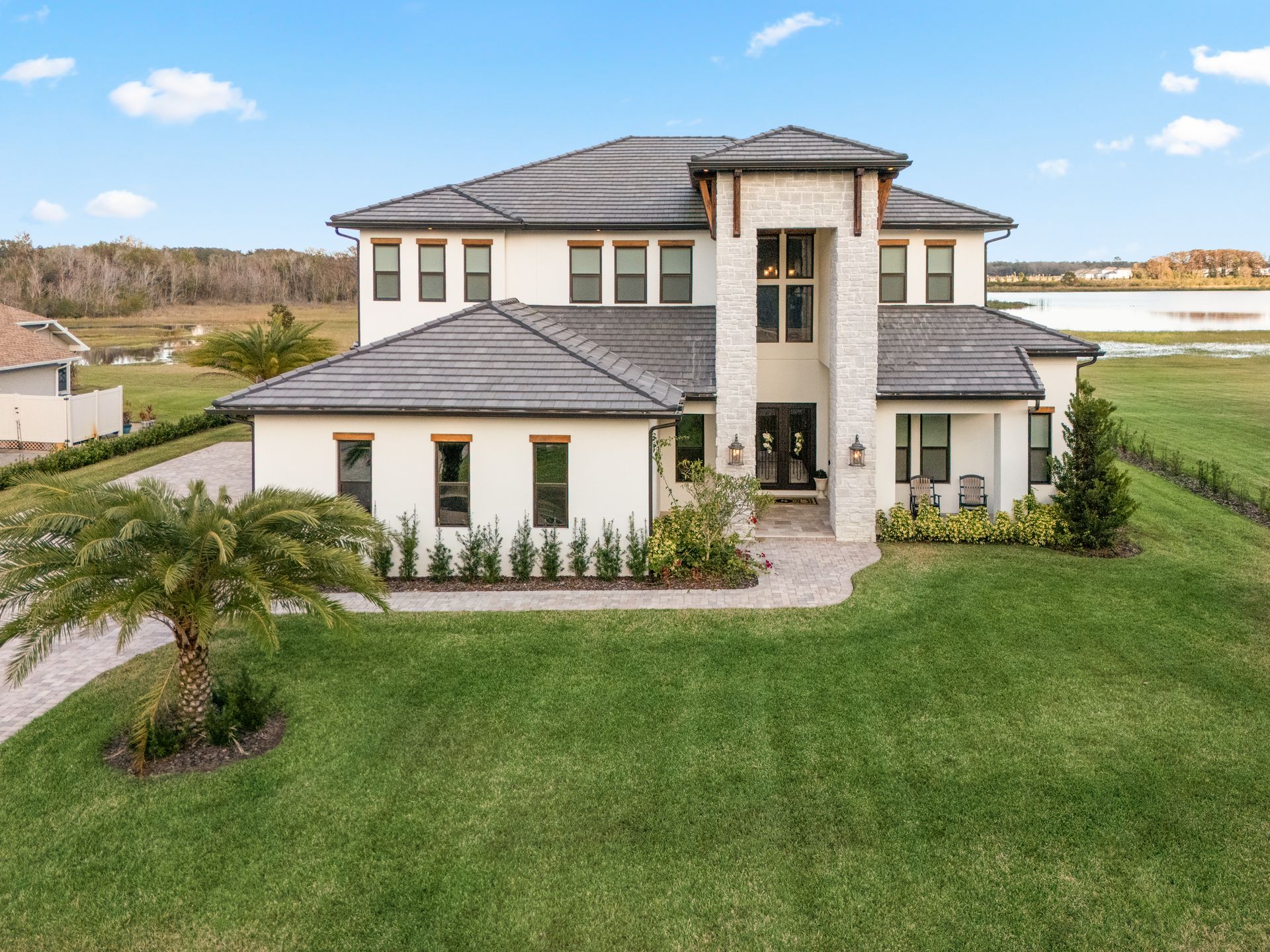 Discover unparalleled luxury in this stunning estate on the shores of Lake Ajay in St. Cloud Florida. Just minutes from Lake Nona, this brand-new, 5,820-square-foot home offers breathtaking million dollar views and an elevated lifestyle. With six bedrooms, five full baths, and two one-half baths, this home combines sophisticated design and exceptional craftsmanship.