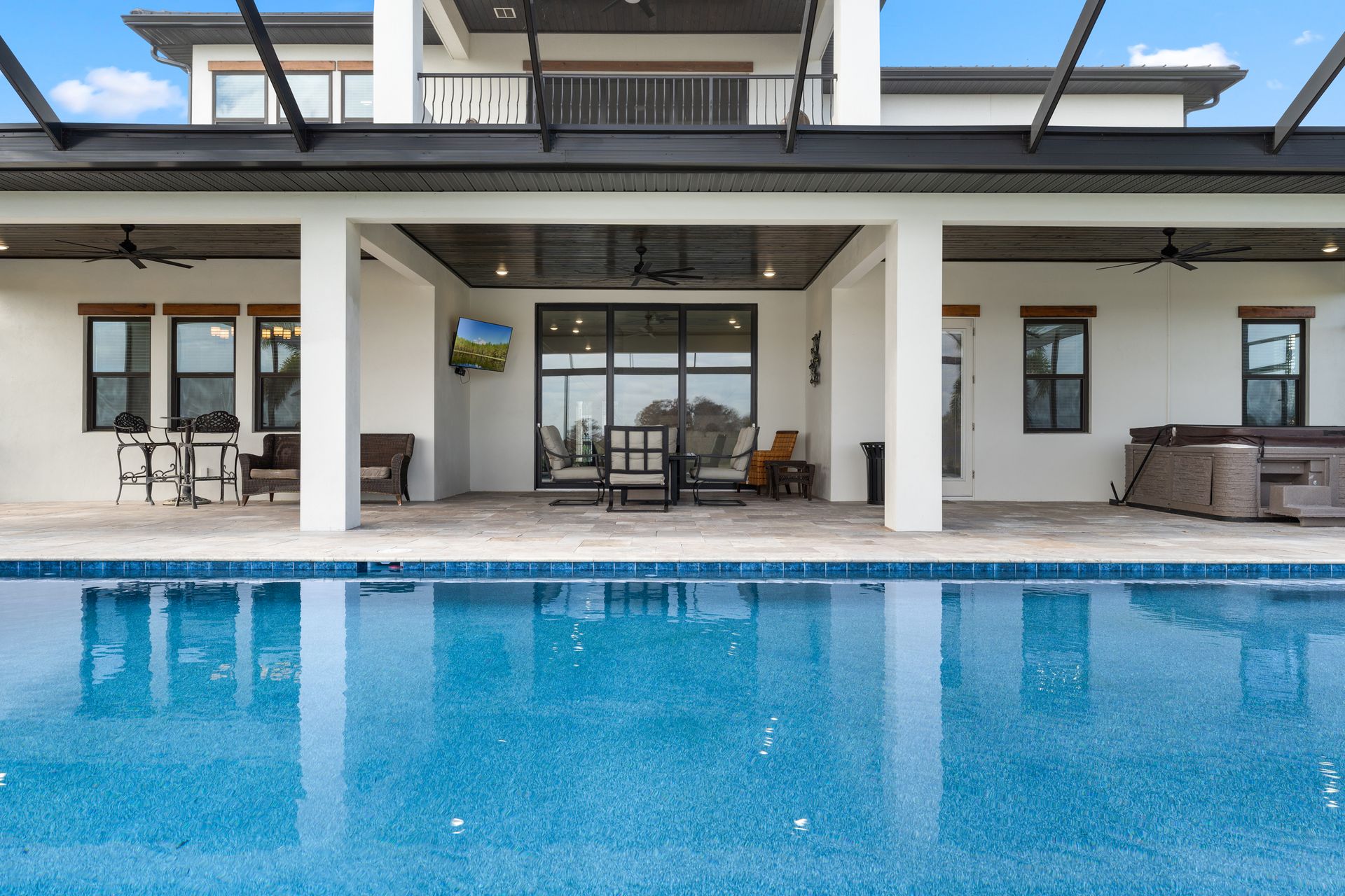 Outdoors, the travertine-paved patio includes an Olympic-sized pool and jacuzzi, ideal for relaxation and entertainment. Situated on just under an acre, this home offers significant savings on property taxes and community fees. The neighborhood features private dock access, a private boat launch, and a full suite of amenities, including tennis, basketball, and pickleball courts. Built in 2024 with energy-efficient features like Icynene insulation, tankless water heaters, and top-tier AC units, this home blends modern luxury with energy savings. Schedule your tour today!