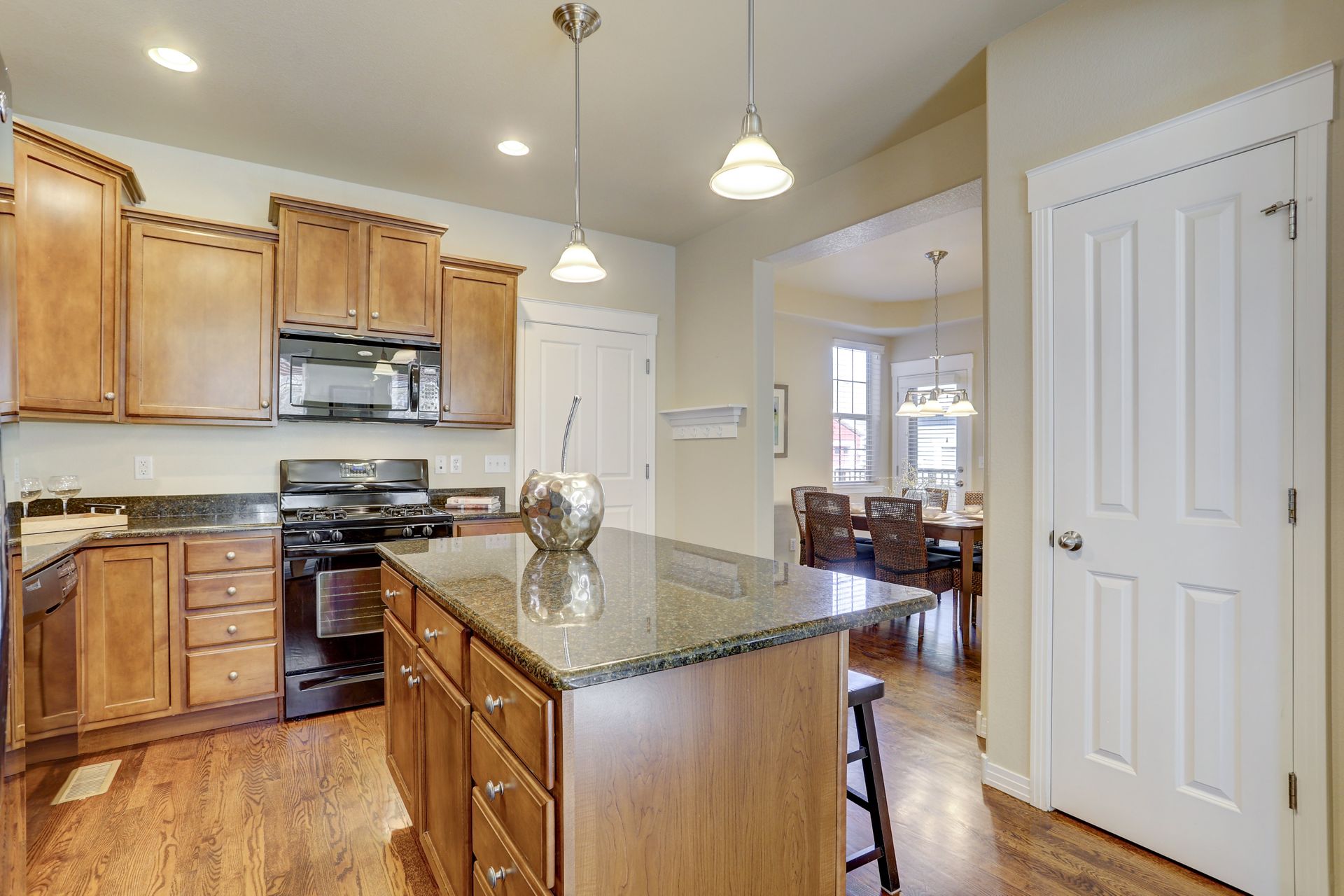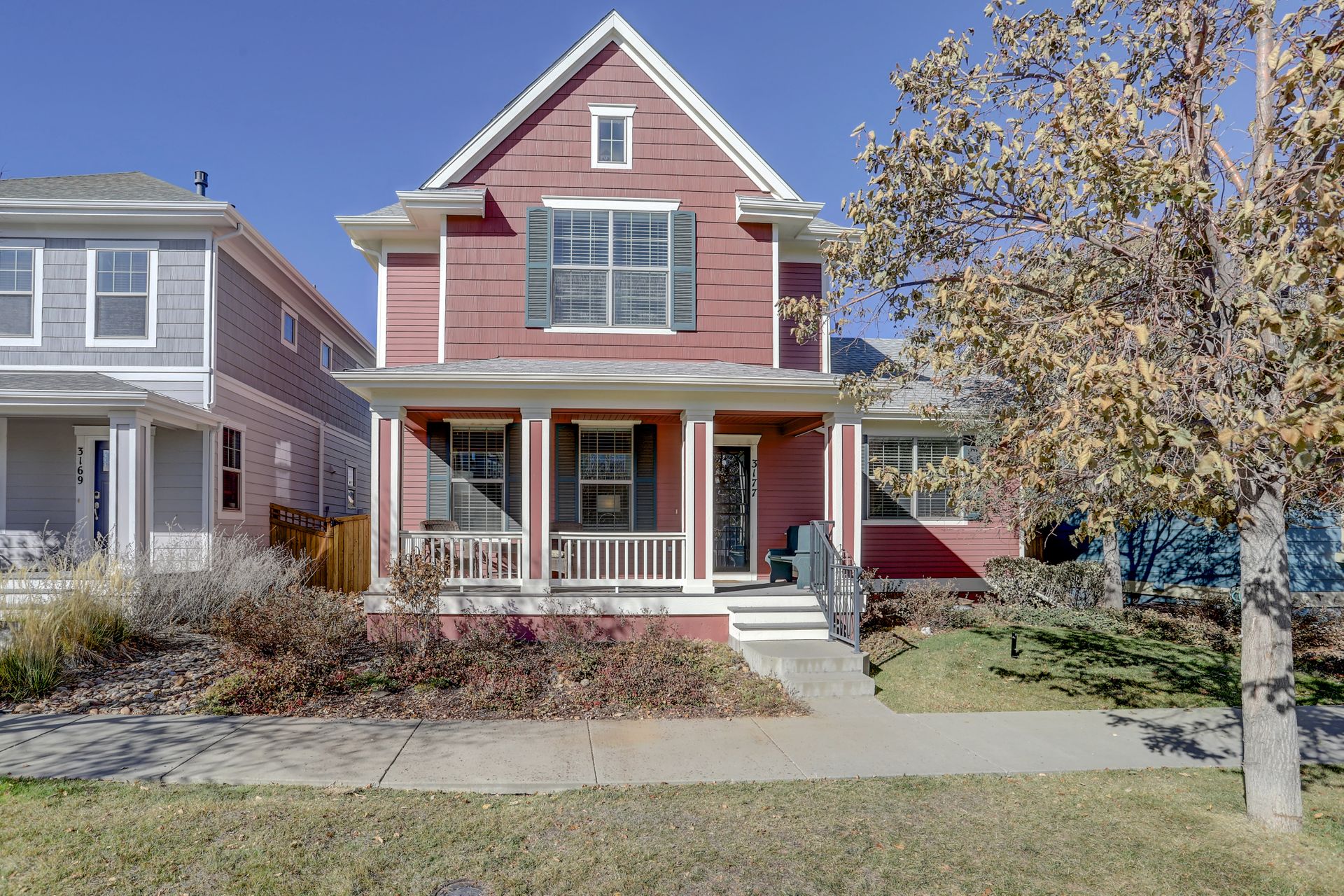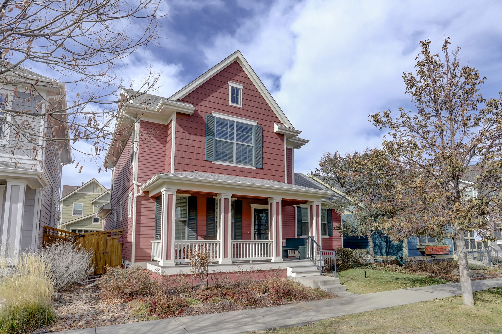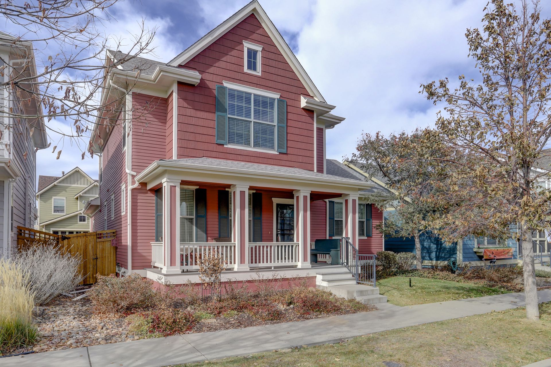 Welcome to this charming single-family home in sought after Central Park (formerly Stapleton). This Impeccably maintained Wonderland home with its welcoming covered front porch features a rare to find Main Floor Master Ensuite with vaulted ceilings, walk-in closet and a five-piece bath with double vanities. With the exception of the bathrooms, the main floor has beautiful hardwood floors, an open floorplan from the living room to the kitchen and a gas fireplace with a traditional mantle. The kitchen features slab granite countertops, pendant lights over the center island and handsome dark cabinetry. The two-car attached garage leads directly to the kitchen, making hauling groceries less of a chore. The cozy dining room has a door leading directly to the private and fenced backyard featuring a stamped patio. Ideally situated for both indoor and outdoor entertaining. A powder room with neutral ceramic flooring, trim and wainscoting is conveniently located in the hallway and completes the main floor. All finishes are neutral in color. Upstairs are two more bedrooms, a full bath with neutral ceramic tile, and a large BONUS room. The bonus room could easily become a fourth bedroom, a family room or an office for two or more. The full, unfinished basement is a blank canvas for you to finish as you desire.