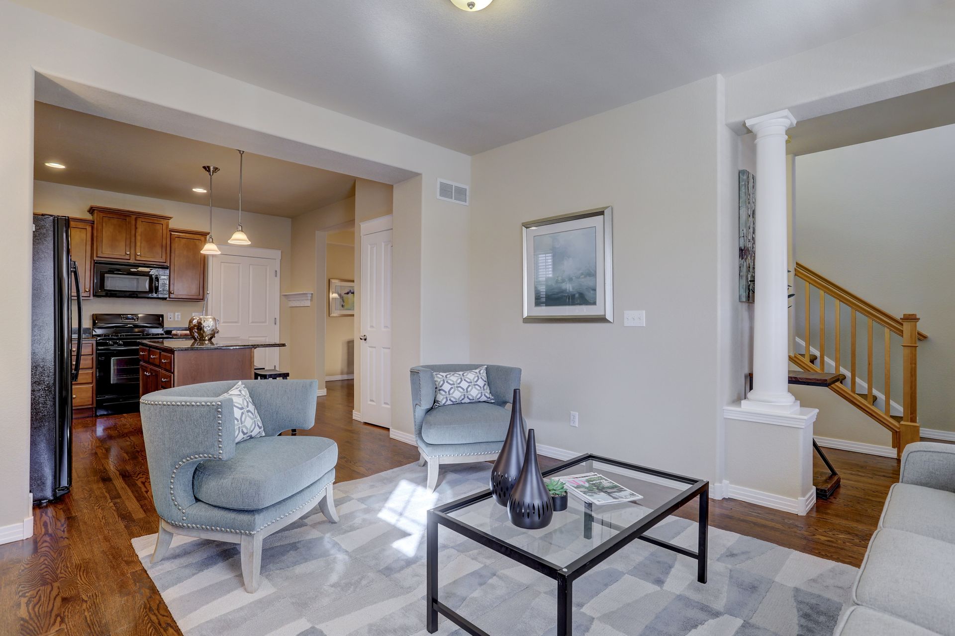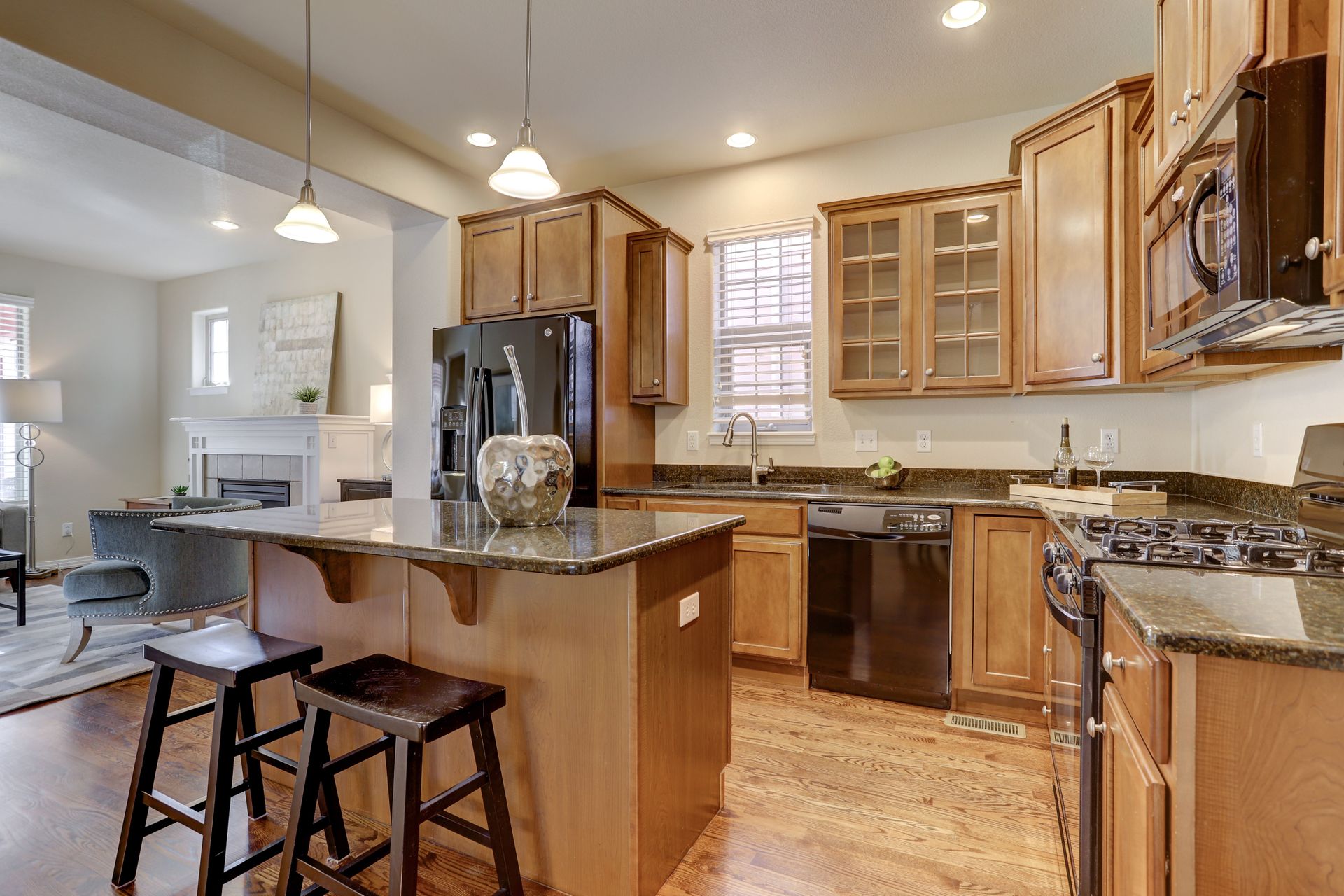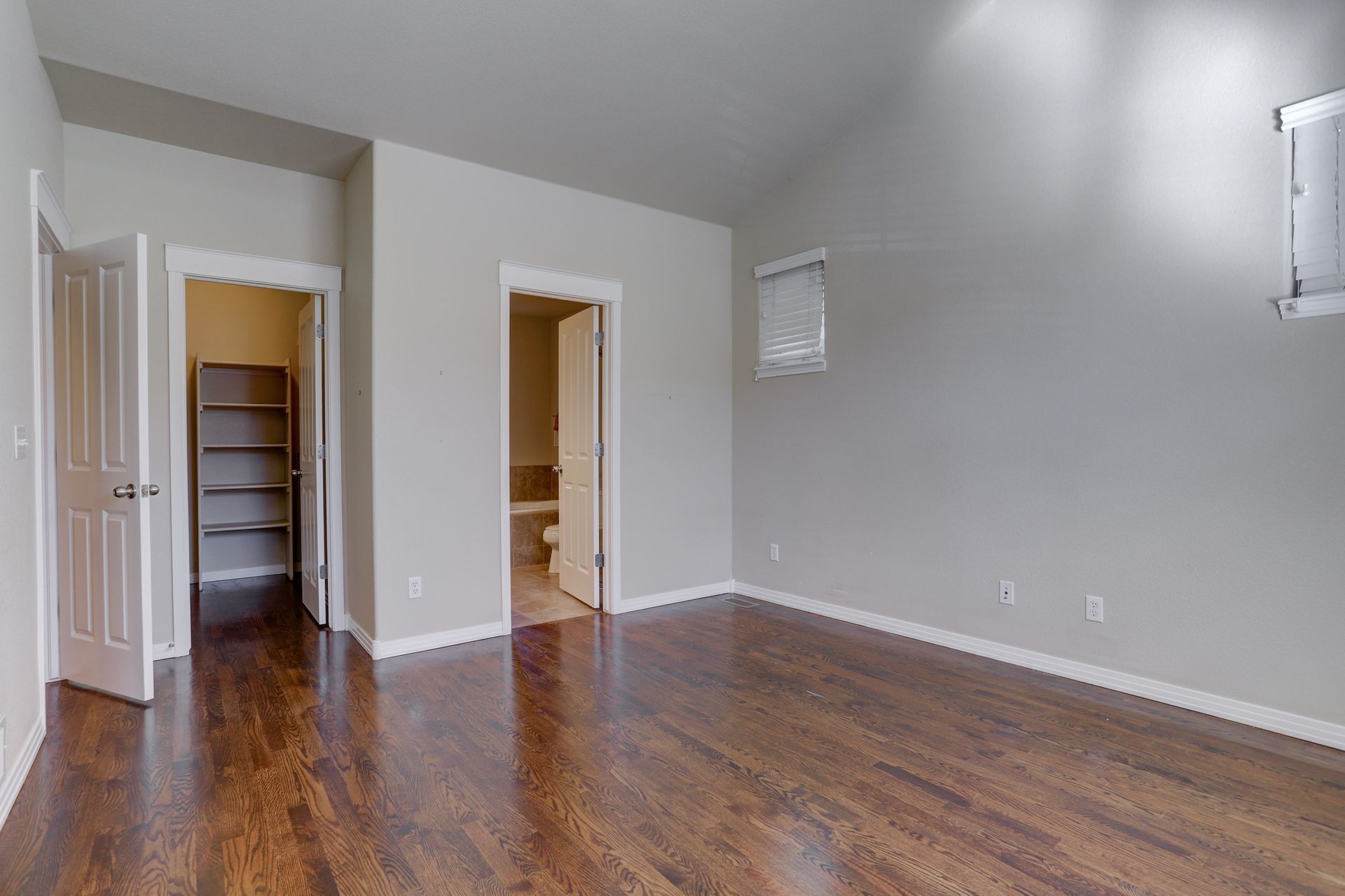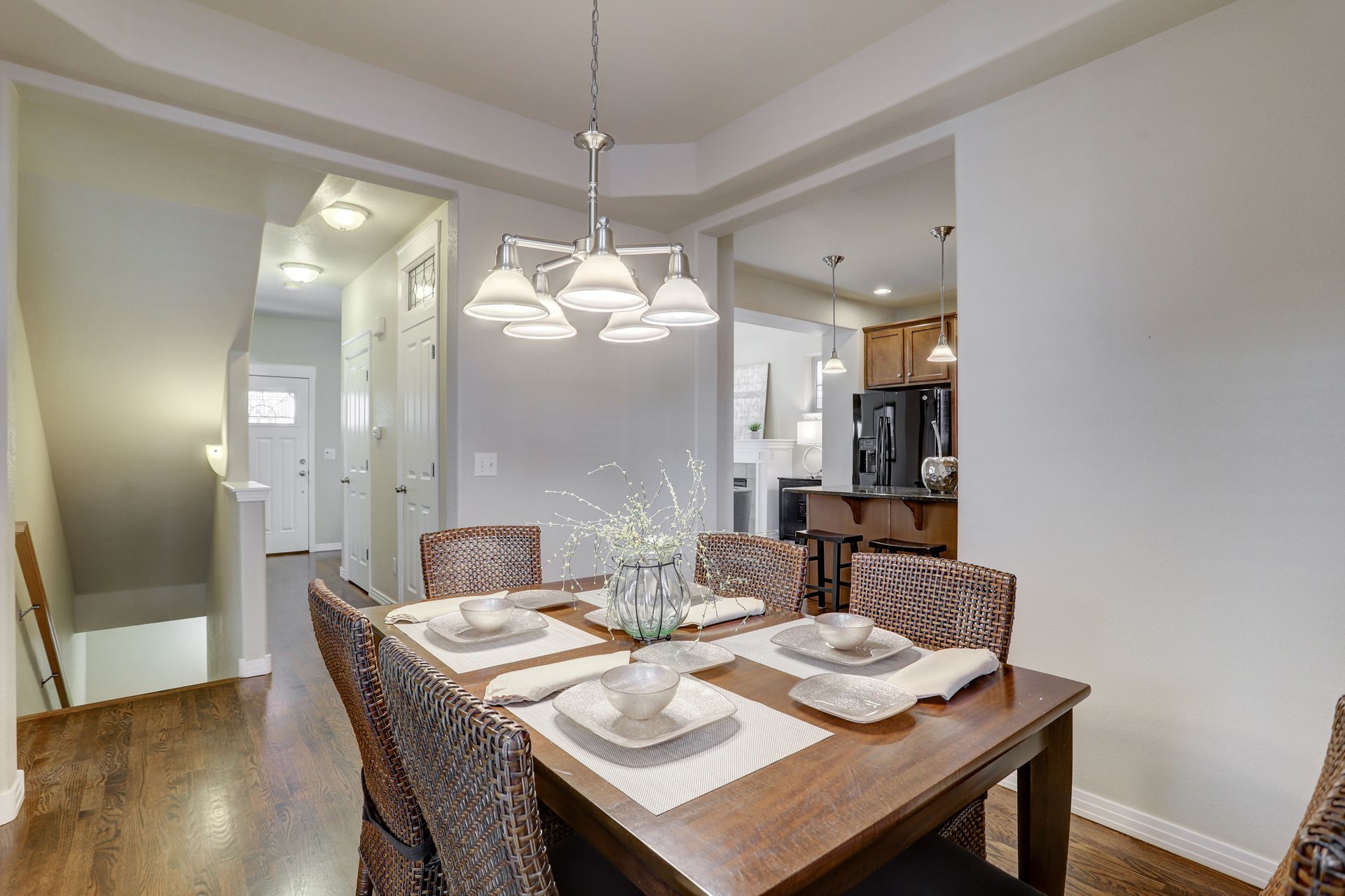 Welcome to this charming single-family home in sought after Central Park (formerly Stapleton). This Impeccably maintained Wonderland home with its welcoming covered front porch features a rare to find Main Floor Master Ensuite with vaulted ceilings, walk-in closet and a five-piece bath with double vanities. With the exception of the bathrooms, the main floor has beautiful hardwood floors, an open floorplan from the living room to the kitchen and a gas fireplace with a traditional mantle. The kitchen features slab granite countertops, pendant lights over the center island and handsome dark cabinetry. The two-car attached garage leads directly to the kitchen, making hauling groceries less of a chore. The cozy dining room has a door leading directly to the private and fenced backyard featuring a stamped patio. Ideally situated for both indoor and outdoor entertaining. A powder room with neutral ceramic flooring, trim and wainscoting is conveniently located in the hallway and completes the main floor. All finishes are neutral in color. Upstairs are two more bedrooms, a full bath with neutral ceramic tile, and a large BONUS room. The bonus room could easily become a fourth bedroom, a family room or an office for two or more. The full, unfinished basement is a blank canvas for you to finish as you desire.