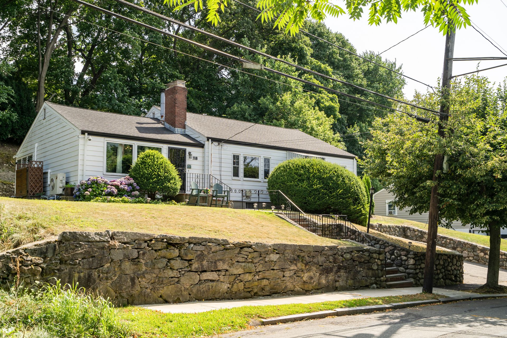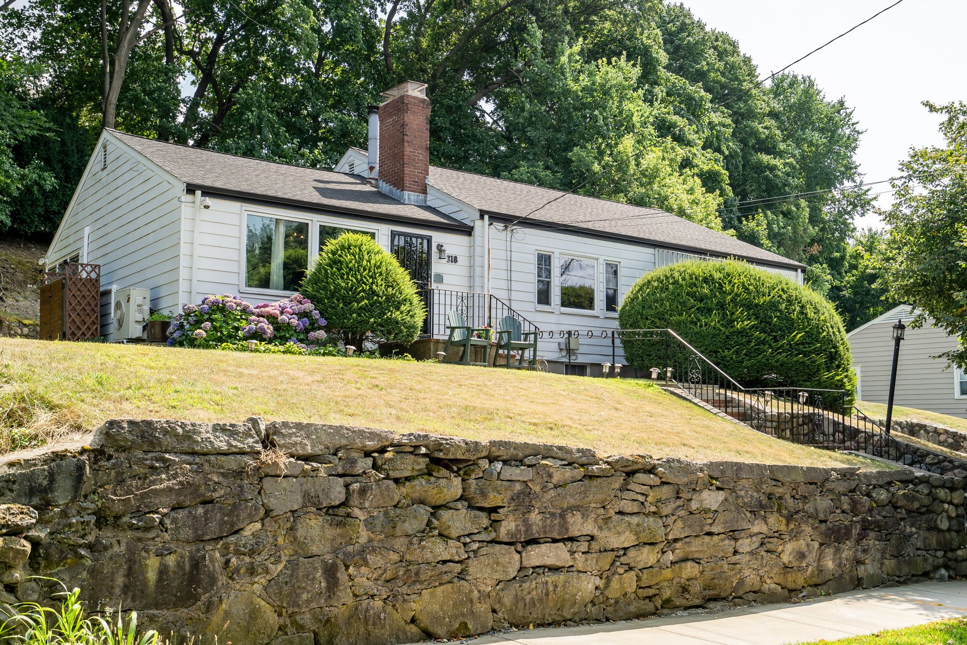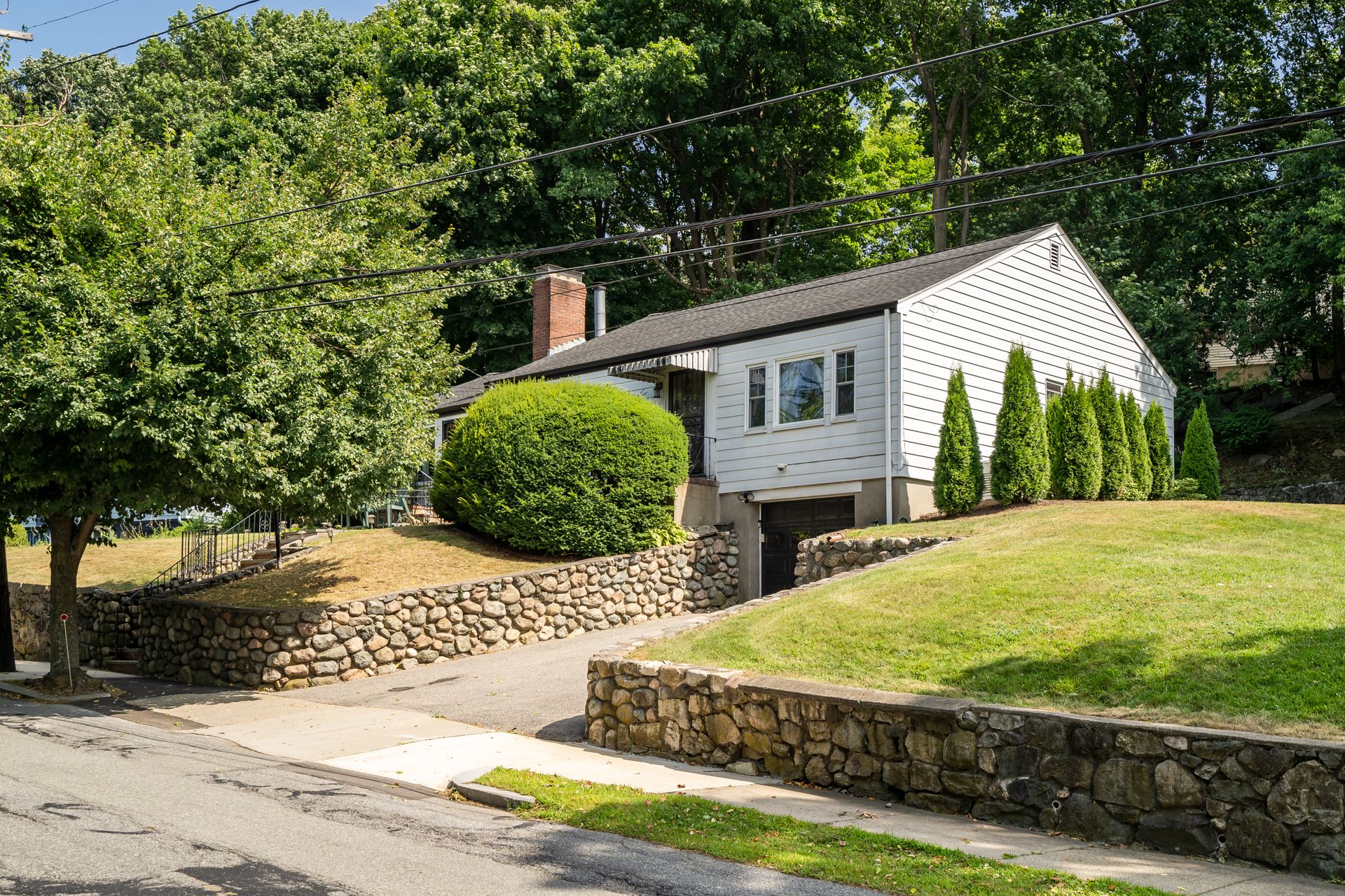 Located in the desirable district of West Newton Hill, this beautifully designed three-bedroom two-bath single-family home sits amongst Newton's most sought-after school districts. This approximately 2,069 square foot ranch-style home with solid oak floors boasts a 20 x 30-foot Great Room, large picture windows, beamed ceilings and a wood-coal stove. The detailed kitchen offers custom oak cabinets, a luxurious Viking stove, dishwasher and disposal, granite countertops and access to an open dining room with a fireplace. This dwelling, which offers a generous amount of storage space in the attic, basement and closets, also features a finished basement with laminate wood floors and a stone fireplace that can entertain as a family room or office, joined by an additional room that doubles as a small yoga or exercise studio, equipped with a washer, dryer and a second bathroom with an open shower. Sitting on the 10,000+ square foot lot, this home features a beautiful walk-out patio and a single-car garage with two exterior parking spaces, with central access to the Commuter Rail, Mass Pike, Route 128 and public transportation. This inviting home is handicap accessible.