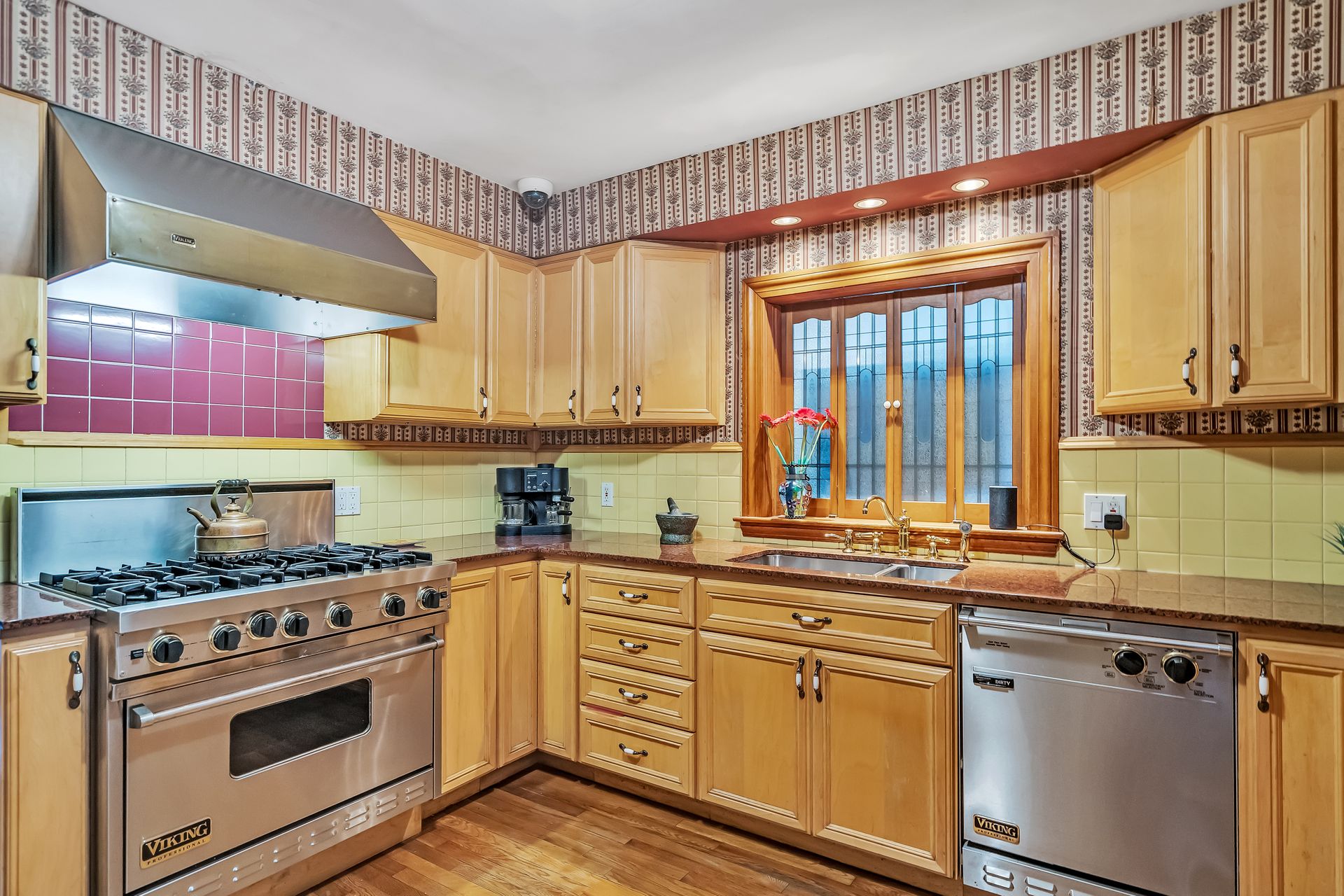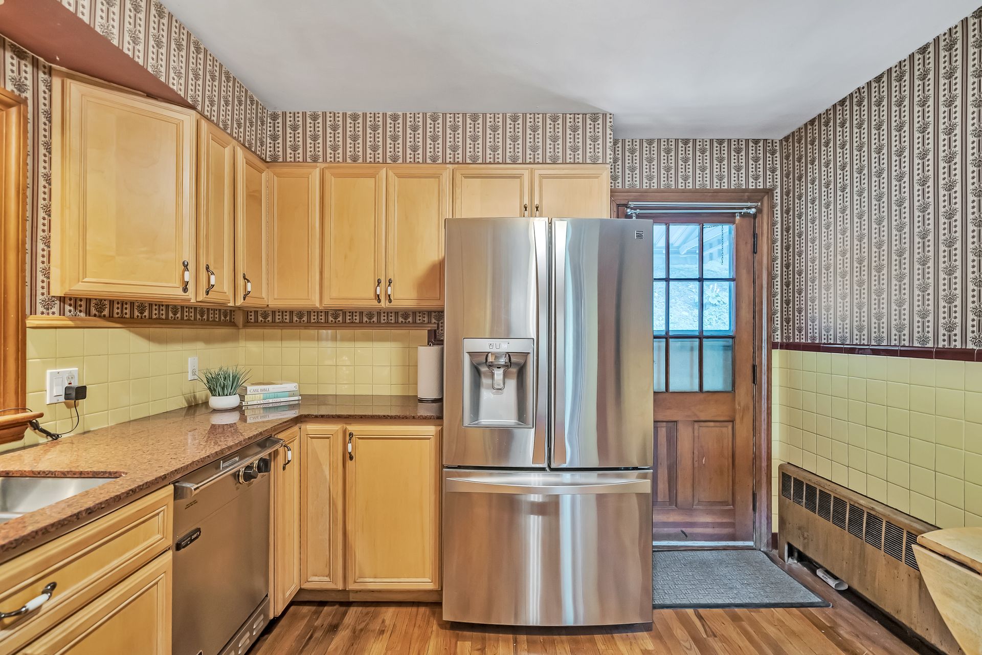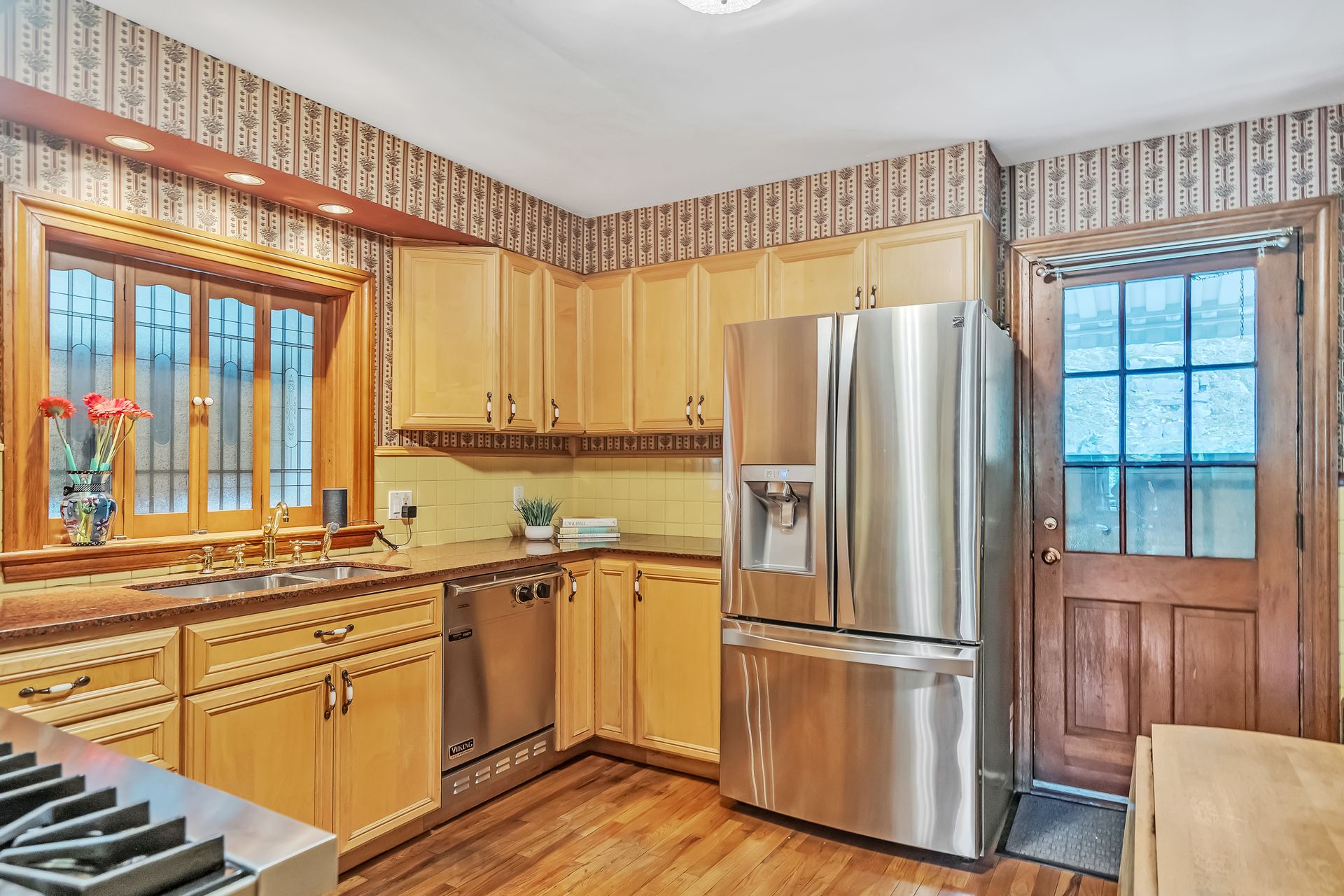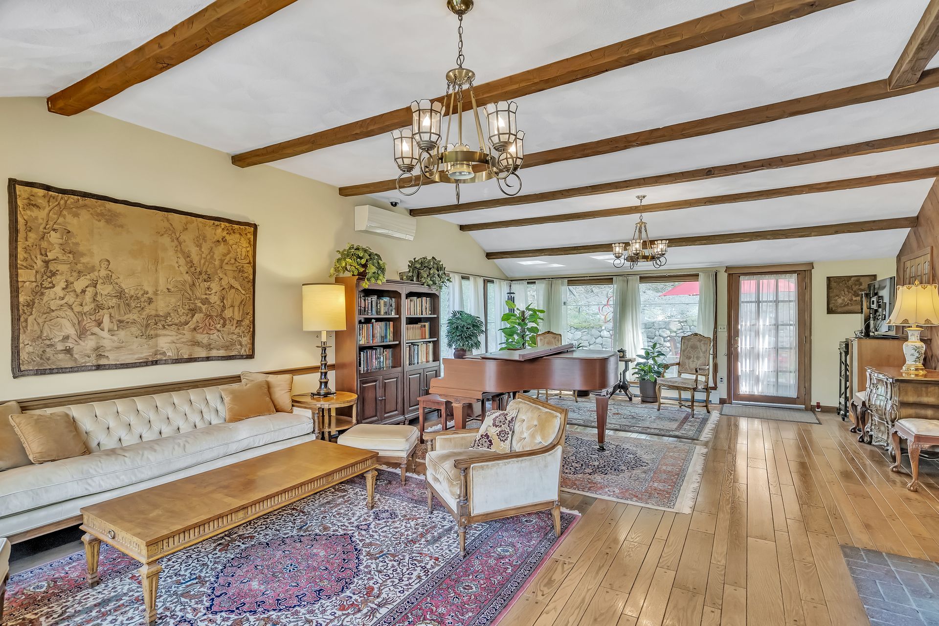Located in the desirable district of West Newton Hill, this beautifully designed three-bedroom two-bath single-family home sits amongst Newton's most sought-after school districts. This approximately 2,069 square foot ranch-style home with solid oak floors boasts a 20 x 30-foot Great Room, large picture windows, beamed ceilings and a wood-coal stove. The detailed kitchen offers custom oak cabinets, a luxurious Viking stove, dishwasher and disposal, granite countertops and access to an open dining room with a fireplace. This dwelling, which offers a generous amount of storage space in the attic, basement and closets, also features a finished basement with laminate wood floors and a stone fireplace that can entertain as a family room or office, joined by an additional room that doubles as a small yoga or exercise studio, equipped with a washer, dryer and a second bathroom with an open shower. Sitting on the 10,000+ square foot lot, this home features a beautiful walk-out patio and a single-car garage with two exterior parking spaces, with central access to the Commuter Rail, Mass Pike, Route 128 and public transportation. This inviting home is handicap accessible.