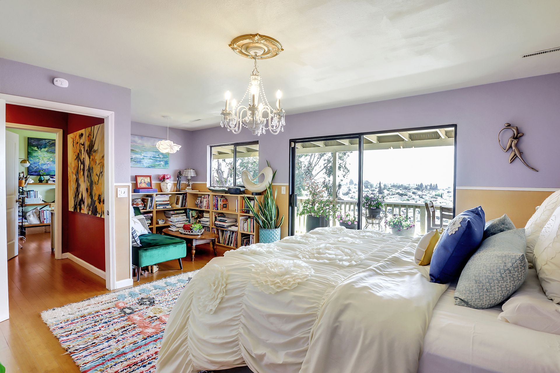 Open House 4/9 & 4/10 1-4 pm *A Work of ART! Nestled in the rolling foothills, terraced on a hillside, and with scenic Bay views, is this gorgeous custom-built two-story home, unlike anything you’ve seen before. The layout, like an artist's canvas, seeks to instill harmony and tranquility in its surroundings at every turn. The balcony, multiple decks, and lower terraces are a world of their own with glimpses of waterfalls, statues, and vegetation adorning the setting. Featuring an oversized kitchen/dining area with an adjacent super living room that offers fantastic views and opens up to the deck. Upstairs is the master bedroom suite which has a walk-in closet and sitting area with marvelous views of the San Francisco Bay. The side yard has been turned into a private peaceful refuge. The lower terrace has a storage shed and raised vegetable beds. And if you stay long enough, you’ll see deer roaming just below the property. New Haven Schools is a big plus and it’s even close to BART. Hurry!