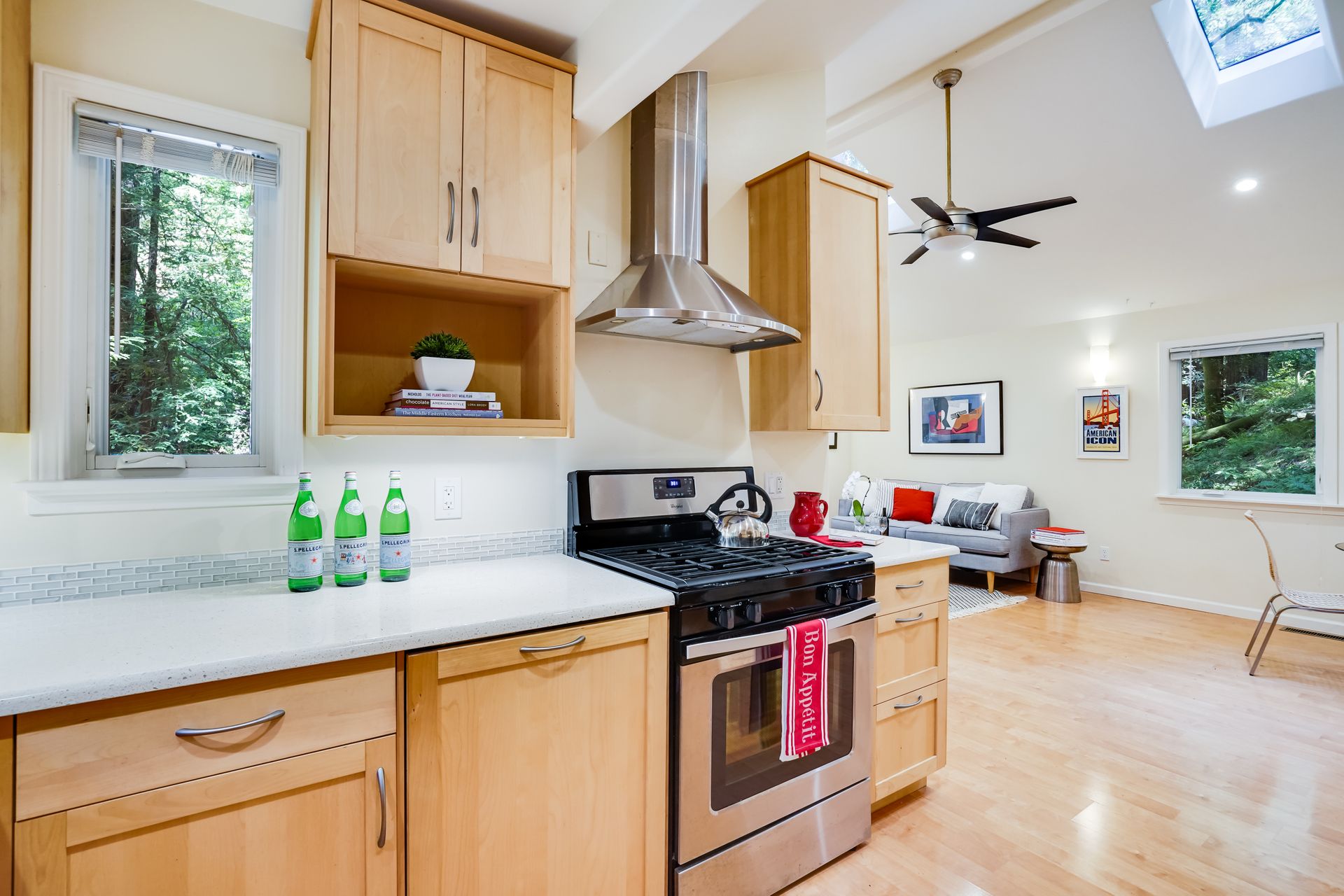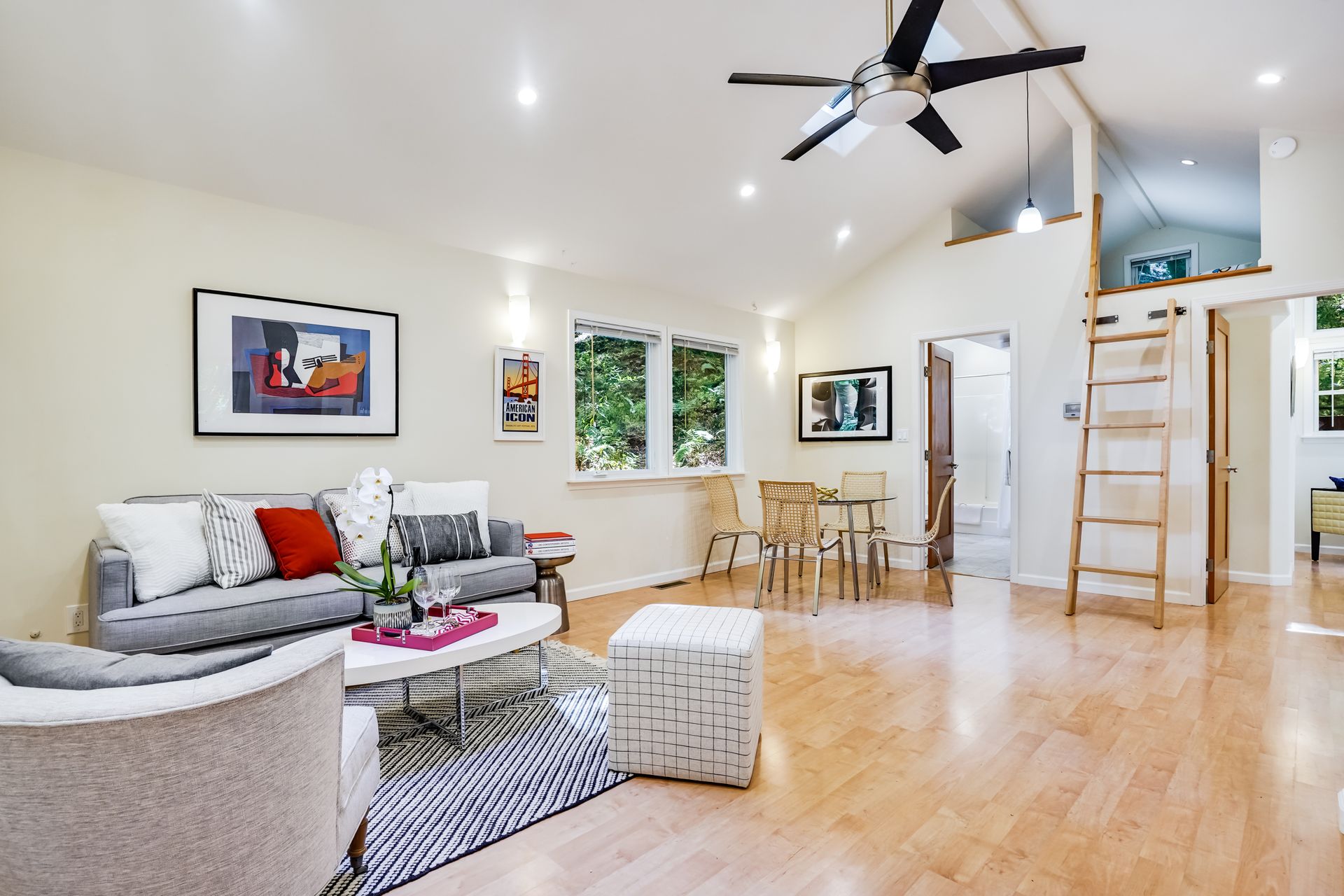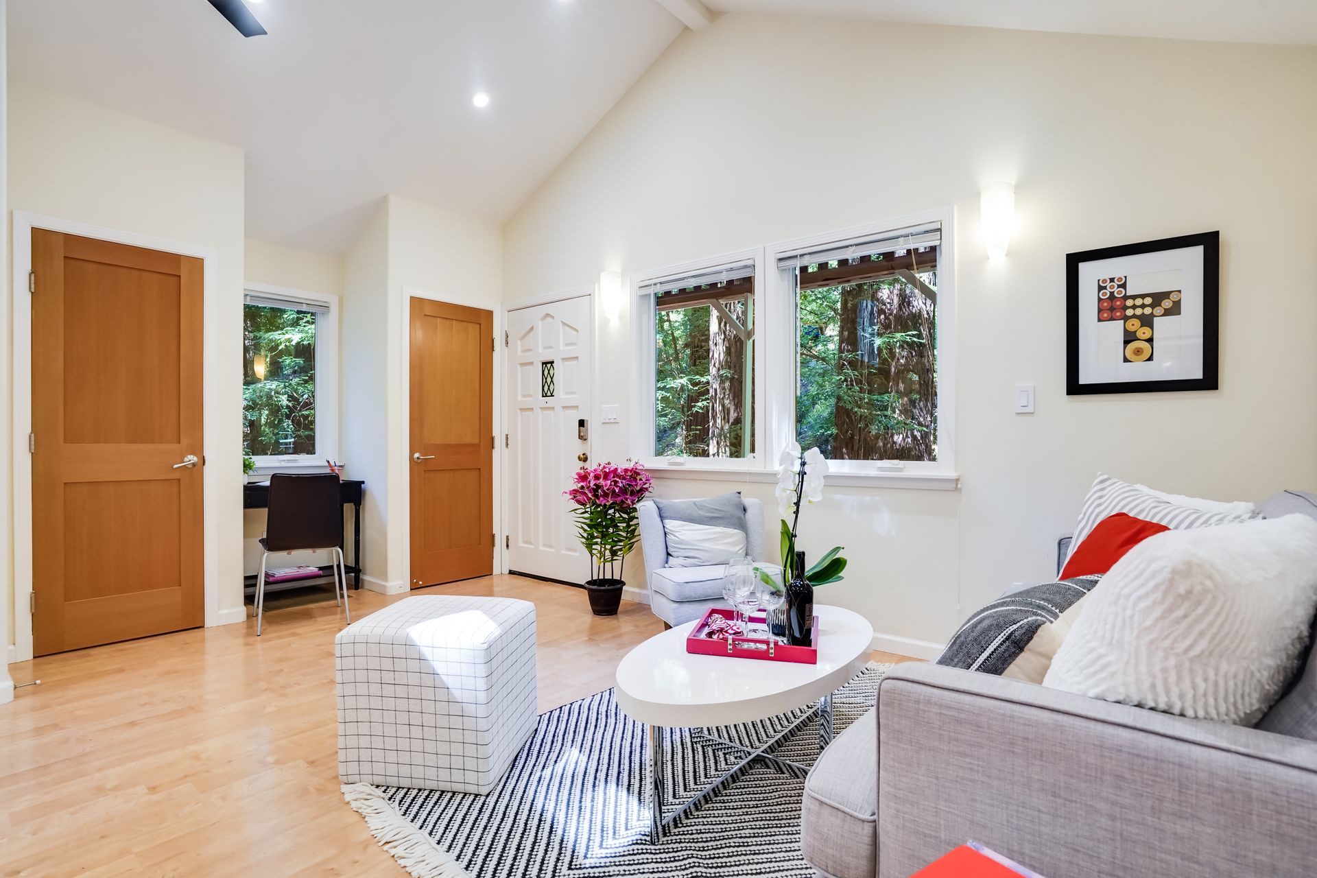 This serene West Marin retreat sits in a majestic redwood stand in the heart of the San Geronimo Valley. With an extensive ground up remodel in 2014/15, this Forest Knolls property is turn key and ready to go offering all the charm and historic feel of West Marin with a custom modern interior design. This beautiful home offers one bedroom, one bathroom, plus a loft / guest retreat. The property boasts an open floorplan and access to the yard and decks from every room bringing the outdoors in. This incredible San Geronimo property is the ultimate destination for those looking to escape the pressures of daily work life after a long day, or just want to unwind at their private weekend retreat.