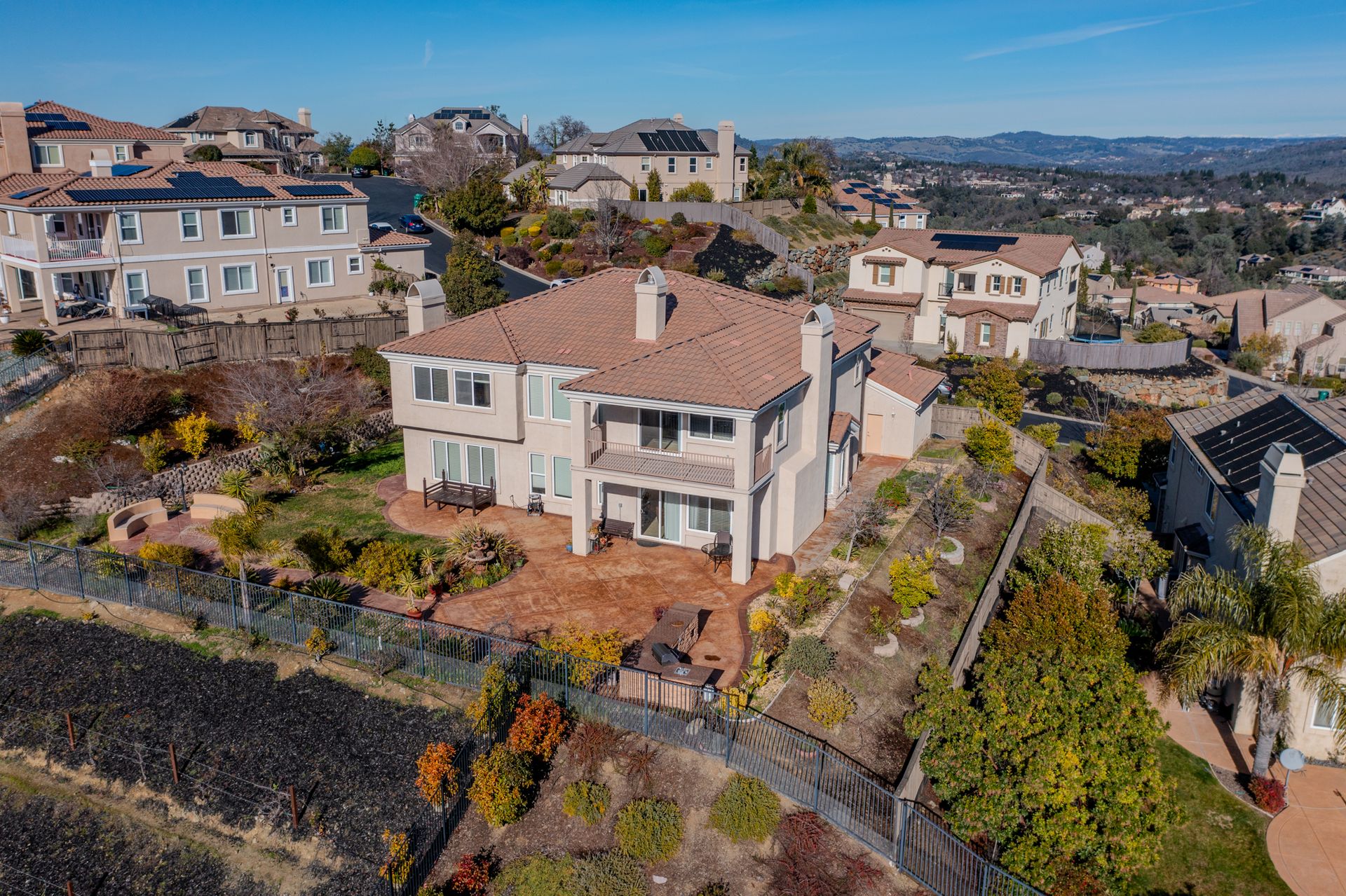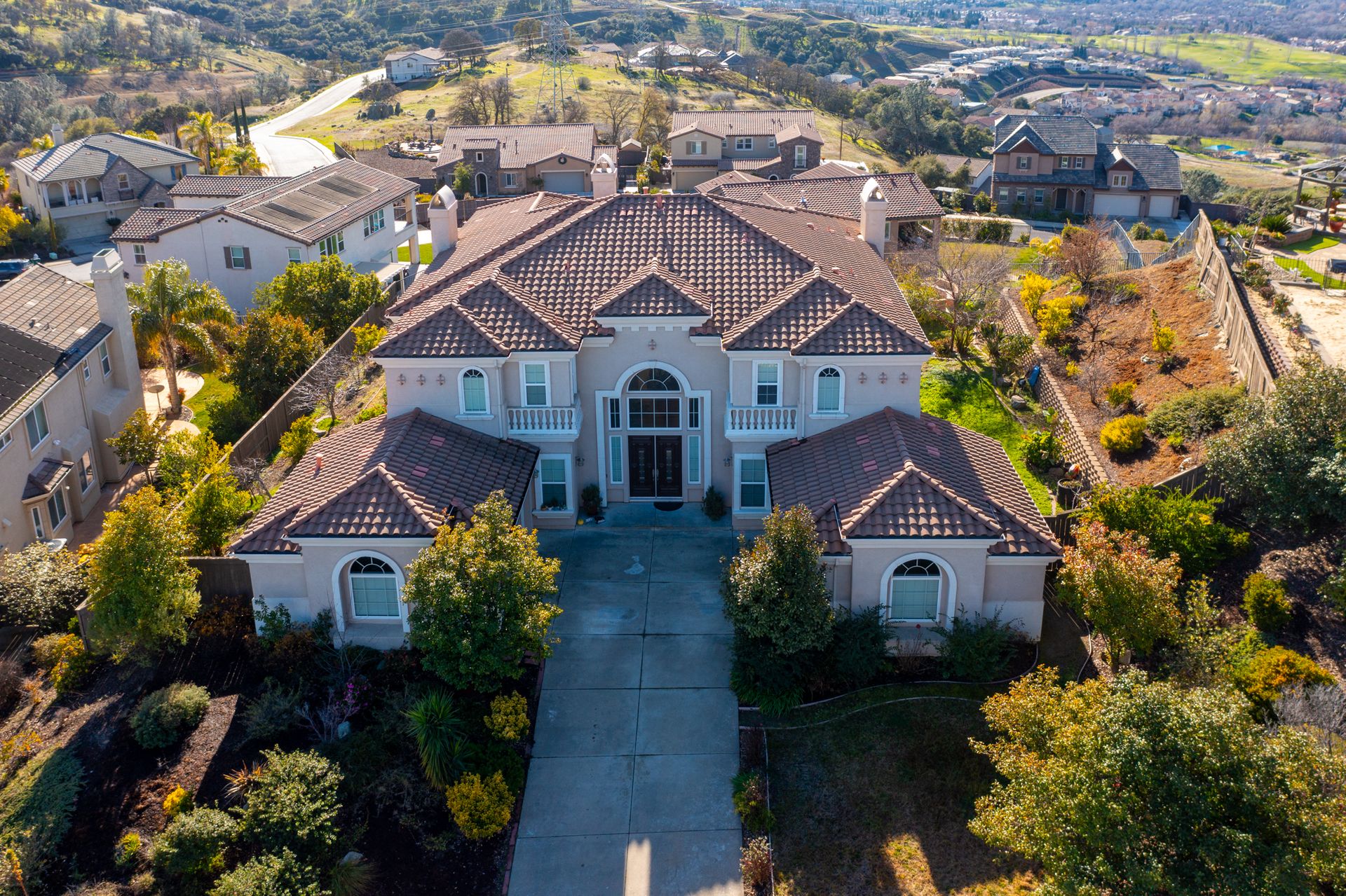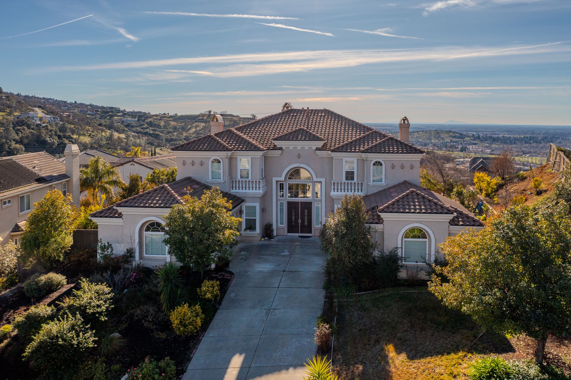 Enjoy amazing views from this beautiful home in the gated Promontory community in El Dorado Hills. Located in a court on approximately 0.42 acres, this home offers luxury and style in an eye-opening floor plan! A grand entry with high ceilings and two rounded staircases frames a beautiful view of an elegant dining room with views to the backyard. Wide expansive views are mesmerizing from the primary bedroom's private balcony and are equally spectacular from the spacious backyard with lots of room for play, entertaining and daily living. Explore your passion with a built-in BBQ, gardening boxes and room ideal for a pool. The sky's the limit. With almost 5000 square feet, this home has it all. Five bedrooms are all ensuites. The family room connects to oversized kitchen with a beautiful island. A formal living room joins nicely to the dining room with a private office nearby. Downstairs, the bedroom is ideal for guests. Upstairs, the floor plan is very efficient with multiple bedrooms and a grand loft. There is a four-car garage and lots of storage areas. Enjoy being near parks, shops and top-rated schools. Come and see!