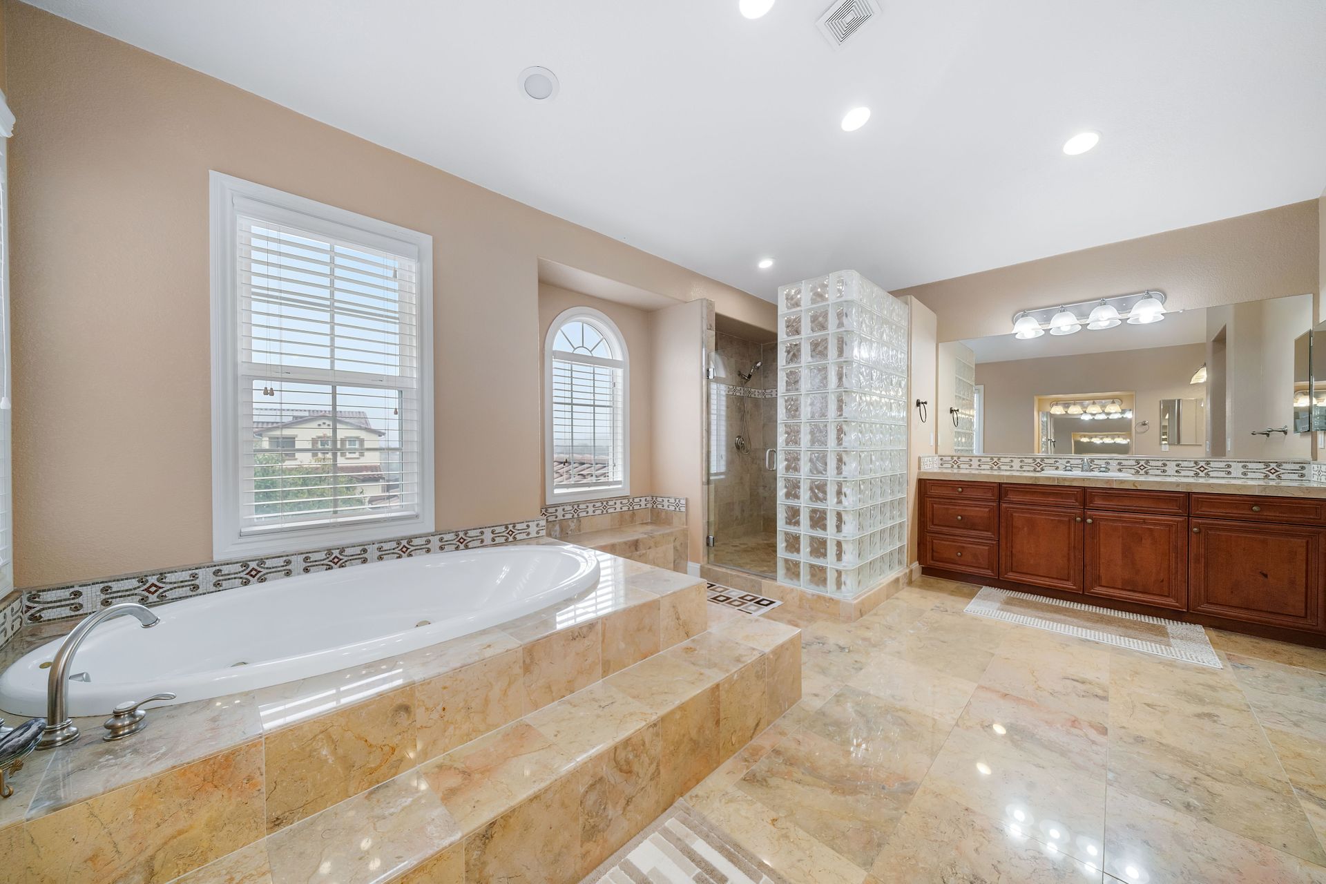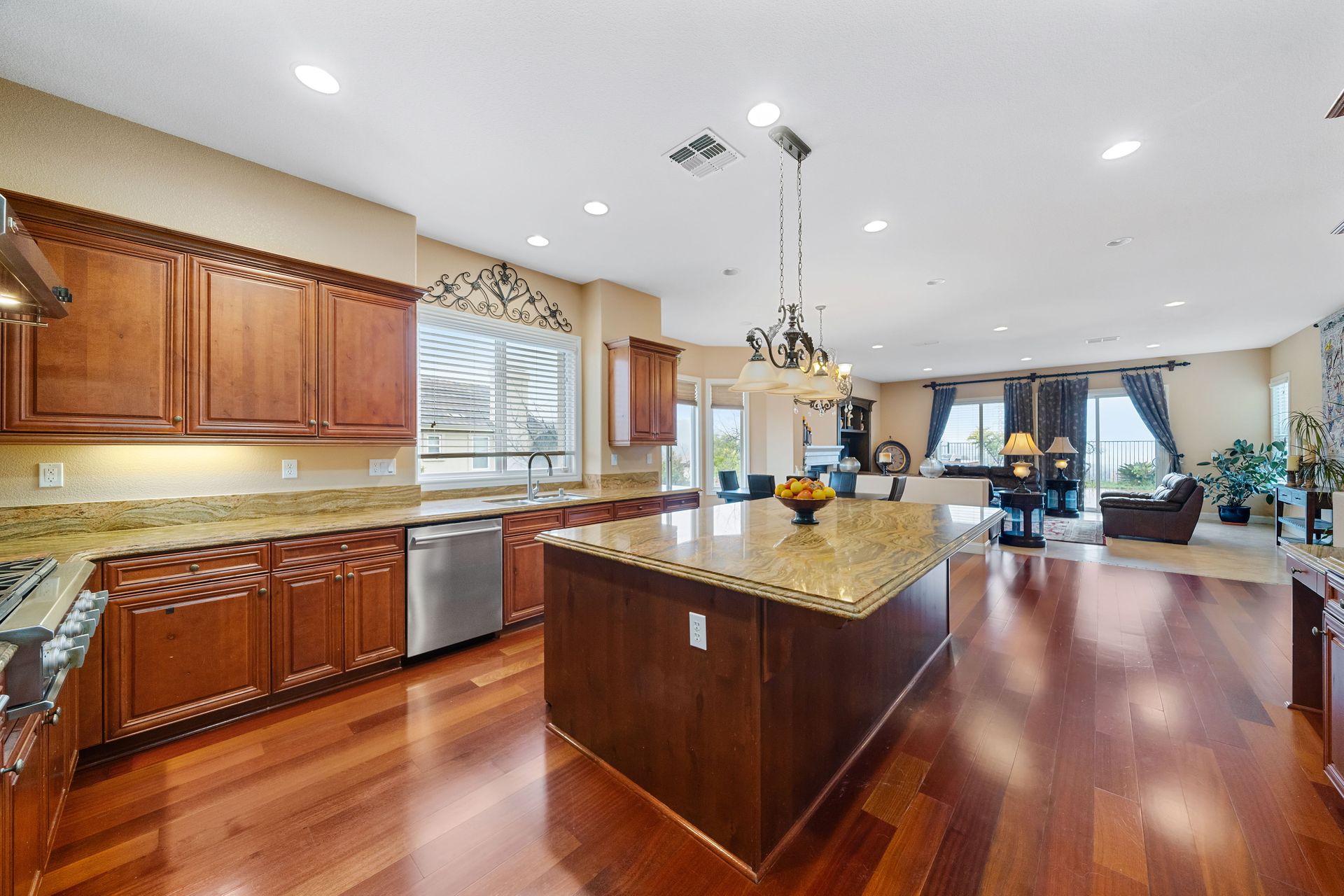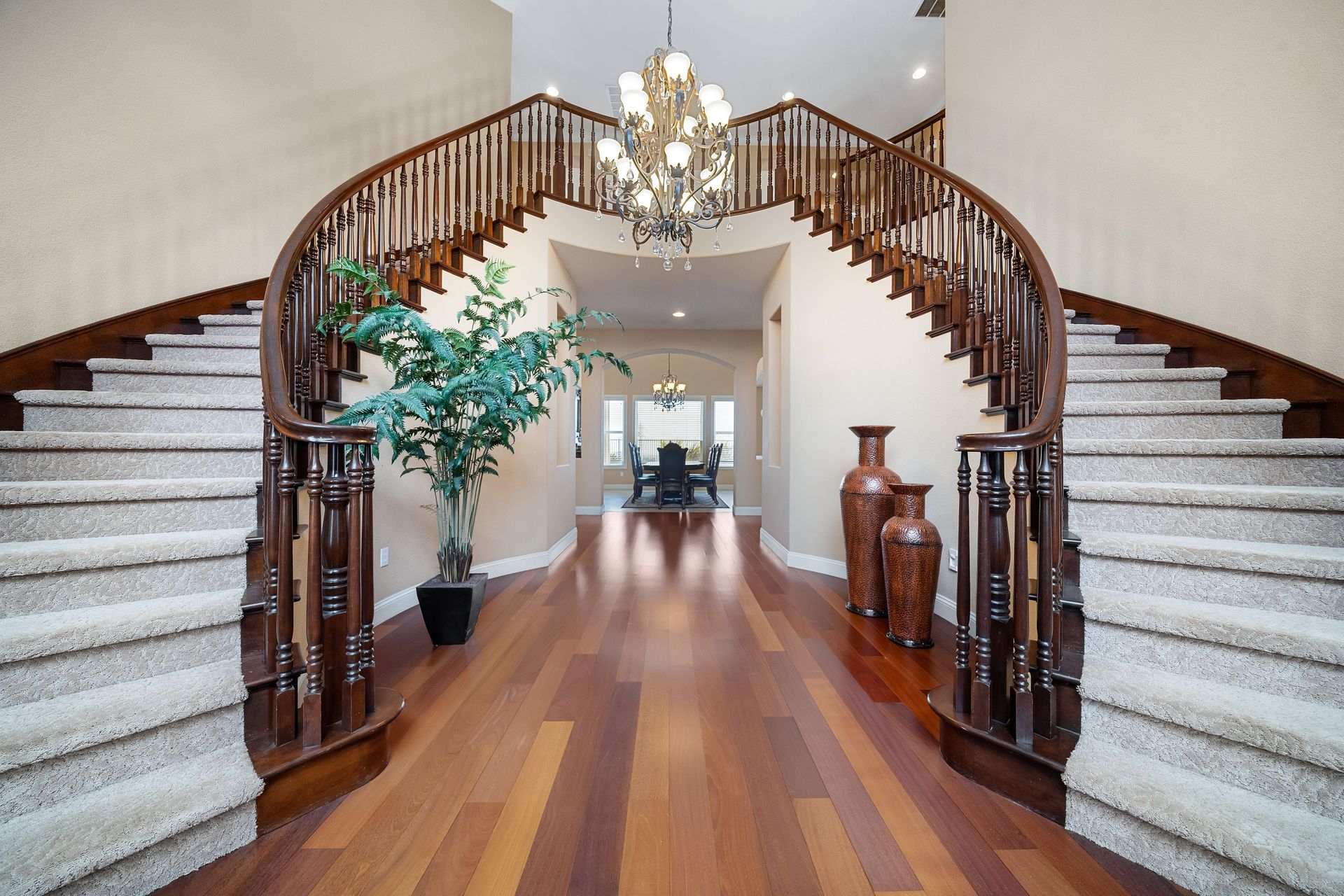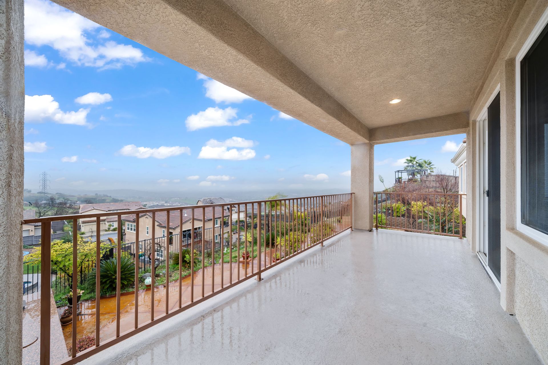 Enjoy amazing views from this beautiful home in the gated Promontory community in El Dorado Hills. Located in a court on approximately 0.42 acres, this home offers luxury and style in an eye-opening floor plan! A grand entry with high ceilings and two rounded staircases frames a beautiful view of an elegant dining room with views to the backyard. Wide expansive views are mesmerizing from the primary bedroom's private balcony and are equally spectacular from the spacious backyard with lots of room for play, entertaining and daily living. Explore your passion with a built-in BBQ, gardening boxes and room ideal for a pool. The sky's the limit. With almost 5000 square feet, this home has it all. Five bedrooms are all ensuites. The family room connects to oversized kitchen with a beautiful island. A formal living room joins nicely to the dining room with a private office nearby. Downstairs, the bedroom is ideal for guests. Upstairs, the floor plan is very efficient with multiple bedrooms and a grand loft. There is a four-car garage and lots of storage areas. Enjoy being near parks, shops and top-rated schools. Come and see!