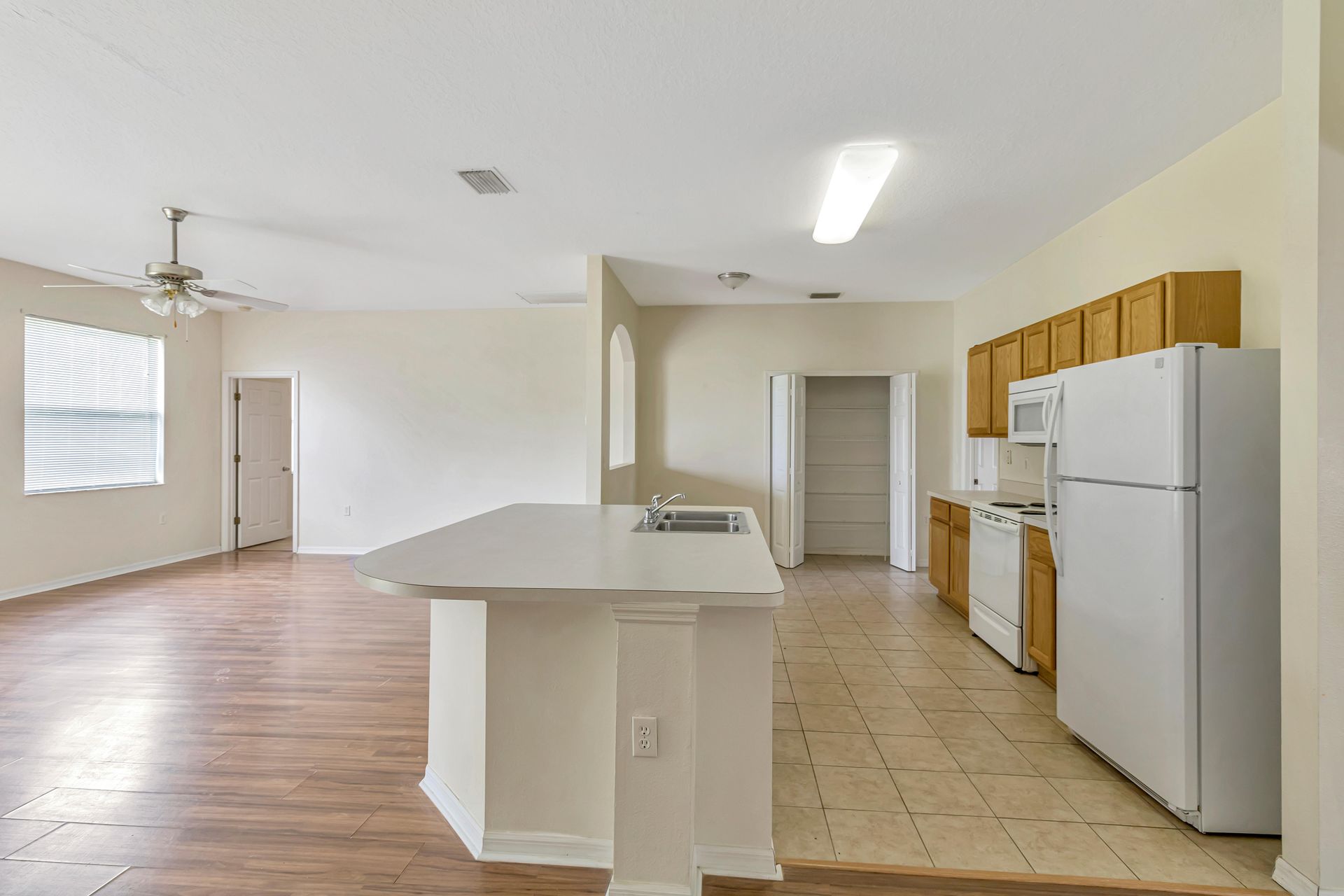Introducing this gorgeous and spacious corner lot home. Enjoy your carpet-free floors consisting of ceramic tiles and laminate flooring. Entertaining will be a treat for you in your kitchen, especially with no neighbors living in the rear. If you love to have lots of guests in your home, this unique floor plan is a MUST for you! As you enter this wonderful home you will immediately see the spacious great room which is wonderful for your guests to hang out. Guests can also park in your oversized driveway and, if you want more privacy, then you can add fencing for your cute puppy also. This property is truly a MUST-SEE! Don't worry about painting the exterior and the garage for some years, the seller made sure to have it painted just for you! Do not wait! This is it -- clean and MOVE-IN READY!