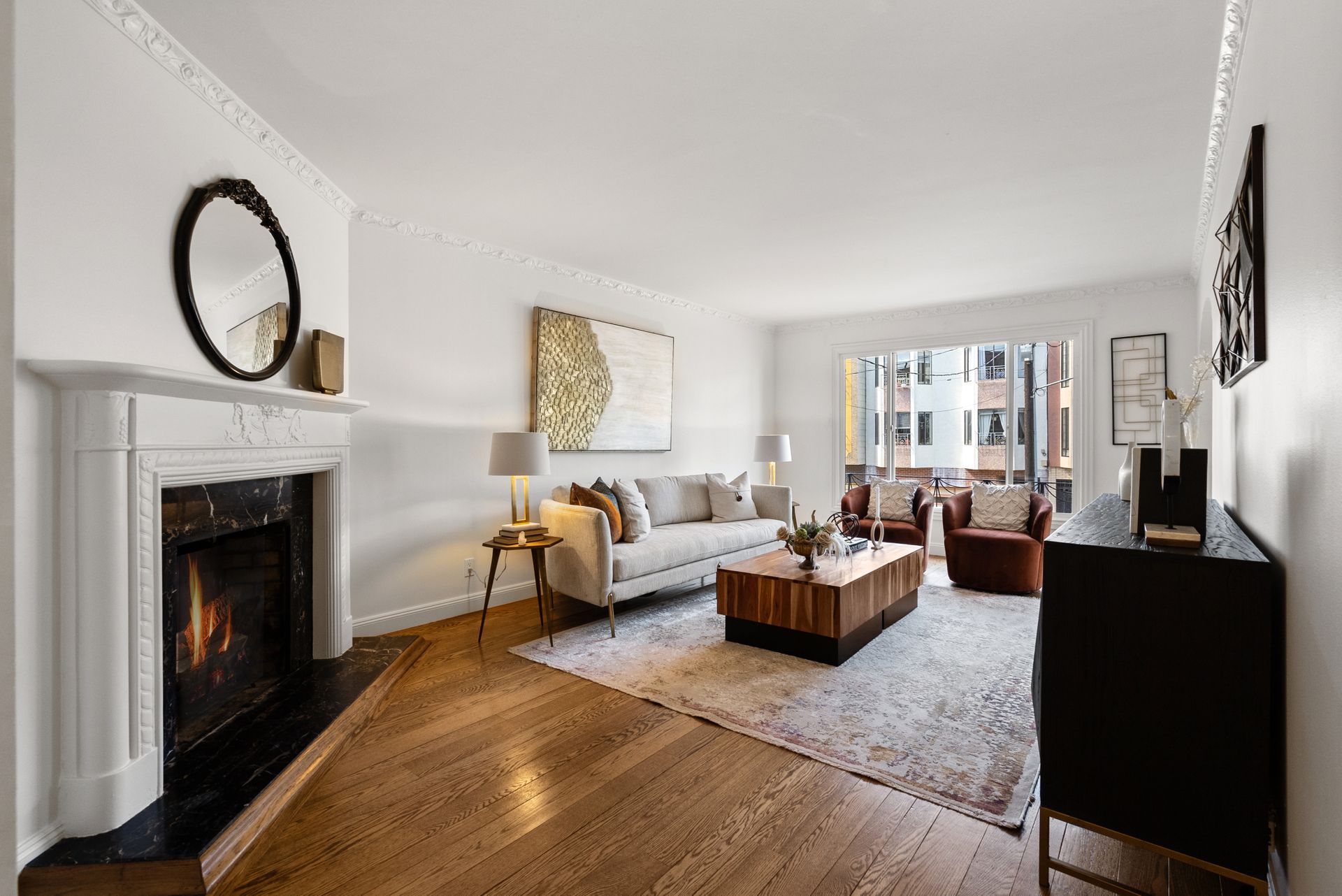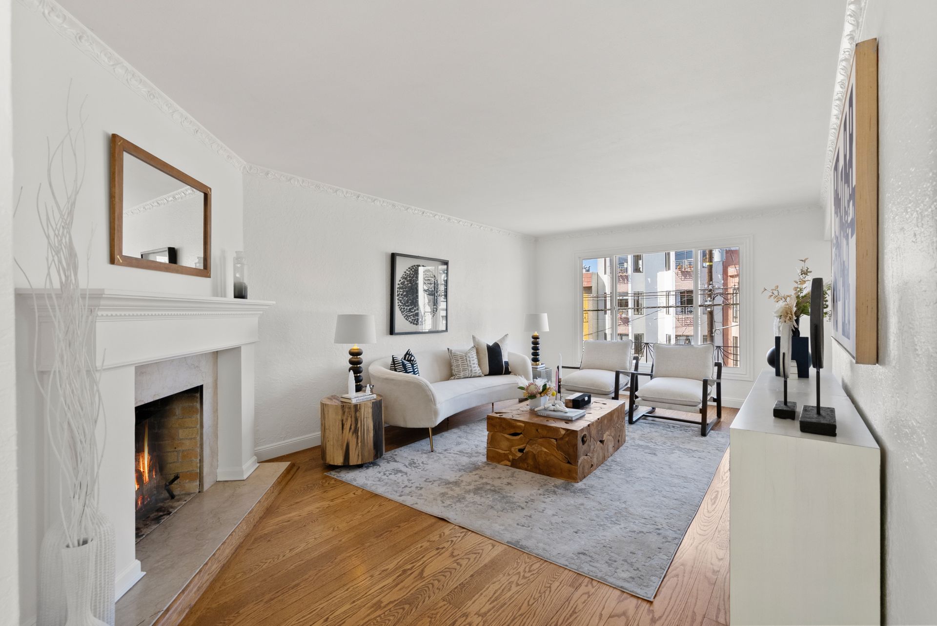 •Living room with fireplace