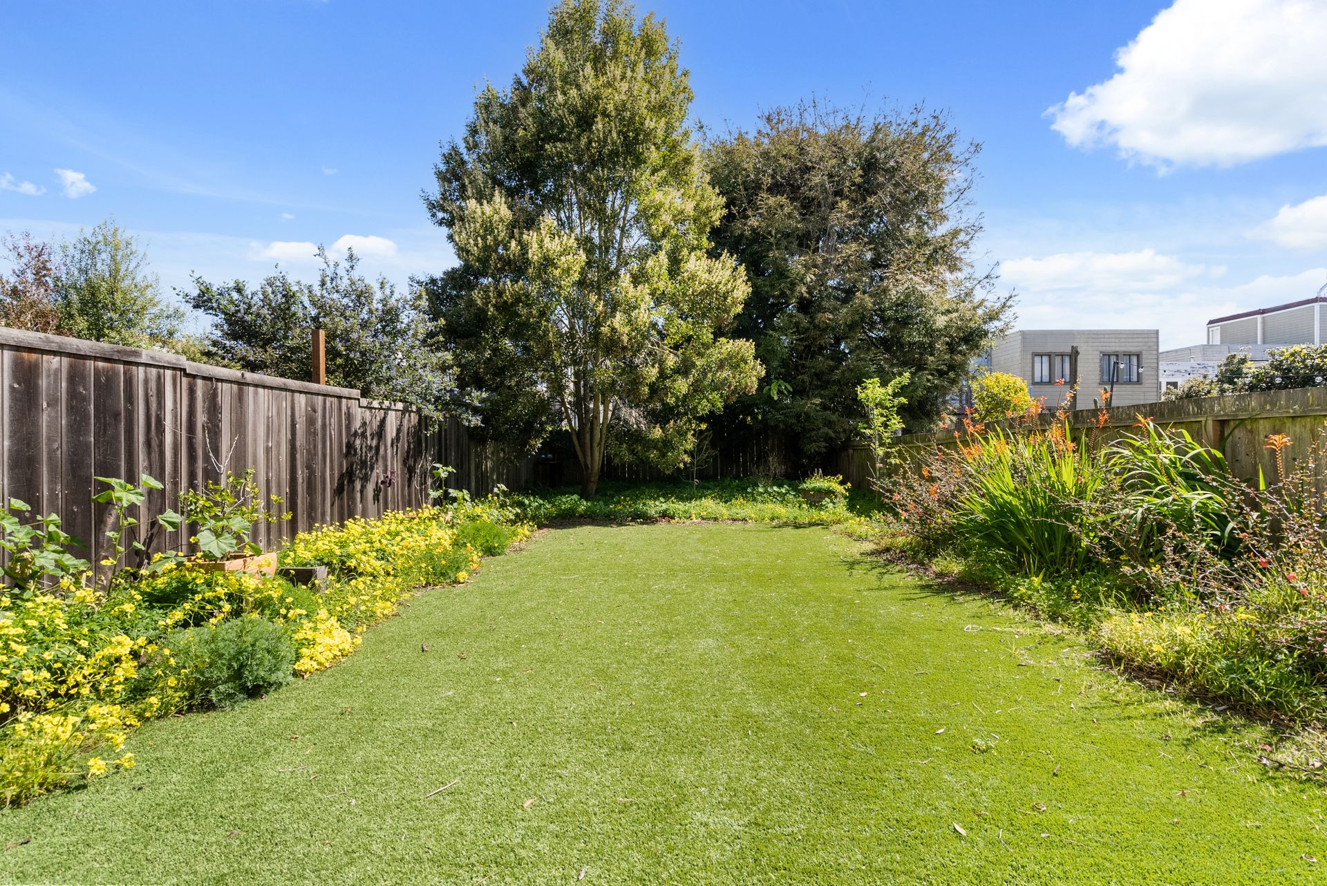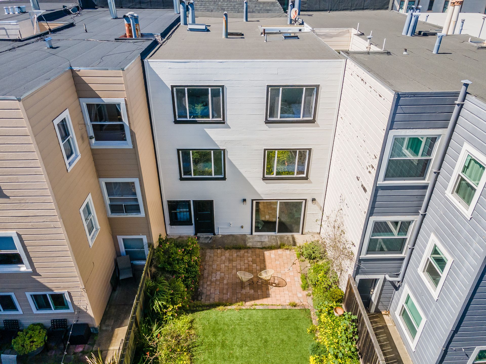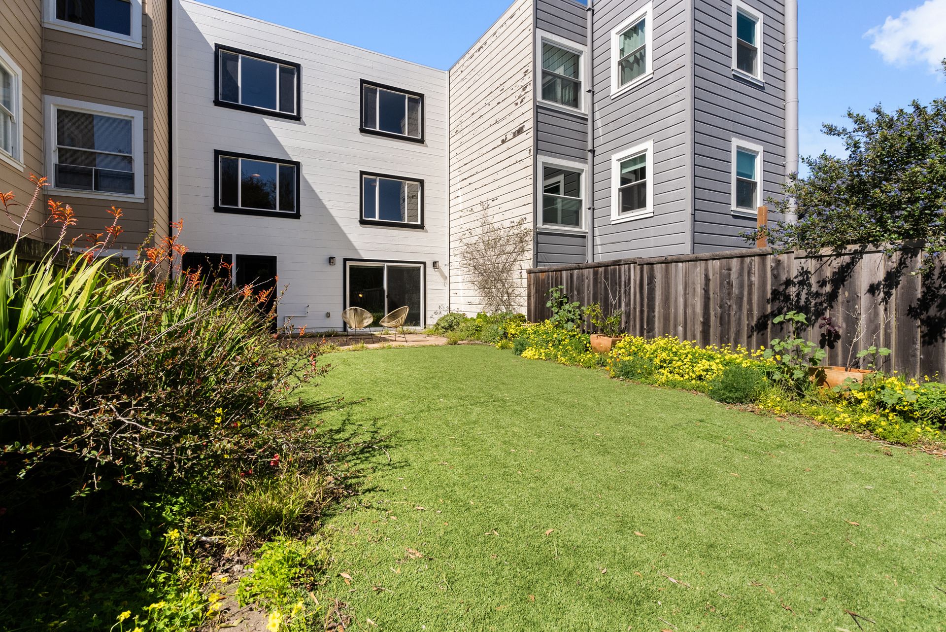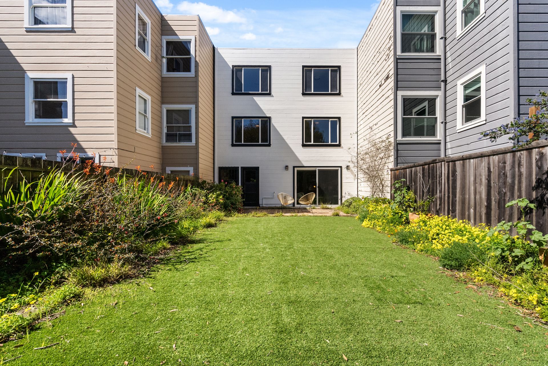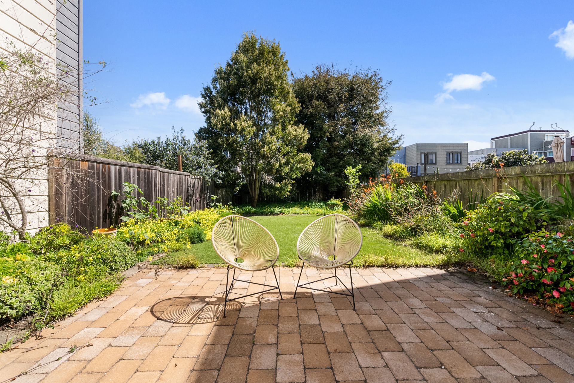 •Long and spacious backyard with flat lawn and patio