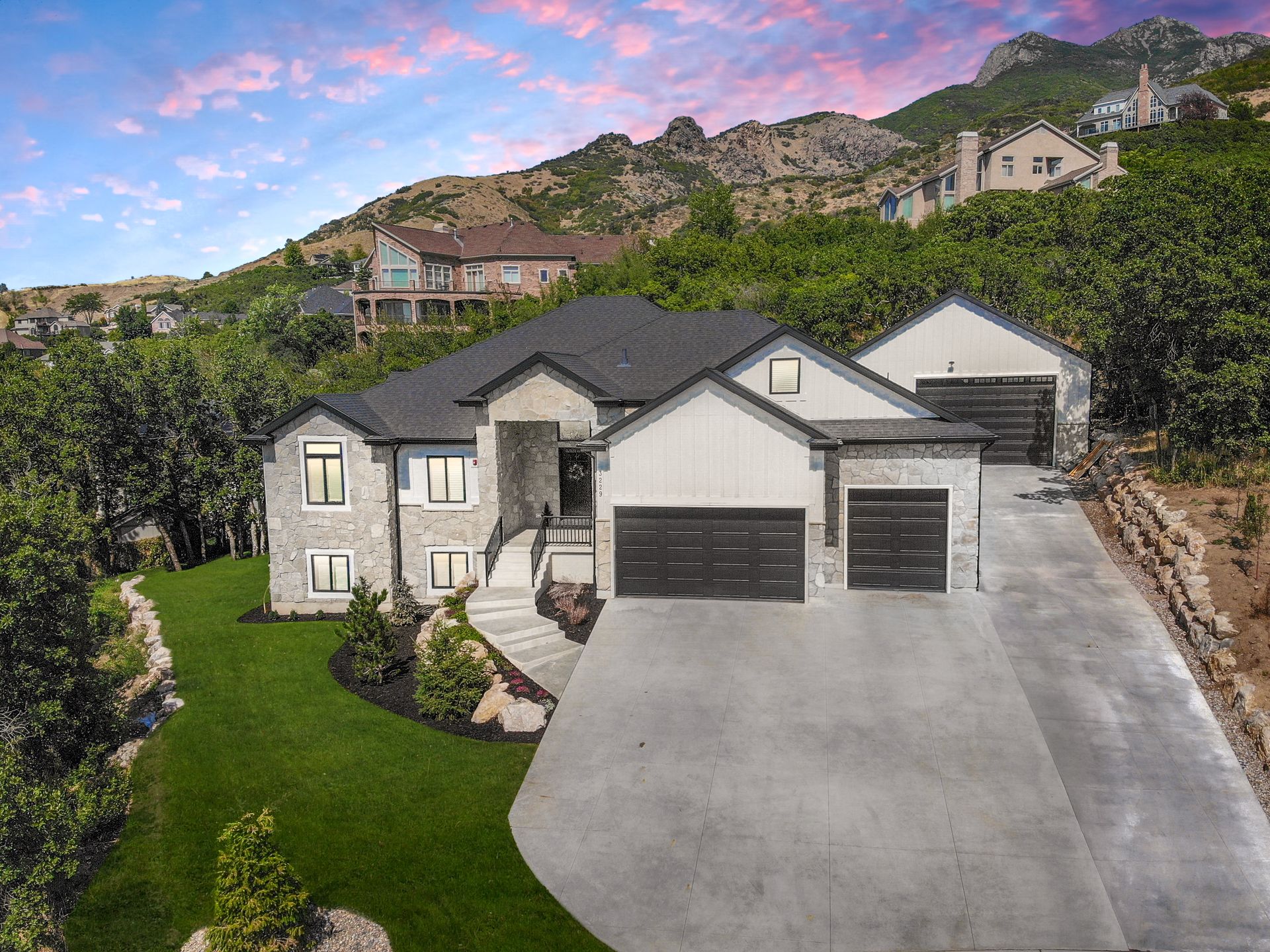 Soak up the best views in Davis County in this mountain home located in the highly desired area, East Layton. This masterpiece offers spectacular panoramic valley views along with peace and tranquility from the secluded backyard. 10-foot soaring ceilings, full kitchen in the walkout basement, seven bedrooms, four baths and a fire suppression system. 40-foot by 40-foot detached RV garage with 14-foot insulated garage doors. Generator hook-up is ready! Wired for hot tub on primary covered patio. 220-volt plug in the basement for potential tanning room. Exterior video surveillance installed. This high east bench home in Layton is minutes to Hill Air Force Base, 30 minutes to the Airport, 60 minutes to top-rated ski resorts and within minutes to the Adams Canyon Trailhead. This home has too many features to mention!