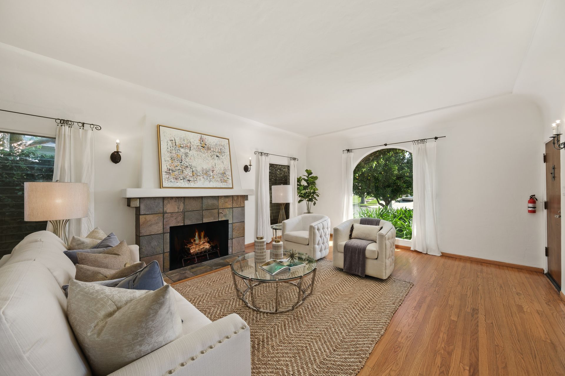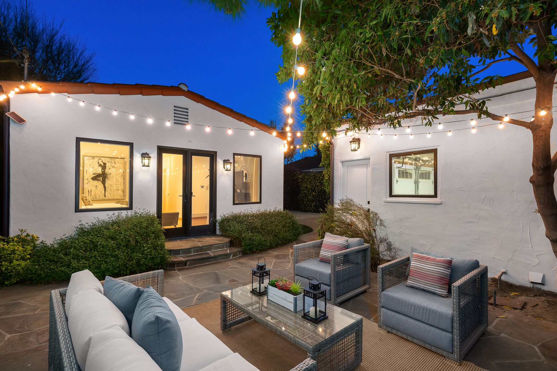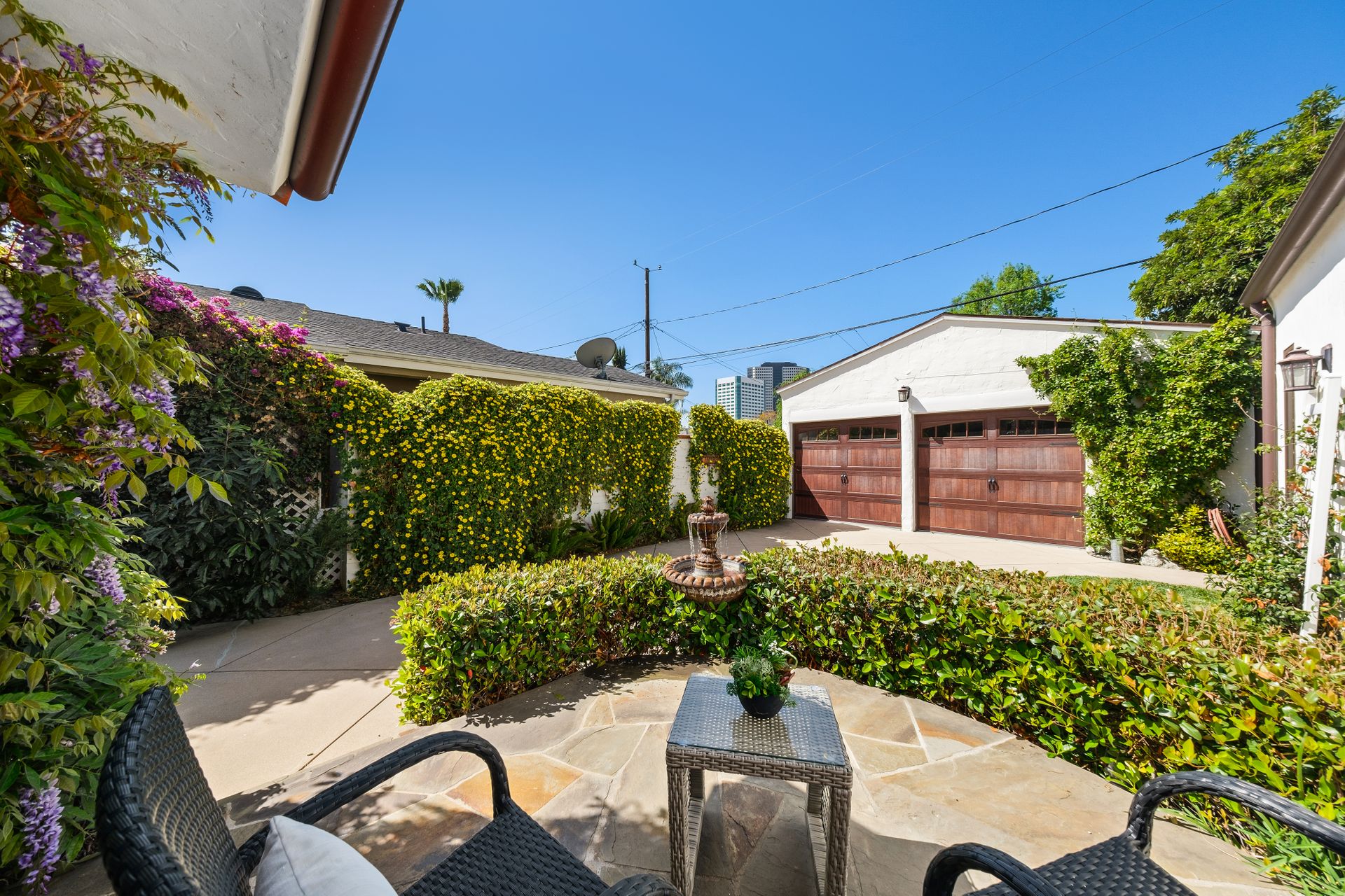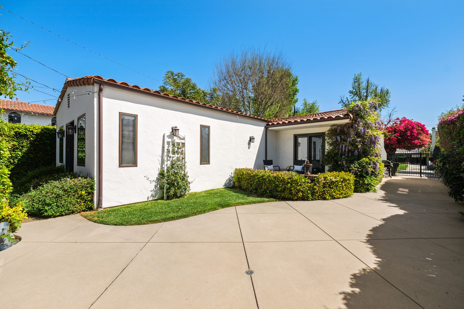 Warner Brothers Studios, Toluca Lake, Providence St. Joseph Medical Center, award winning schools, and parks with swimming and tennis recreation. As you enter this three bedroom, two full bath home you are swept away with the tranquil sounds of birds and fountains encased with Wisteria, Bougainvillea, a lemon tree and a lime tree. An exceptional open floor plan features a living room with smooth curved ceilings, a Spanish style fireplace. The dining area opens to a light and bright kitchen with a kitchen nook, slate countertops, dishwasher, refrigerator and a new professional Z-Line chef's gas range. Continue on to the stylish and spacious first bedroom with a walk-in closet, a spacious second bedroom/office/den with French doors that open to the private patio, fountain and wall of flowers. The large master suite is encased with views of the beautiful garden patio, fountain and flowers. The hallway leads to an en-suite bathroom with a shower/tub, and three spacious closets. A nicely-sized laundry room is located in the detached garage with lots of storage cabinets and utility sink. Other features of the home include wood floors throughout, HVAC, a wrought iron gate, water heater, and energy-saving appliances.